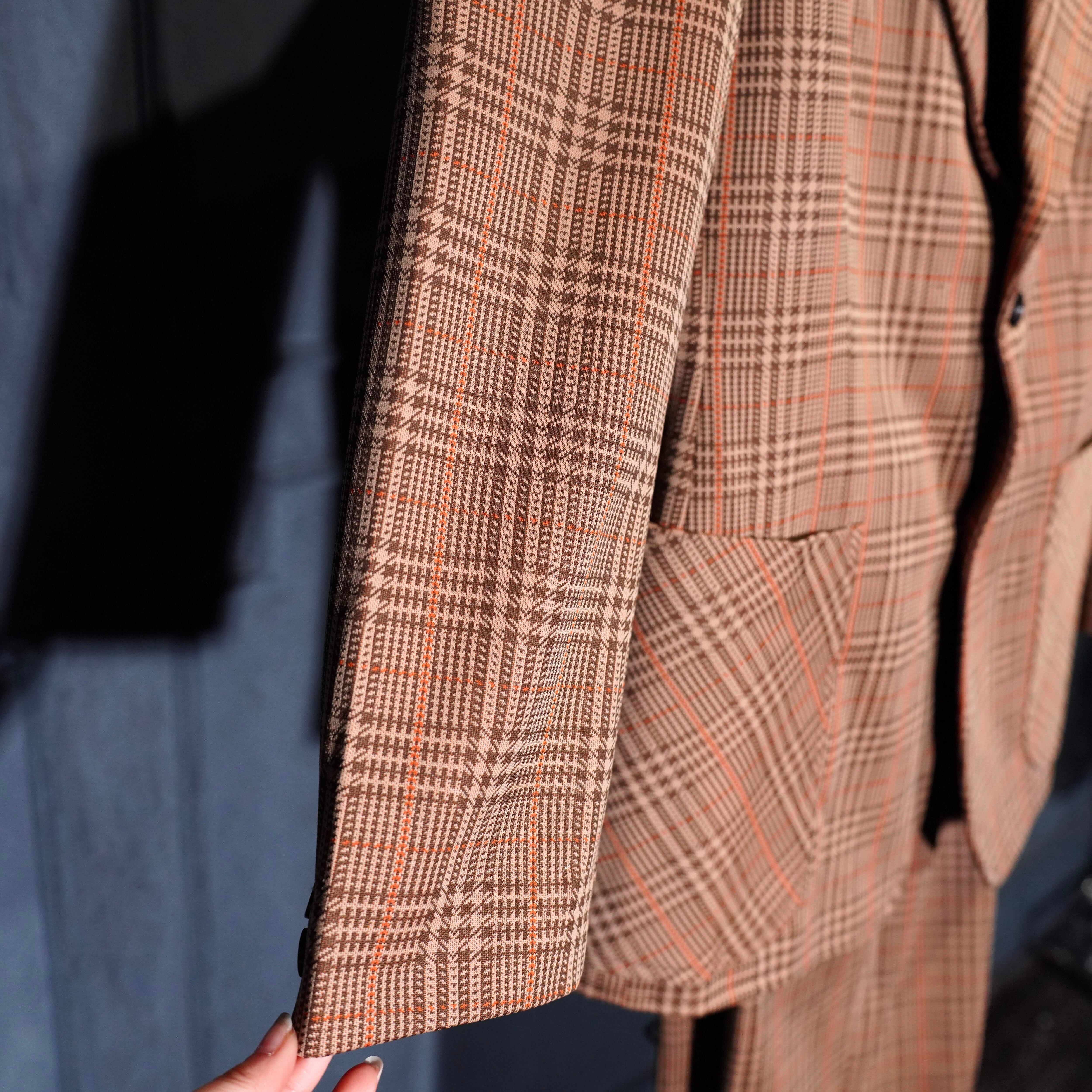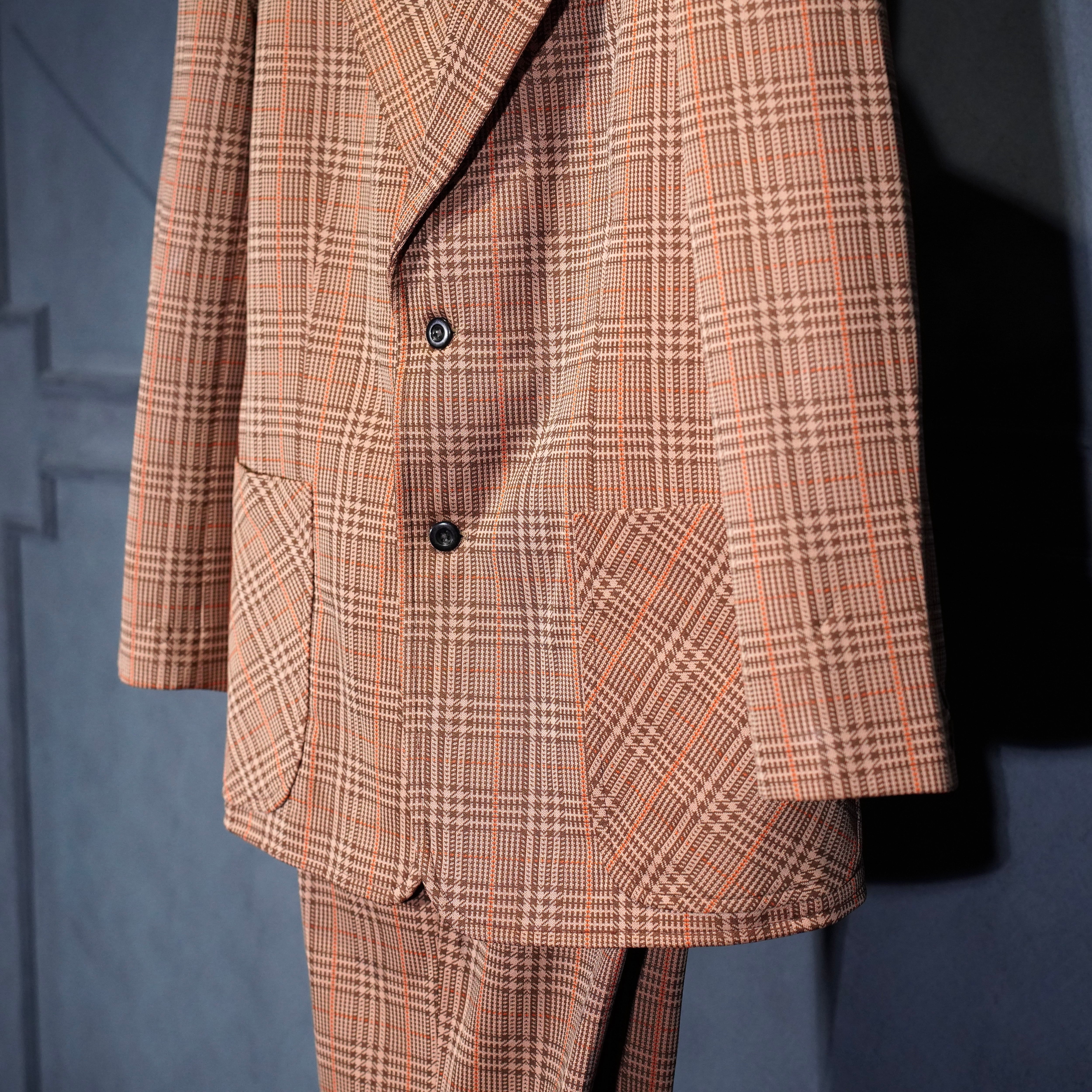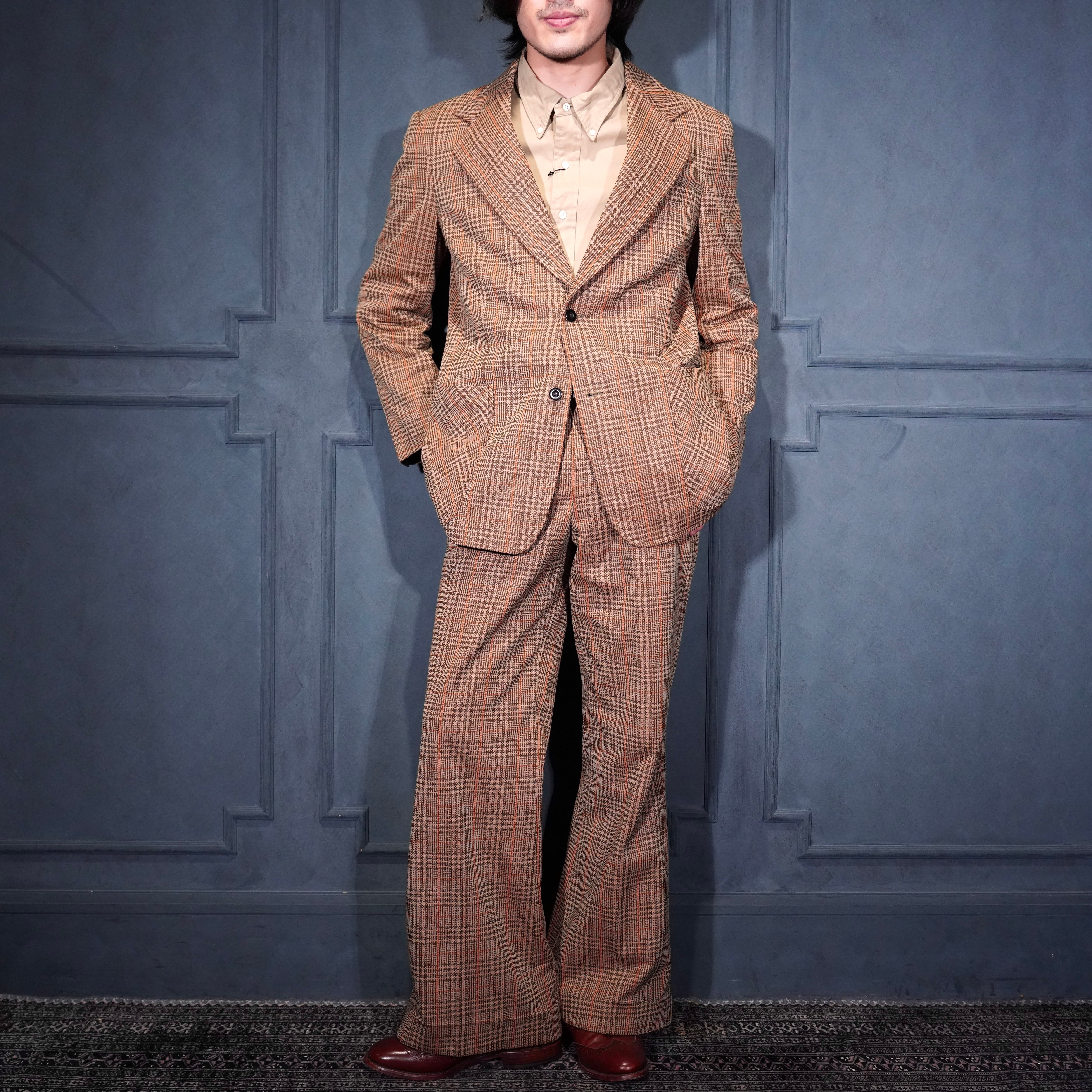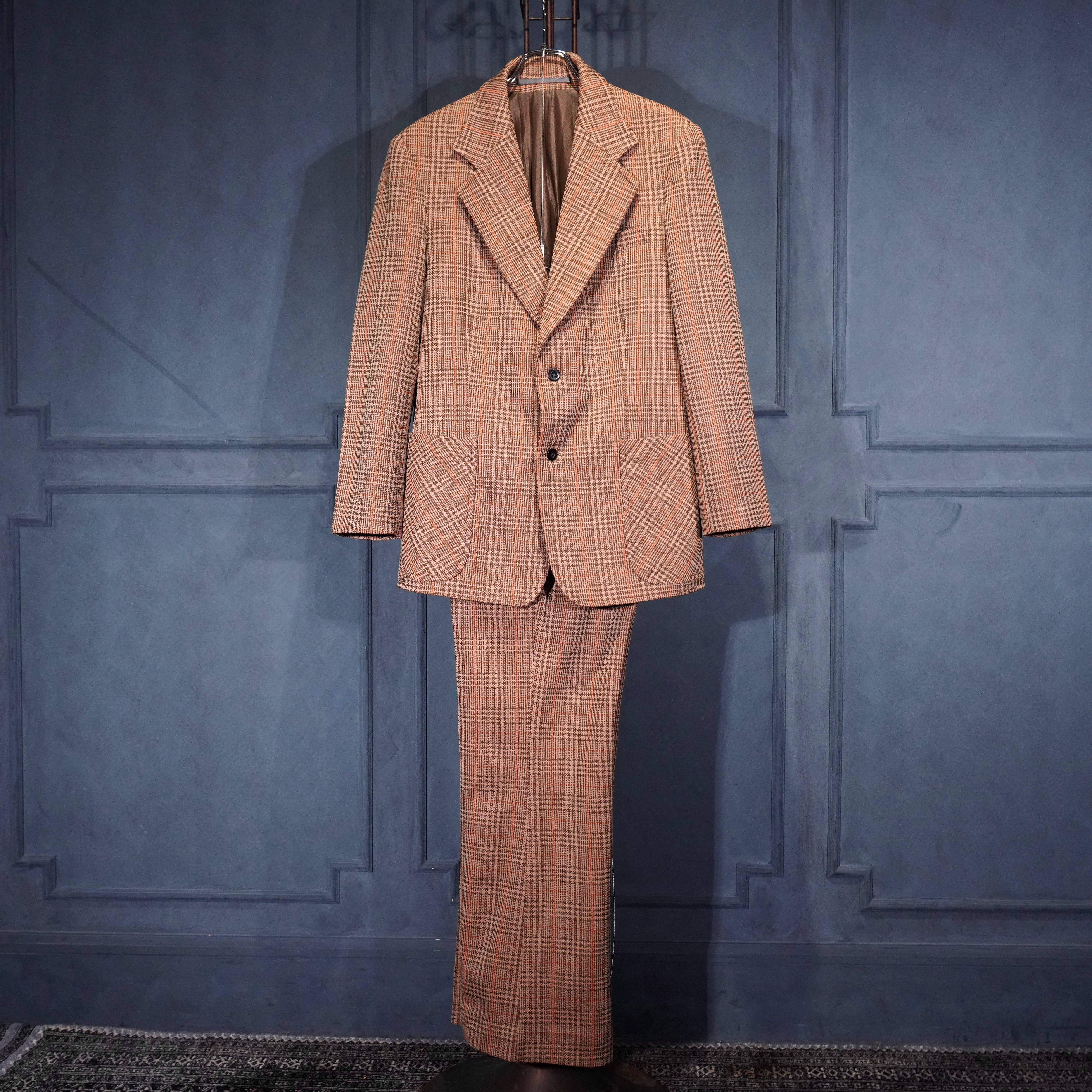 EU VINTAGE CHECK PATTERNED FLARE PANTS SET UP SUIT/ヨーロッパ古着チェック柄フレアパンツセットアップスーツ