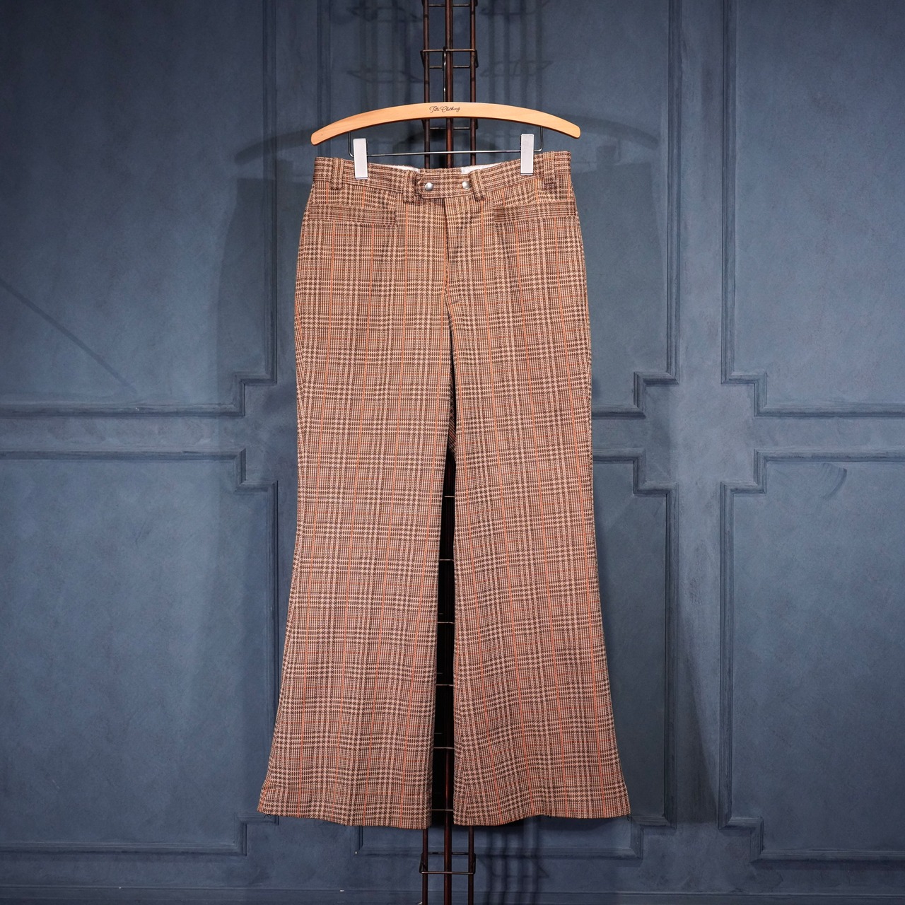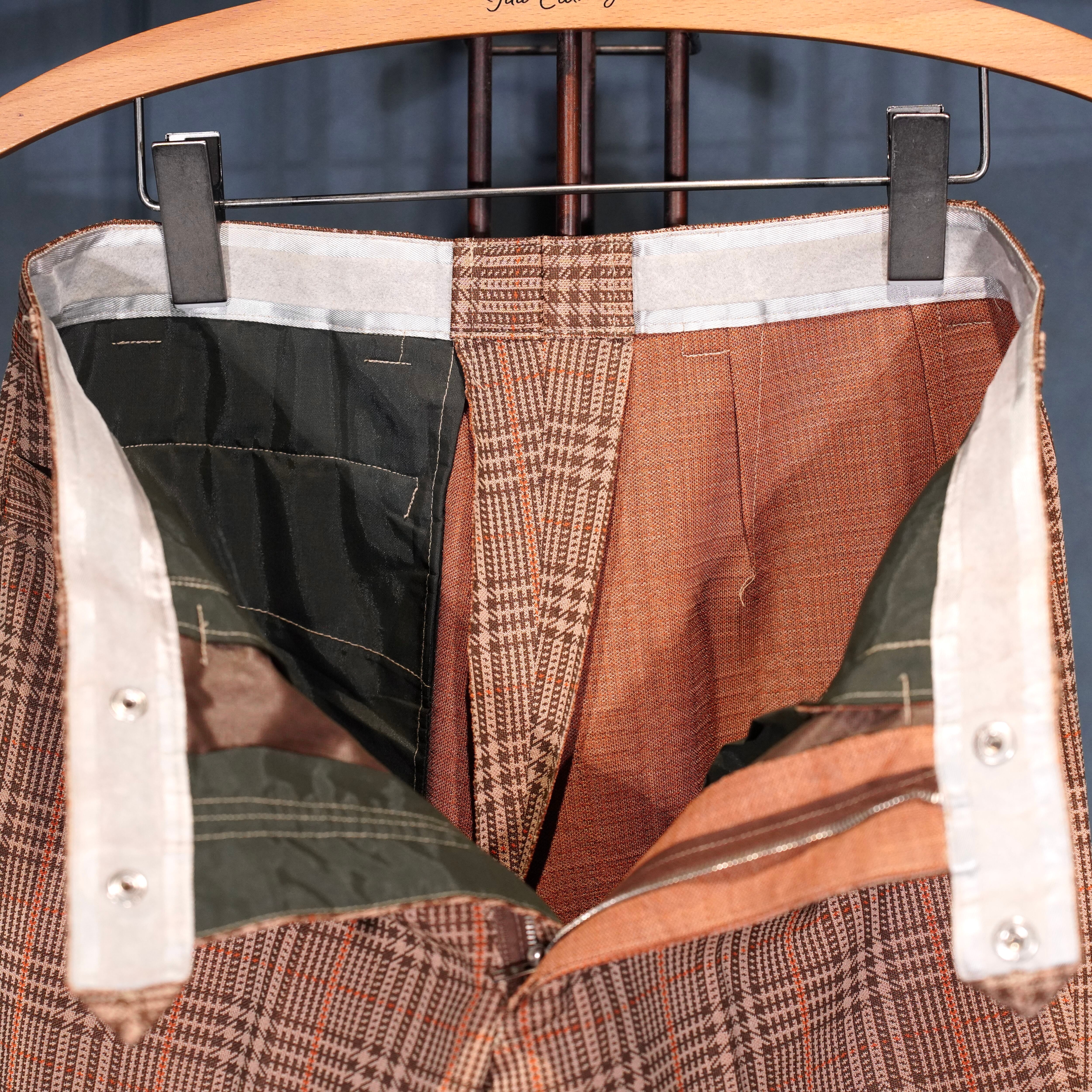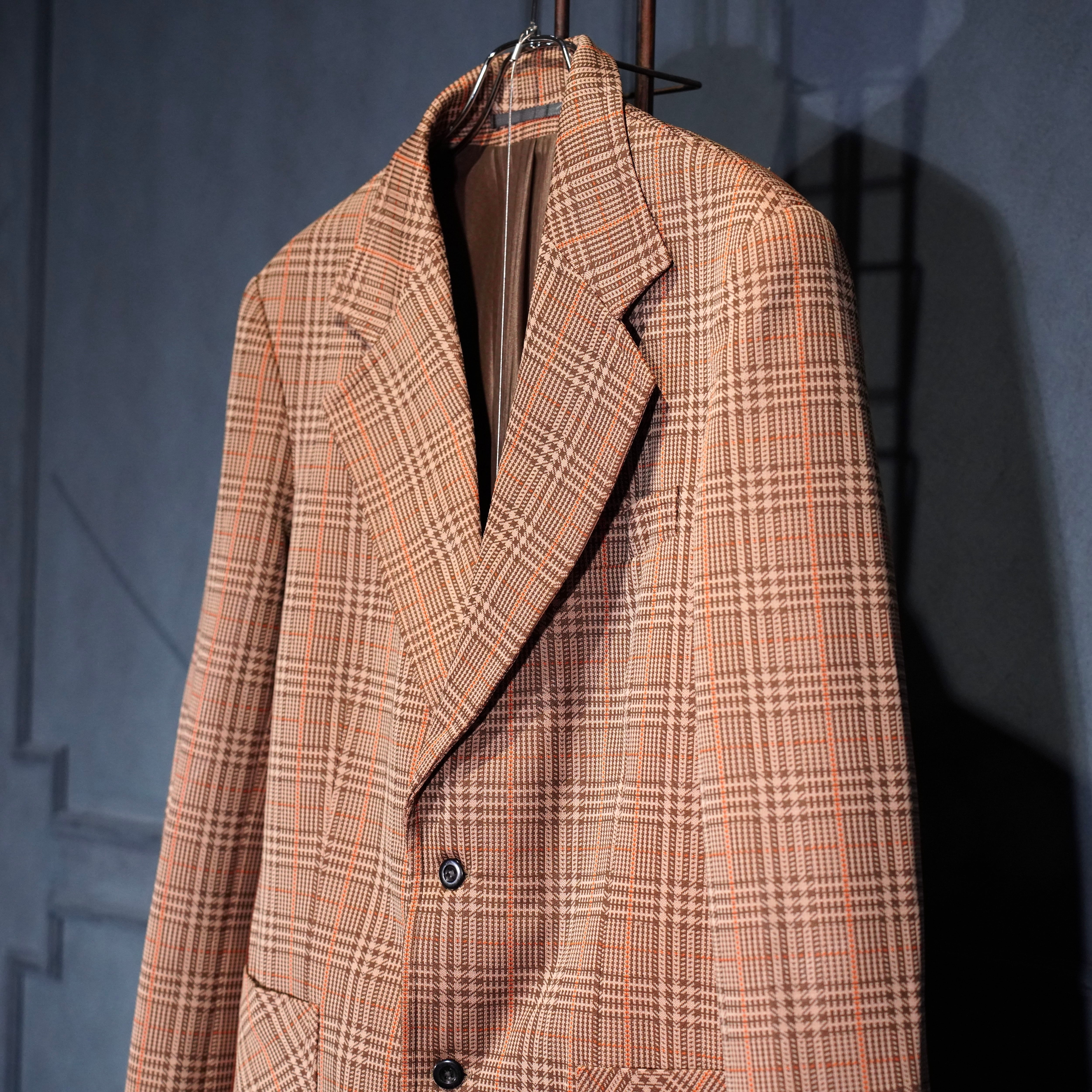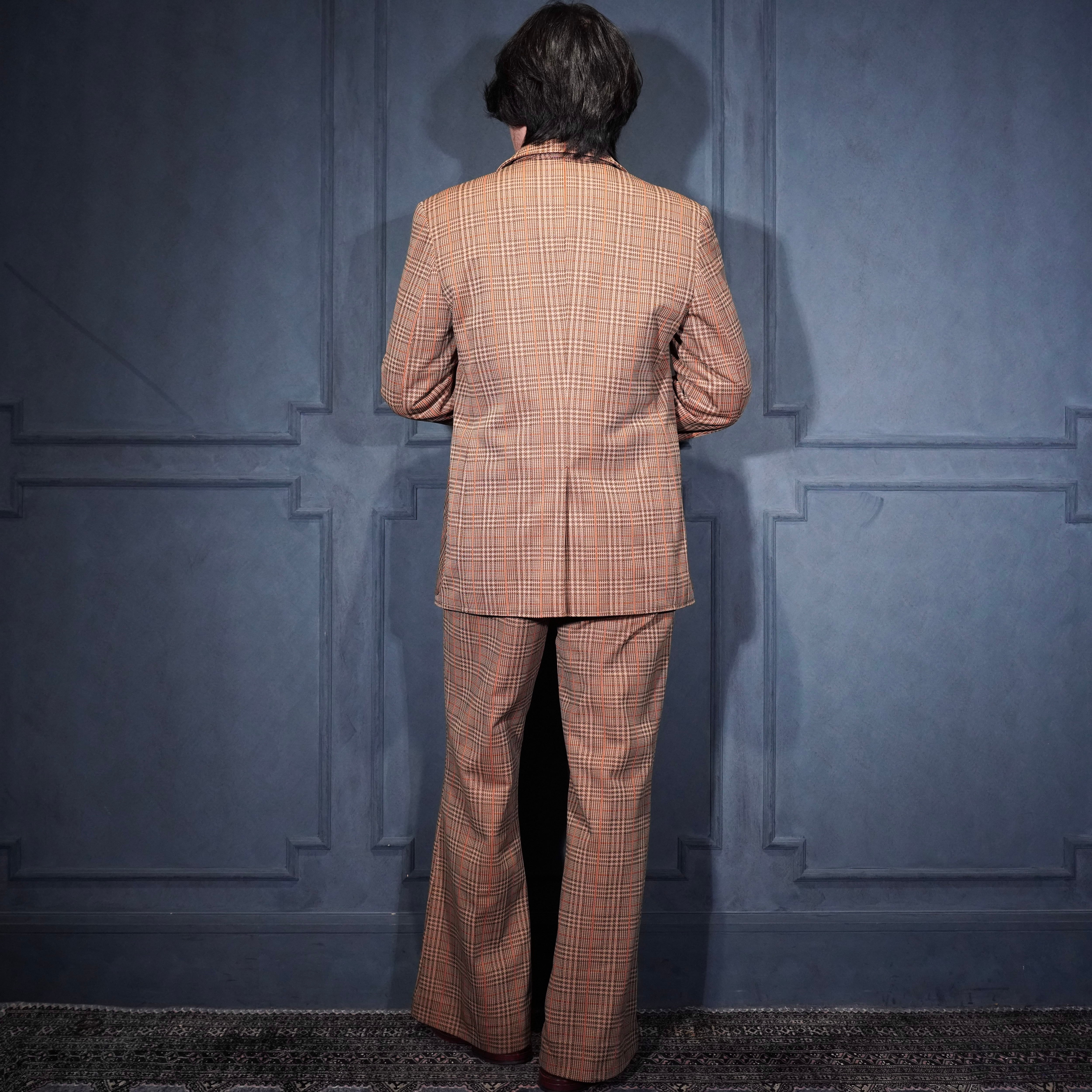 EU VINTAGE CHECK PATTERNED FLARE PANTS SET UP SUIT/ヨーロッパ古着チェック柄フレアパンツセットアップスーツ