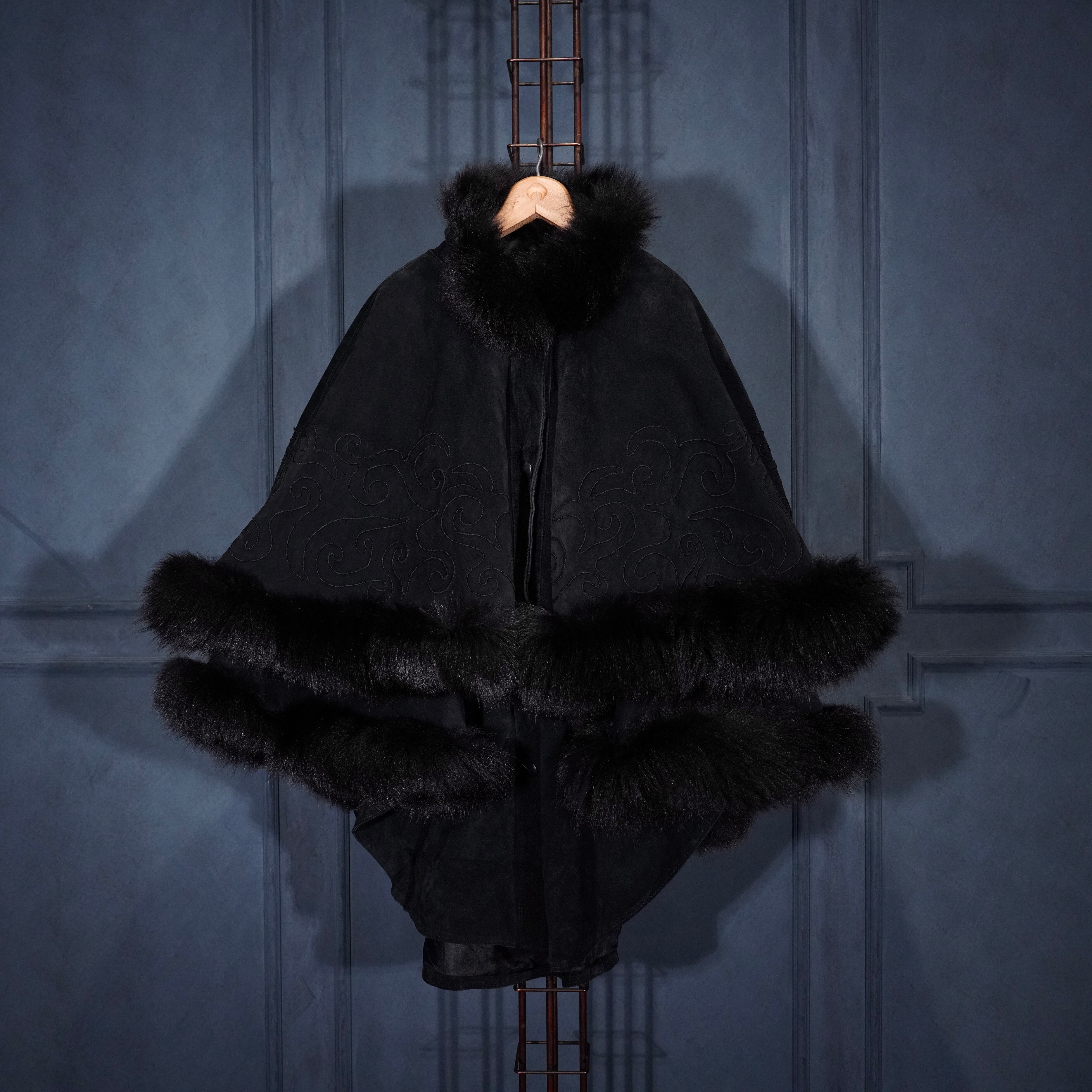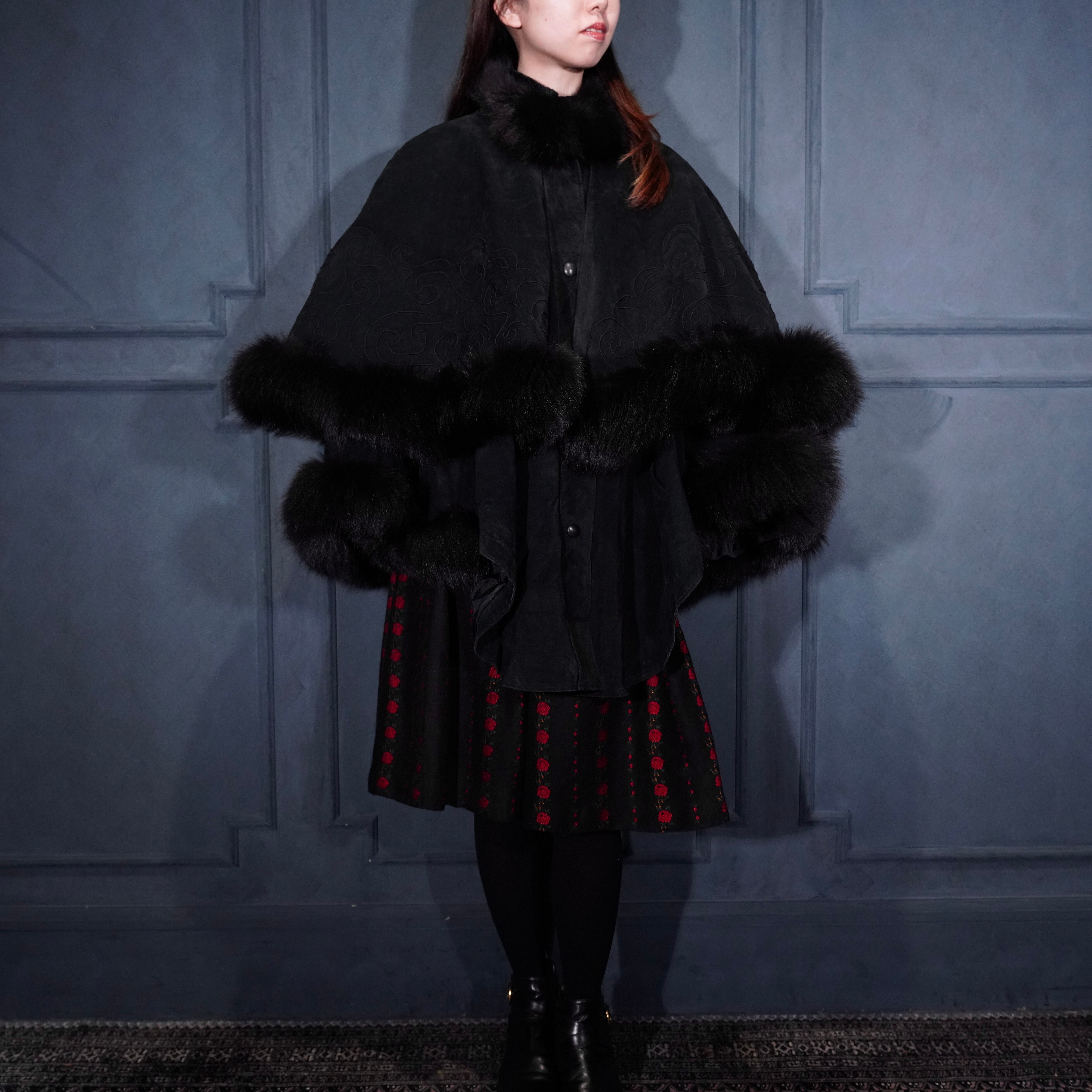 EU VINTAGE CUIR&PEAUX TANNER'S AUTHENTIC FUR DESIGN LEATHER DOUBLE LEATHER CAPE COAT MADE IN FRANCE/ヨーロッパ古着ファーデザインレザーケープコート(ポンチョ)