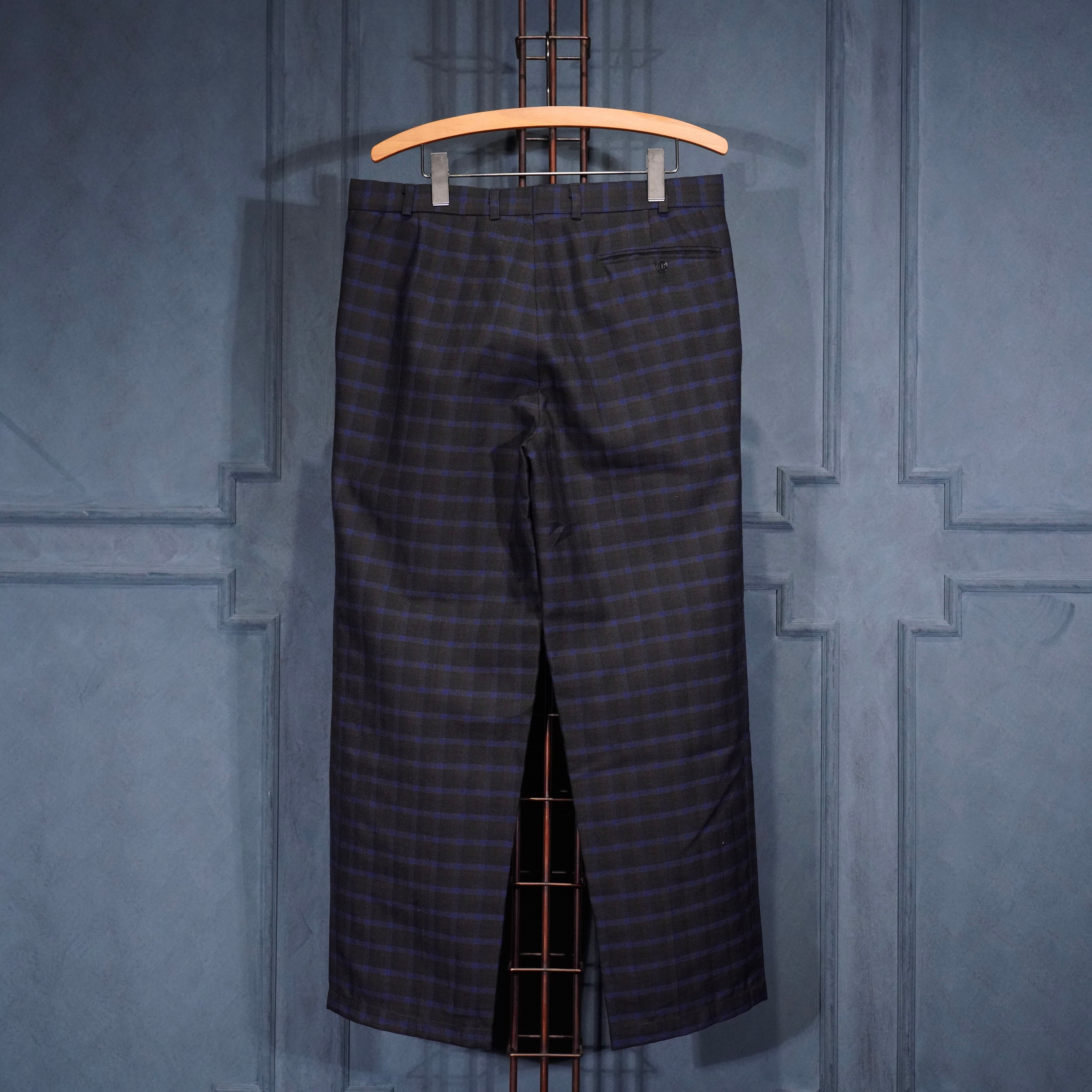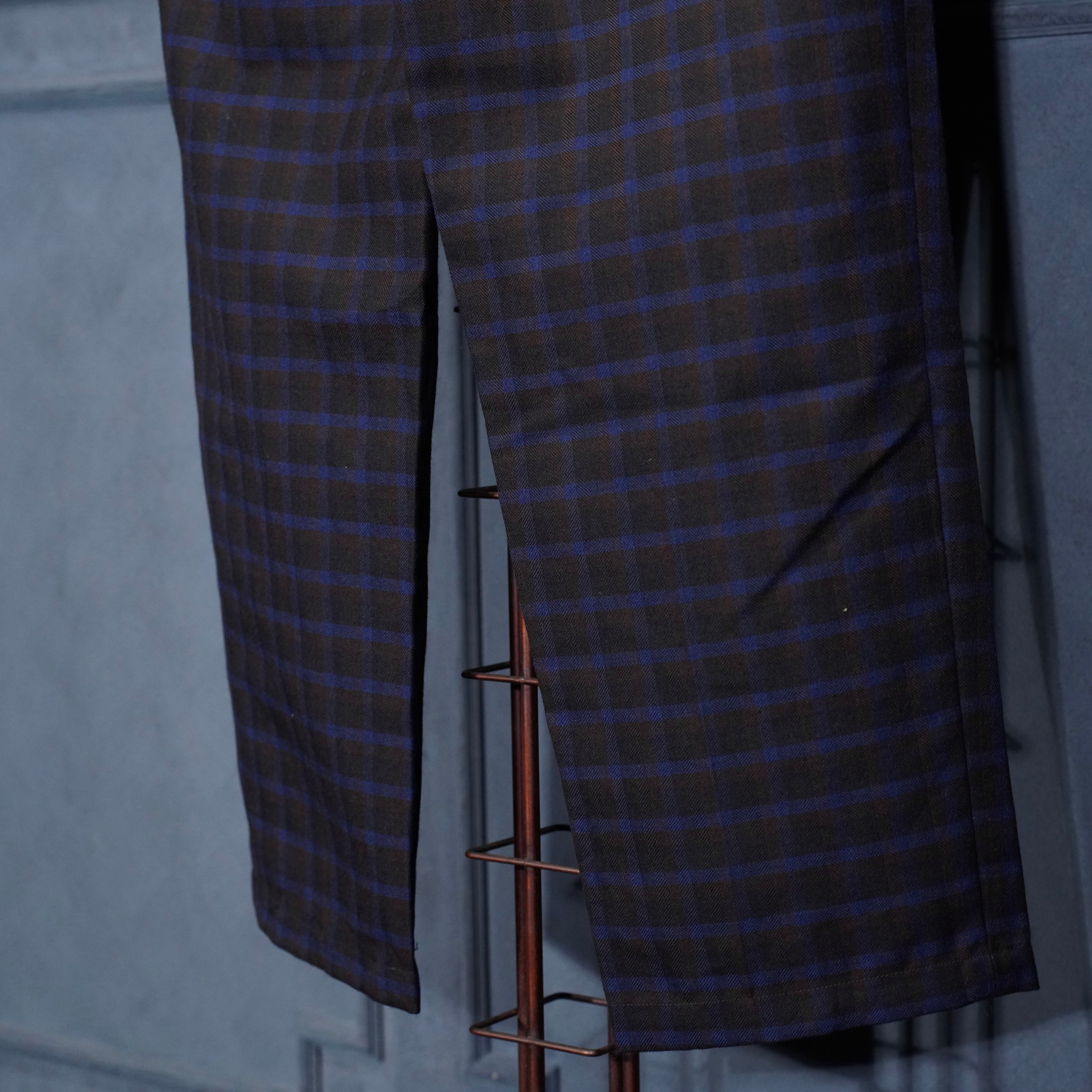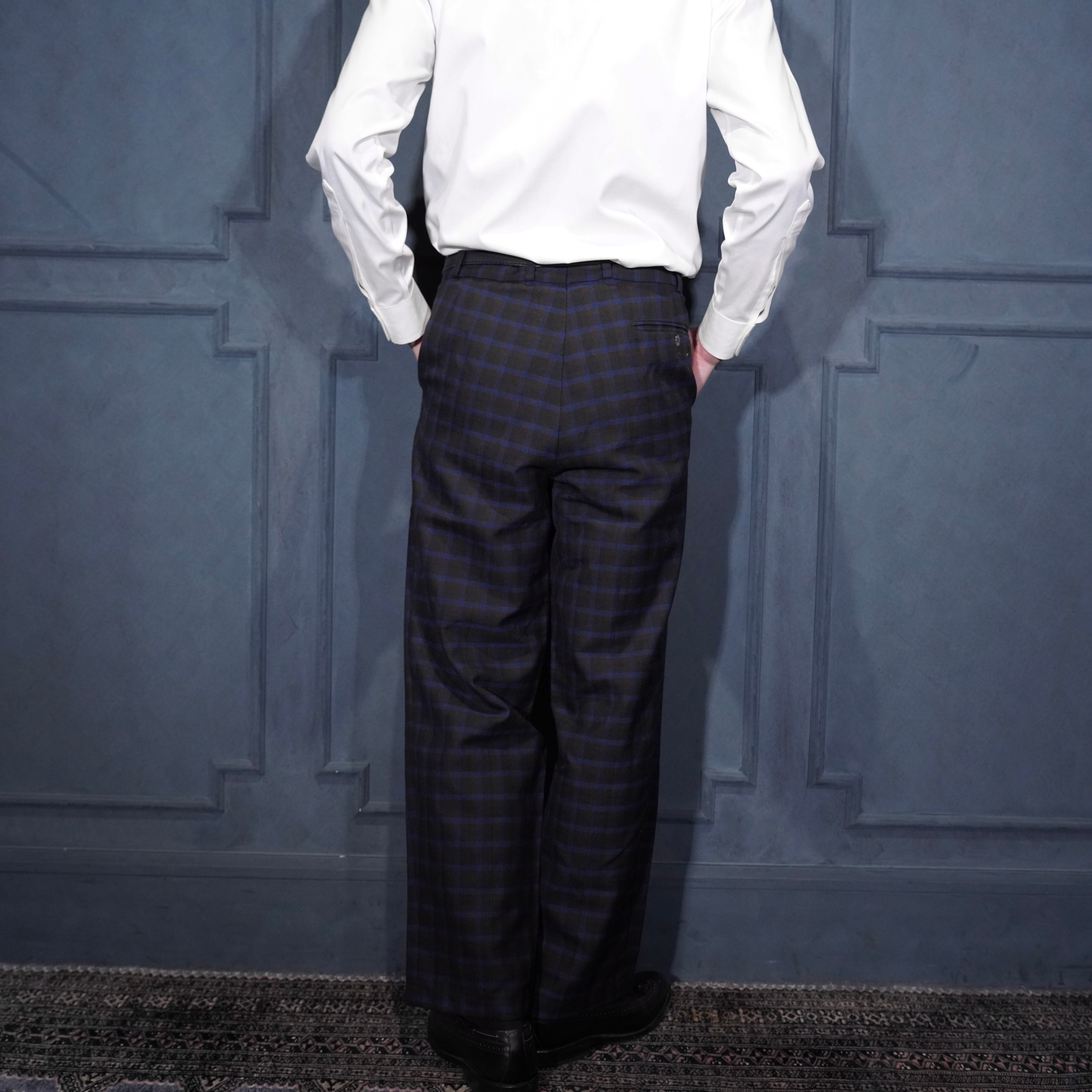 EU VINTAGE CHECK PATTERNED TUCK DESIGN SLACKS PANTS/ヨーロッパ古着チェック柄ダックデザインスラックス