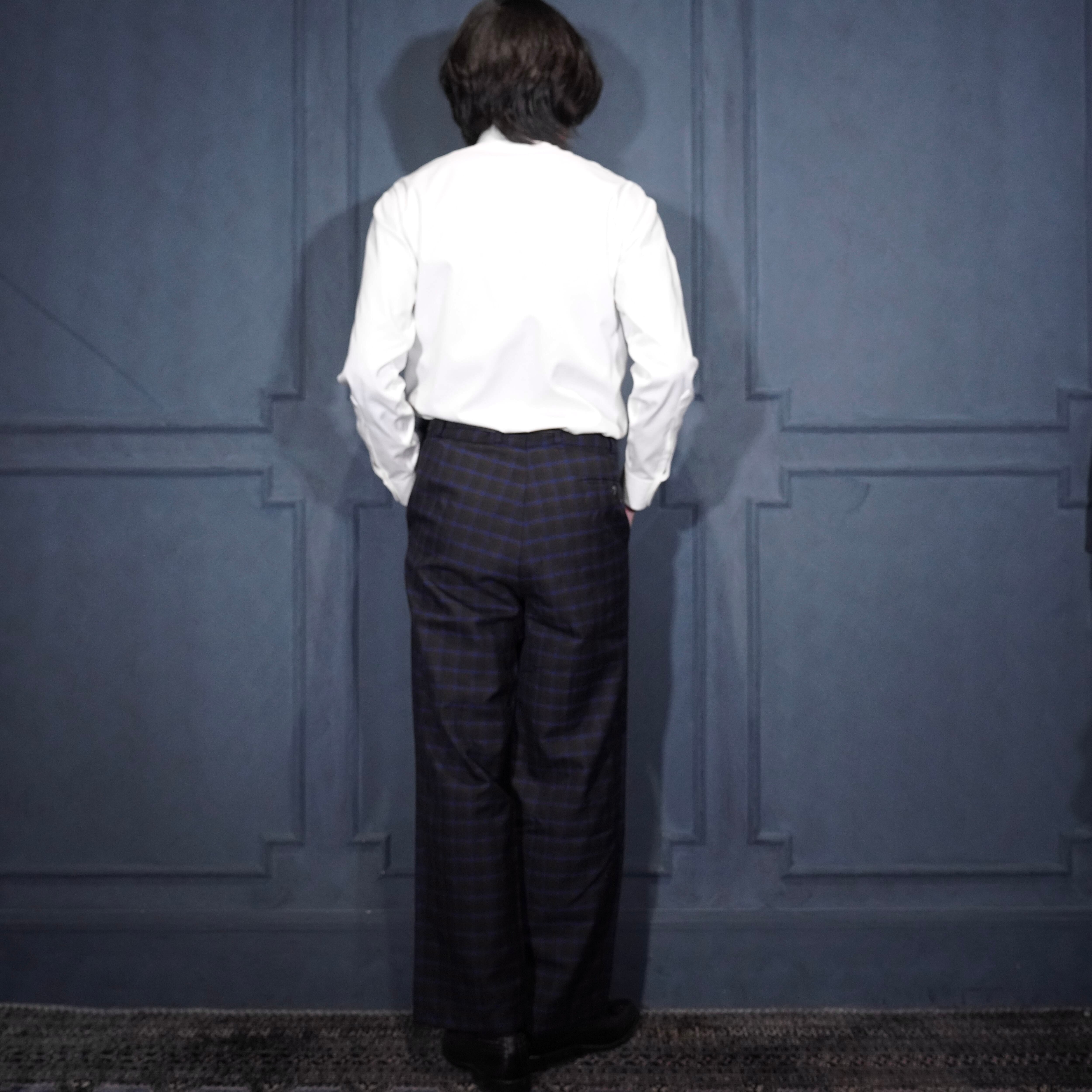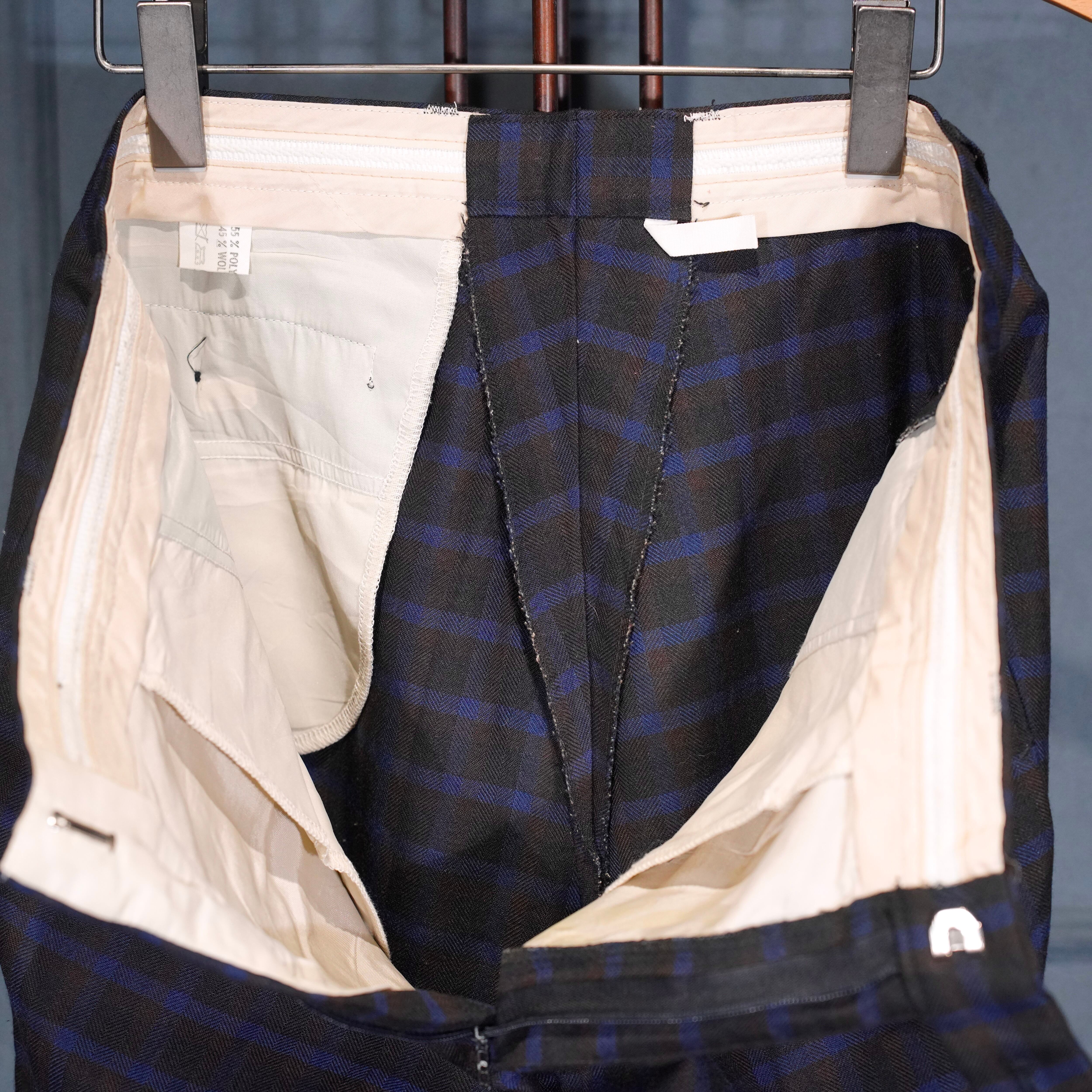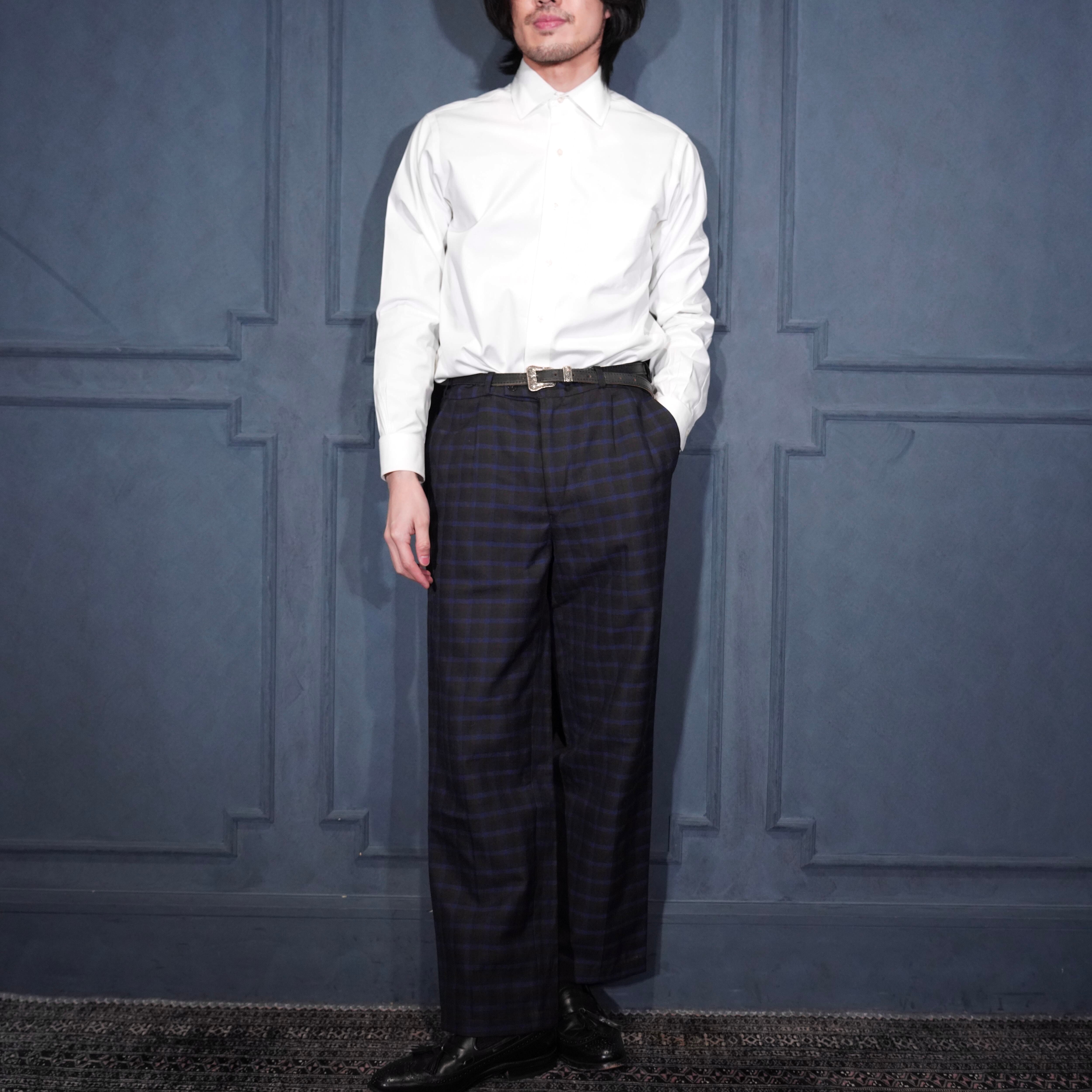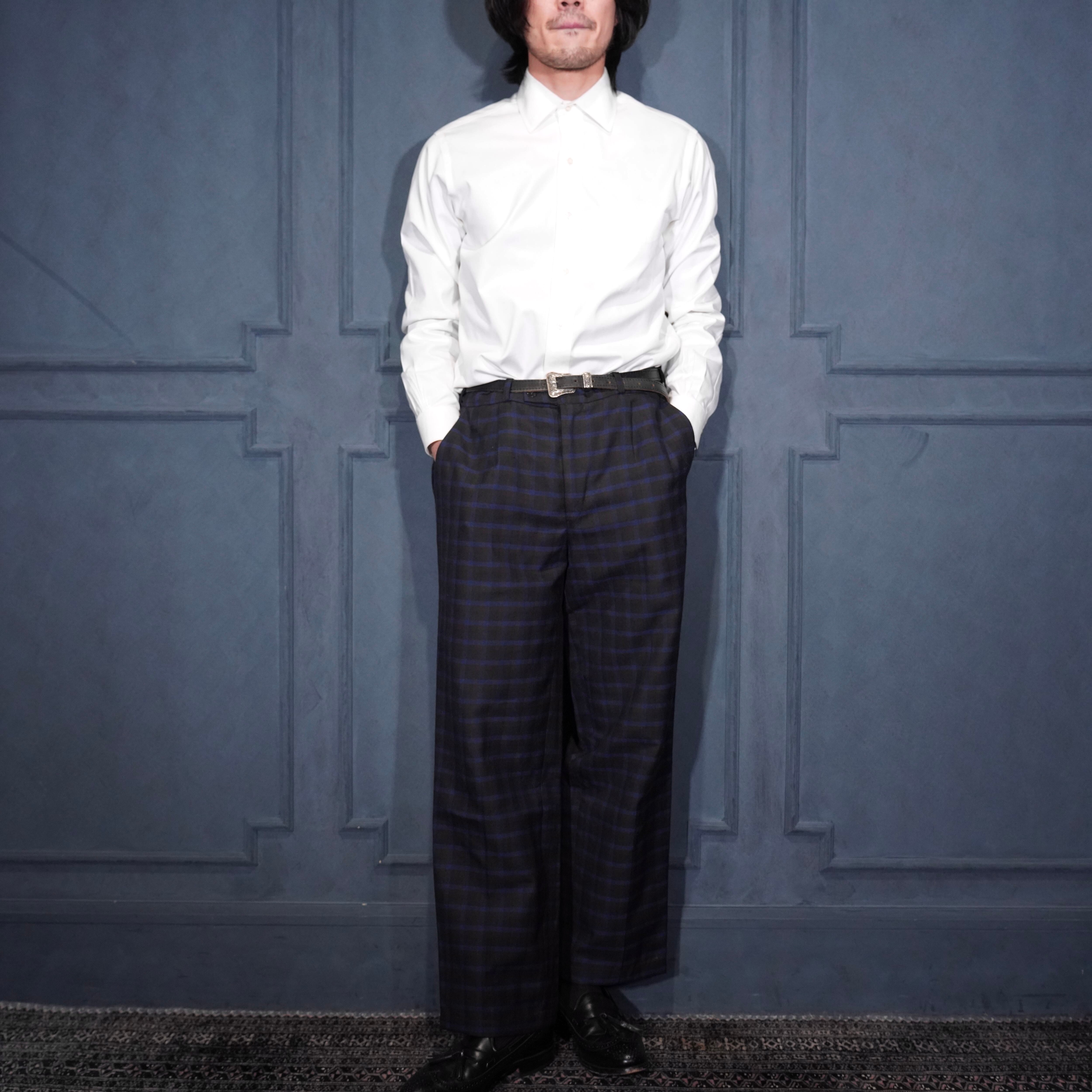 EU VINTAGE CHECK PATTERNED TUCK DESIGN SLACKS PANTS/ヨーロッパ古着チェック柄ダックデザインスラックス