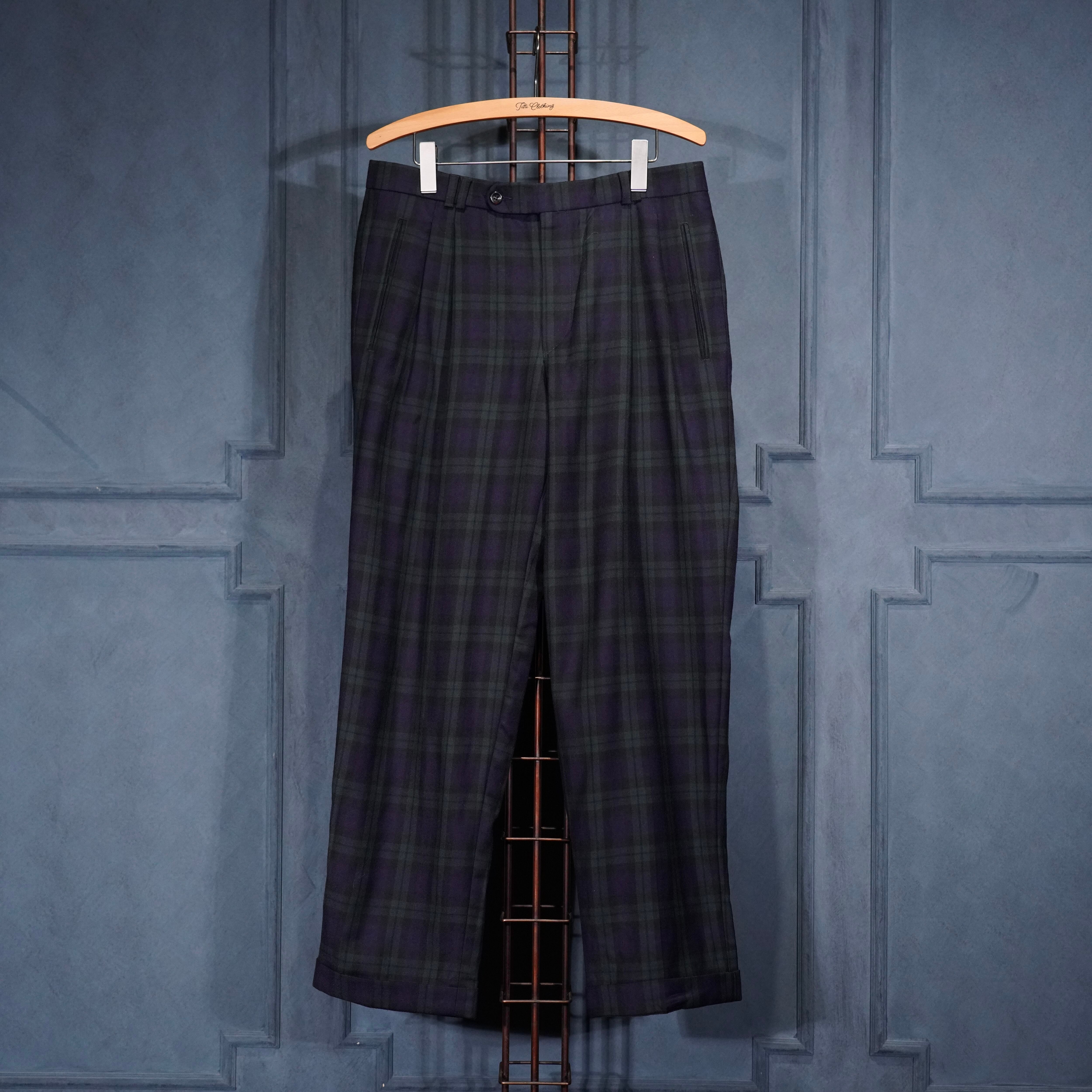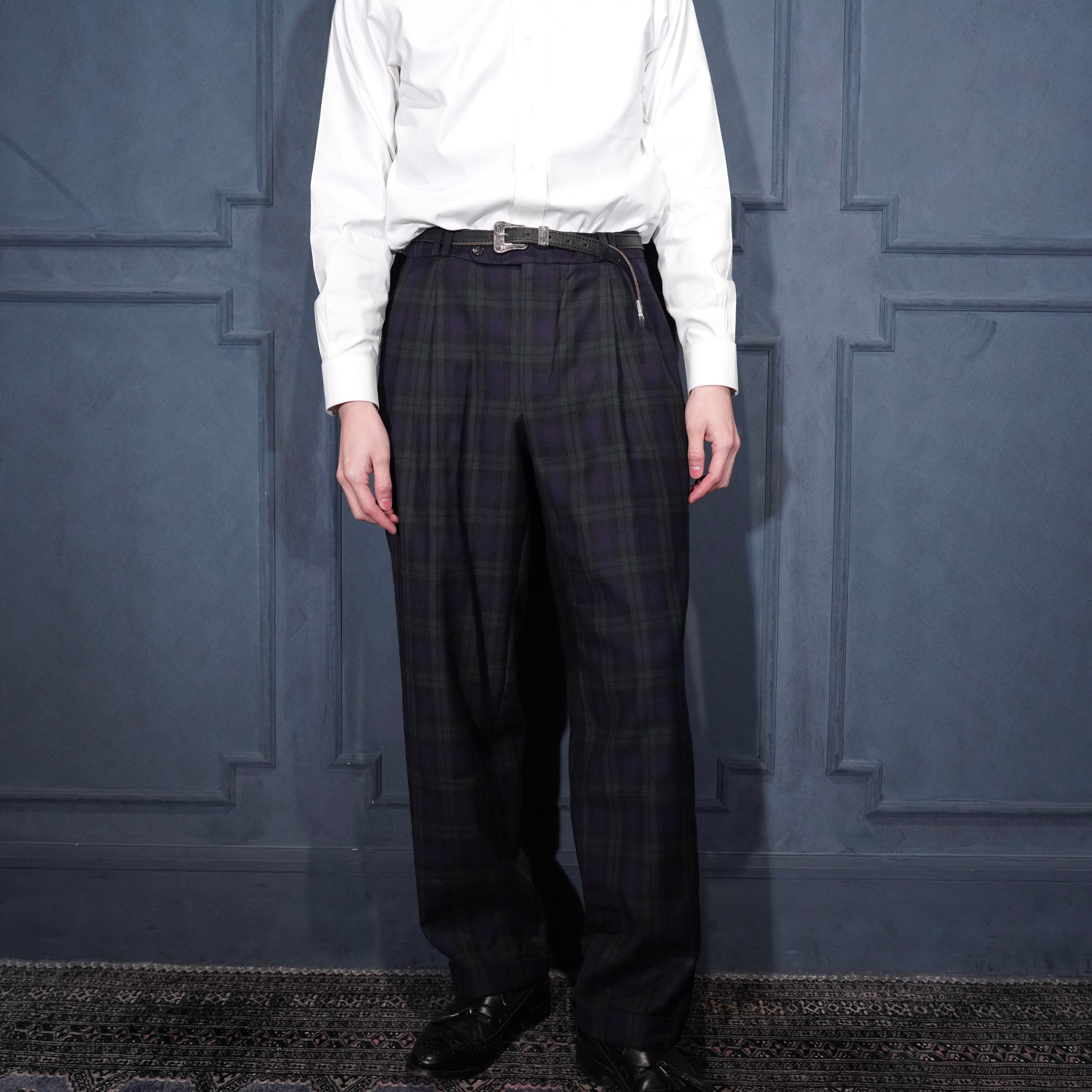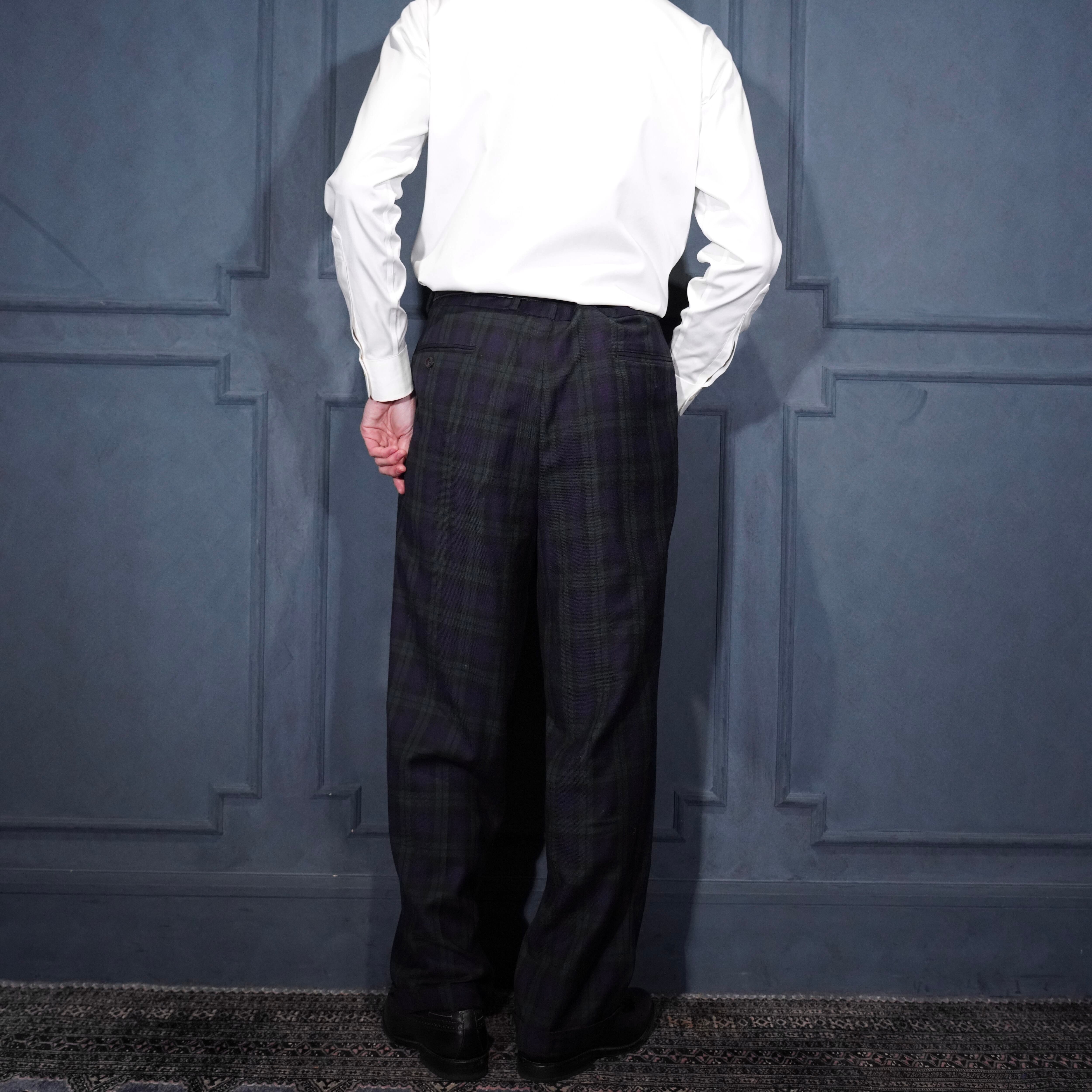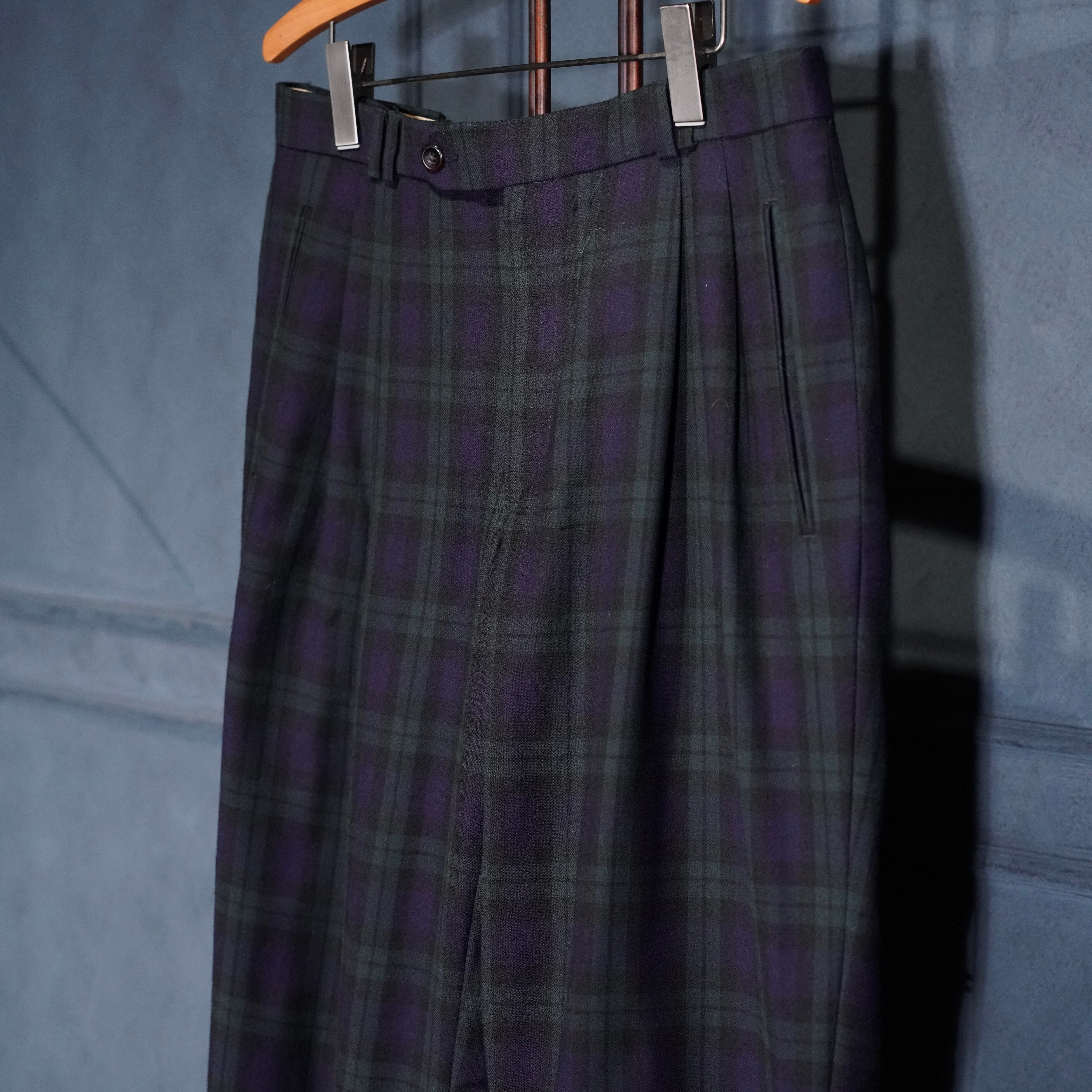 EU VINTAGE incognito CHECK PATTERNED TUCK DESIGN SLACKS PANTS/ヨーロッパ古着チェック柄タックデザインウールスラックスパンツ