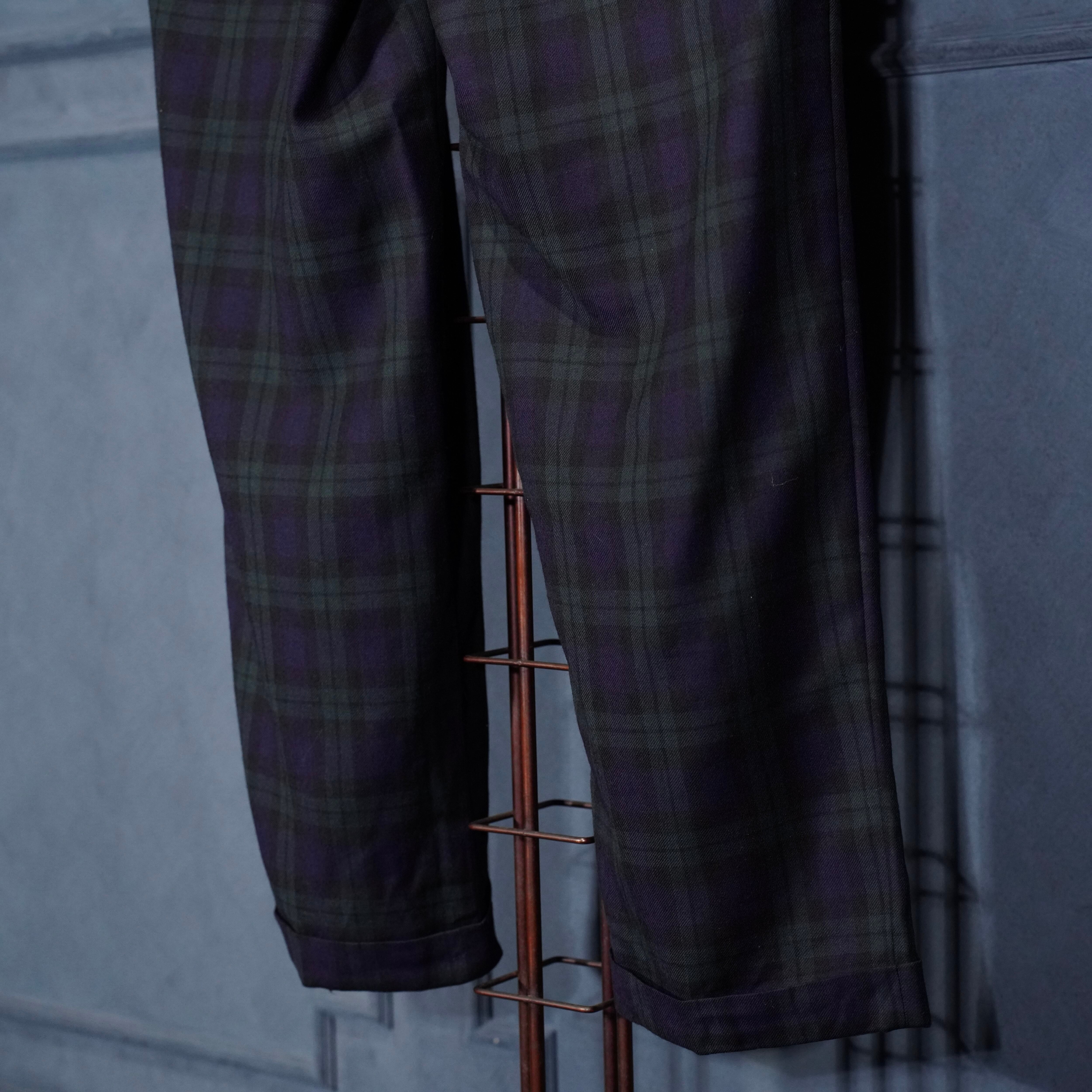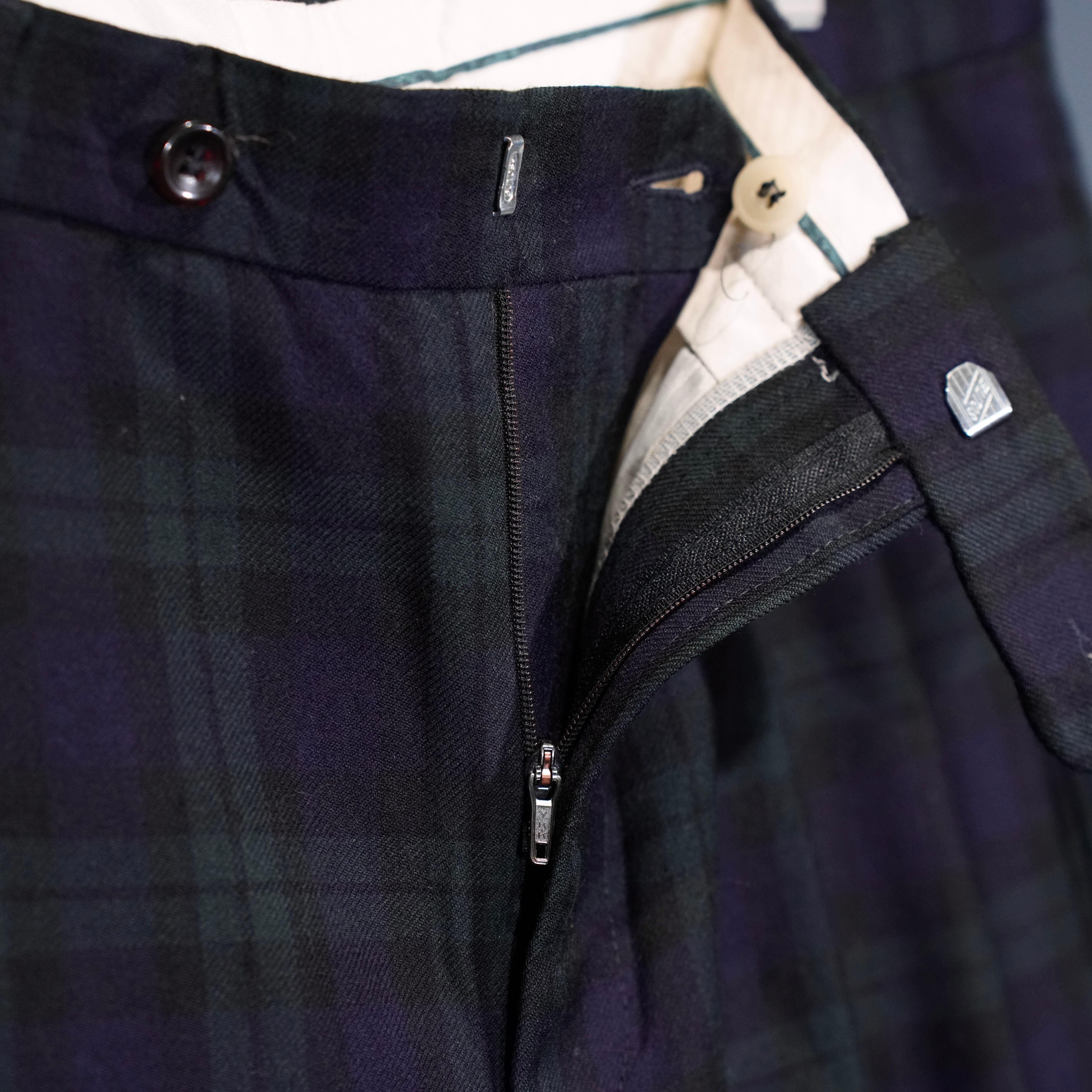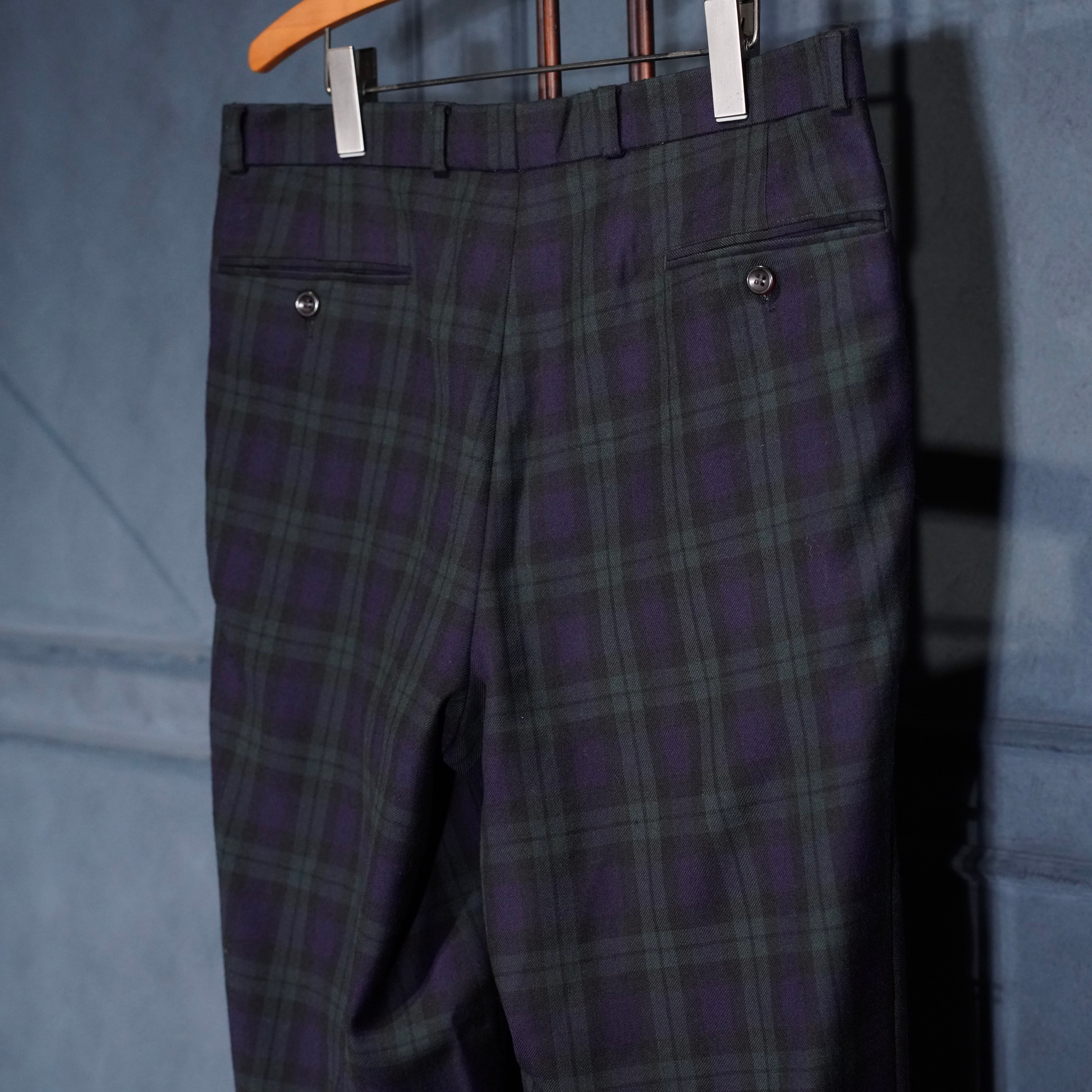 EU VINTAGE incognito CHECK PATTERNED TUCK DESIGN SLACKS PANTS/ヨーロッパ古着チェック柄タックデザインウールスラックスパンツ