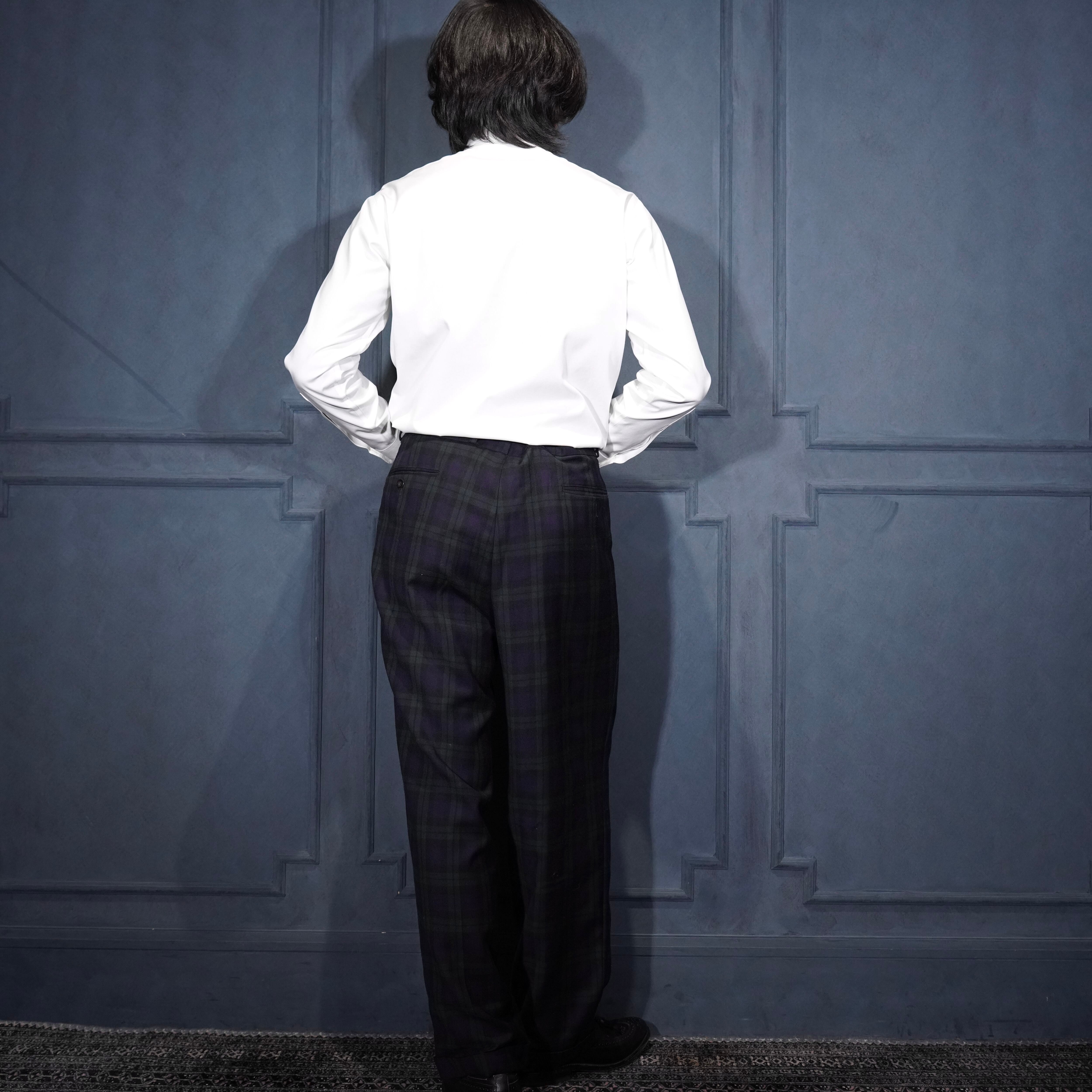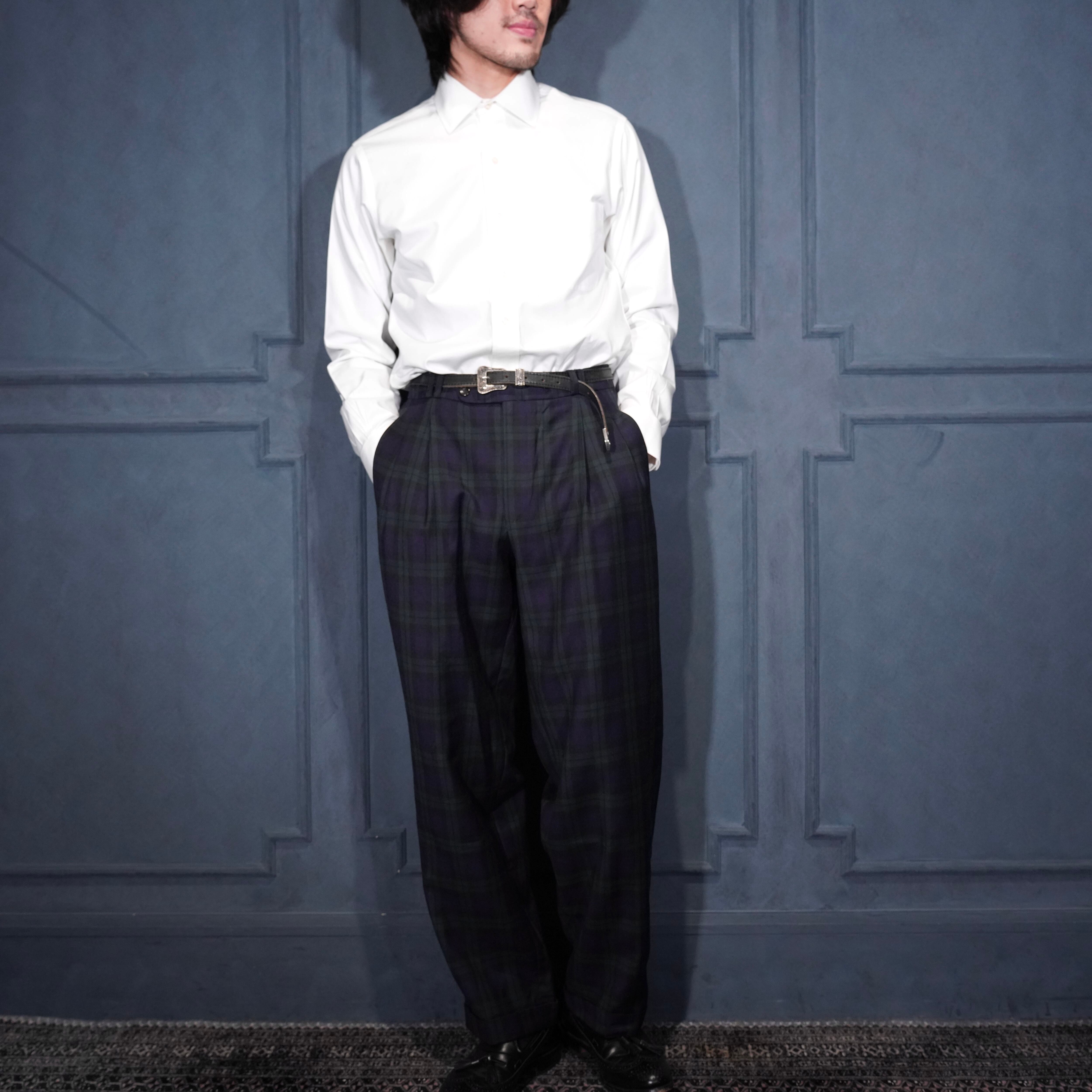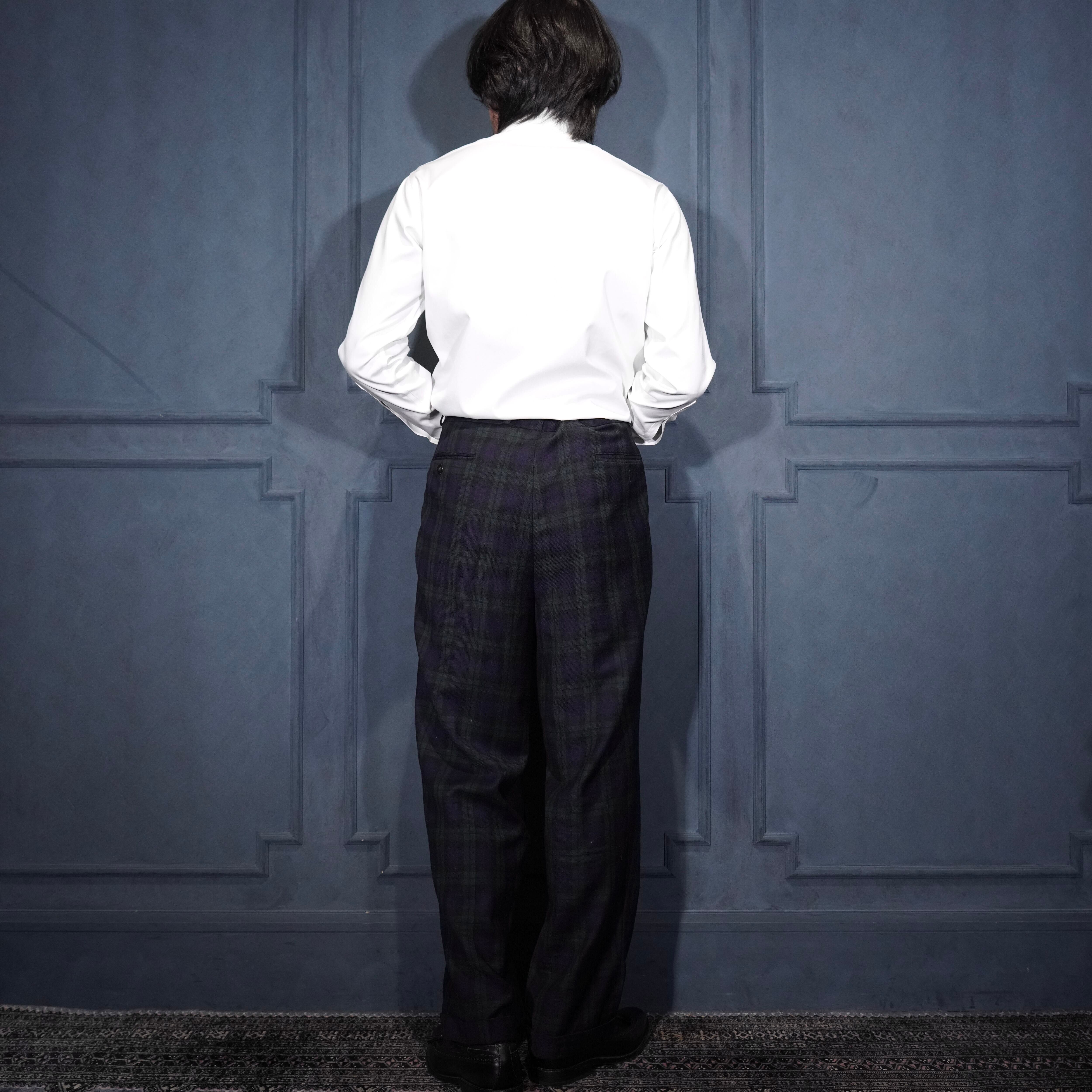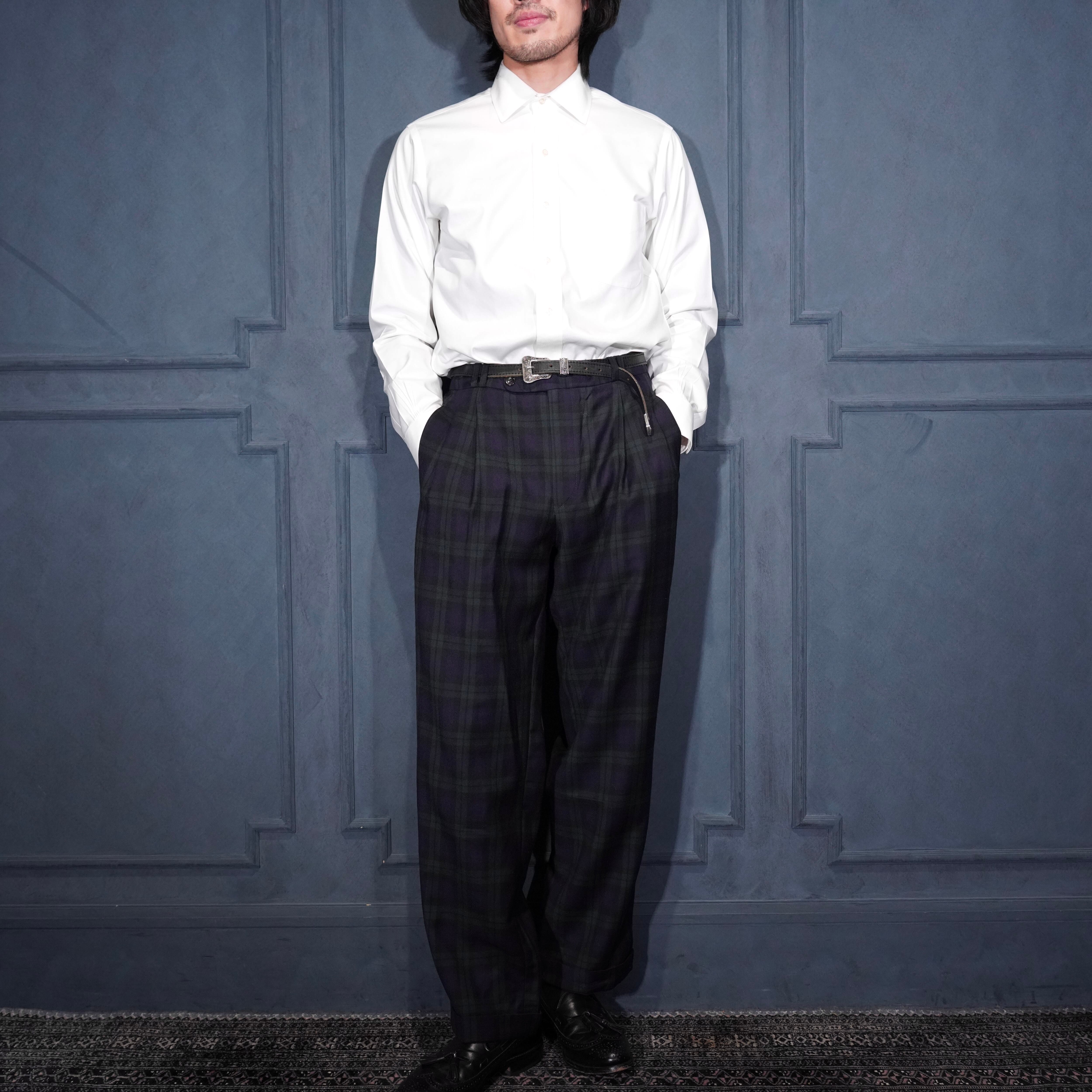 EU VINTAGE incognito CHECK PATTERNED TUCK DESIGN SLACKS PANTS/ヨーロッパ古着チェック柄タックデザインウールスラックスパンツ