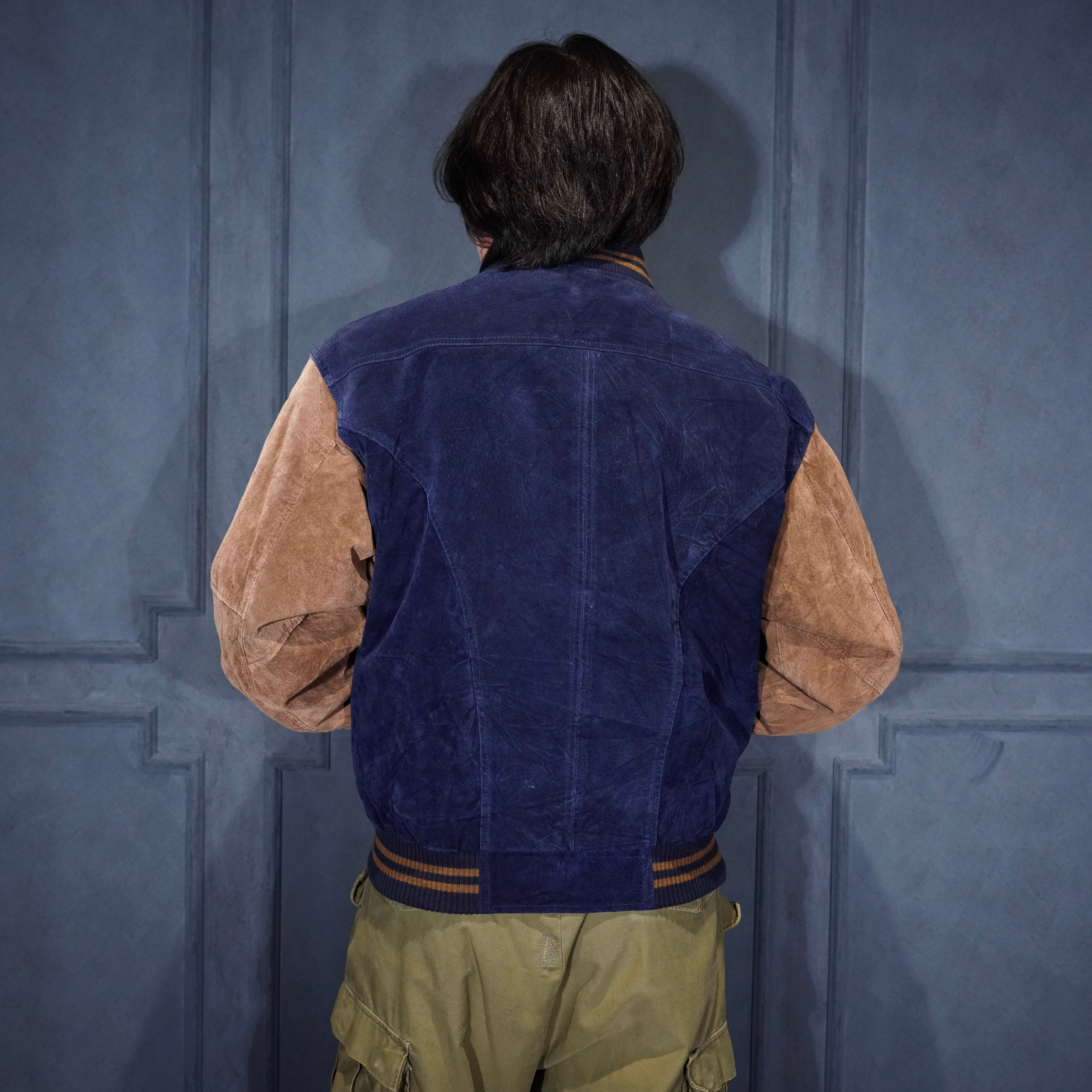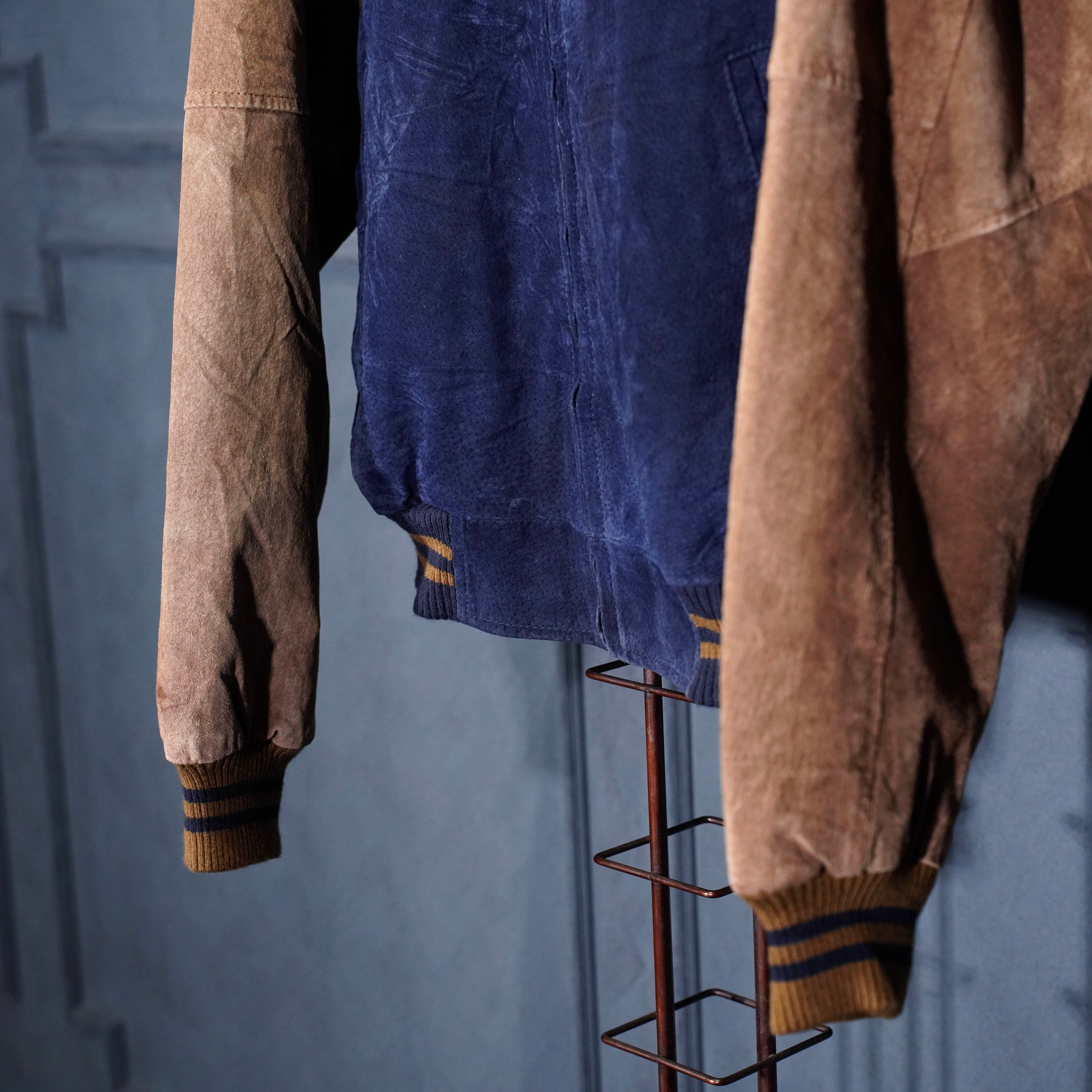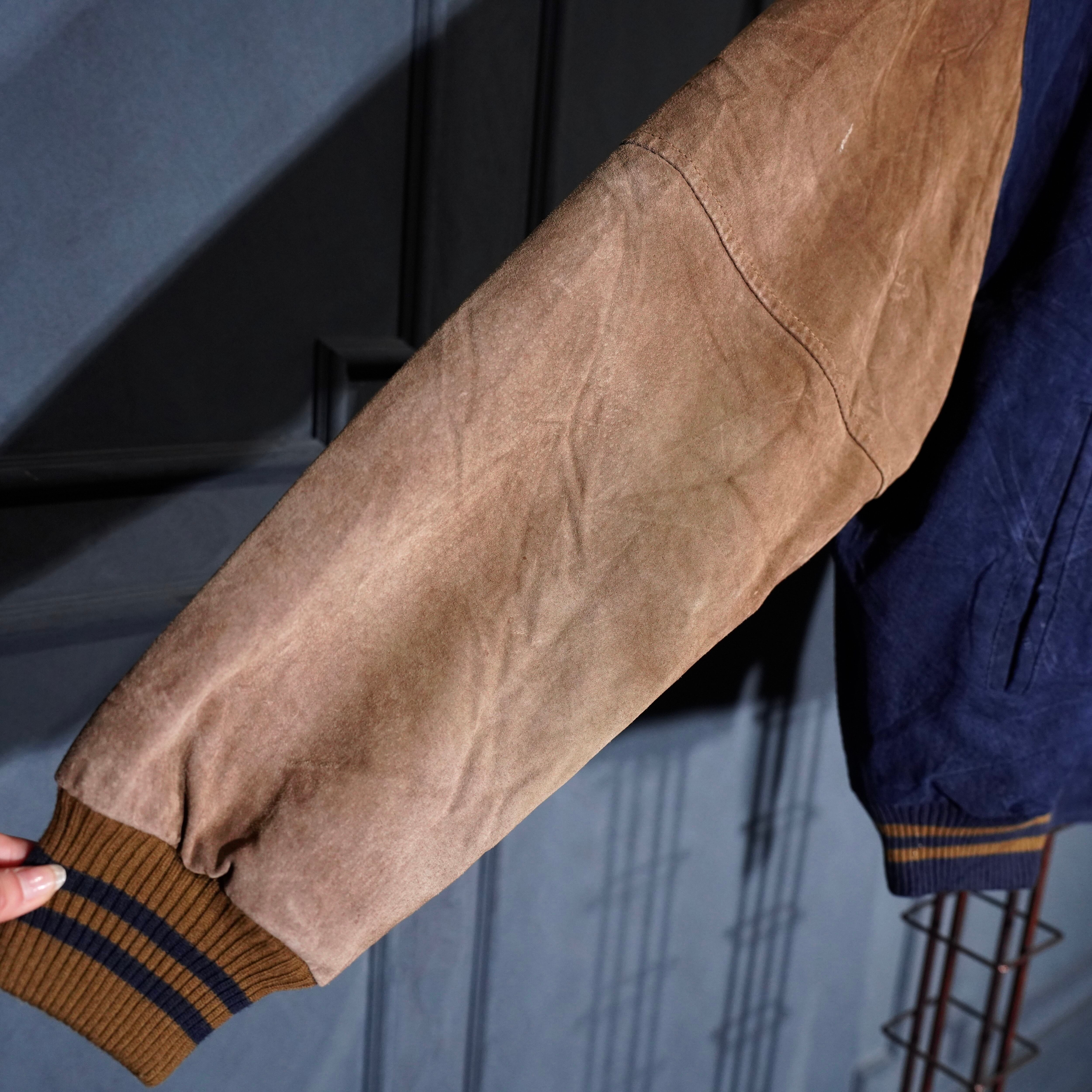 USA VINTAGE PORT AUTHORITY 2 TONE DESIGN ZIP UP LEATHER BLOUSON/アメリカ古着2トーンデザインジップアップレザーブルゾン
