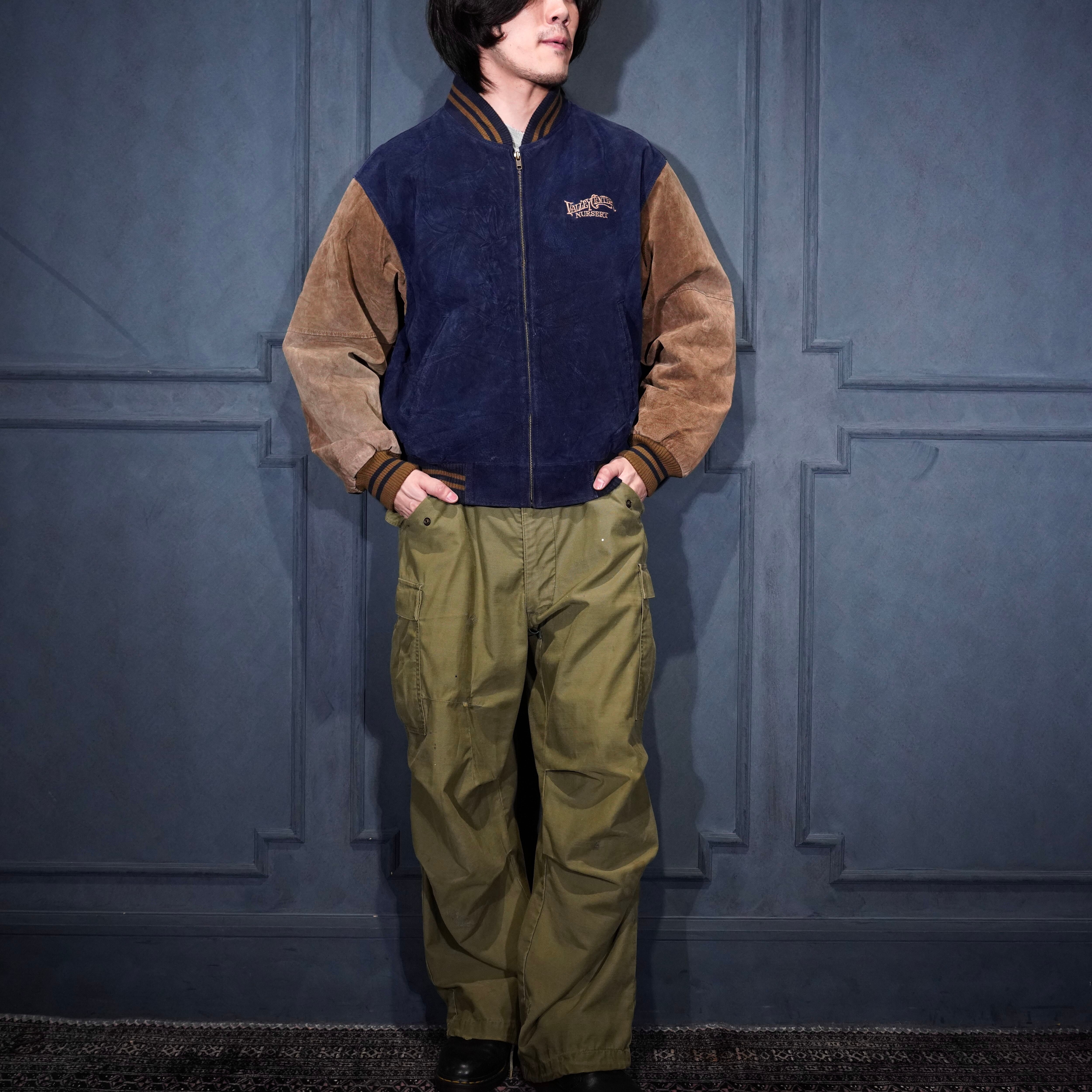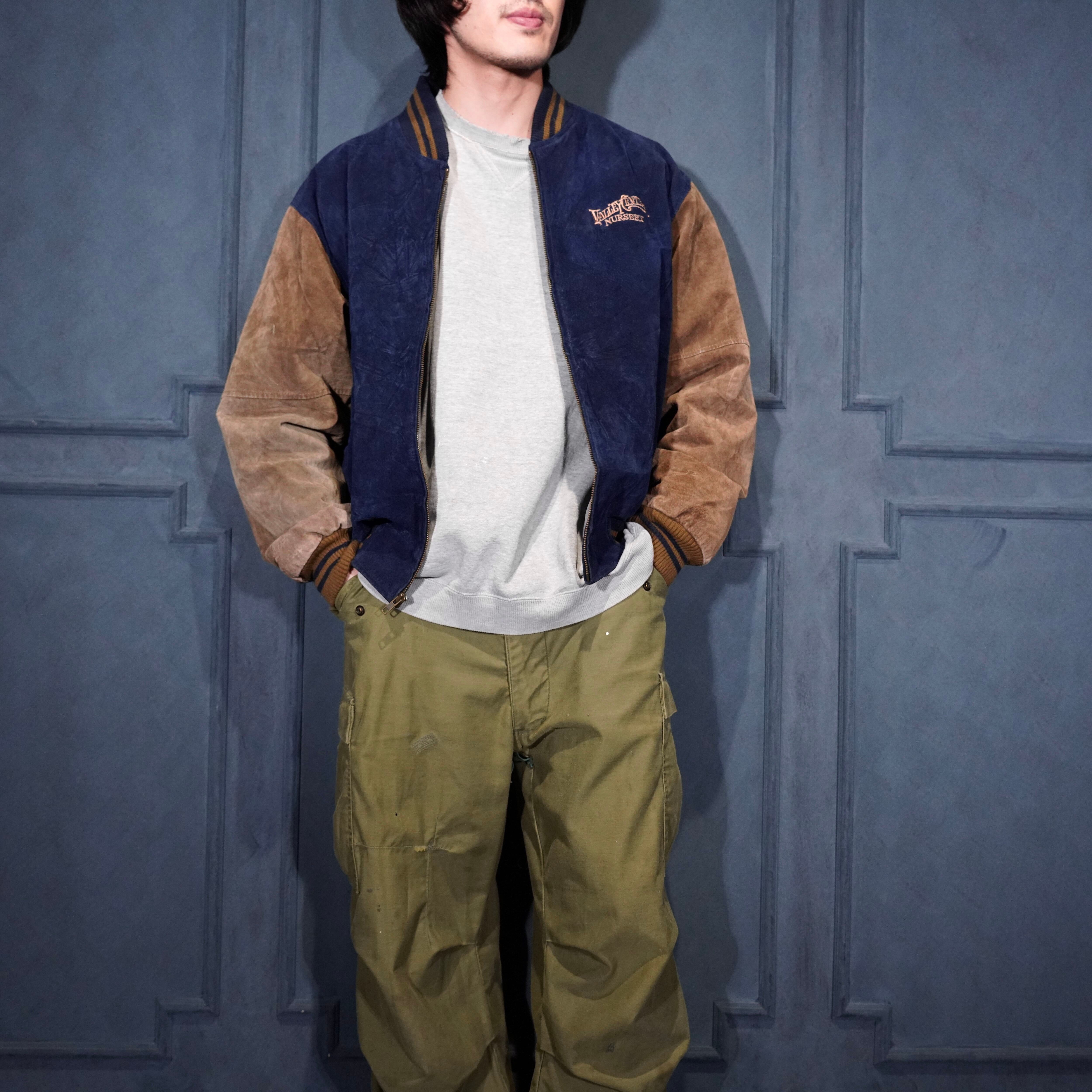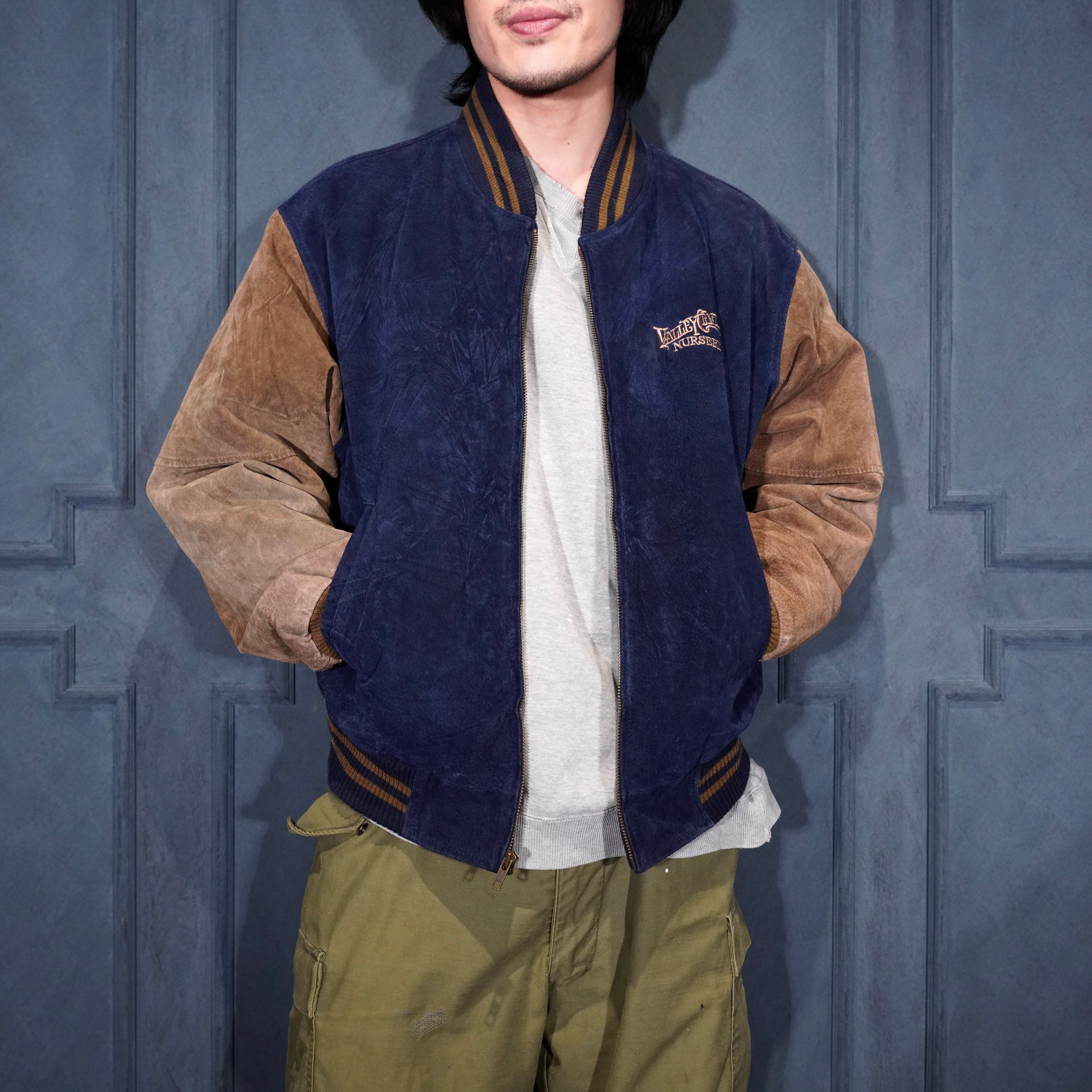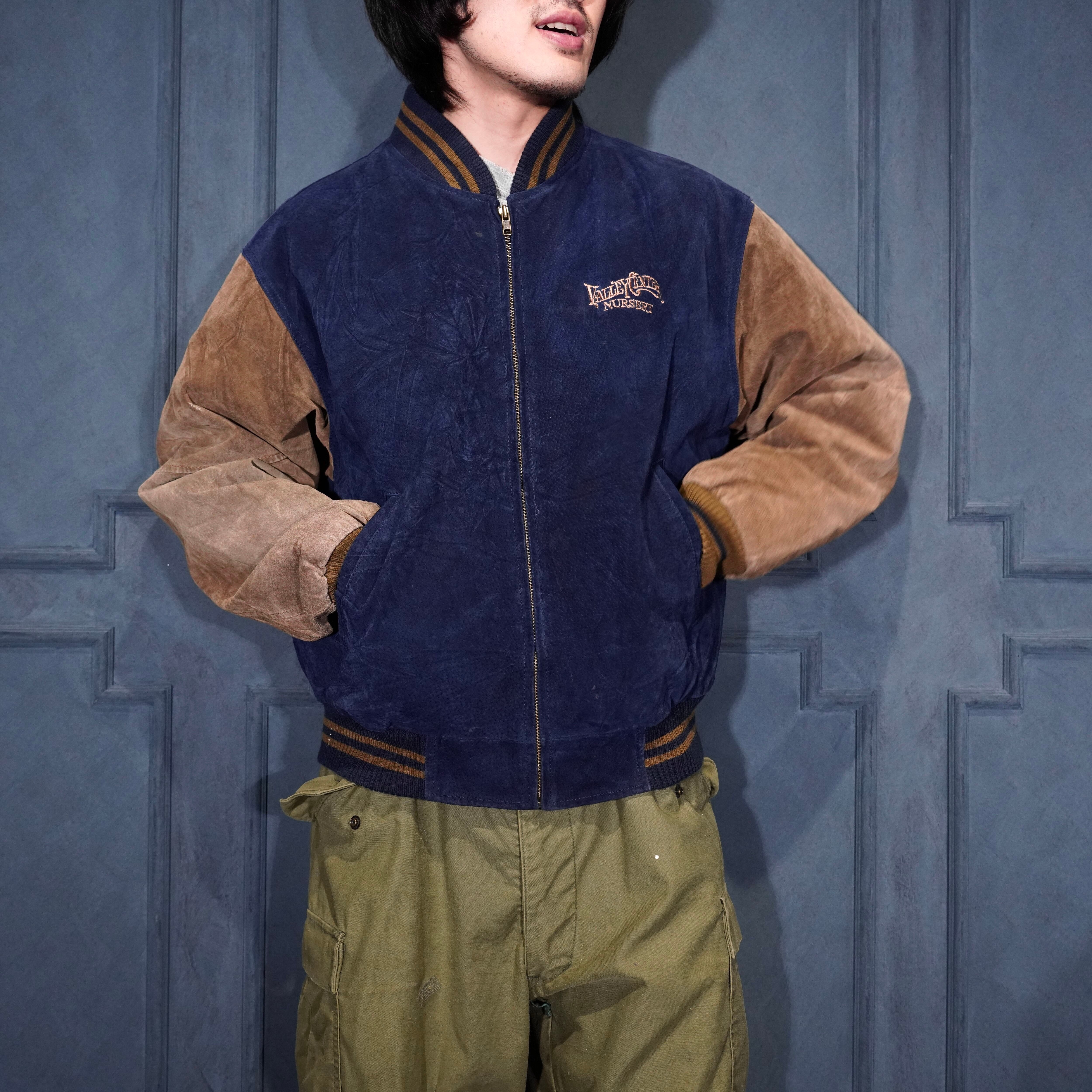 USA VINTAGE PORT AUTHORITY 2 TONE DESIGN ZIP UP LEATHER BLOUSON/アメリカ古着2トーンデザインジップアップレザーブルゾン