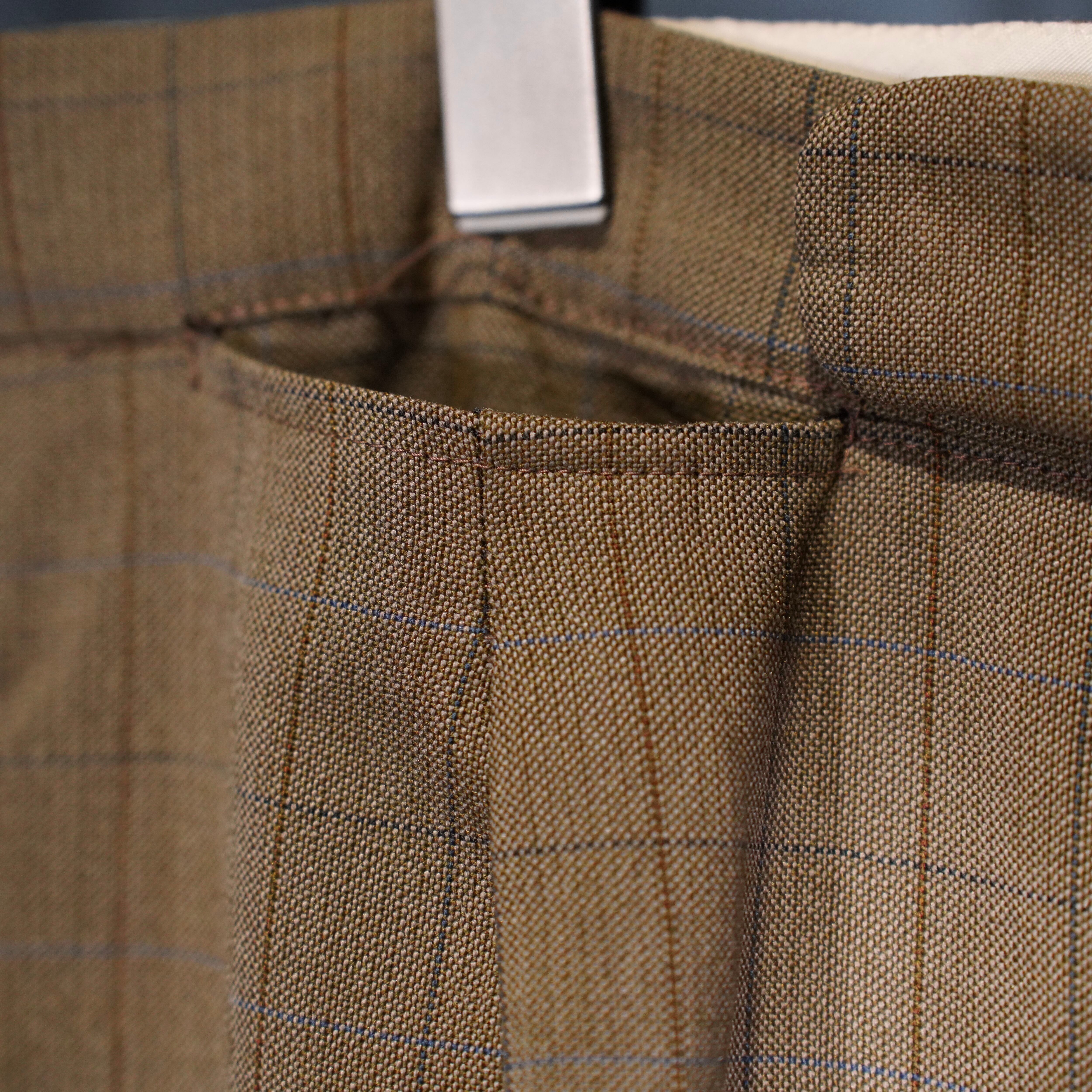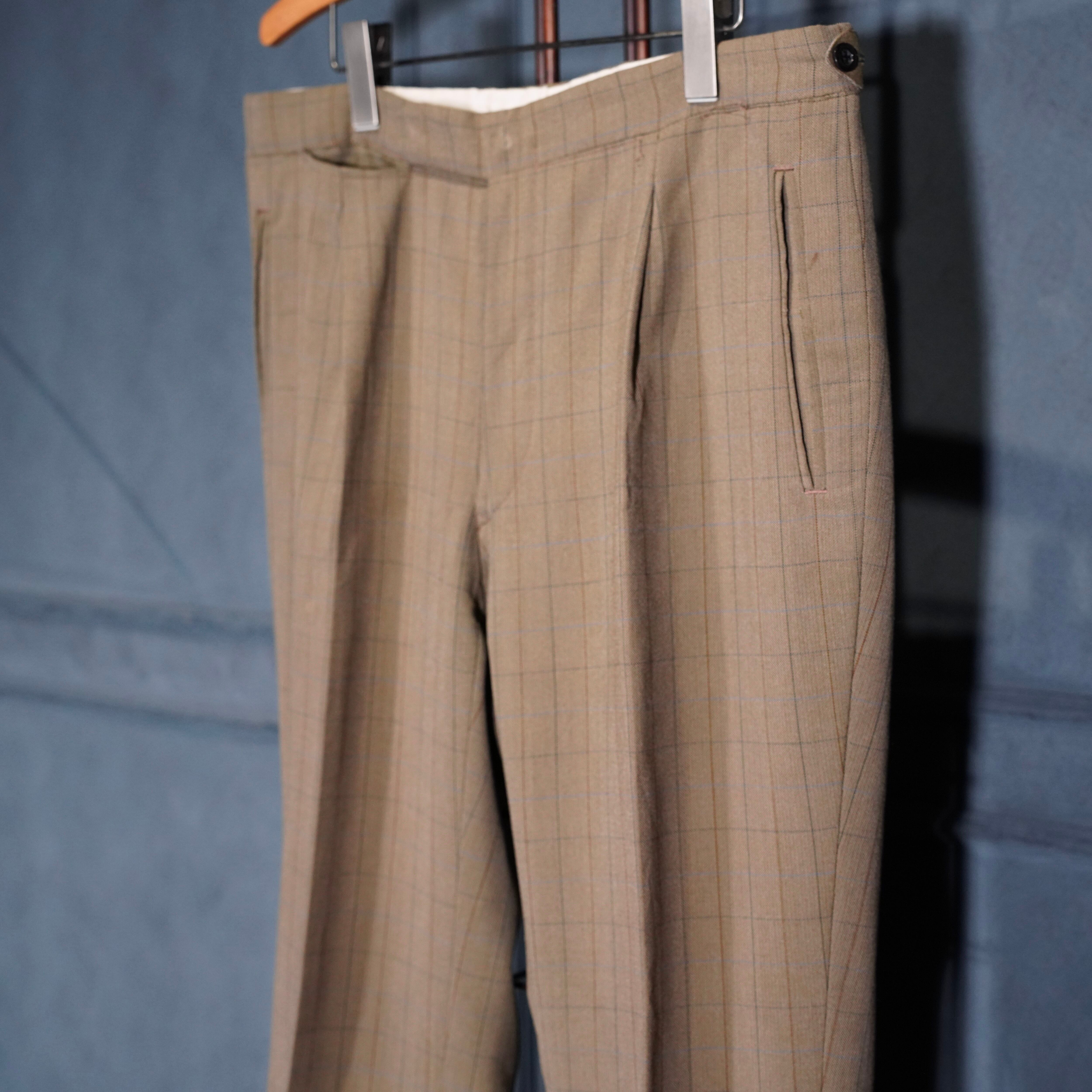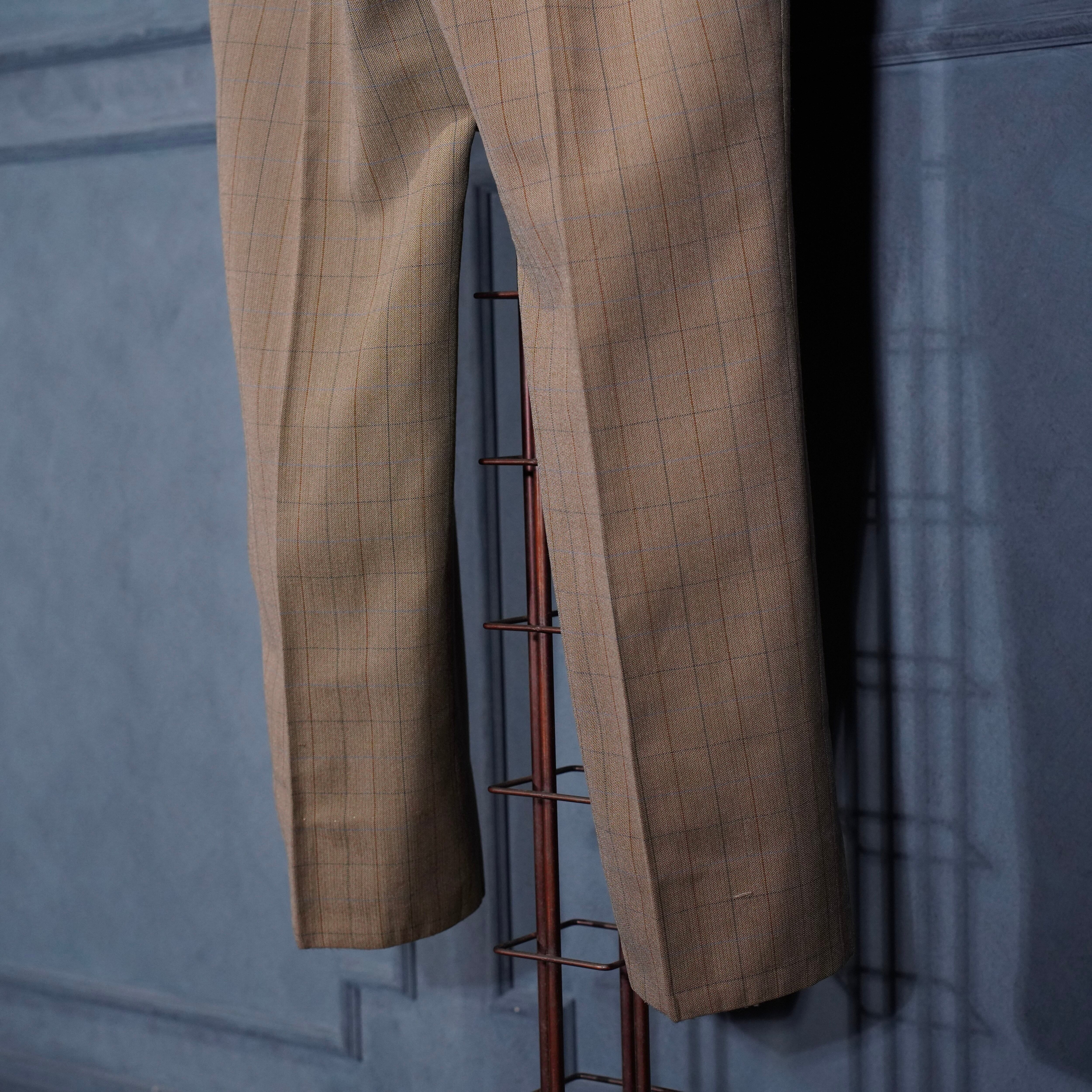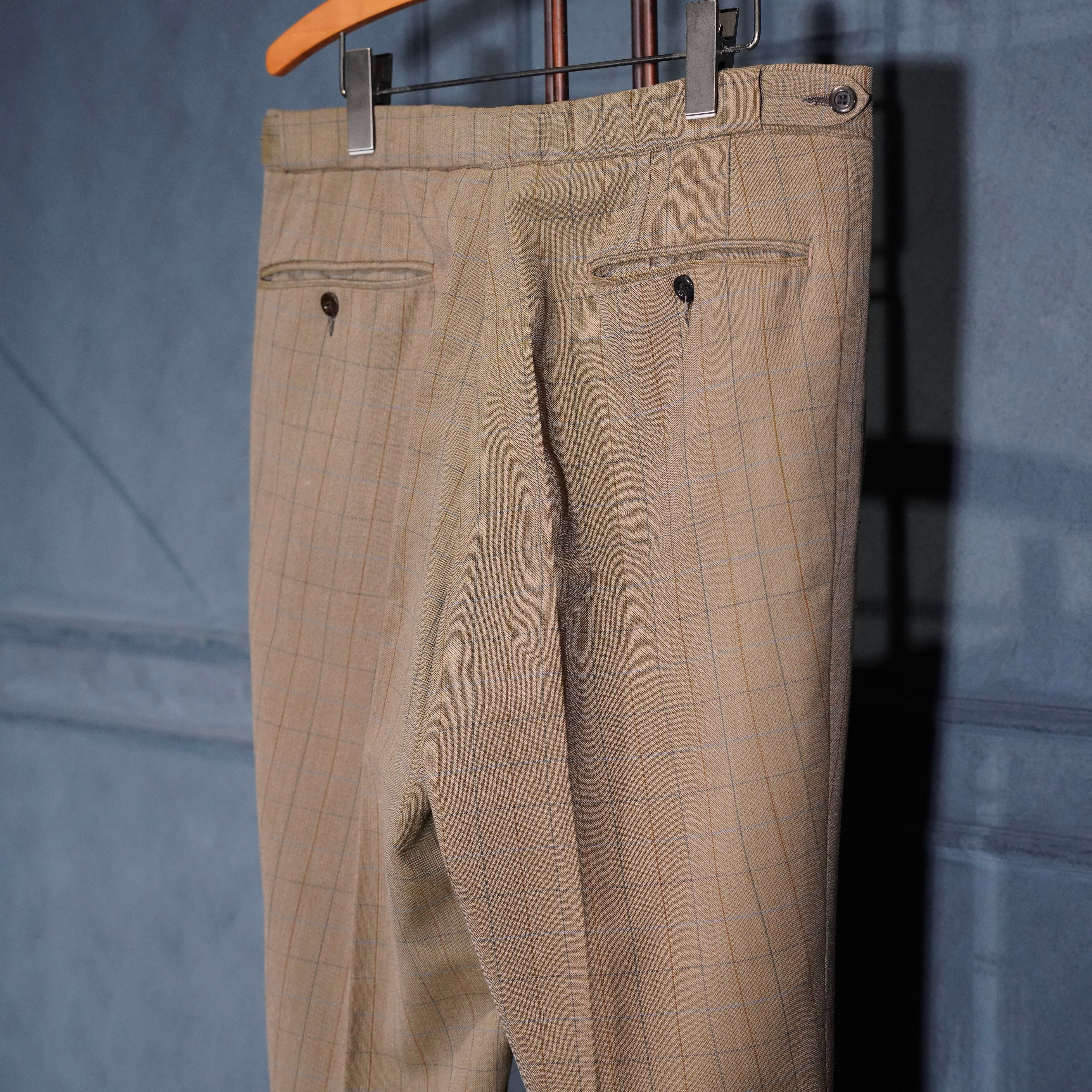 EU VINTAGE CHECK PATTERNED TUCK DESIGN SLACKS PANTS/ヨーロッパ古着チェック柄タックデザインスラックスパンツ