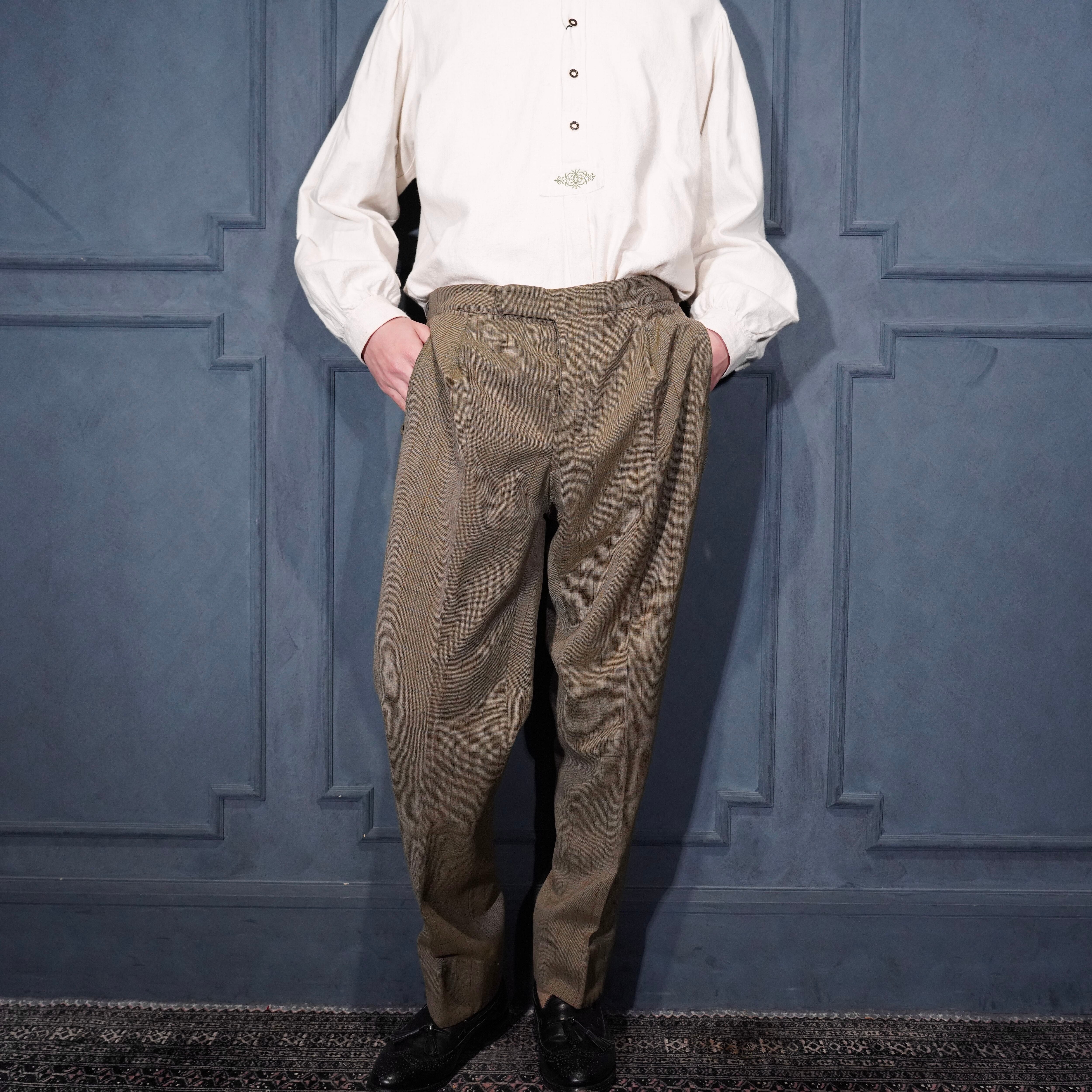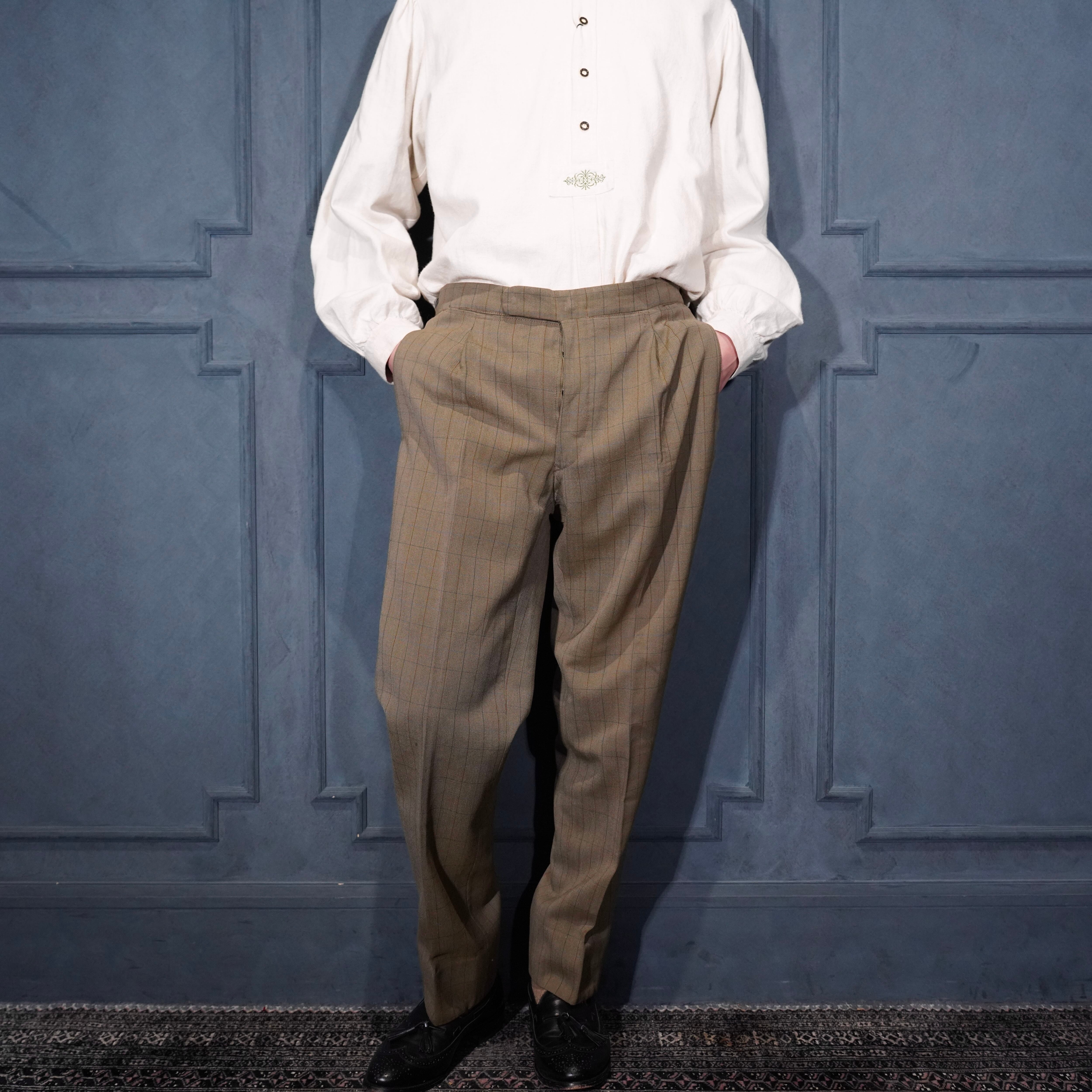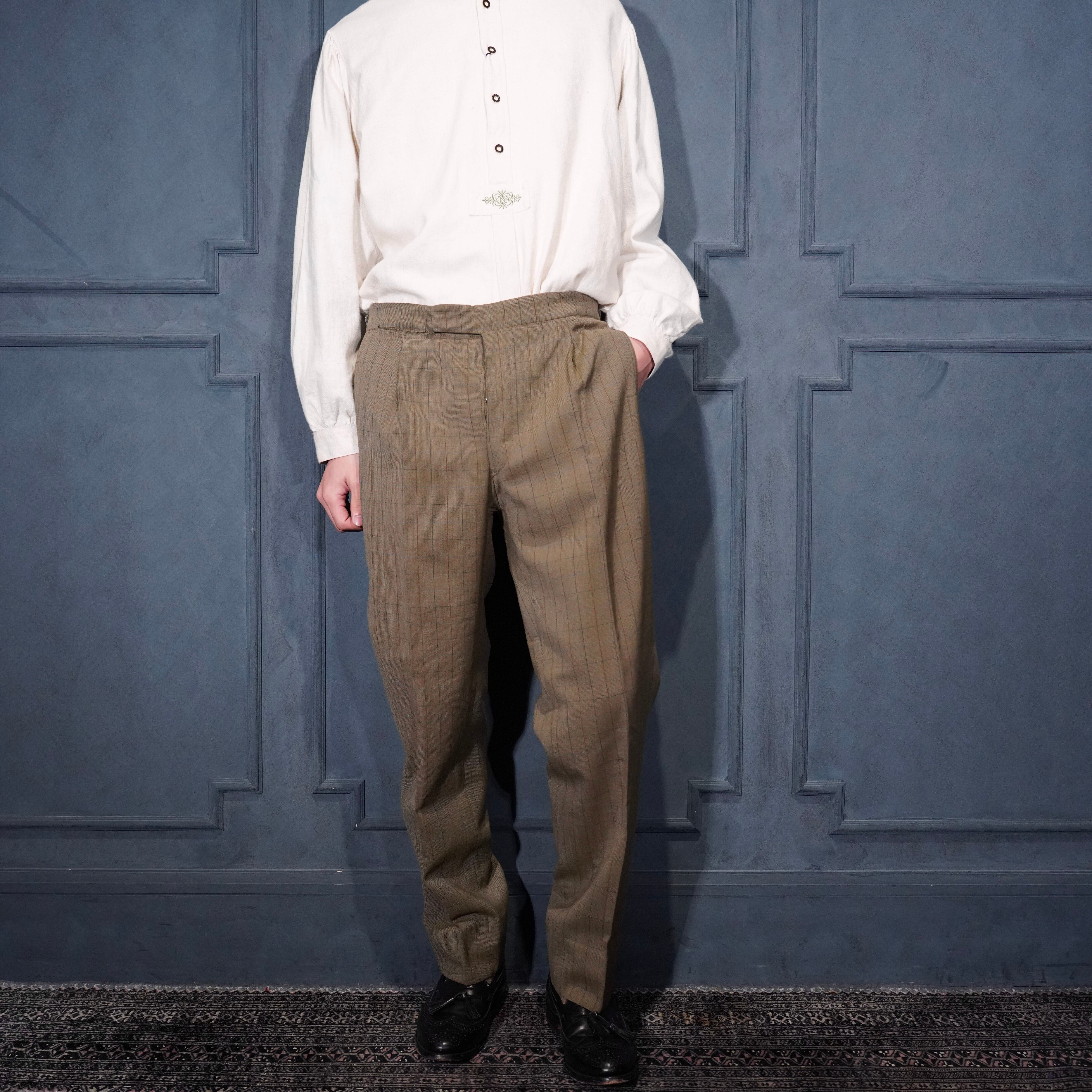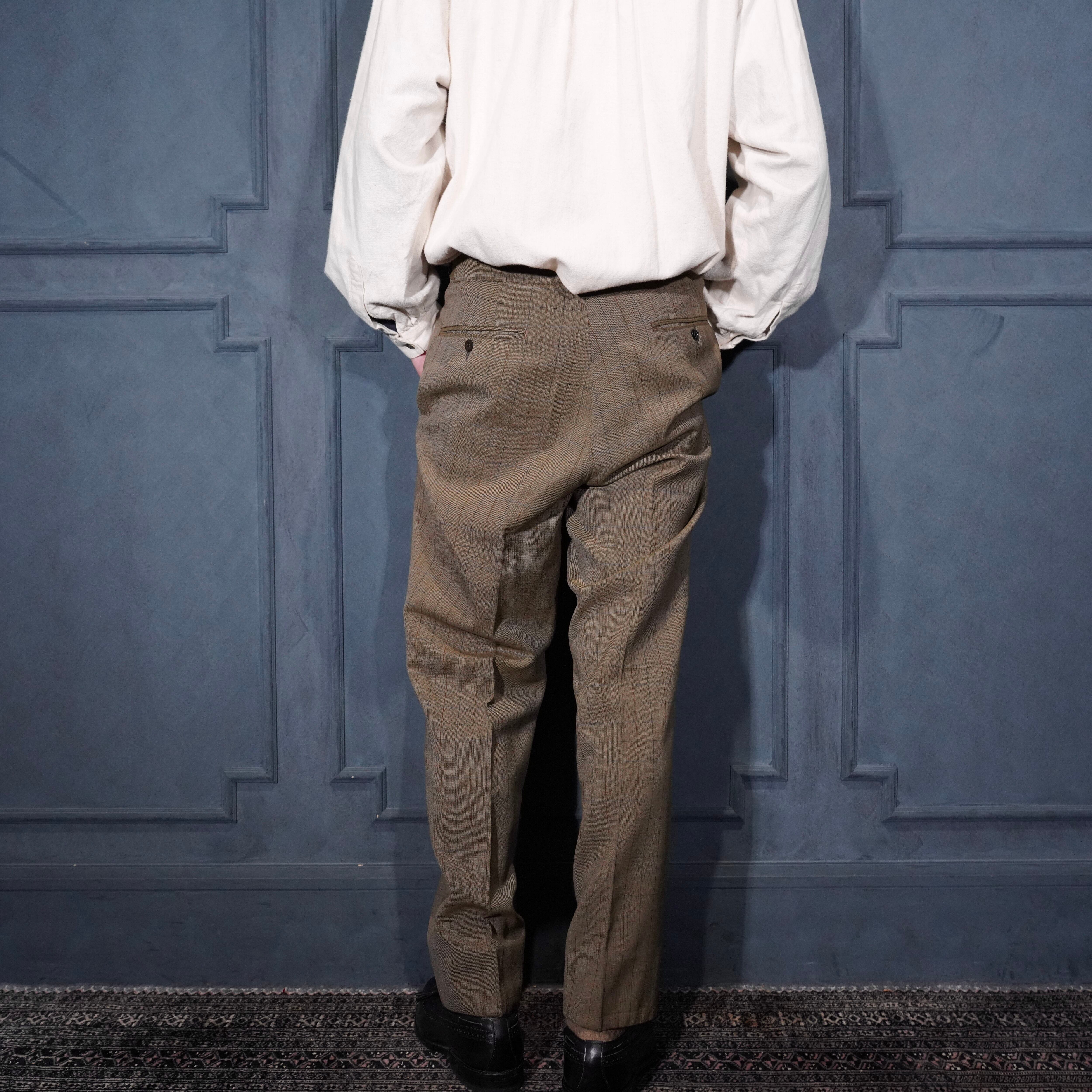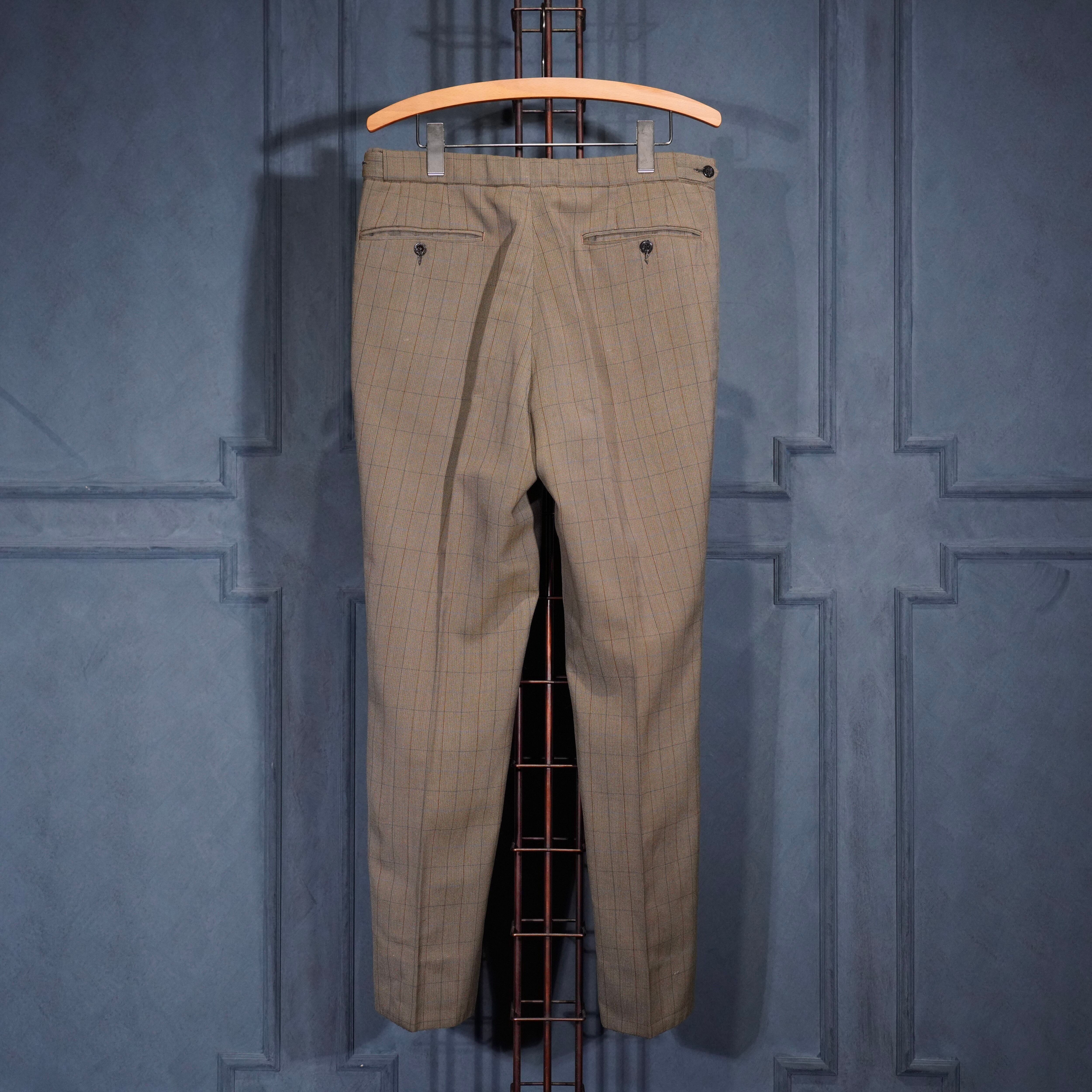 EU VINTAGE CHECK PATTERNED TUCK DESIGN SLACKS PANTS/ヨーロッパ古着チェック柄タックデザインスラックスパンツ