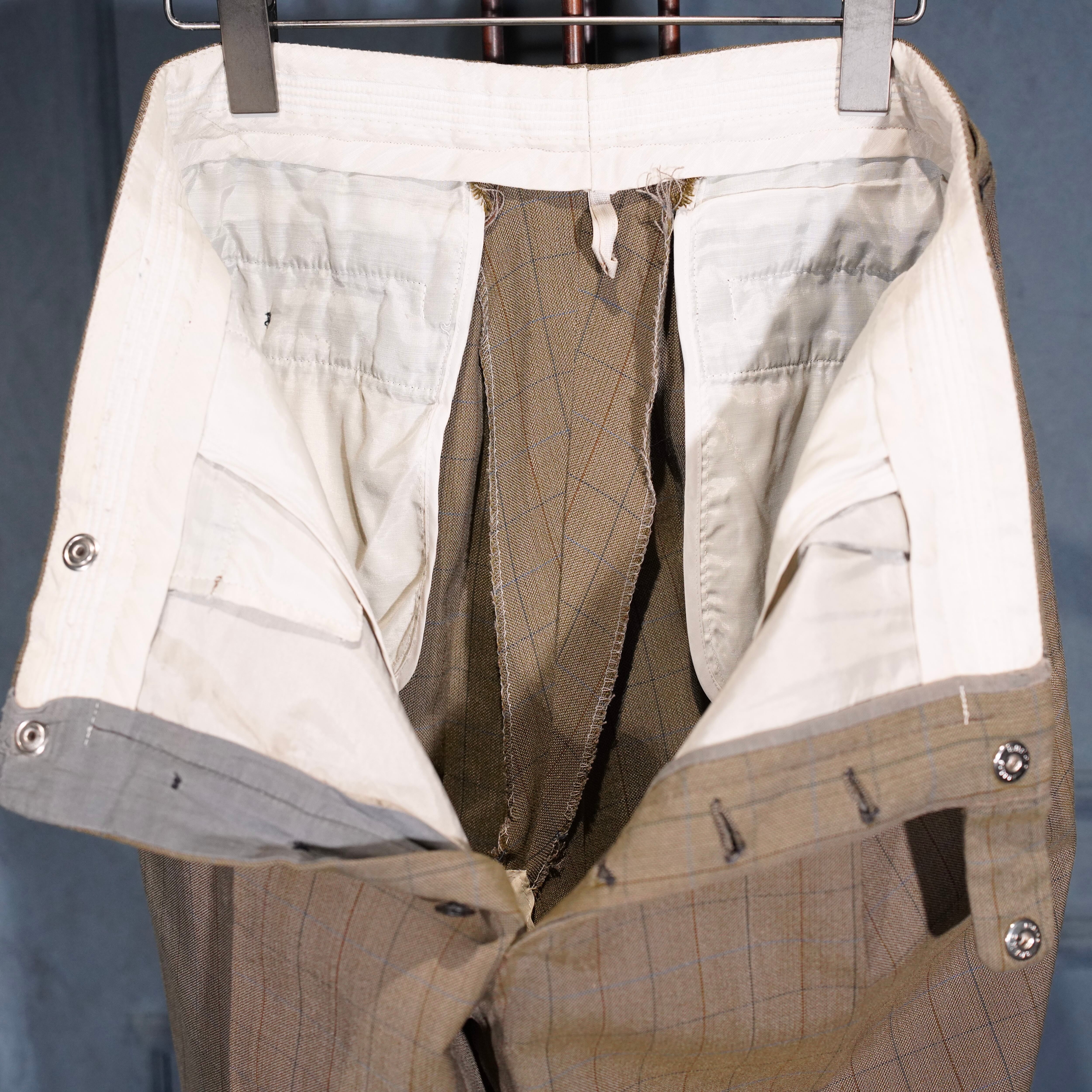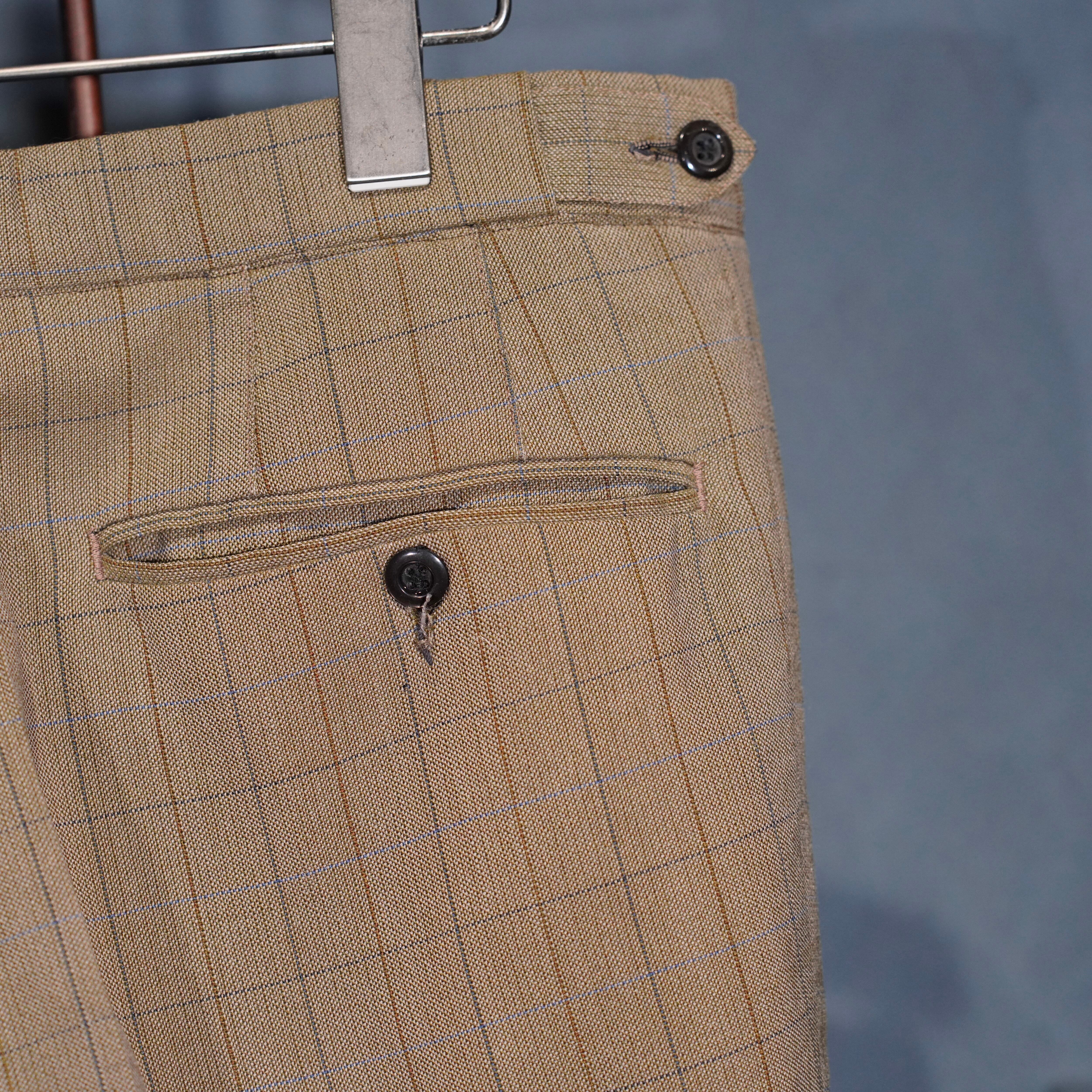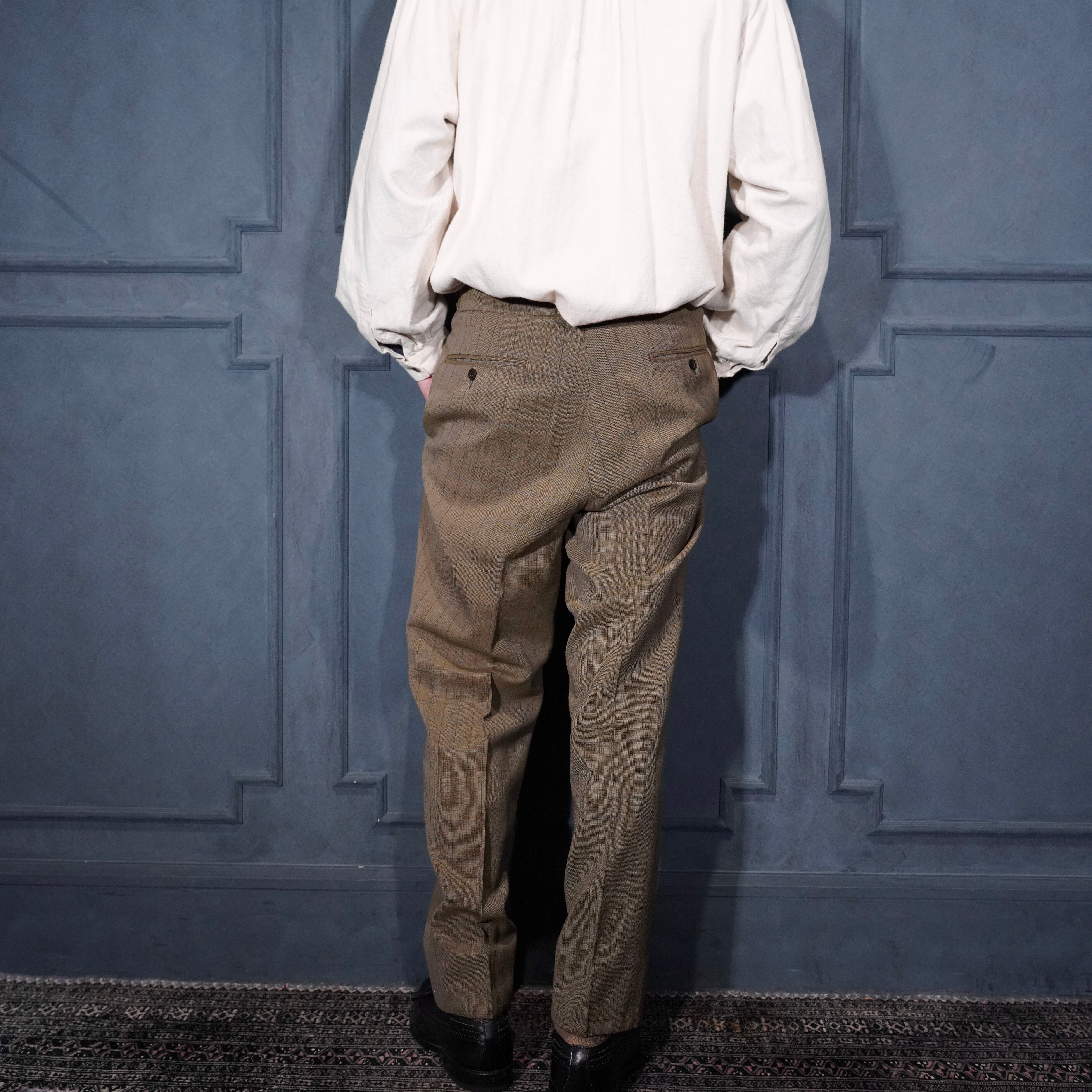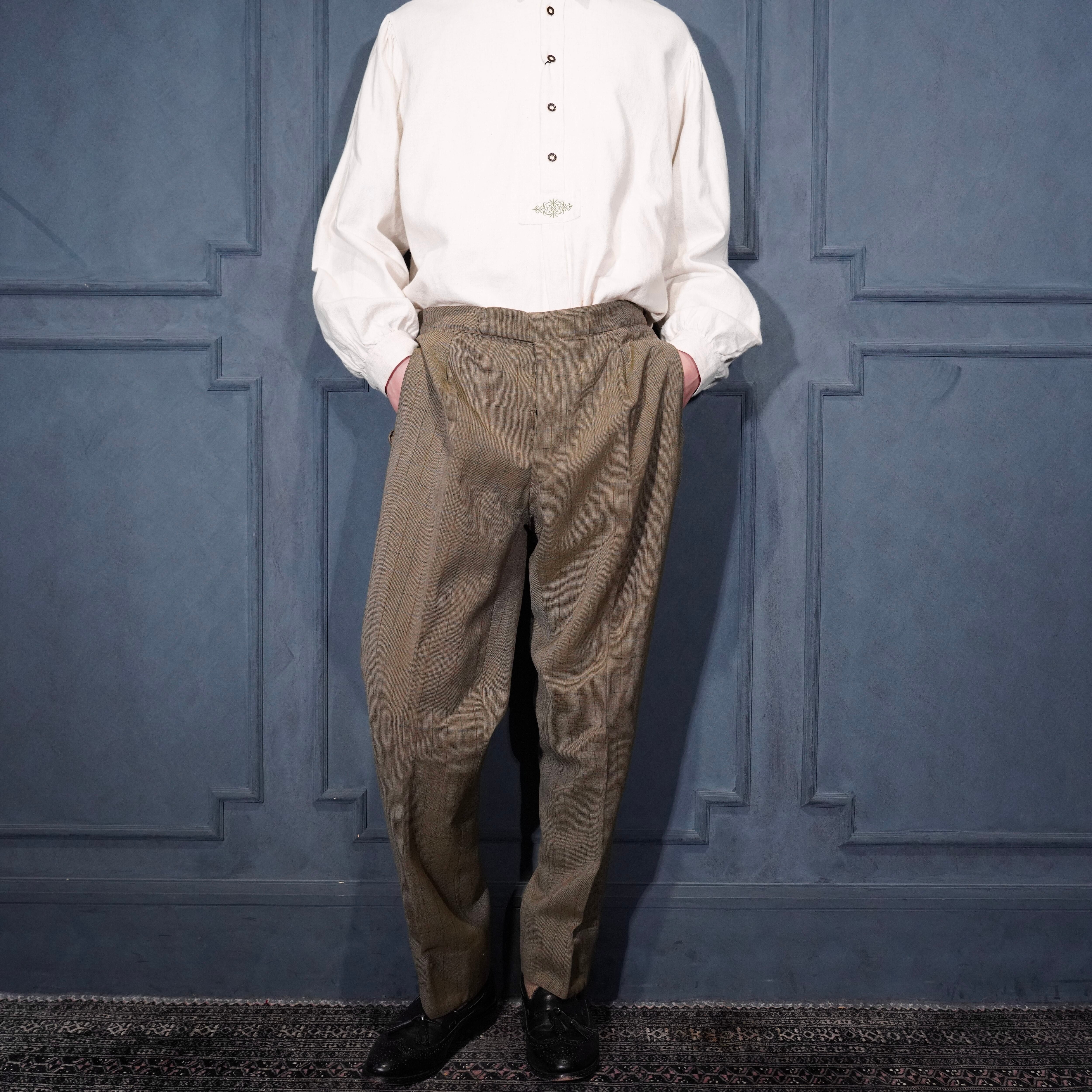 EU VINTAGE CHECK PATTERNED TUCK DESIGN SLACKS PANTS/ヨーロッパ古着チェック柄タックデザインスラックスパンツ
