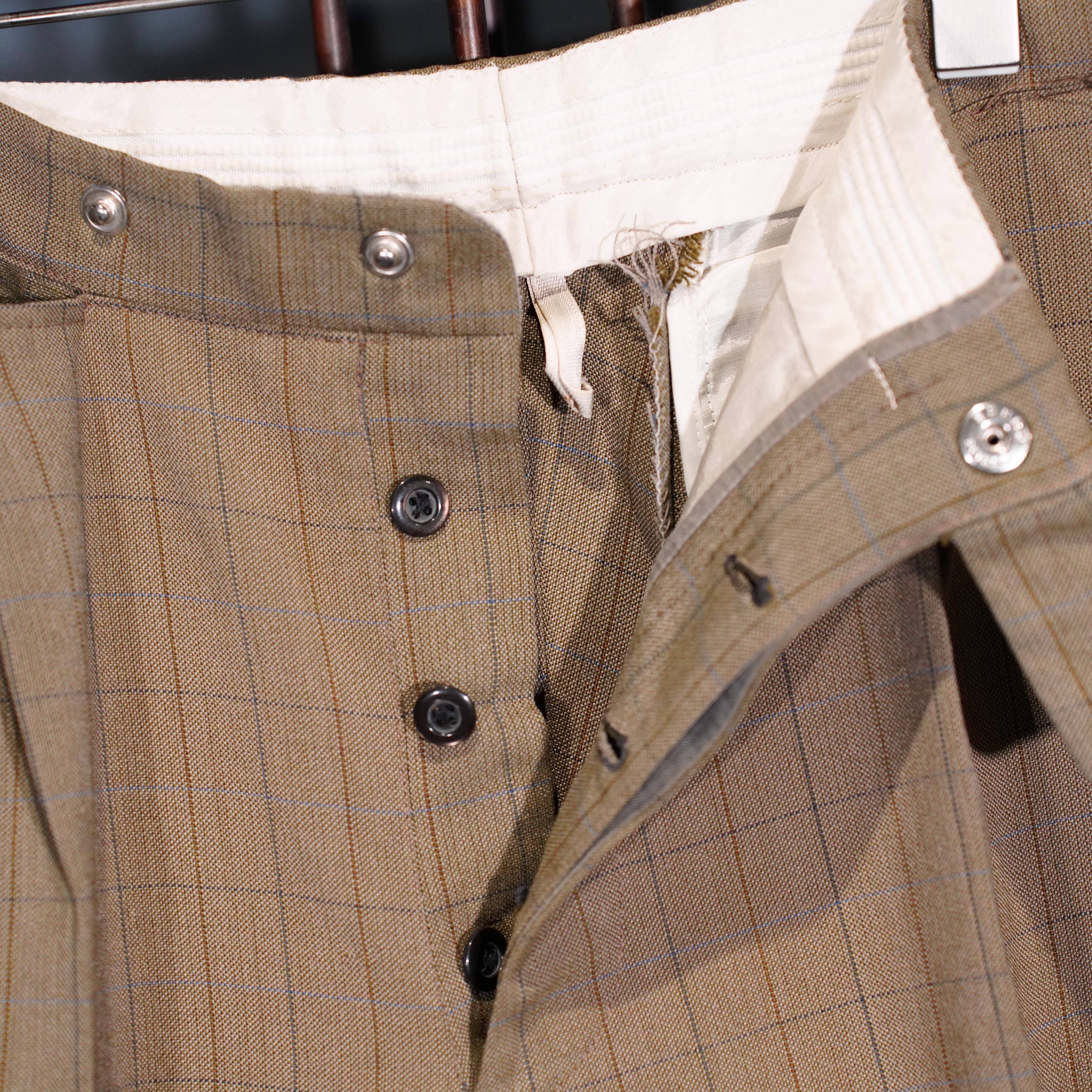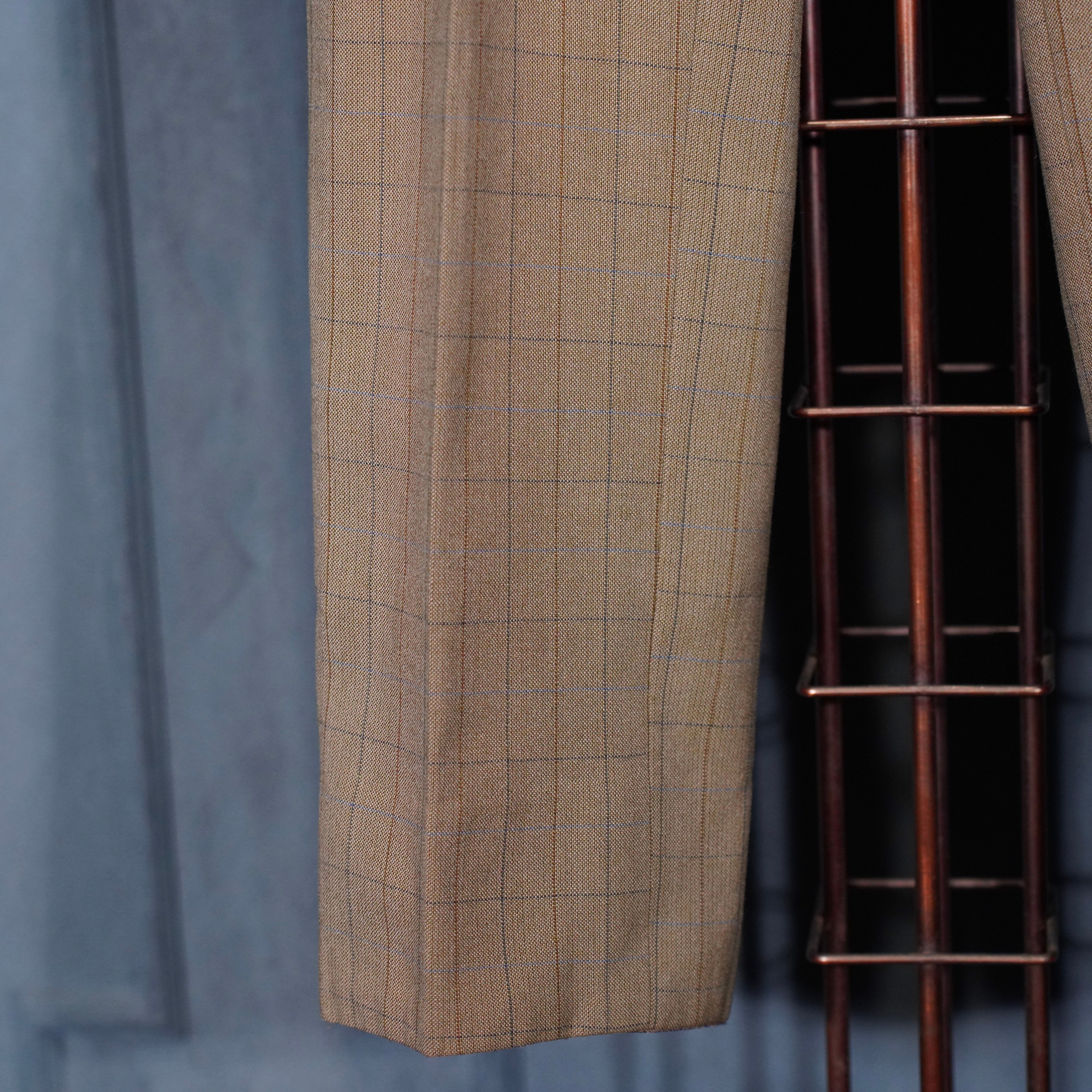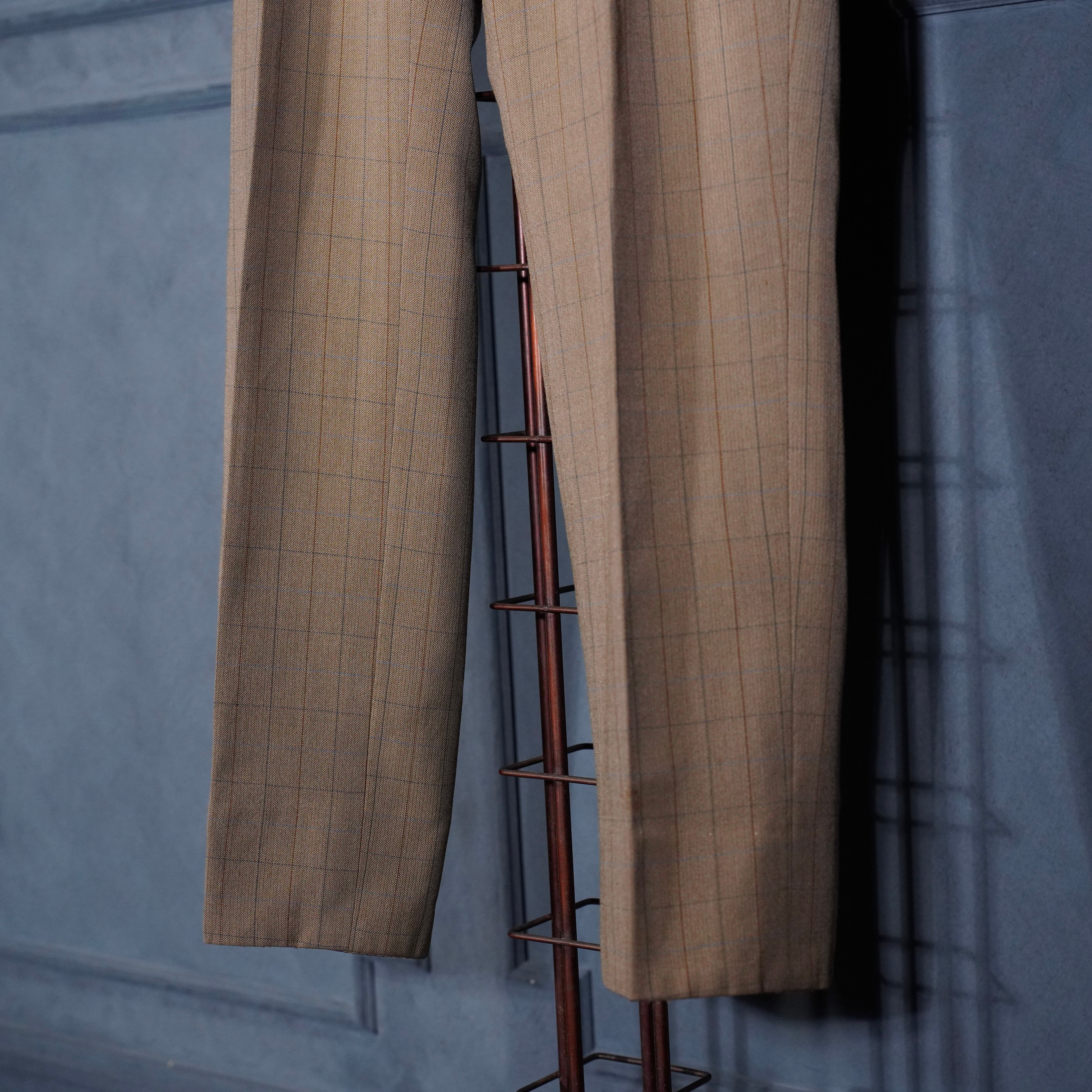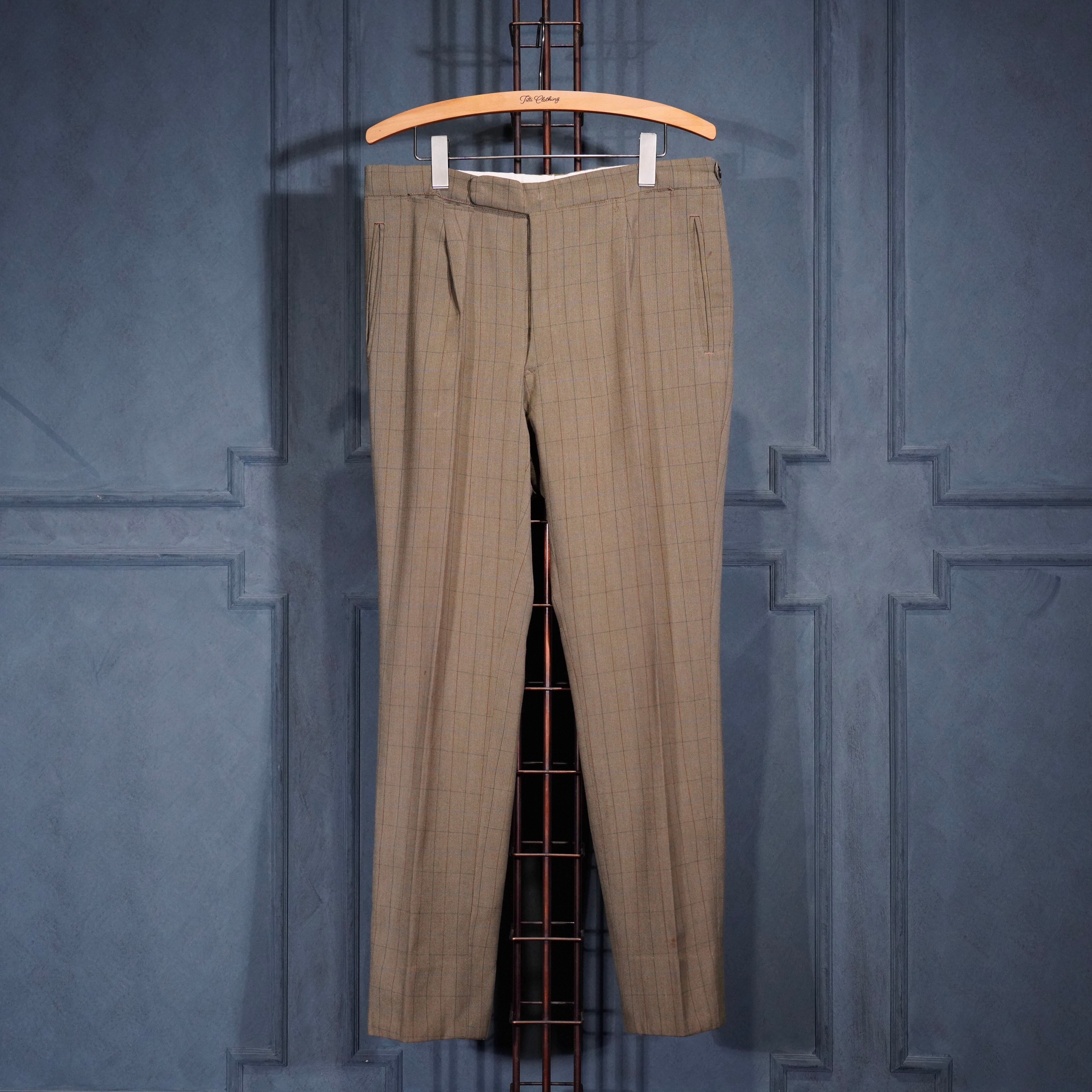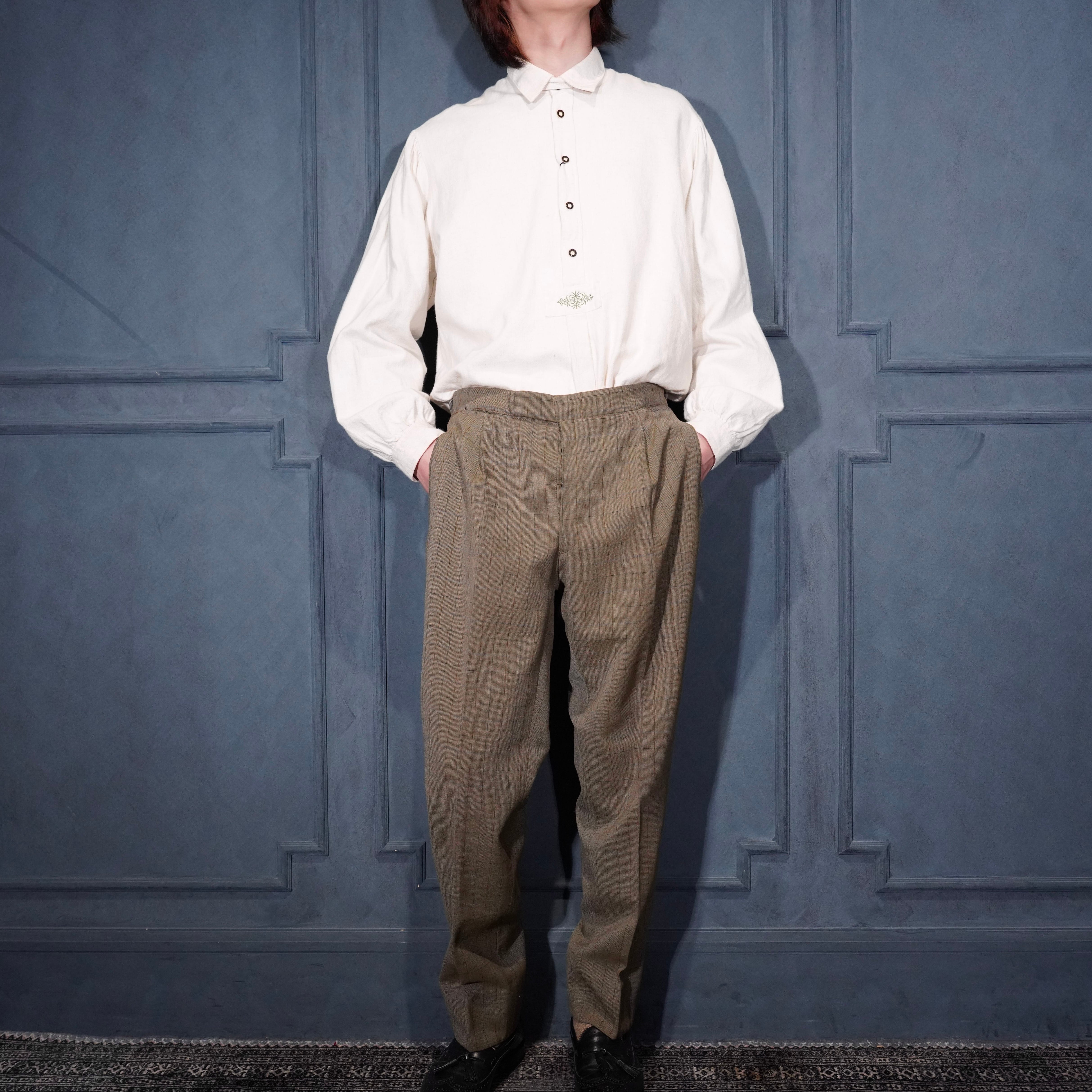 EU VINTAGE CHECK PATTERNED TUCK DESIGN SLACKS PANTS/ヨーロッパ古着チェック柄タックデザインスラックスパンツ