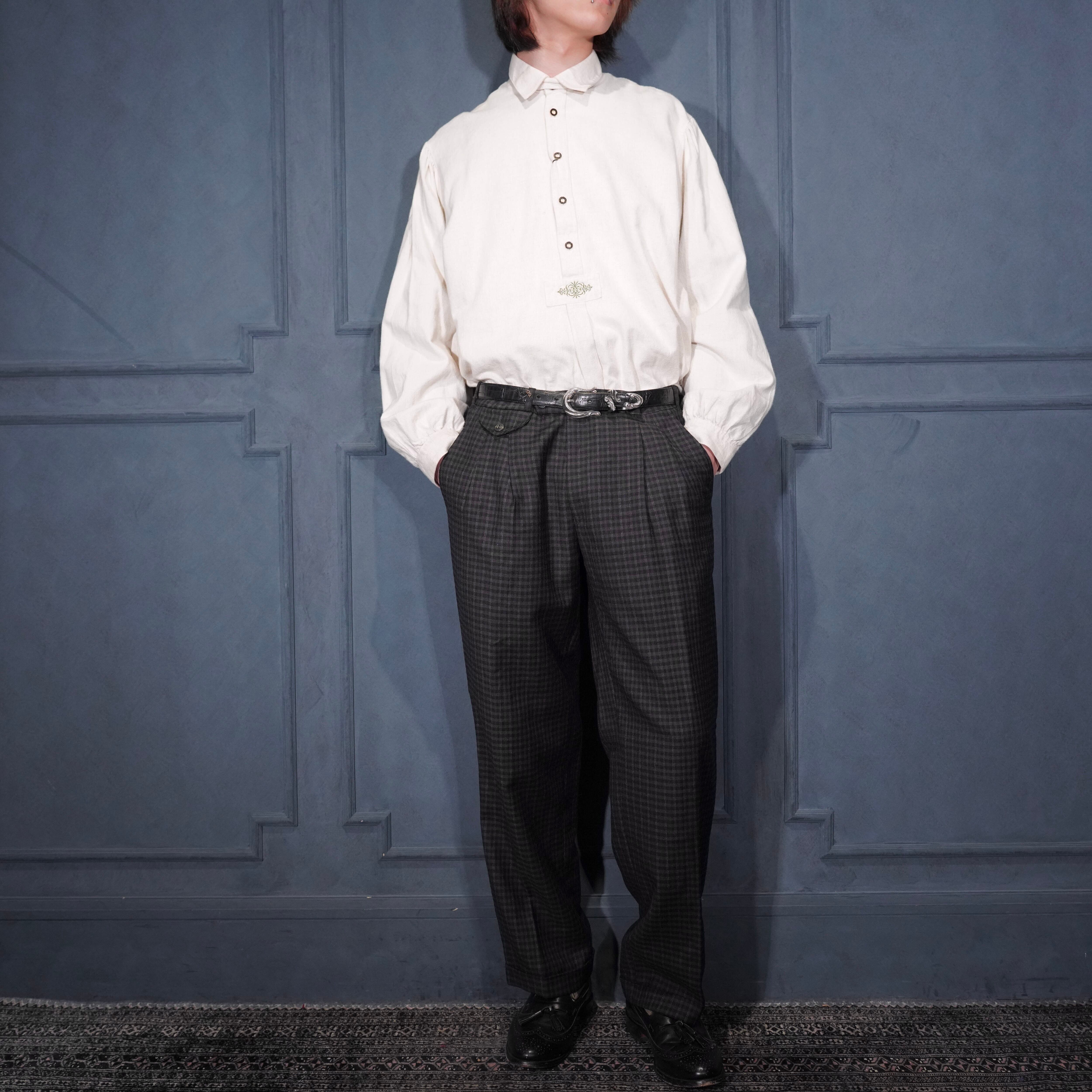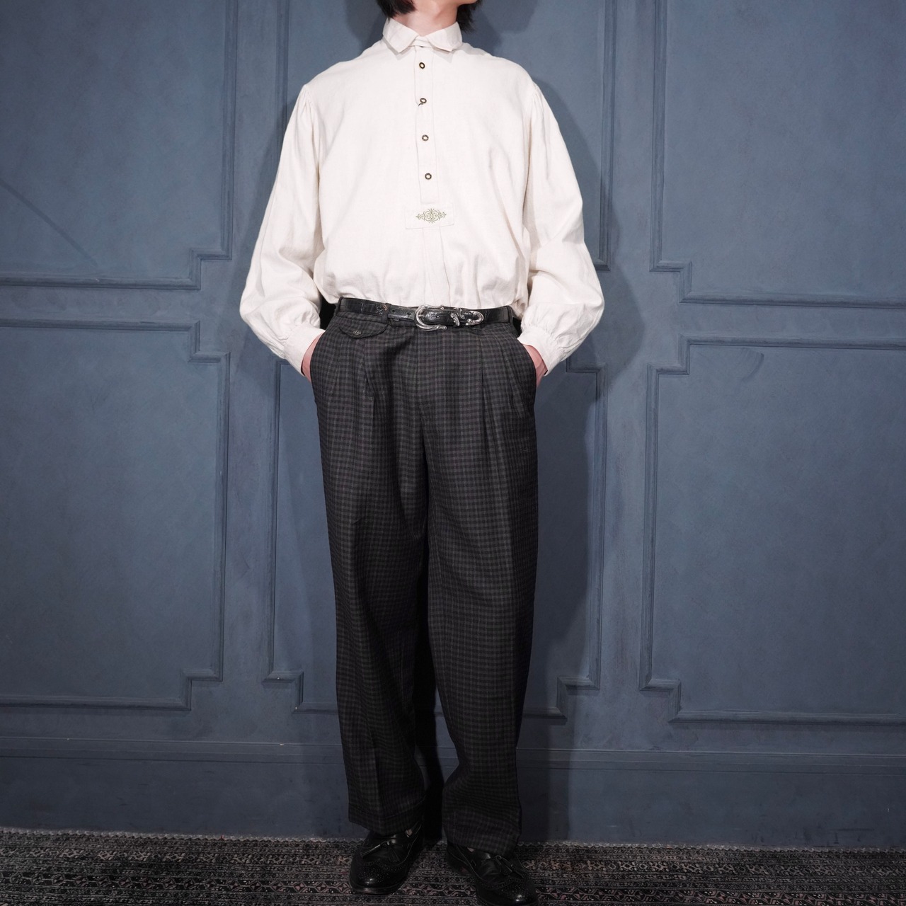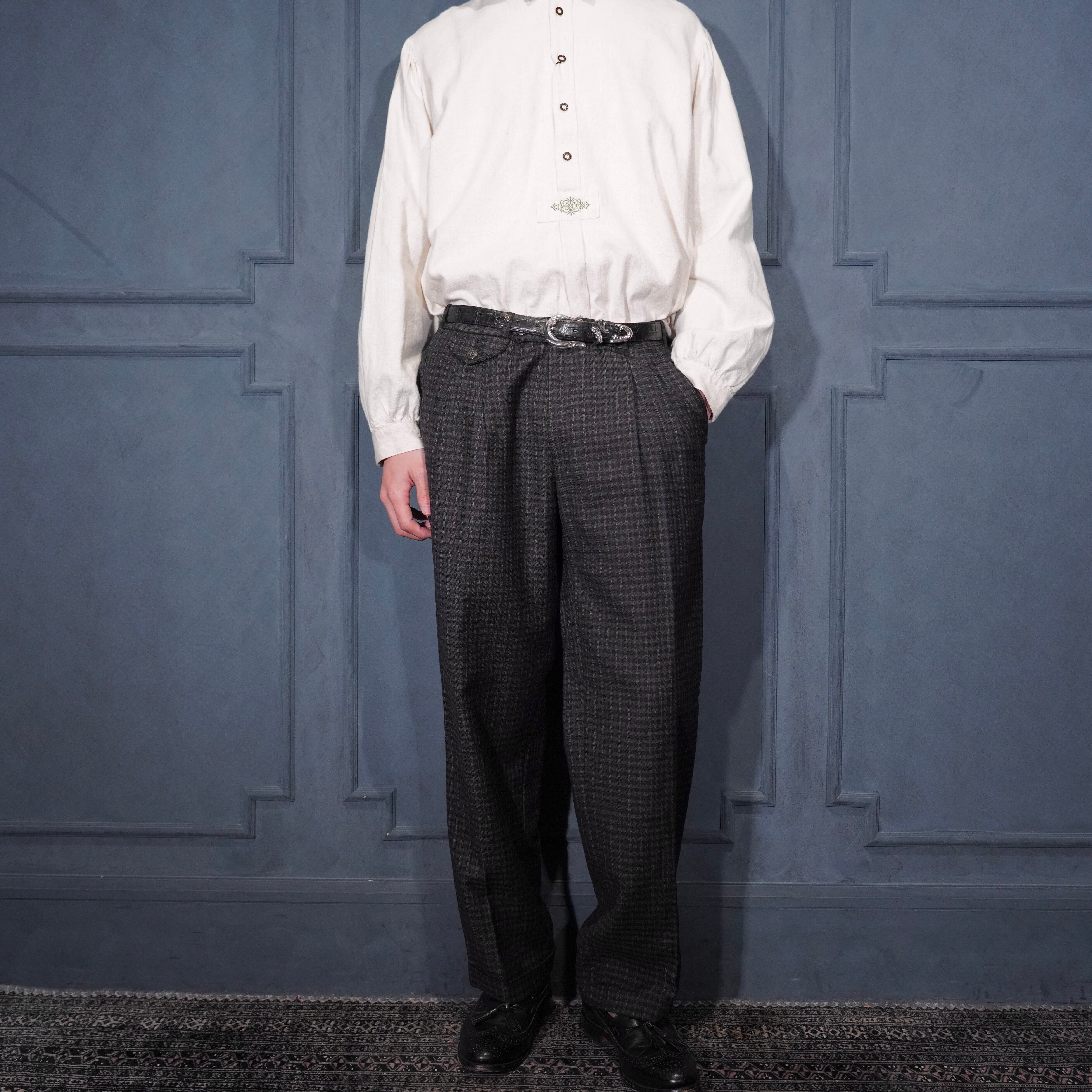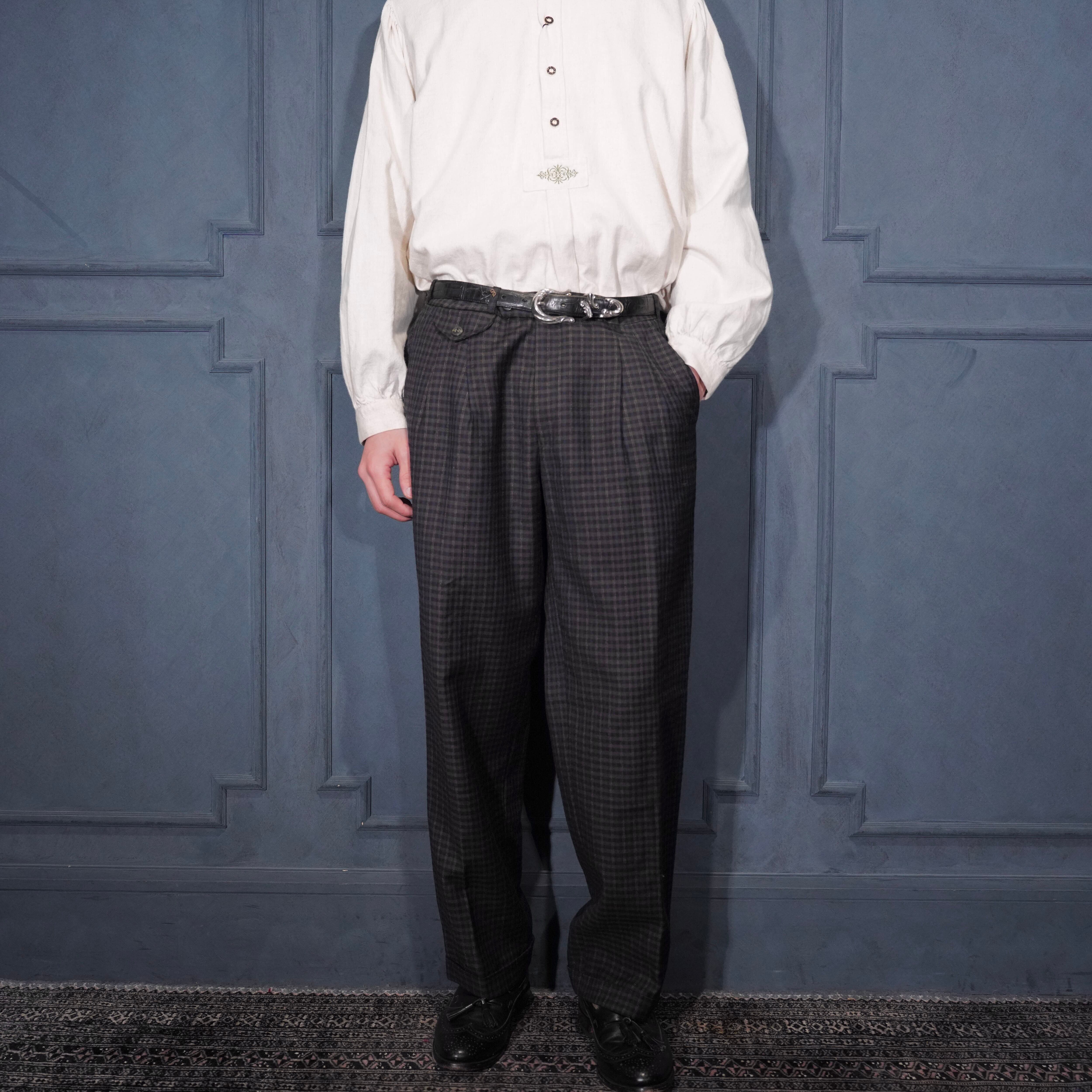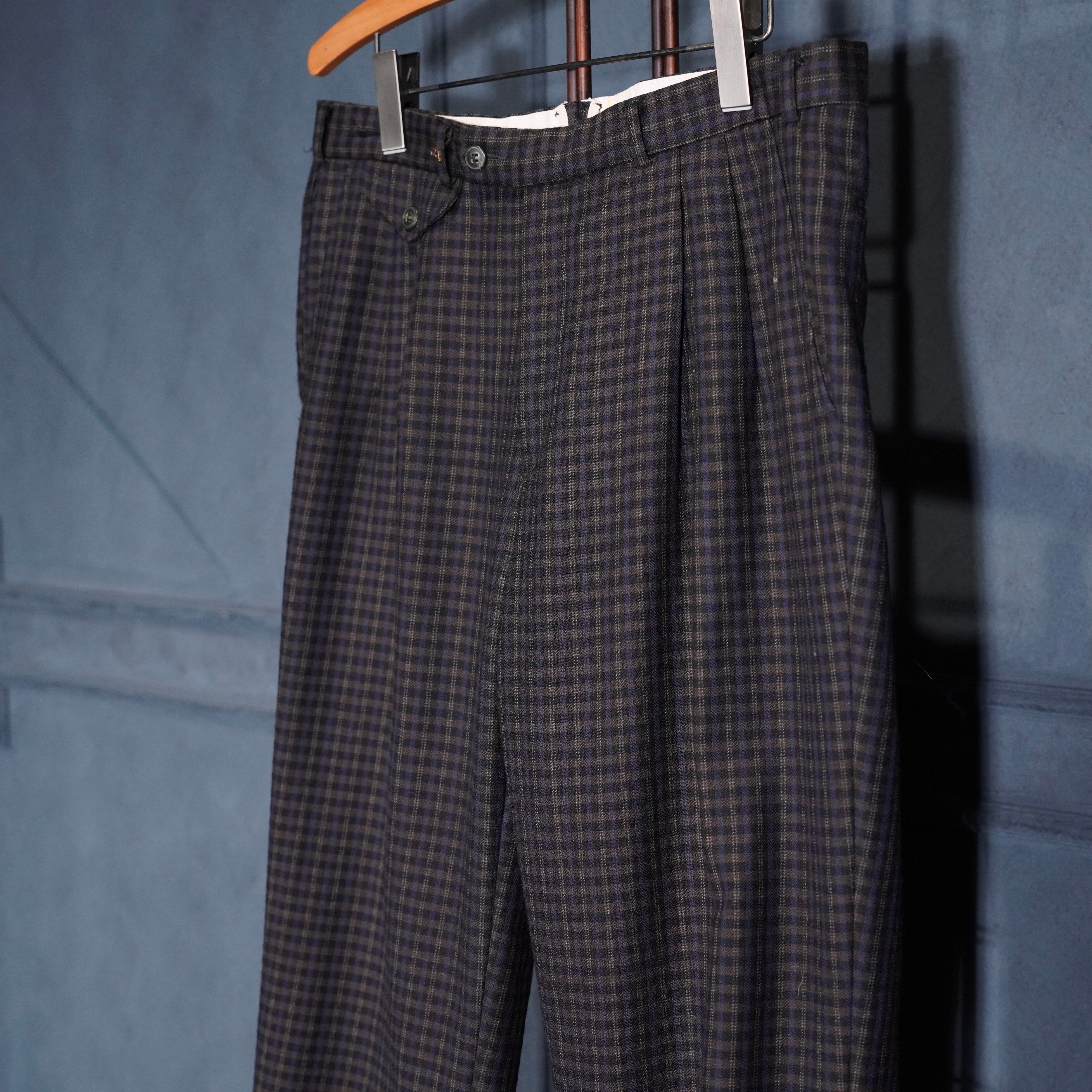EU VINTAGE gardeur homme CHECK PATTERNED TUCK DESIGN SLACKS PANTS/ヨーロッパ古着チェック柄タックデザインスラックスパンツ