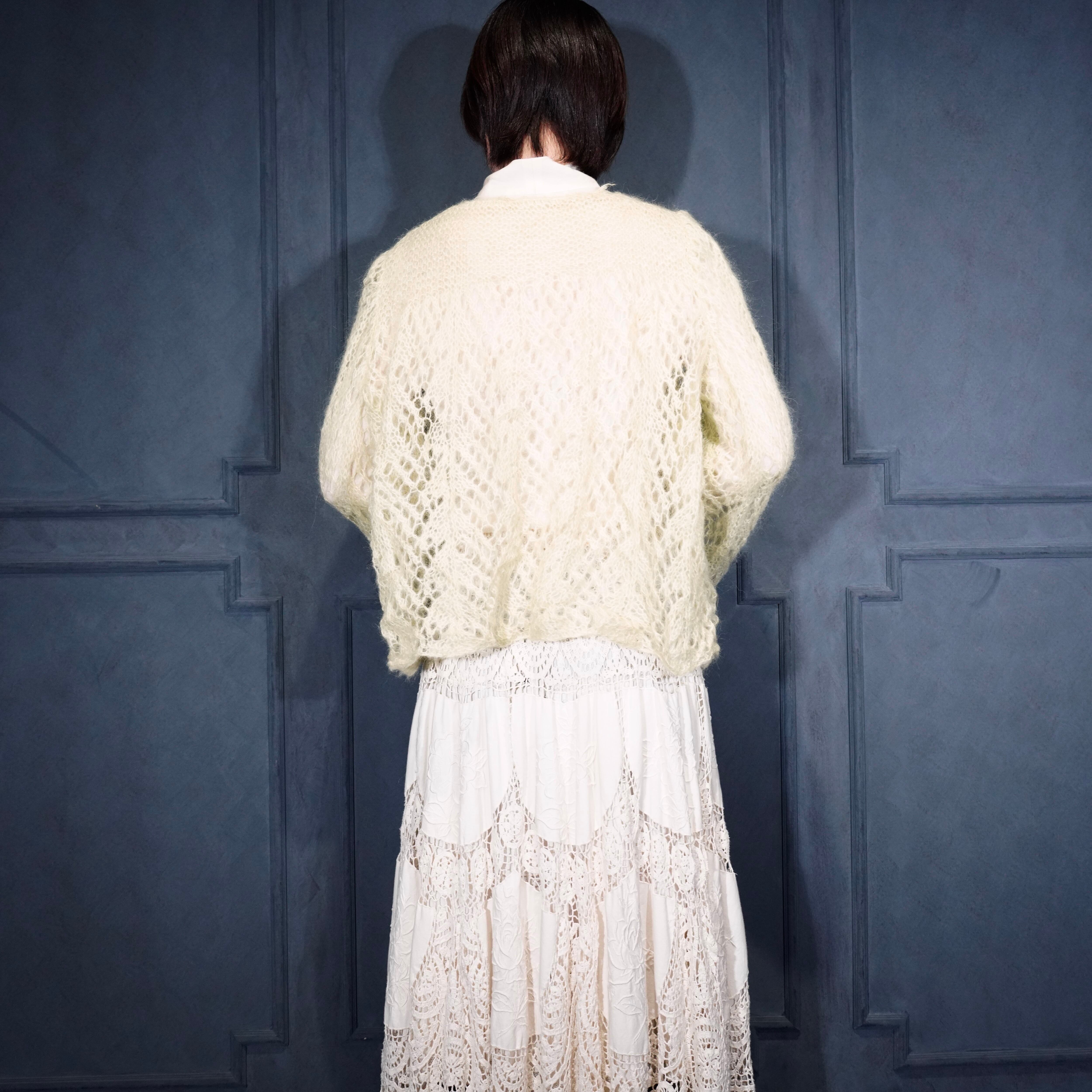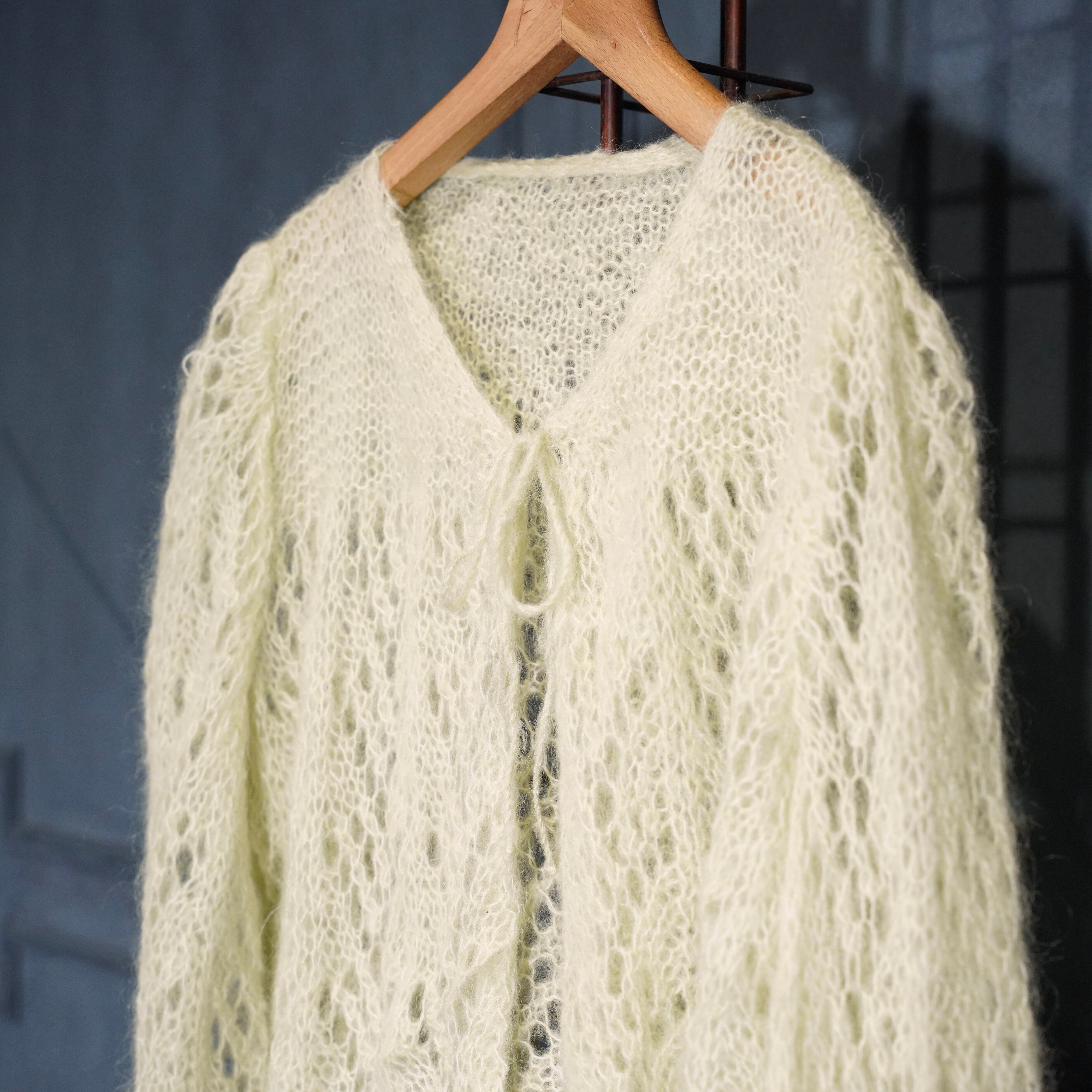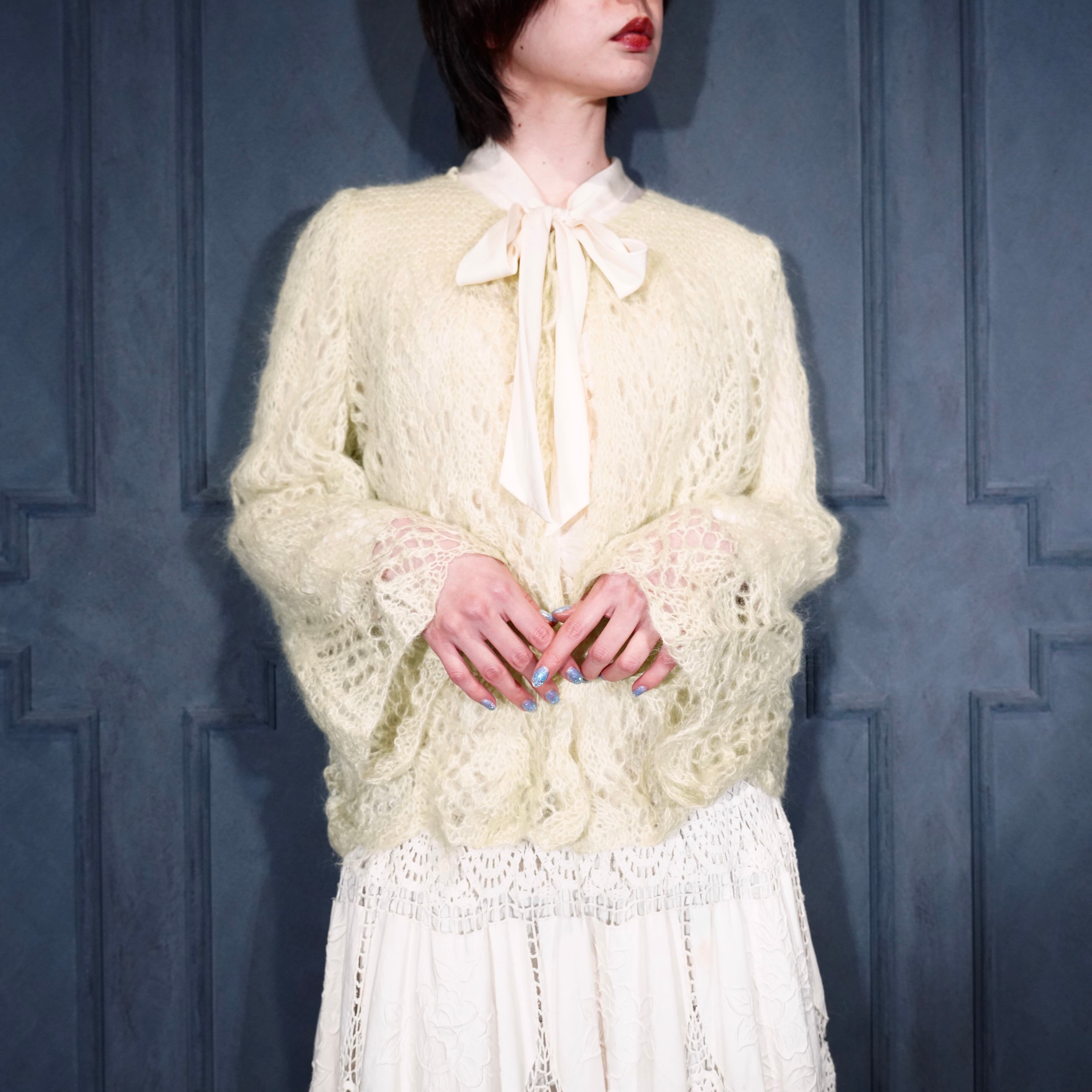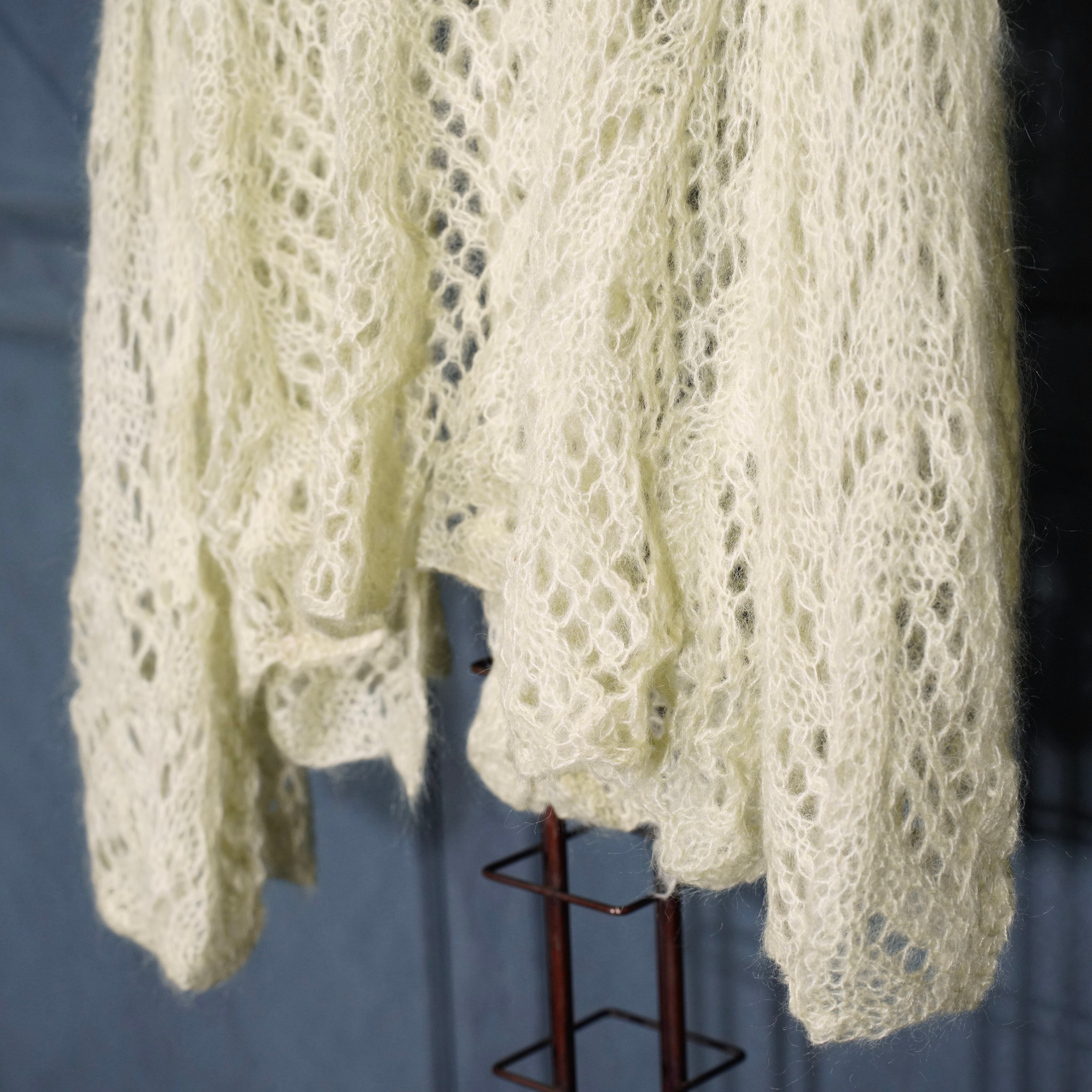 USA VINTAGE CROCHET DESIGN HAND KNIT CARDIGAN/アメリカ古着鍵編みデザインハンドニットカーディガン