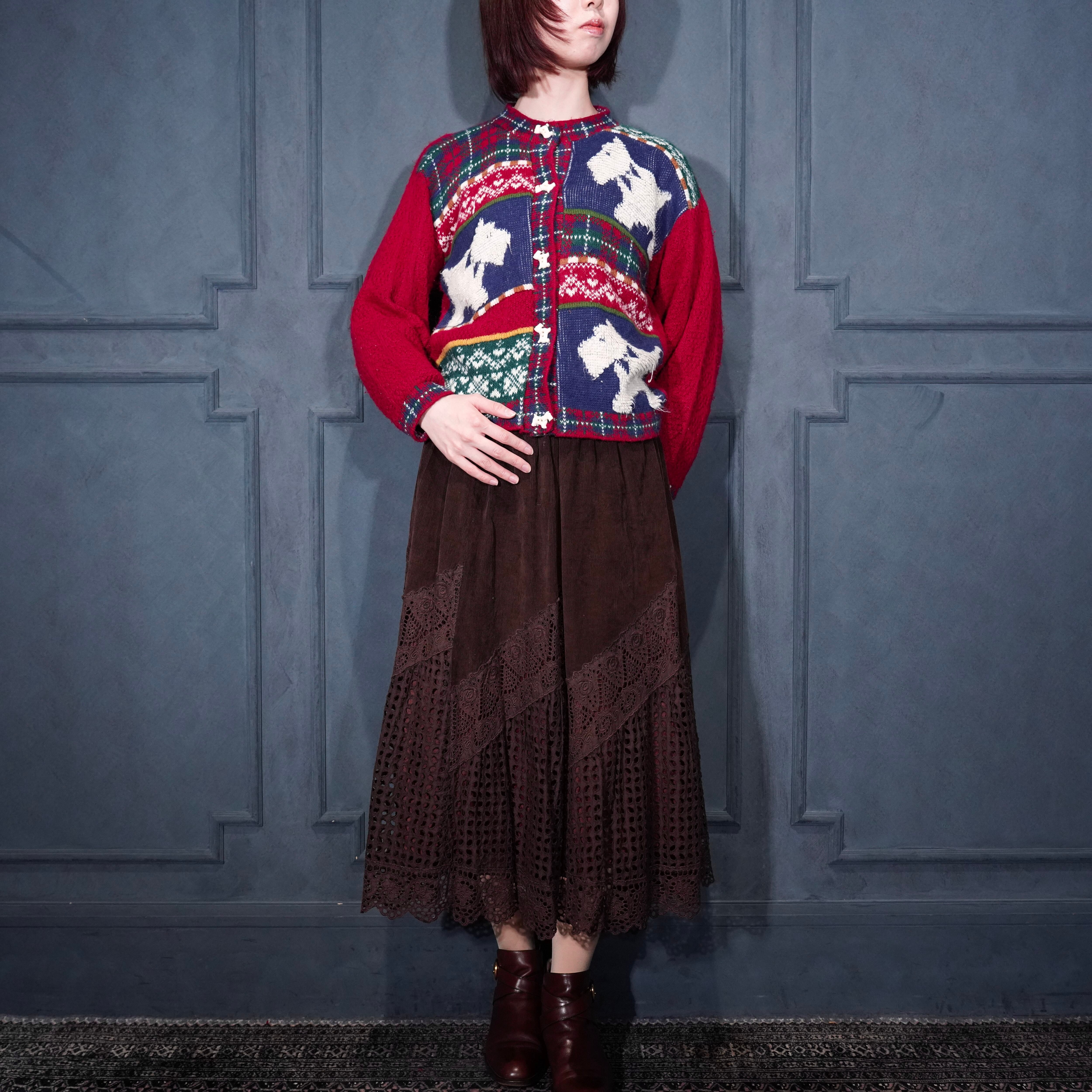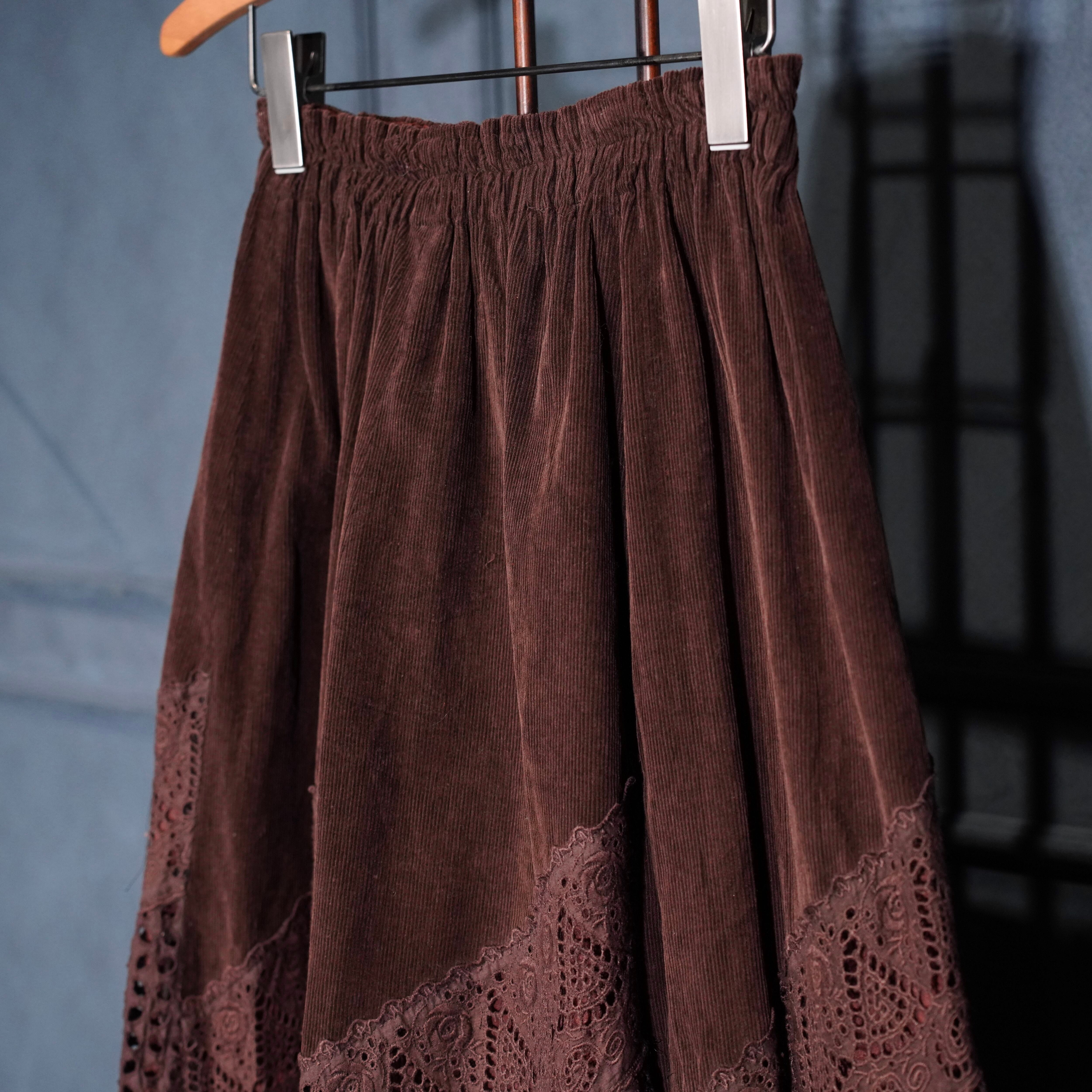 EU VINTAGE LACE DESIGN CORDULOY SKIRT/ヨーロッパ古着レースデザインコーデュロイスカート