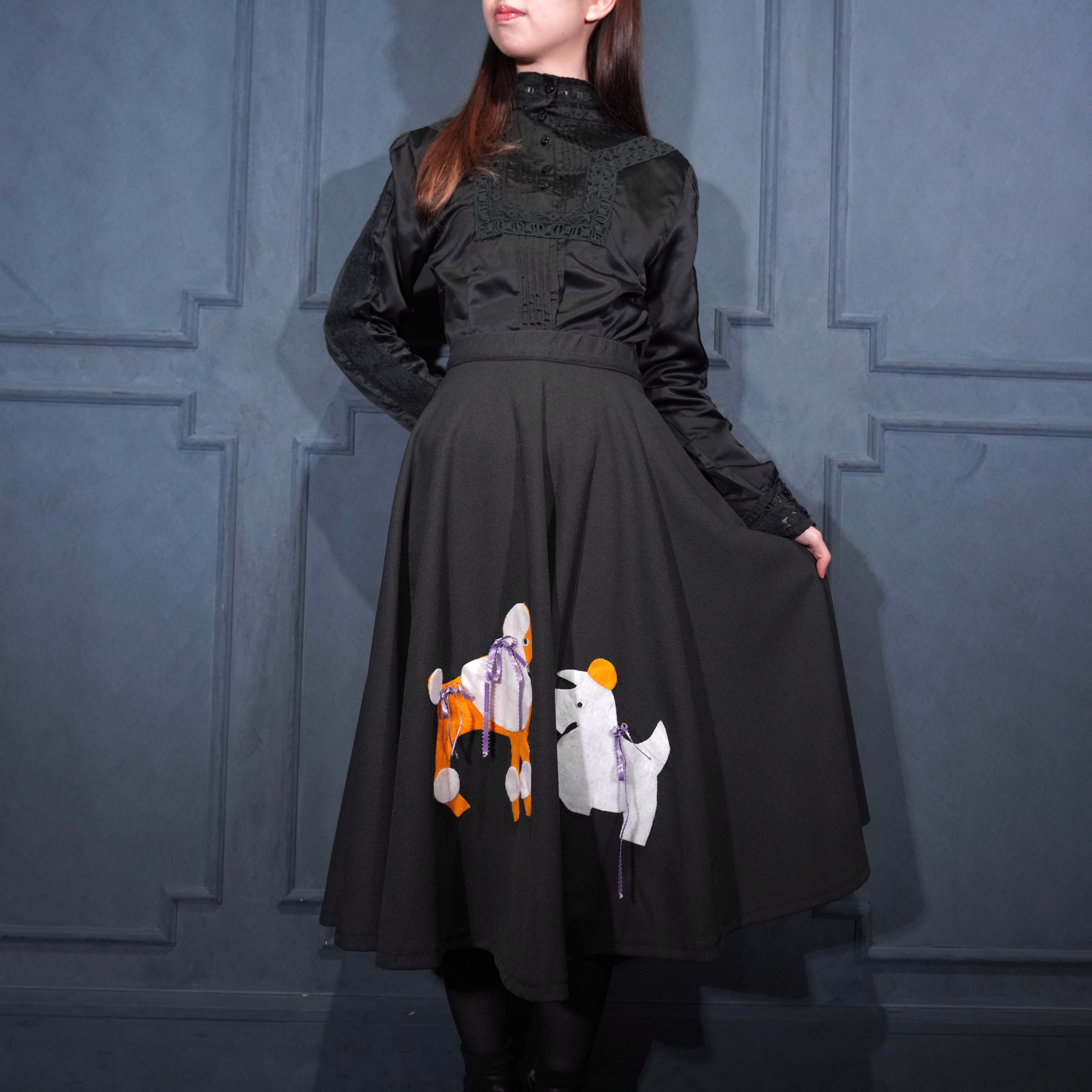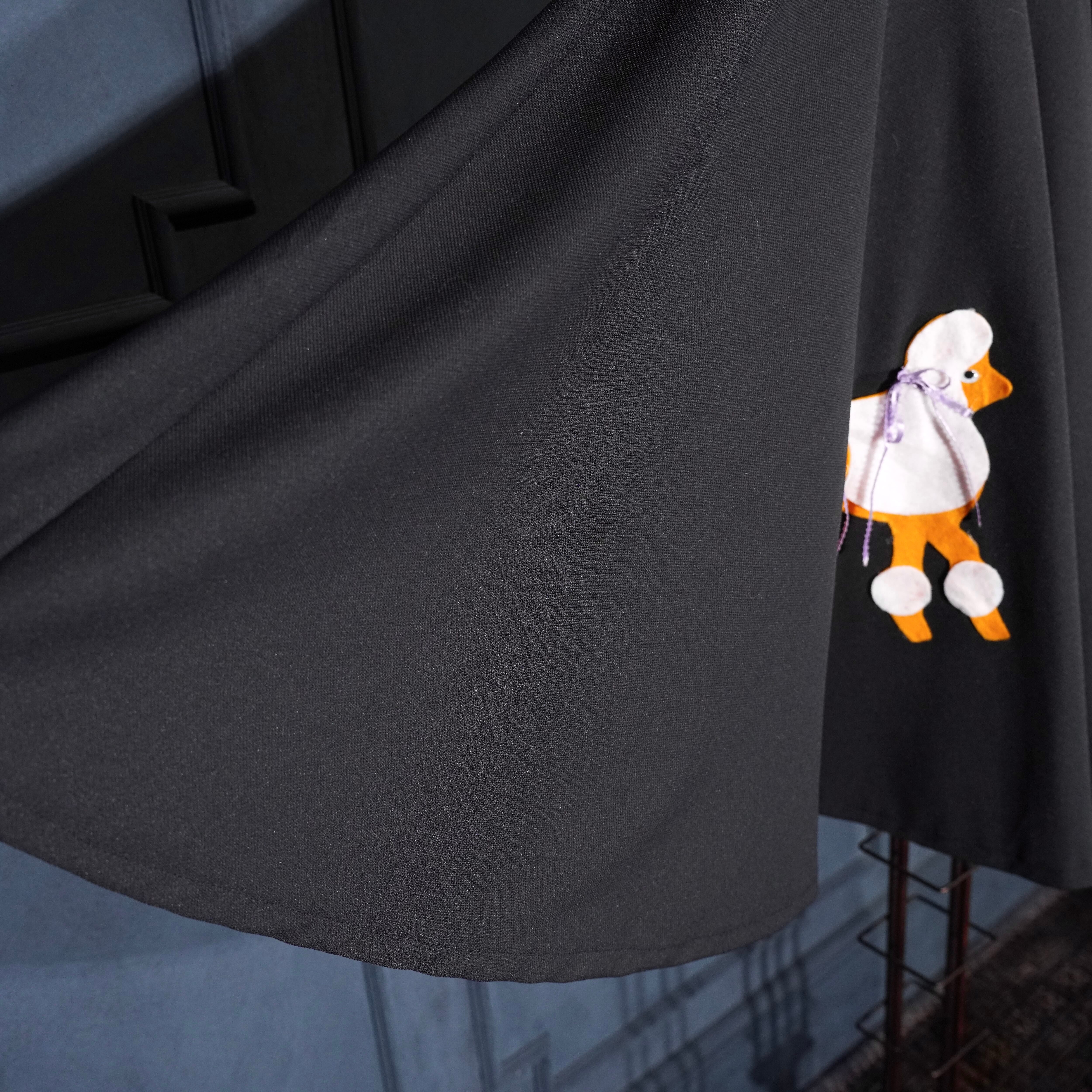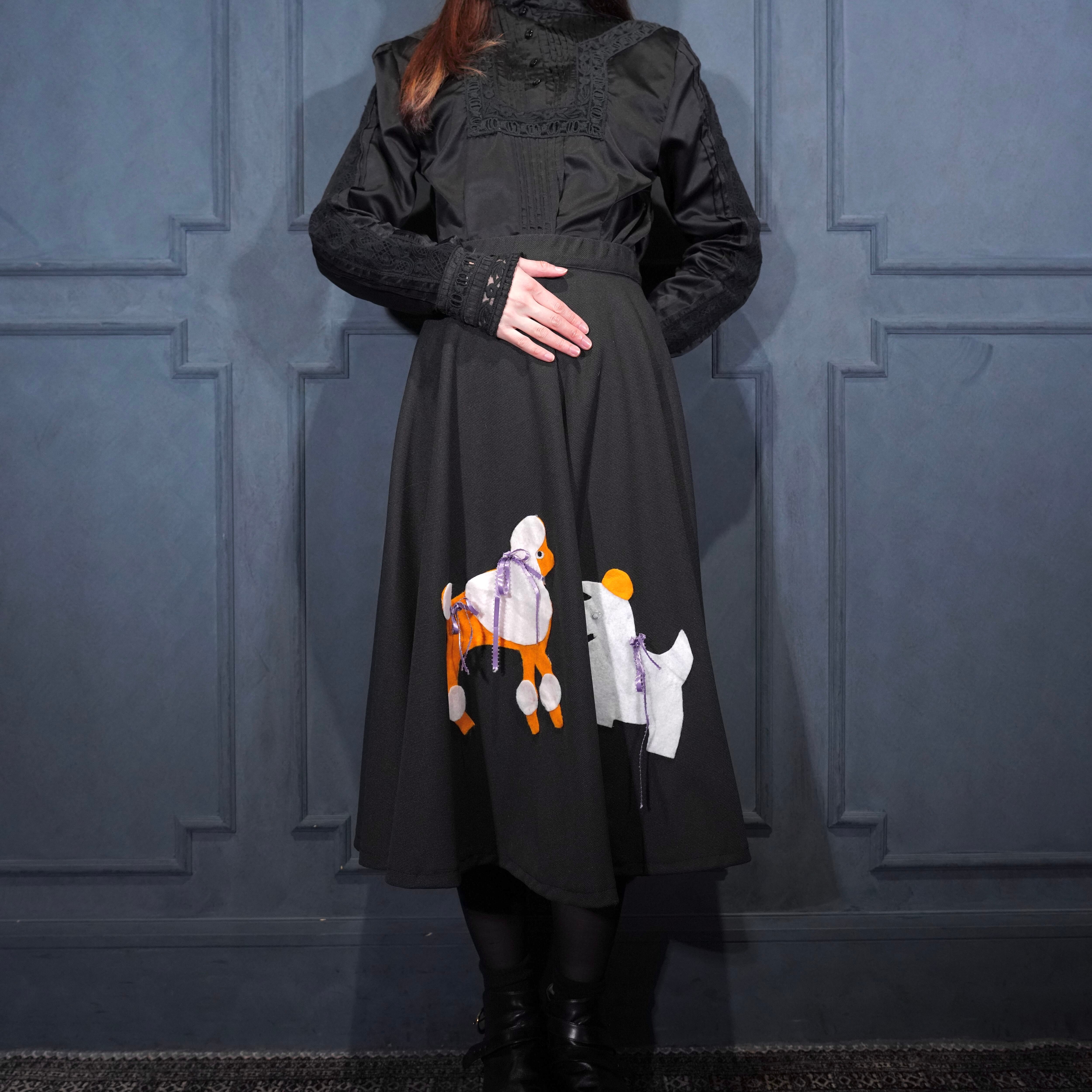 70's USA VINTAGE DOG PATCHWORK DESIGN FLARE SKIRT/70年代アメリカ古着わんこパッチワークデザインフレアスカート(60年代のデザインモチーフ)