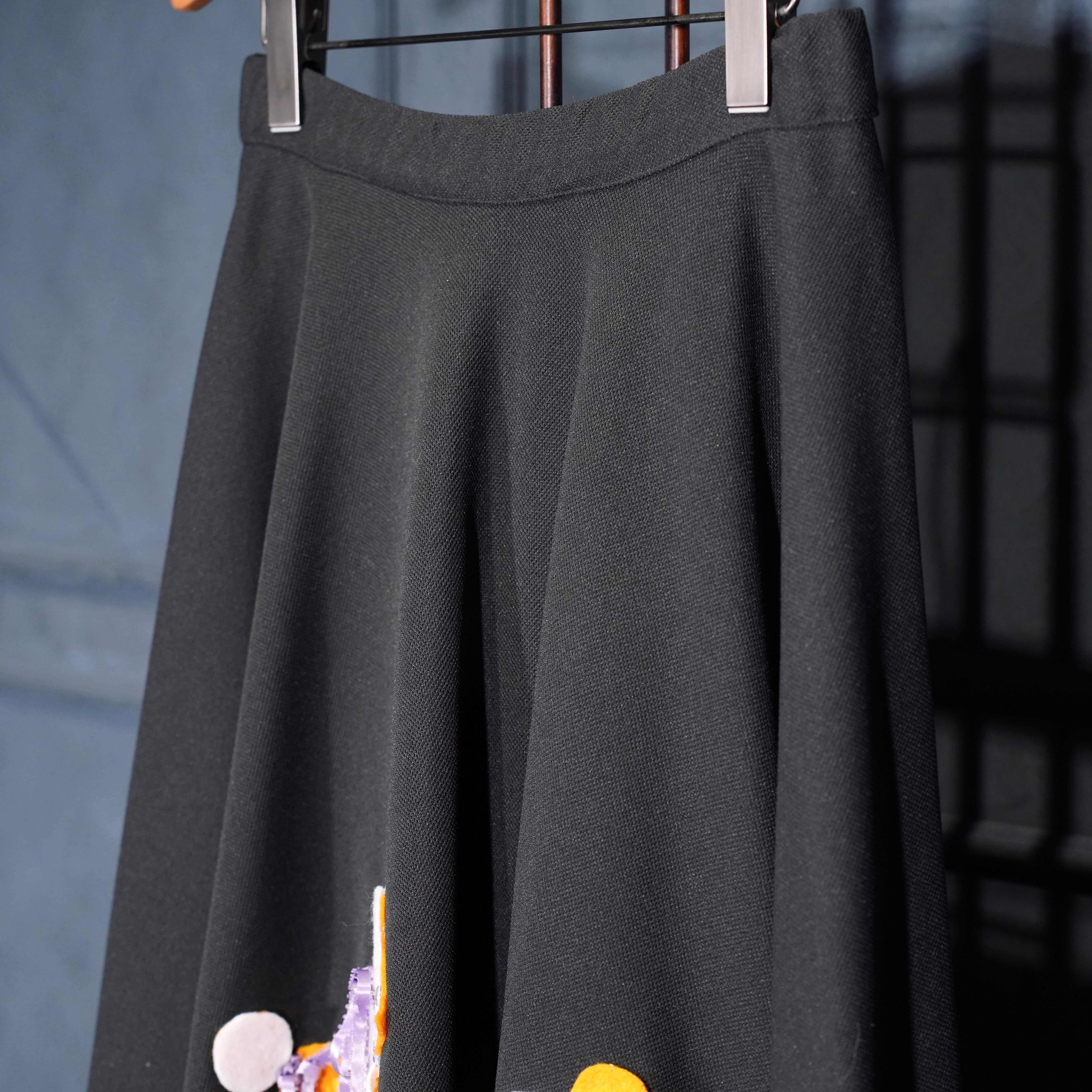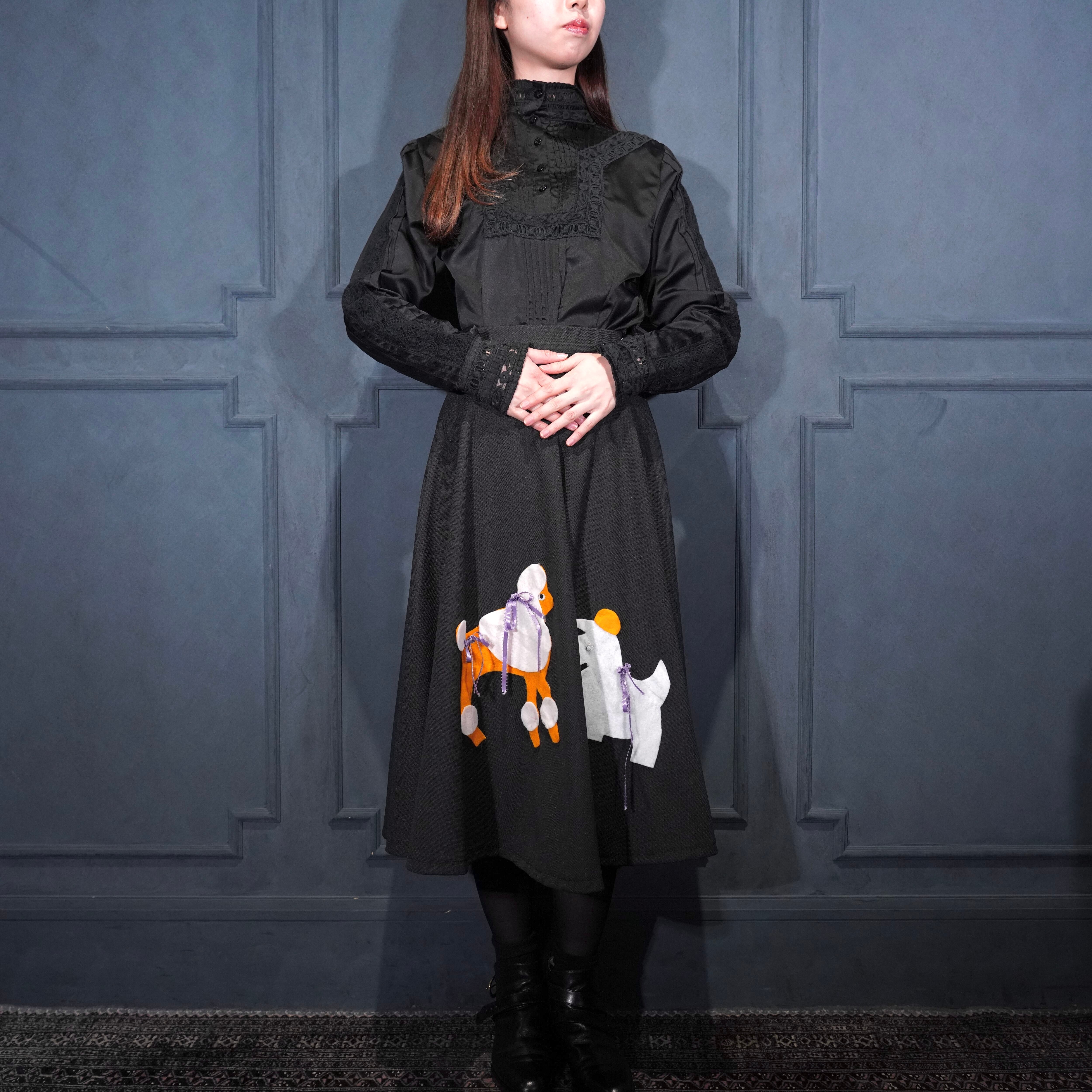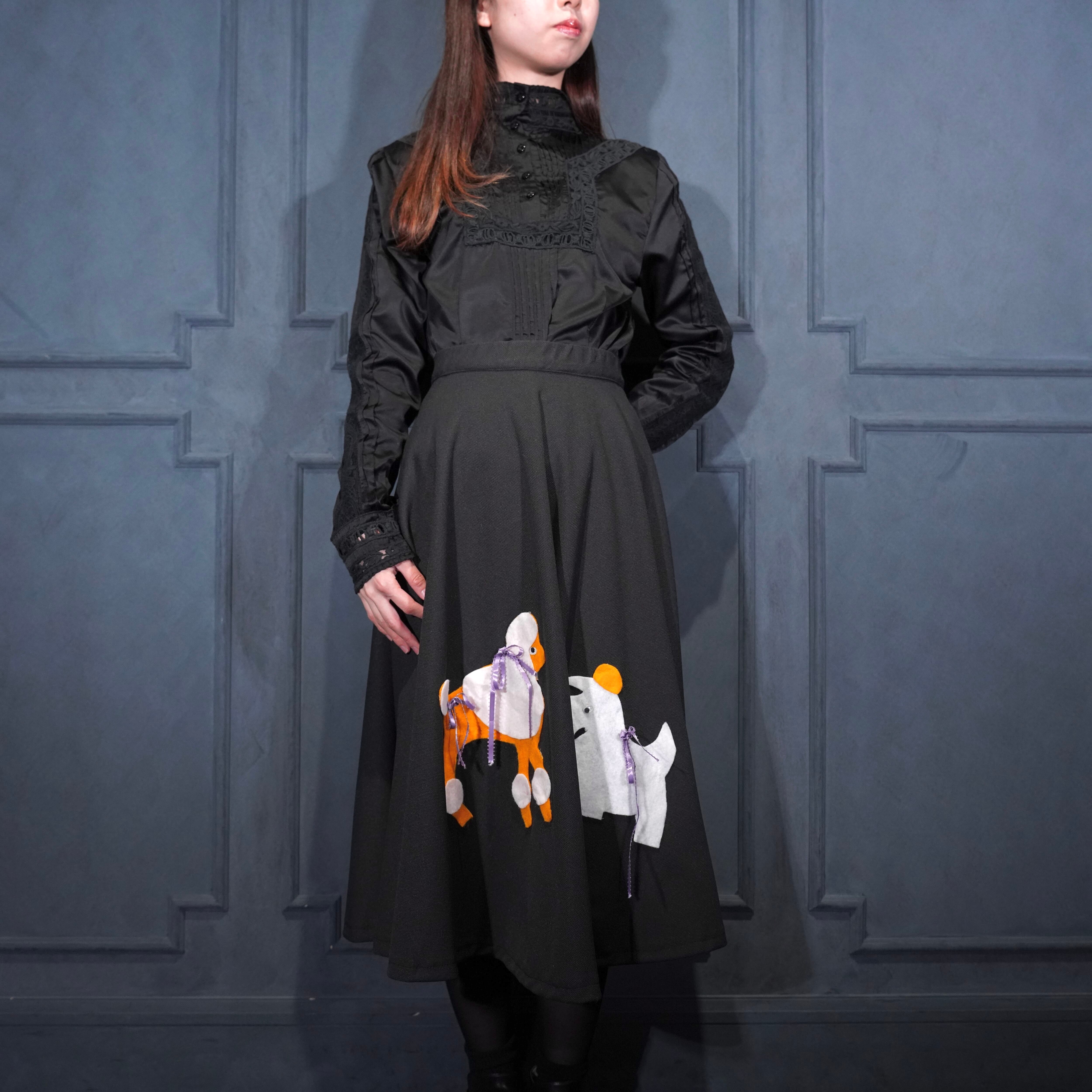 70's USA VINTAGE DOG PATCHWORK DESIGN FLARE SKIRT/70年代アメリカ古着わんこパッチワークデザインフレアスカート(60年代のデザインモチーフ)
