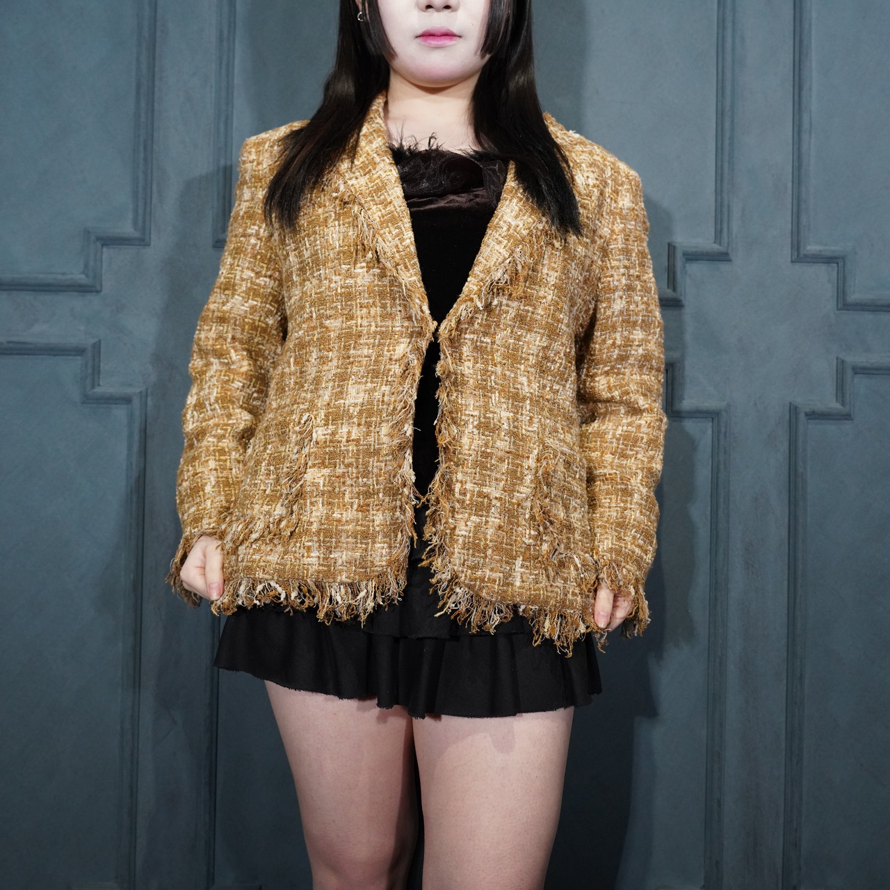USA VINTAGE ANNE KLEIN SHAGGY TWEED DESIGN TAILORED JACKET/アメリカ古着アンクランシャギーツイードデザインテーラードジャケット
