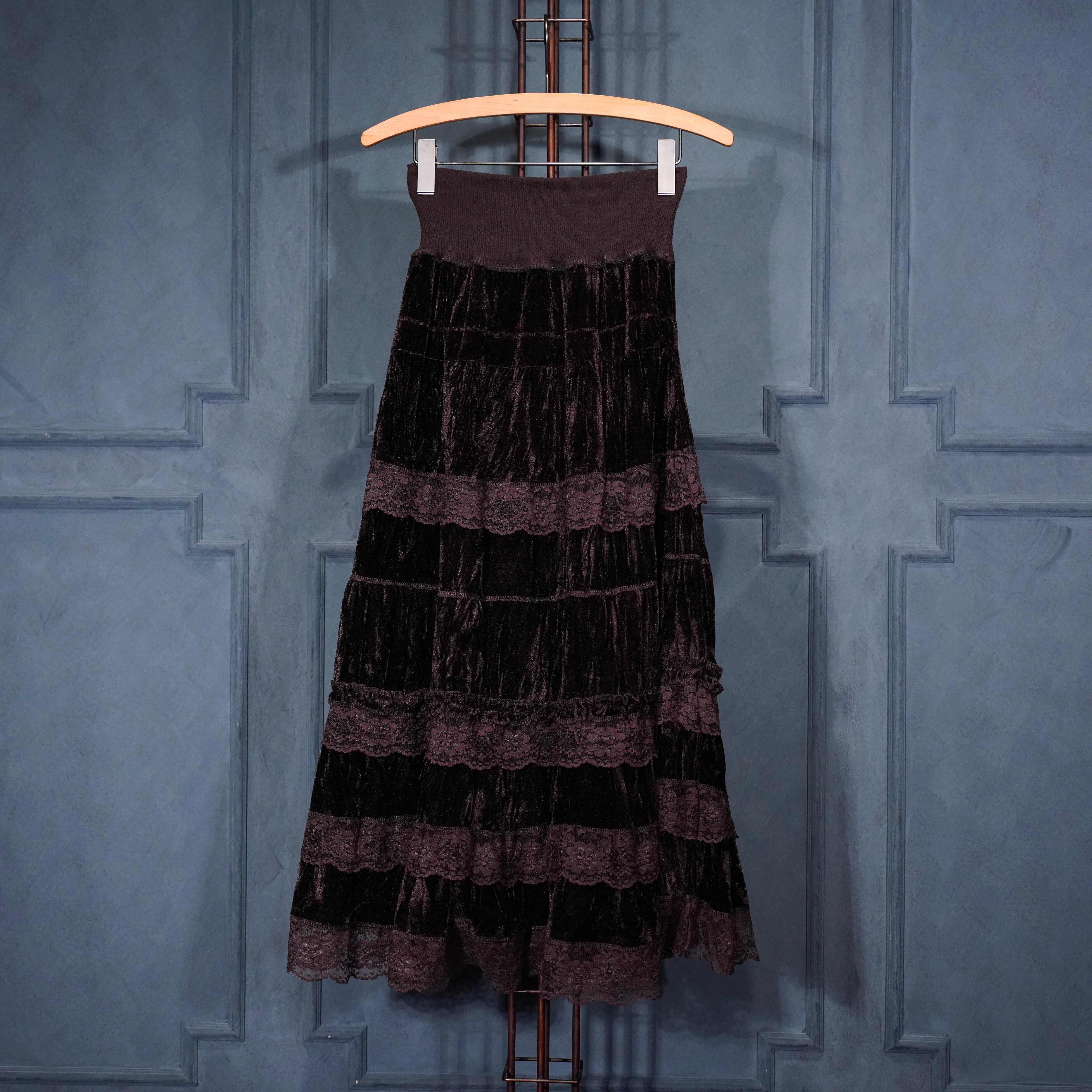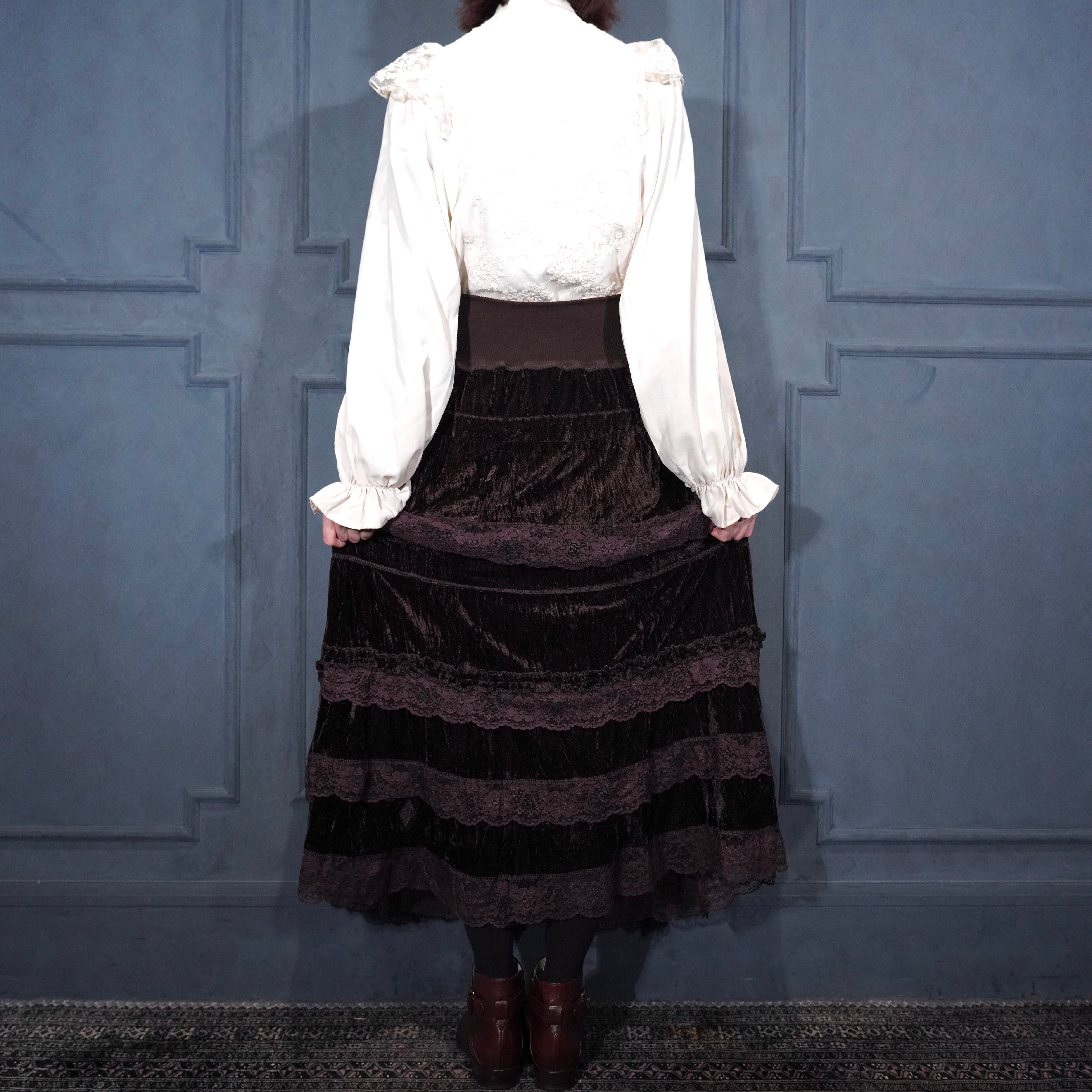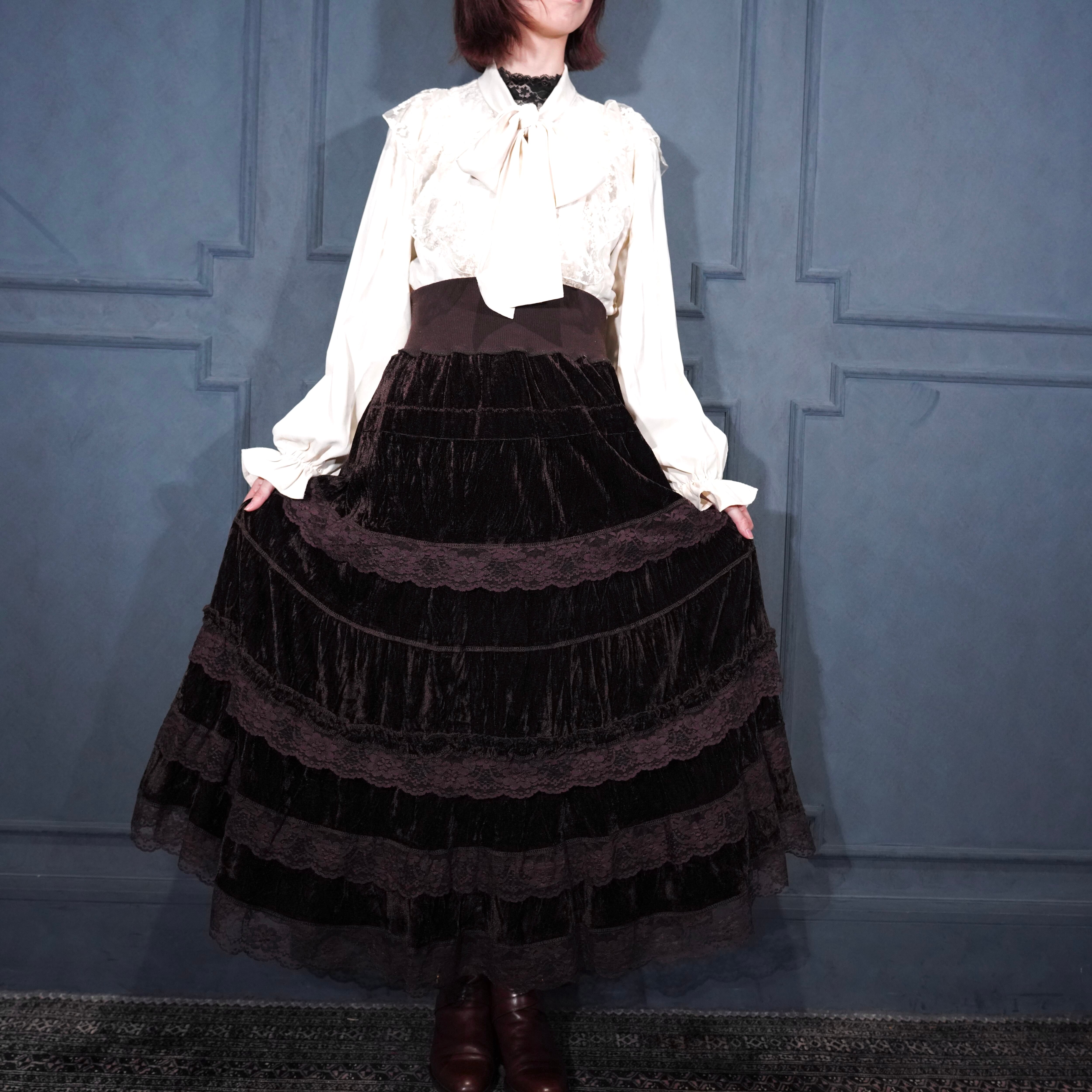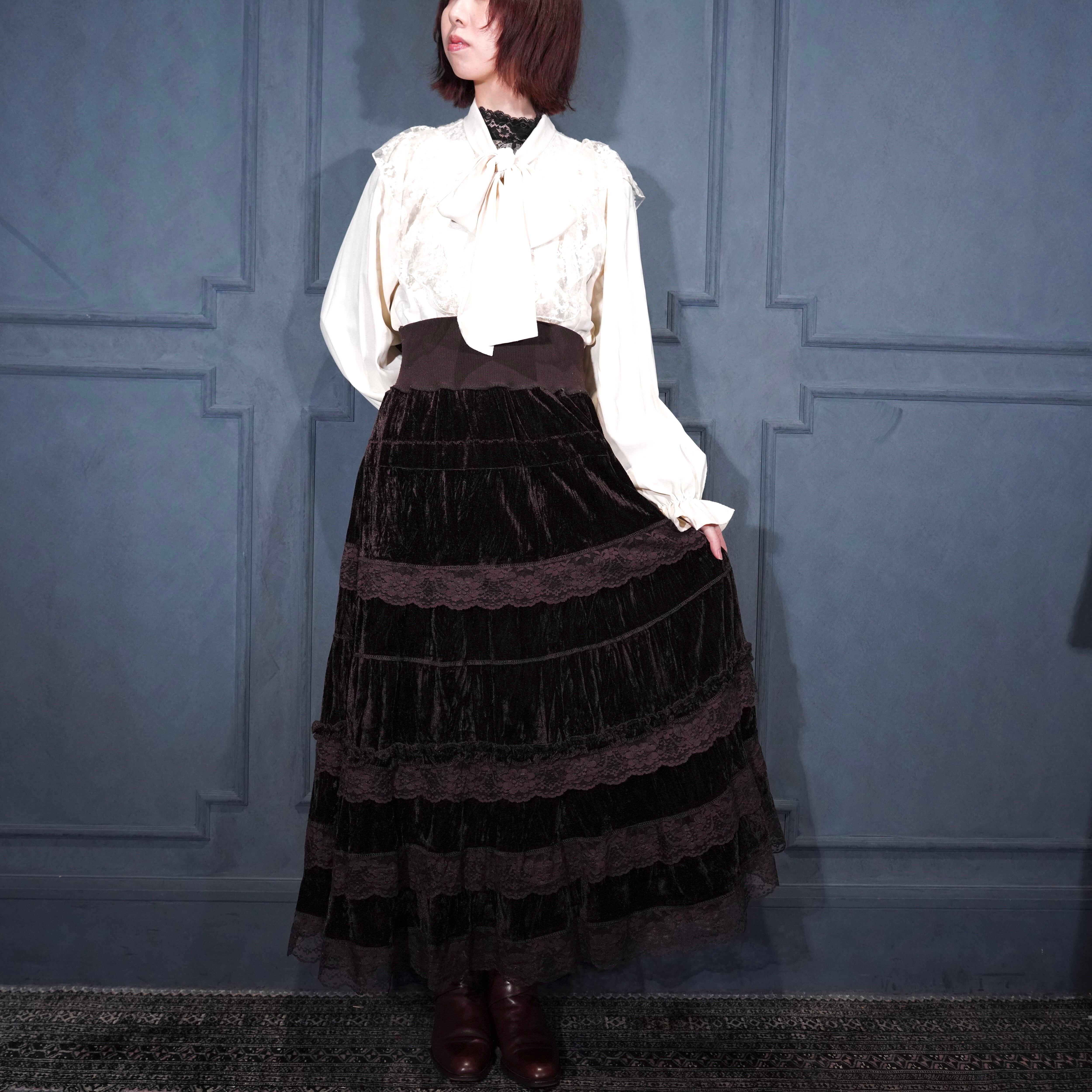 EU VINTAGE MISS O&Y LACE DESIGN VELOUR LONG SKIRT/ヨーロッパ古着レースデザインベロアロングスカート