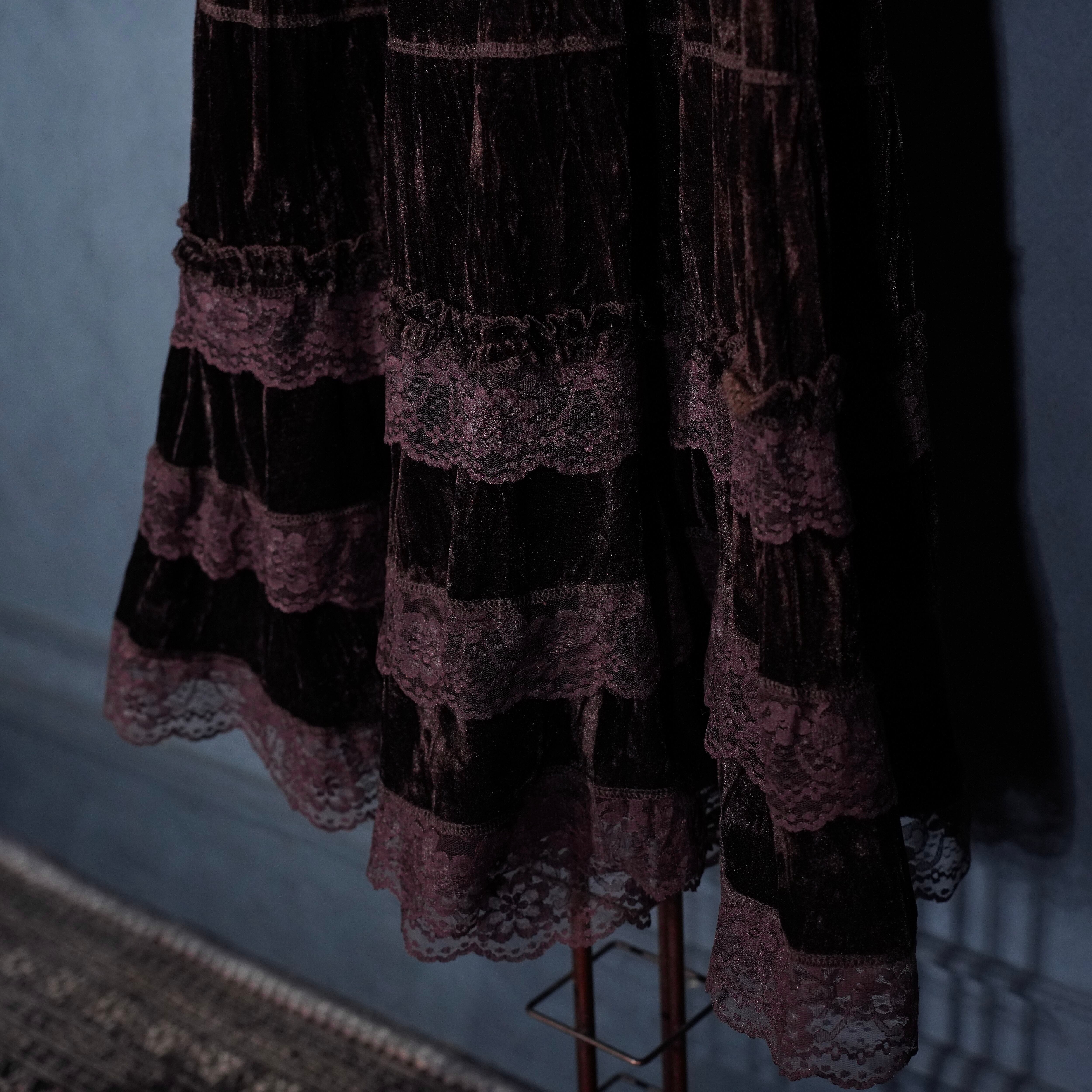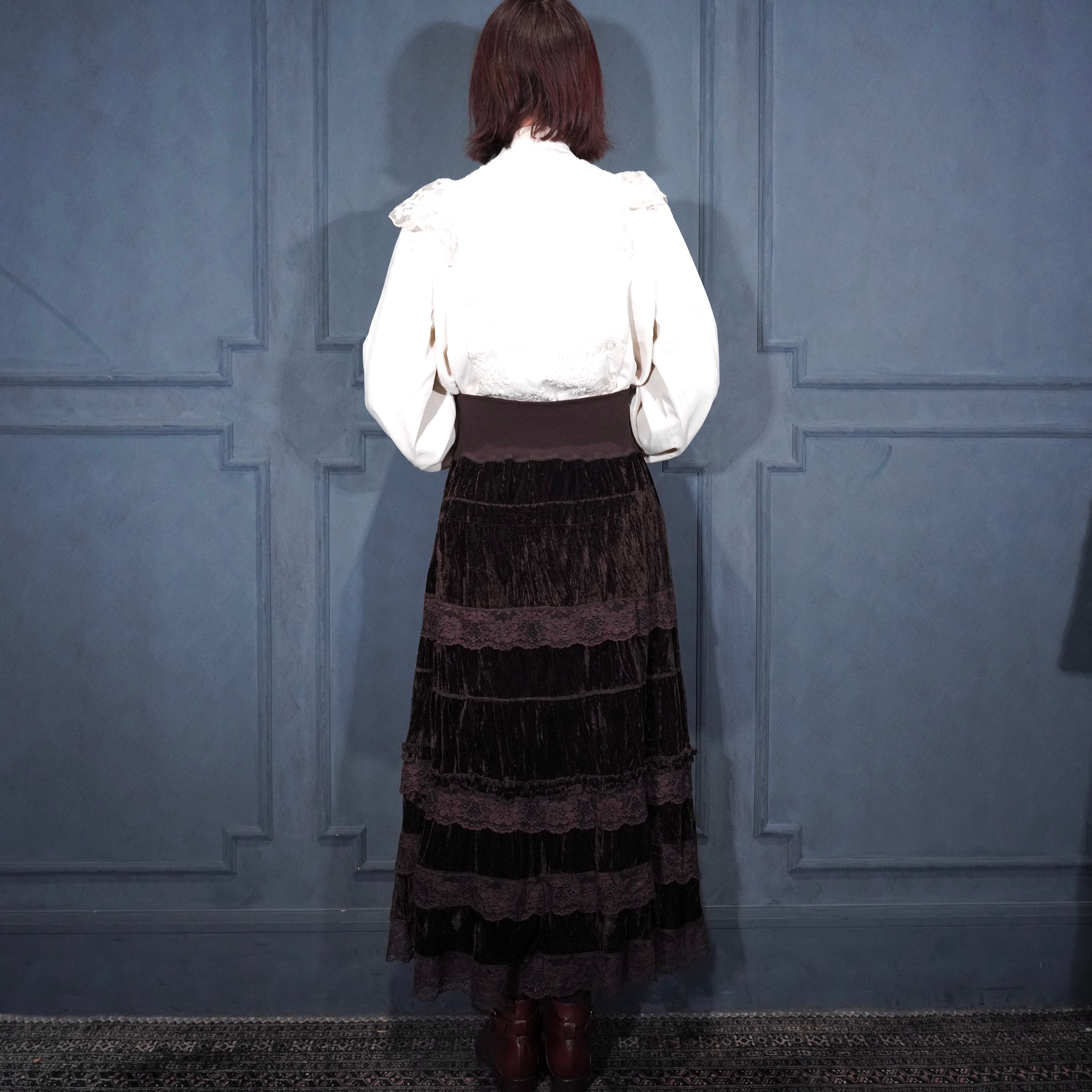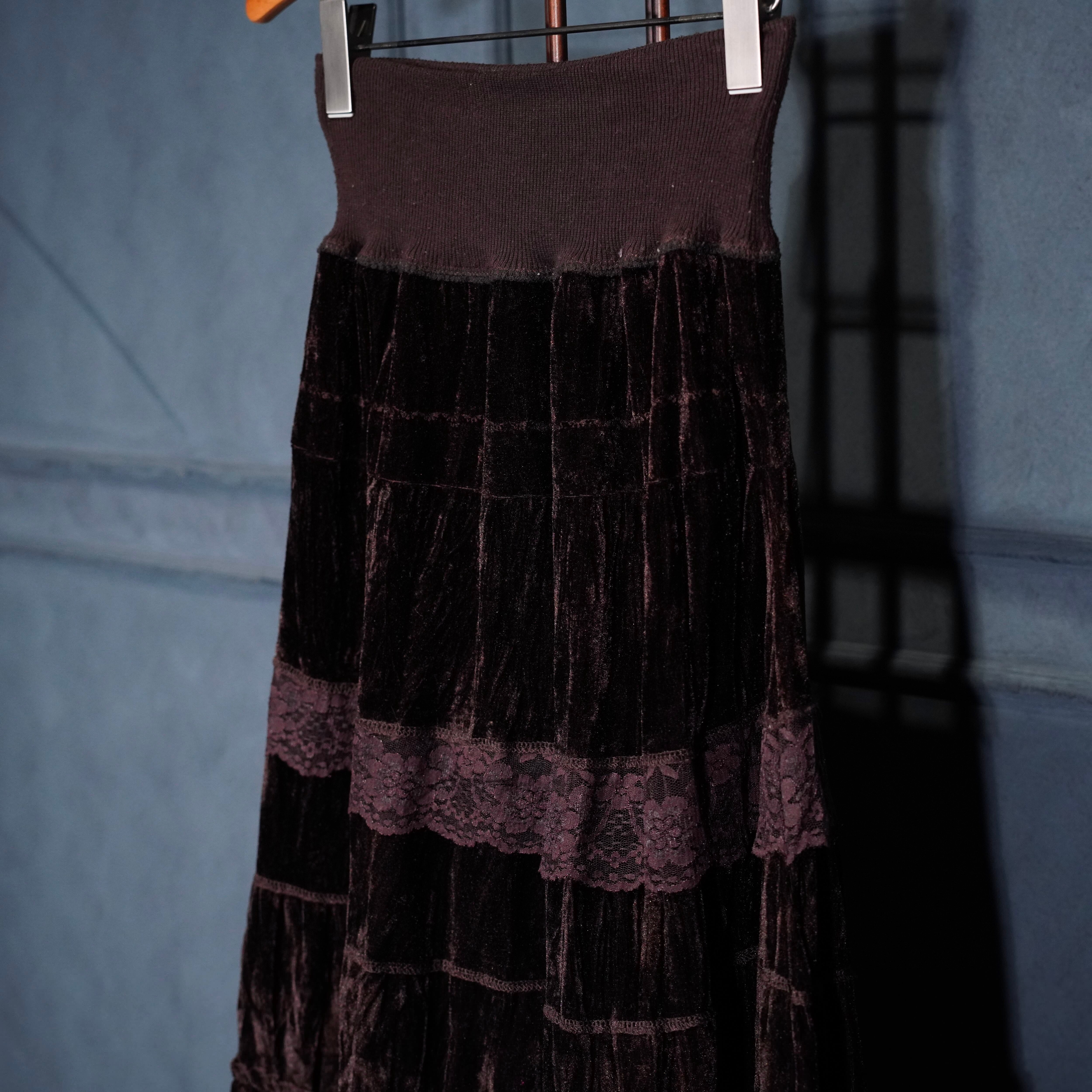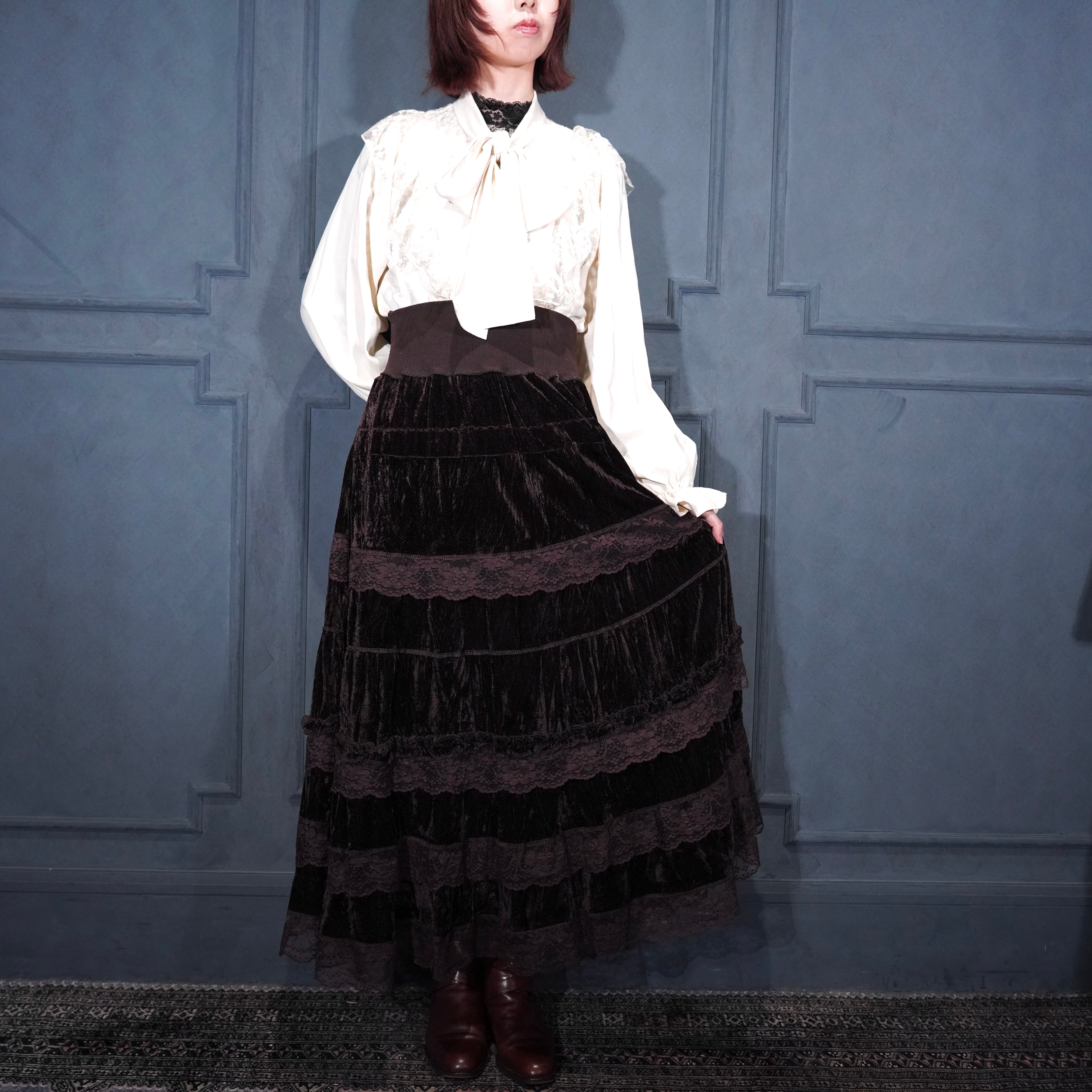 EU VINTAGE MISS O&Y LACE DESIGN VELOUR LONG SKIRT/ヨーロッパ古着レースデザインベロアロングスカート