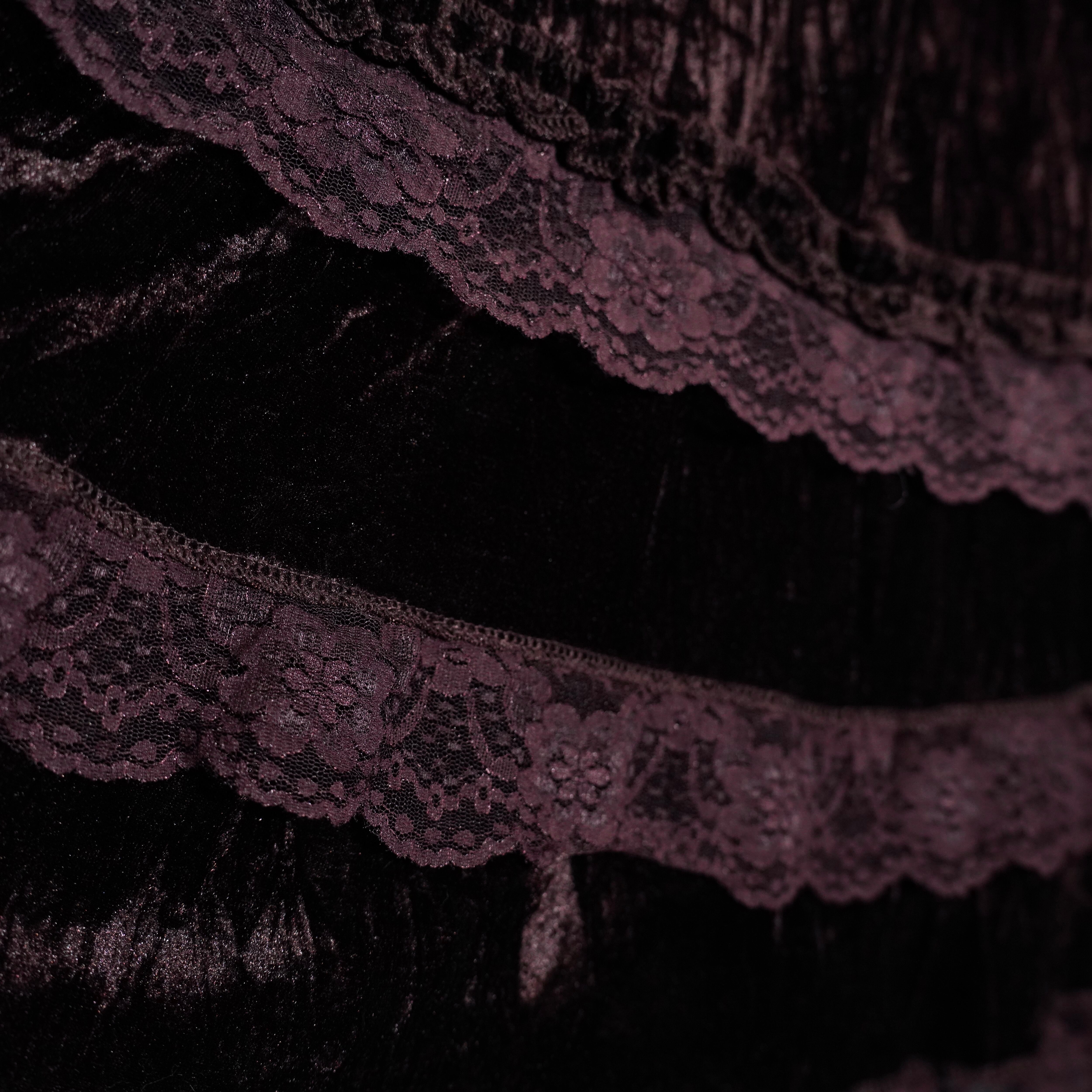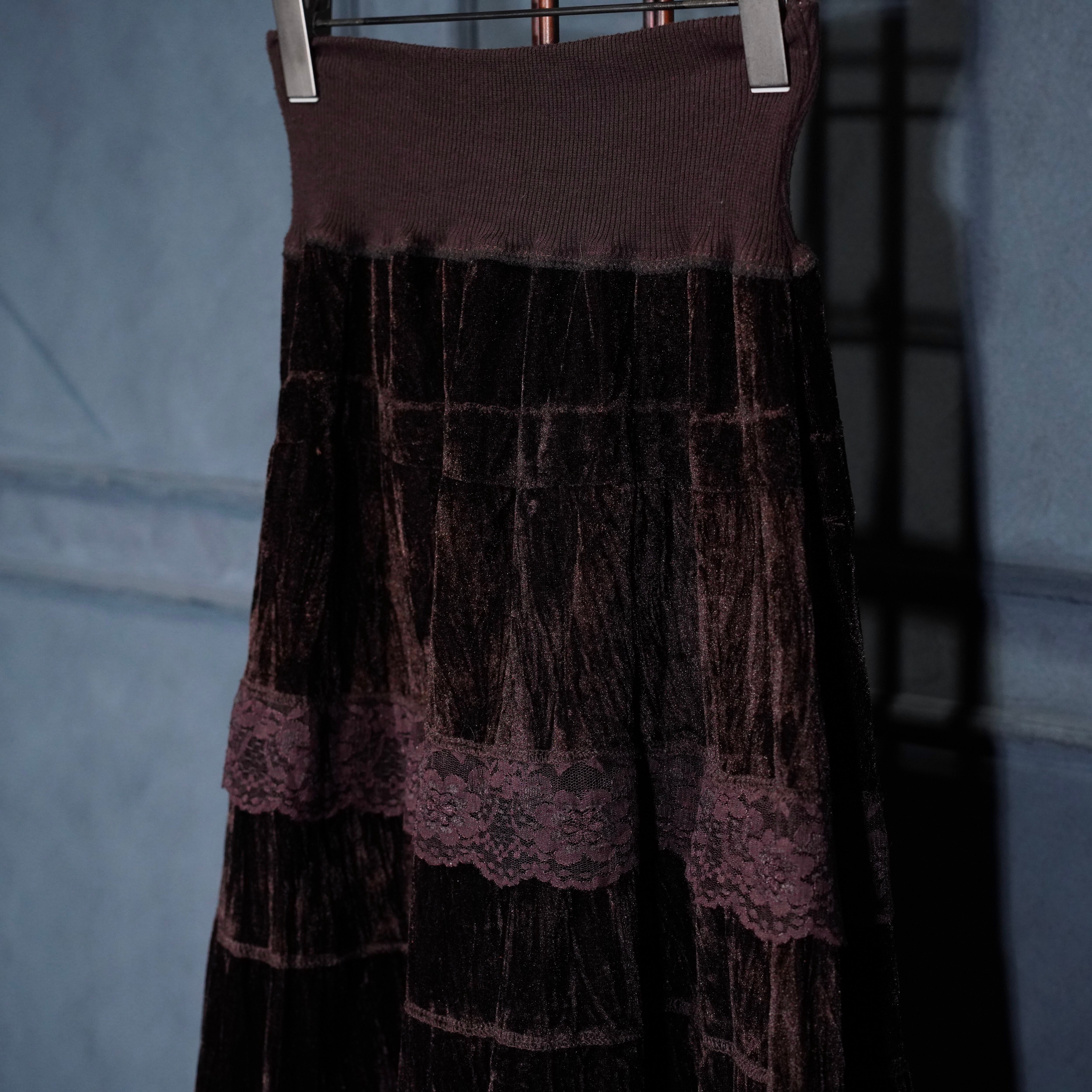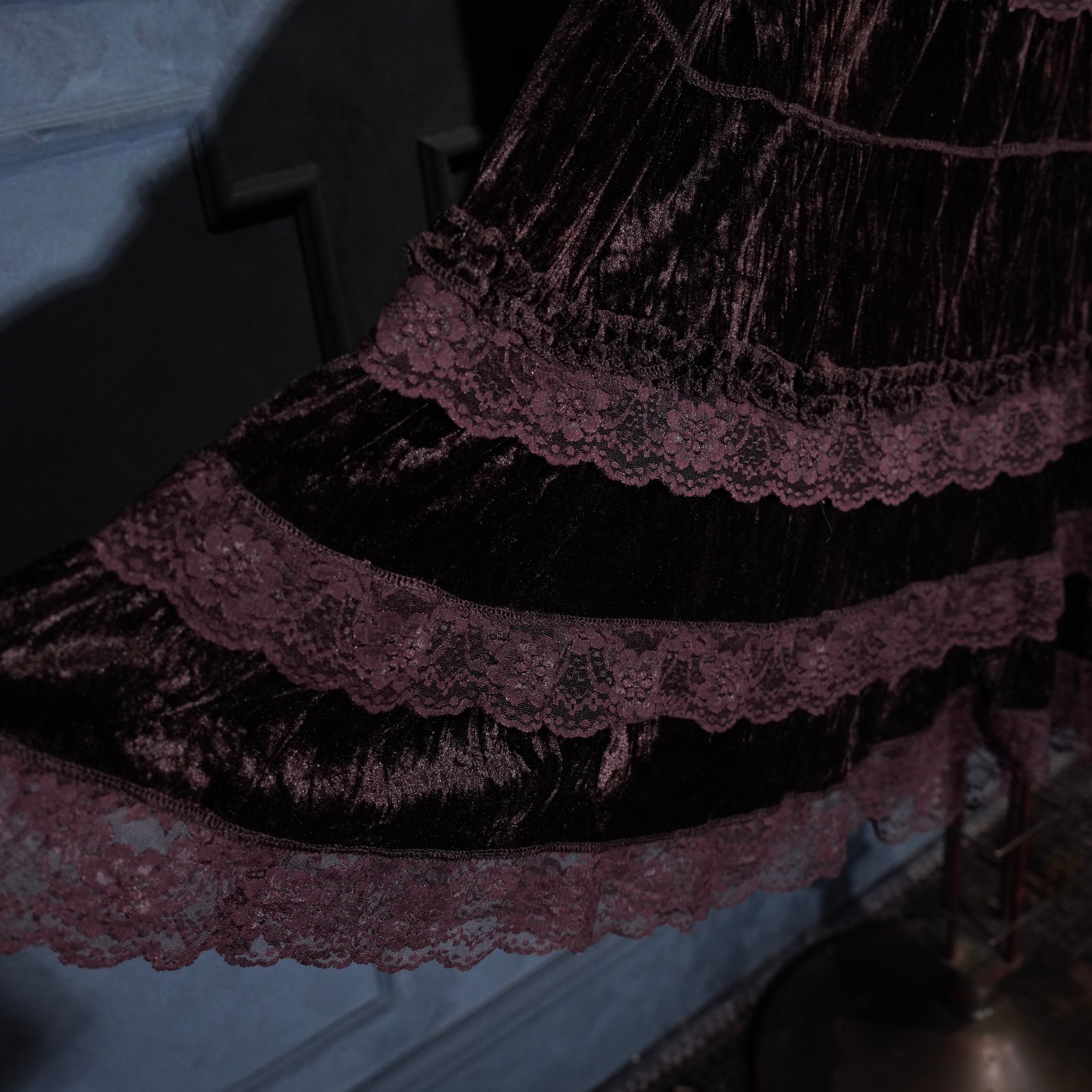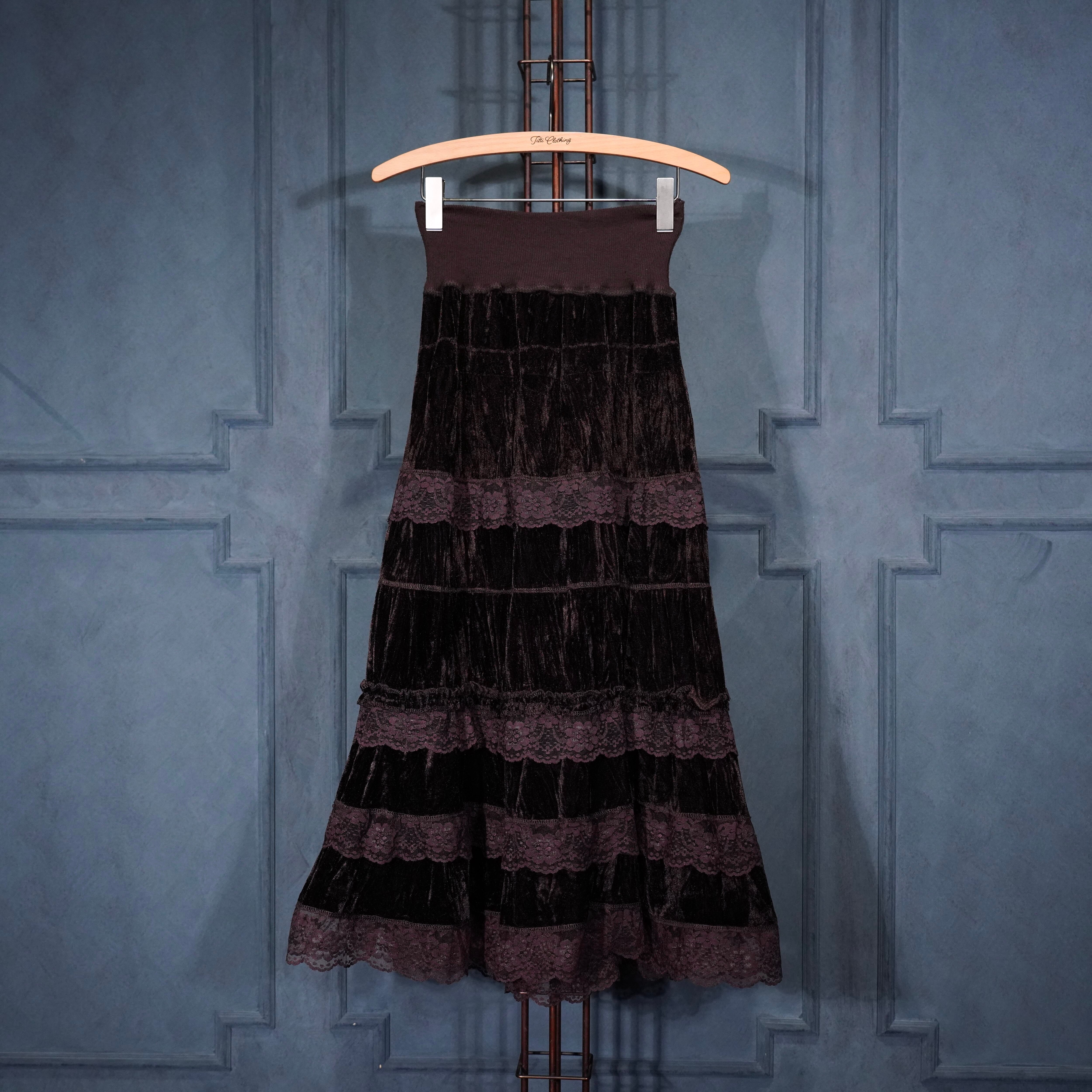 EU VINTAGE MISS O&Y LACE DESIGN VELOUR LONG SKIRT/ヨーロッパ古着レースデザインベロアロングスカート