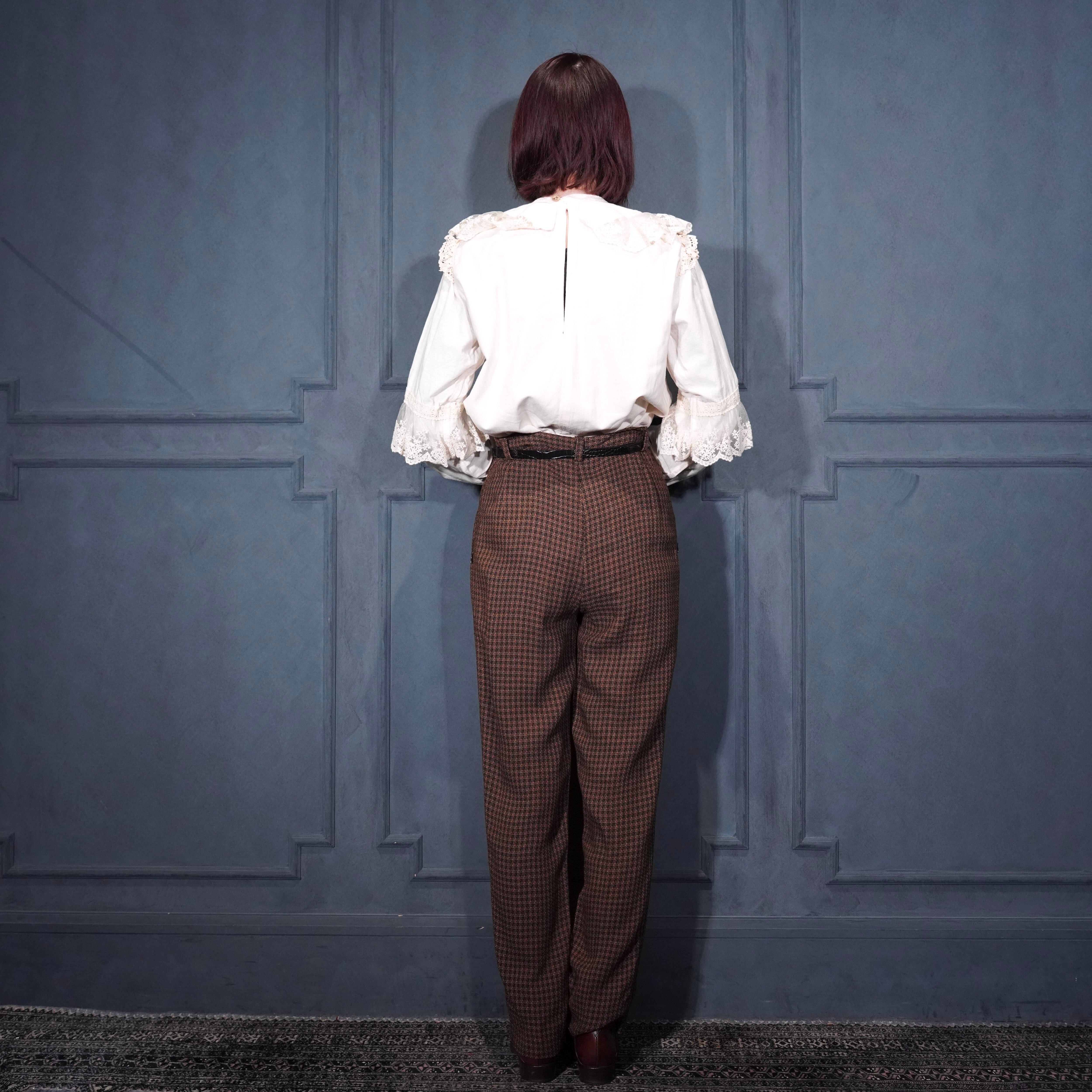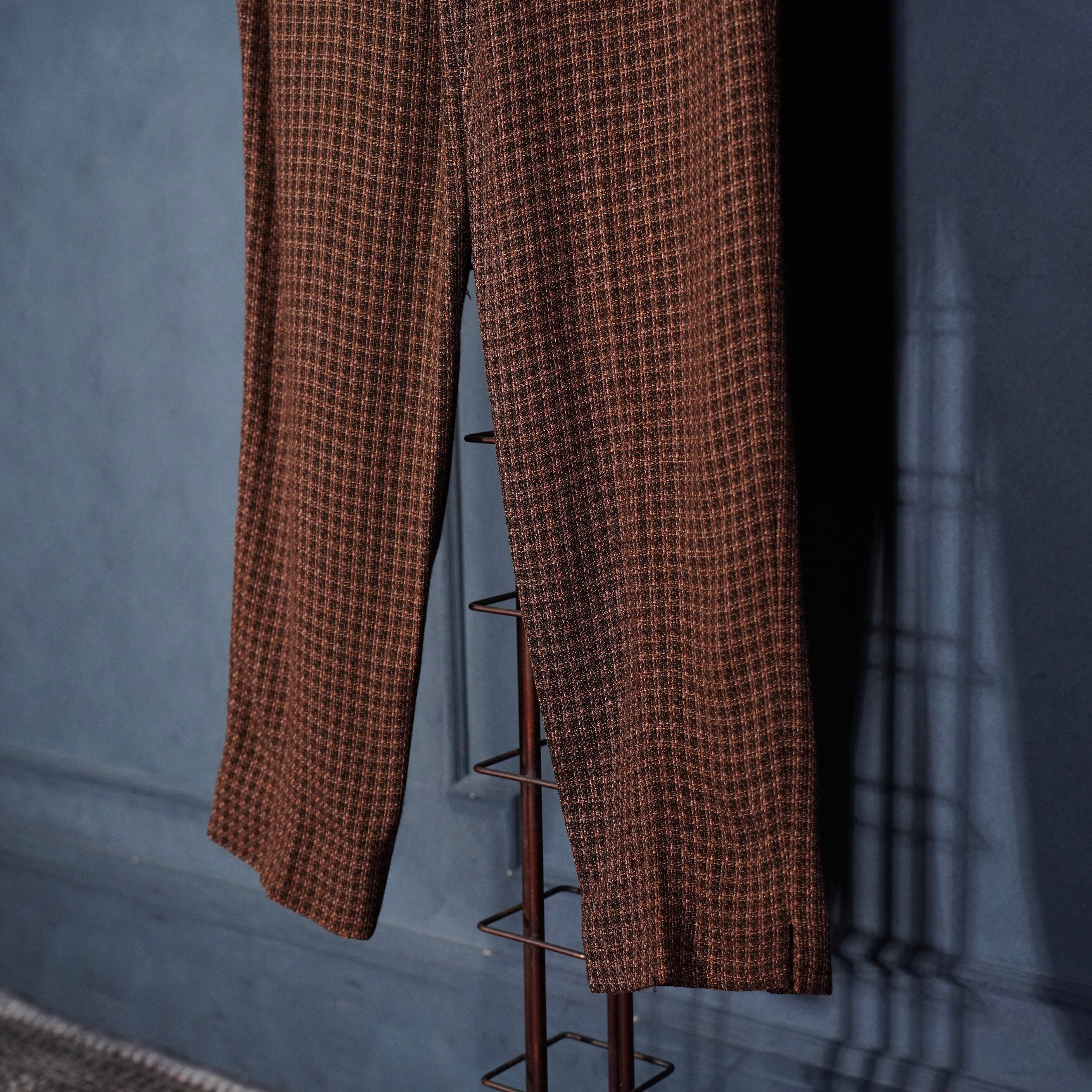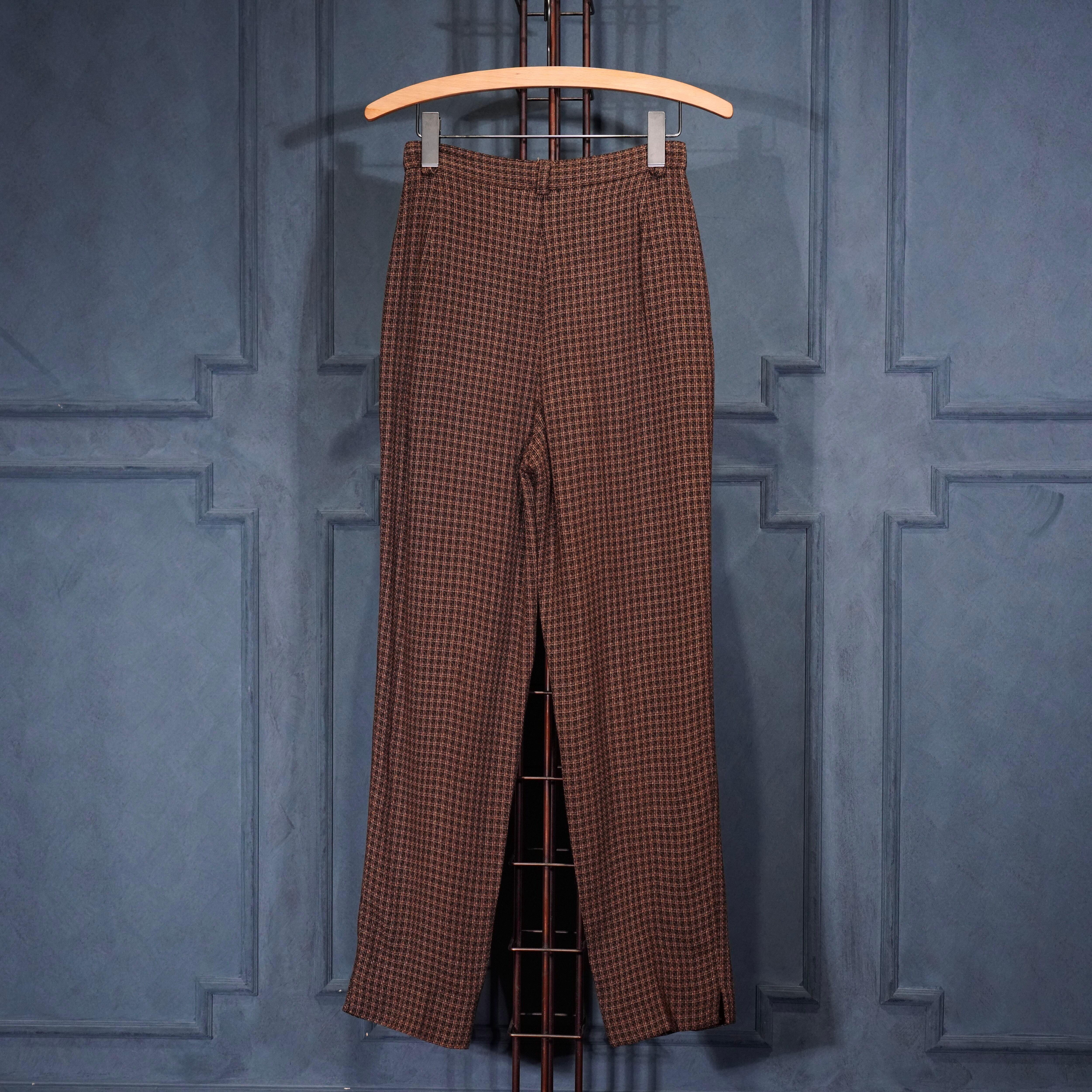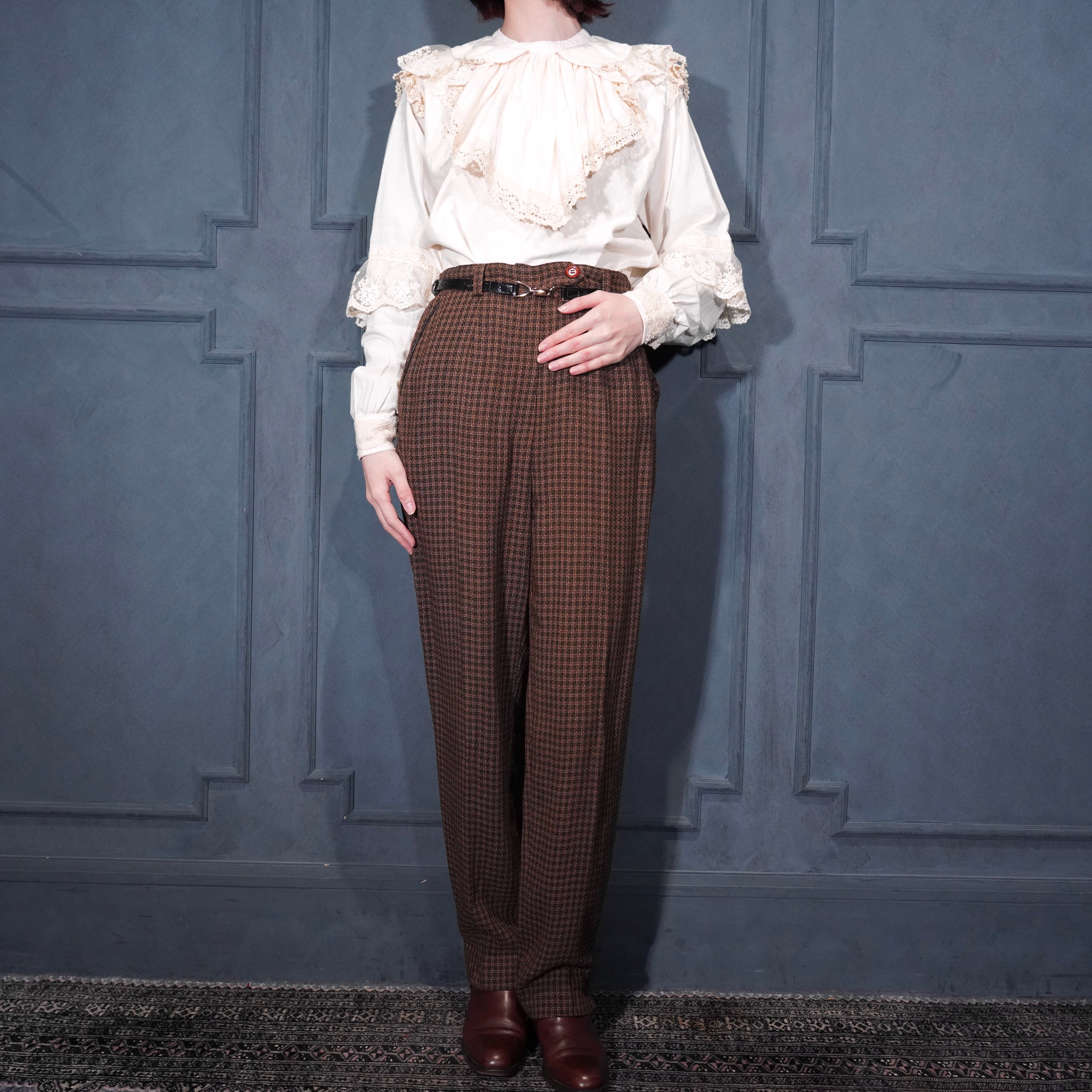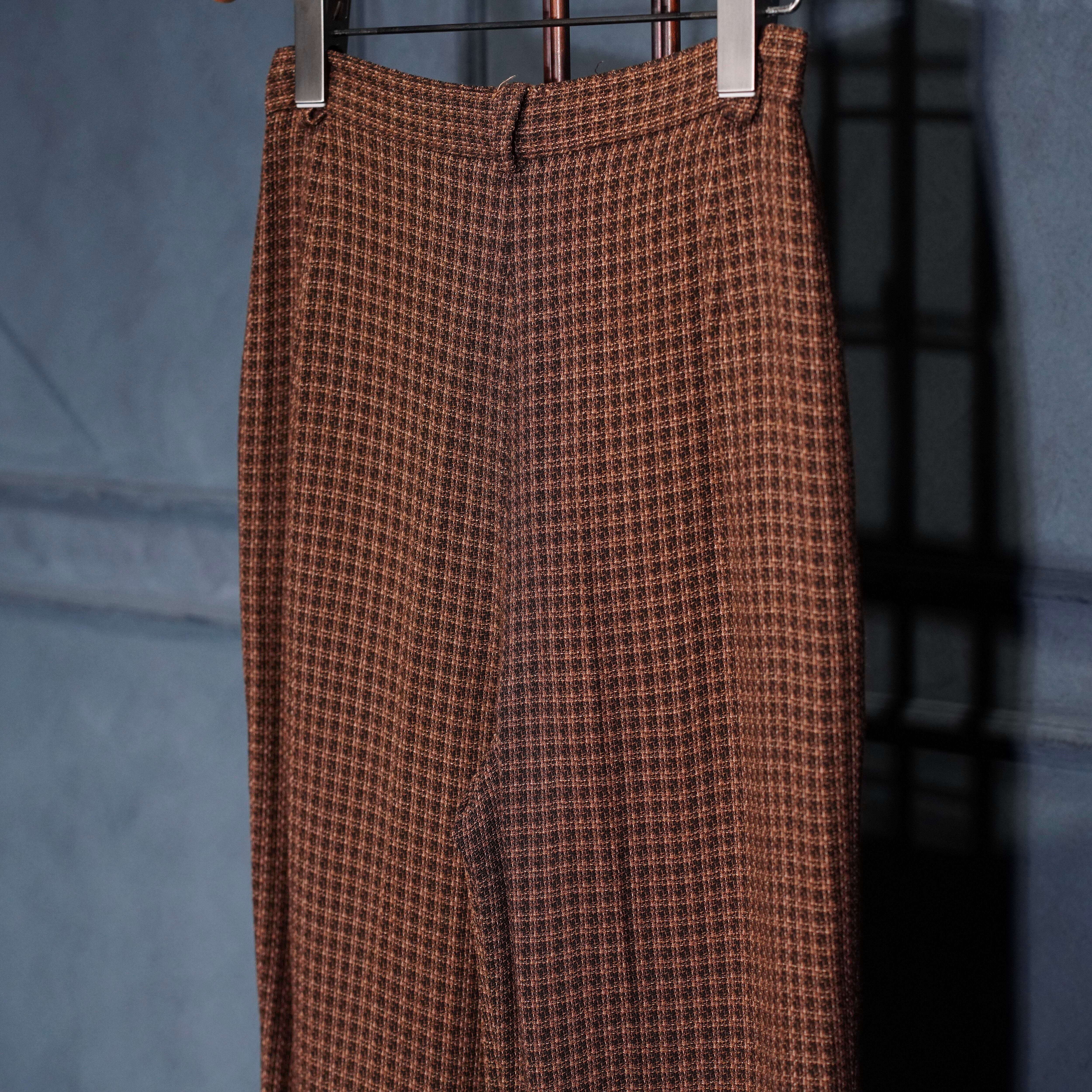EU VINTAGE UNANYME DE GEORGES RECH CHECK PATTERNED WOVEN DESIGN TOROMI SLACKS PANTS/ヨーロッパ古着チェック柄織デザインとろみスラックスパンツ