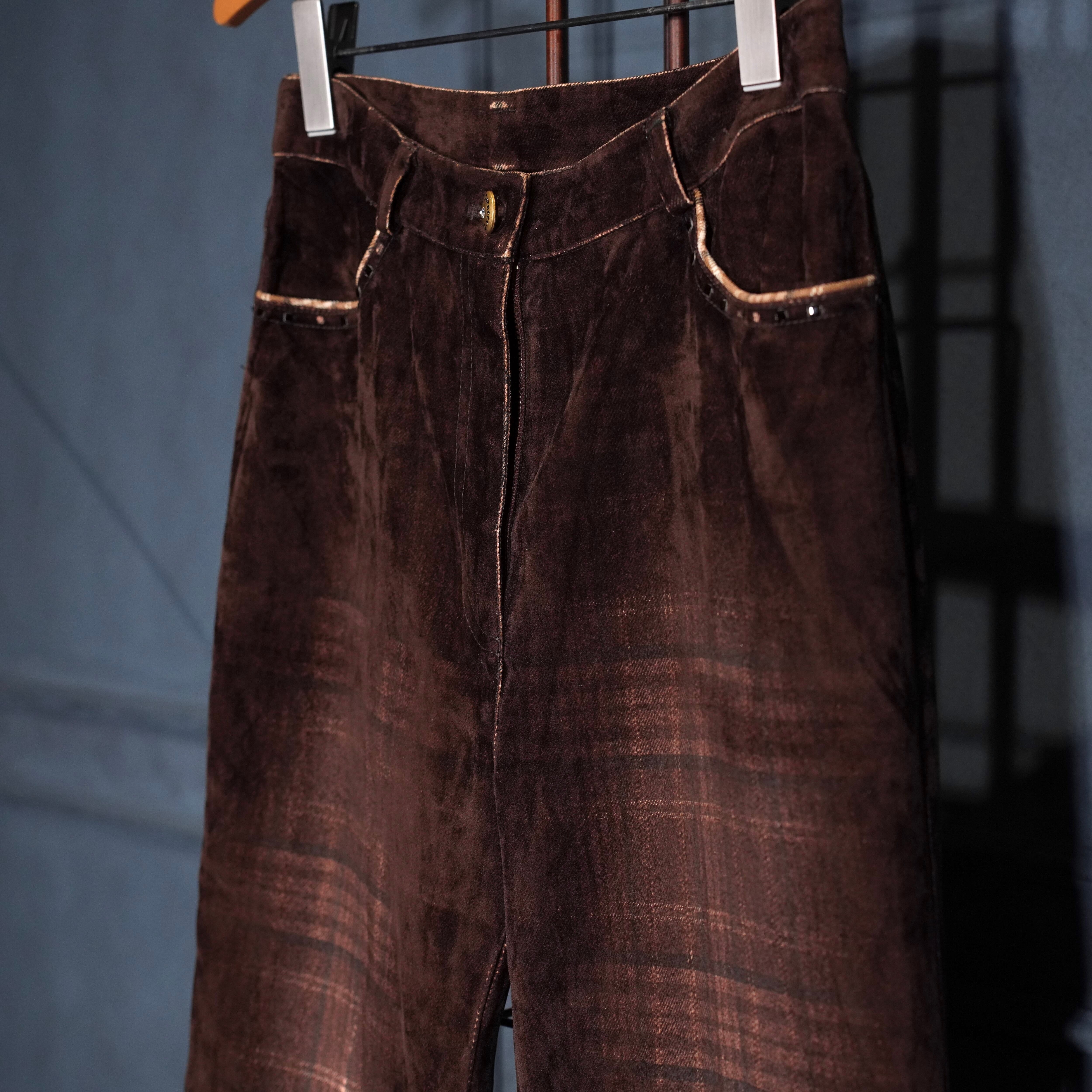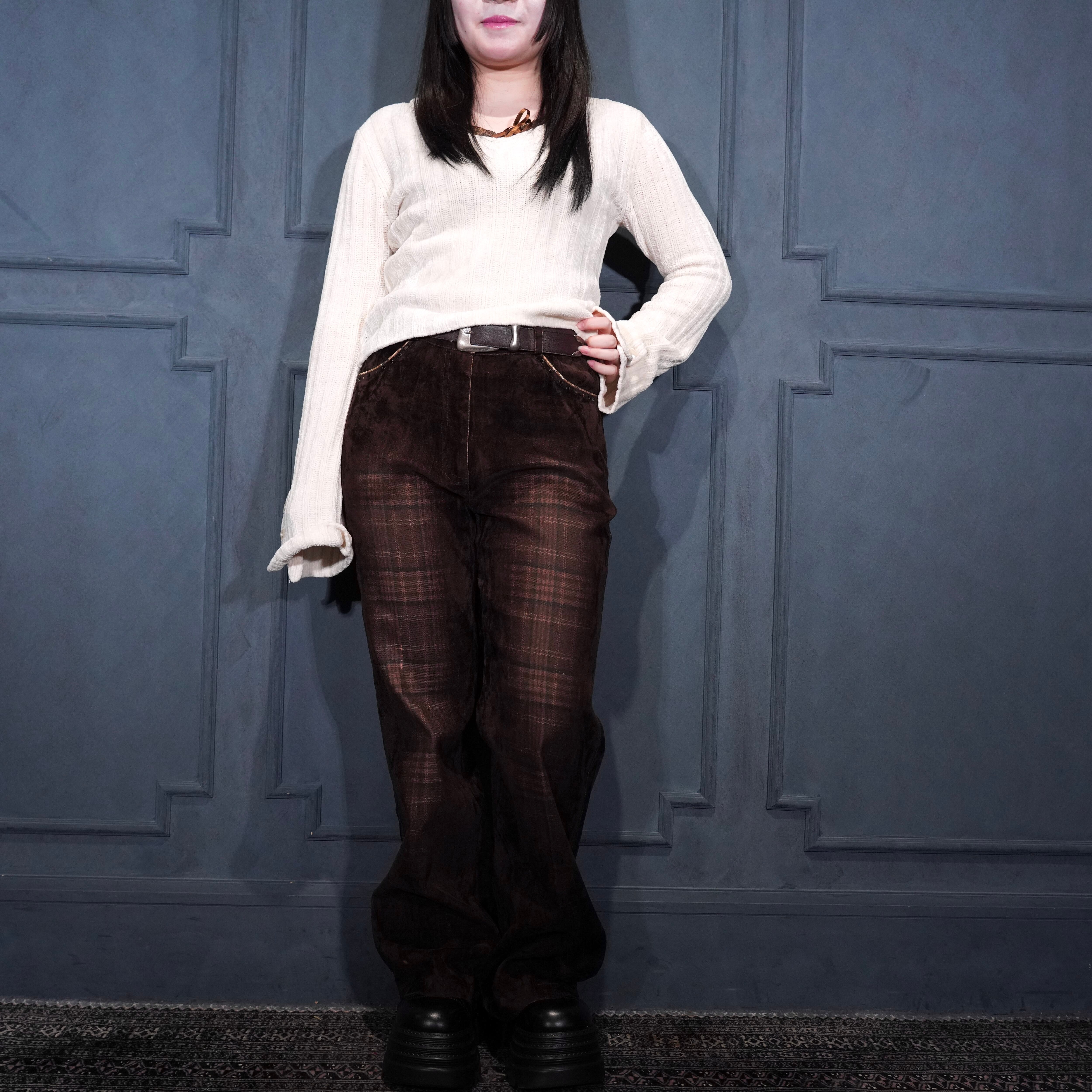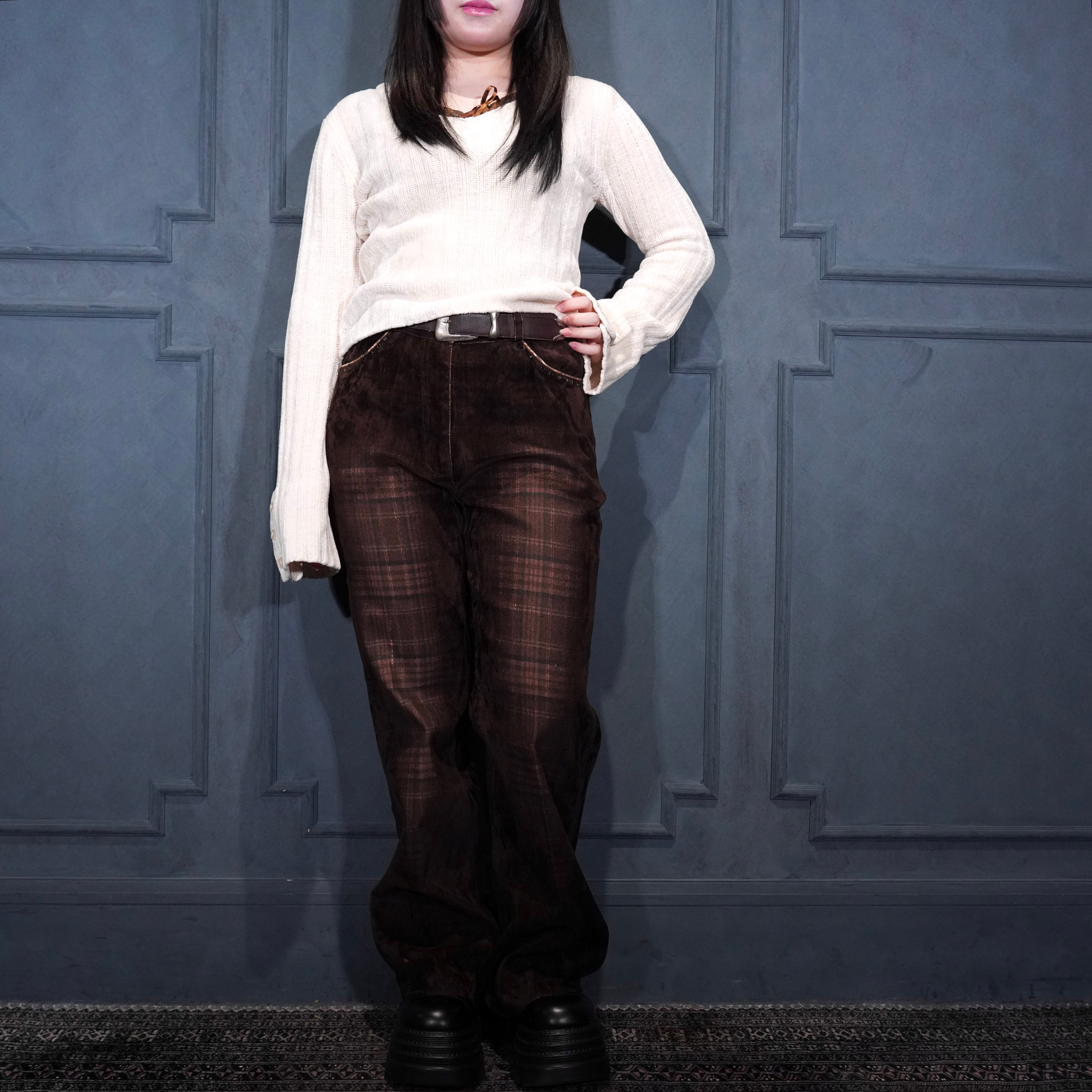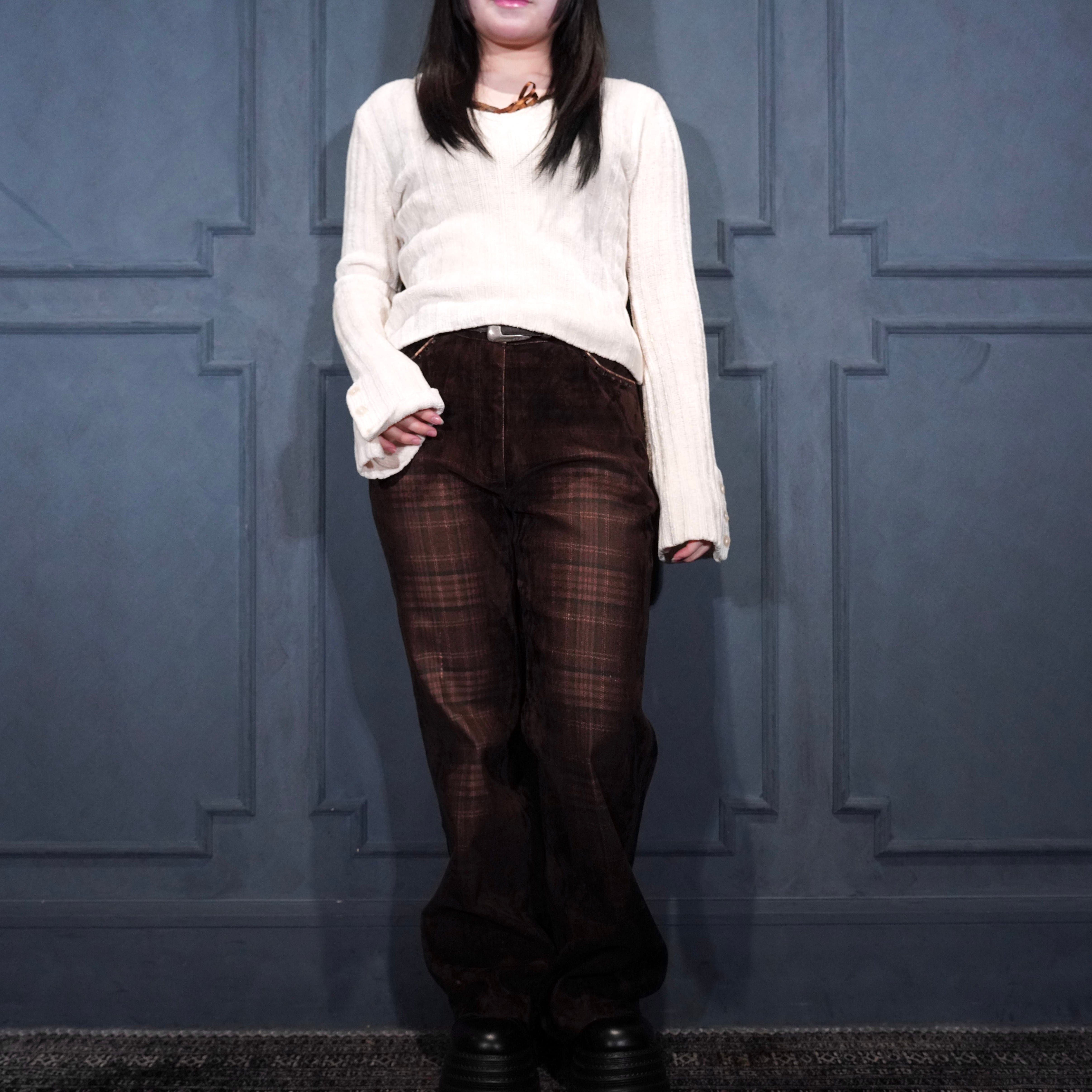 EU VINTAGE FADED CHECK PATTERNED DESIGN PANTS/ヨーロッパ古着フェードチェック柄デザインパンツ