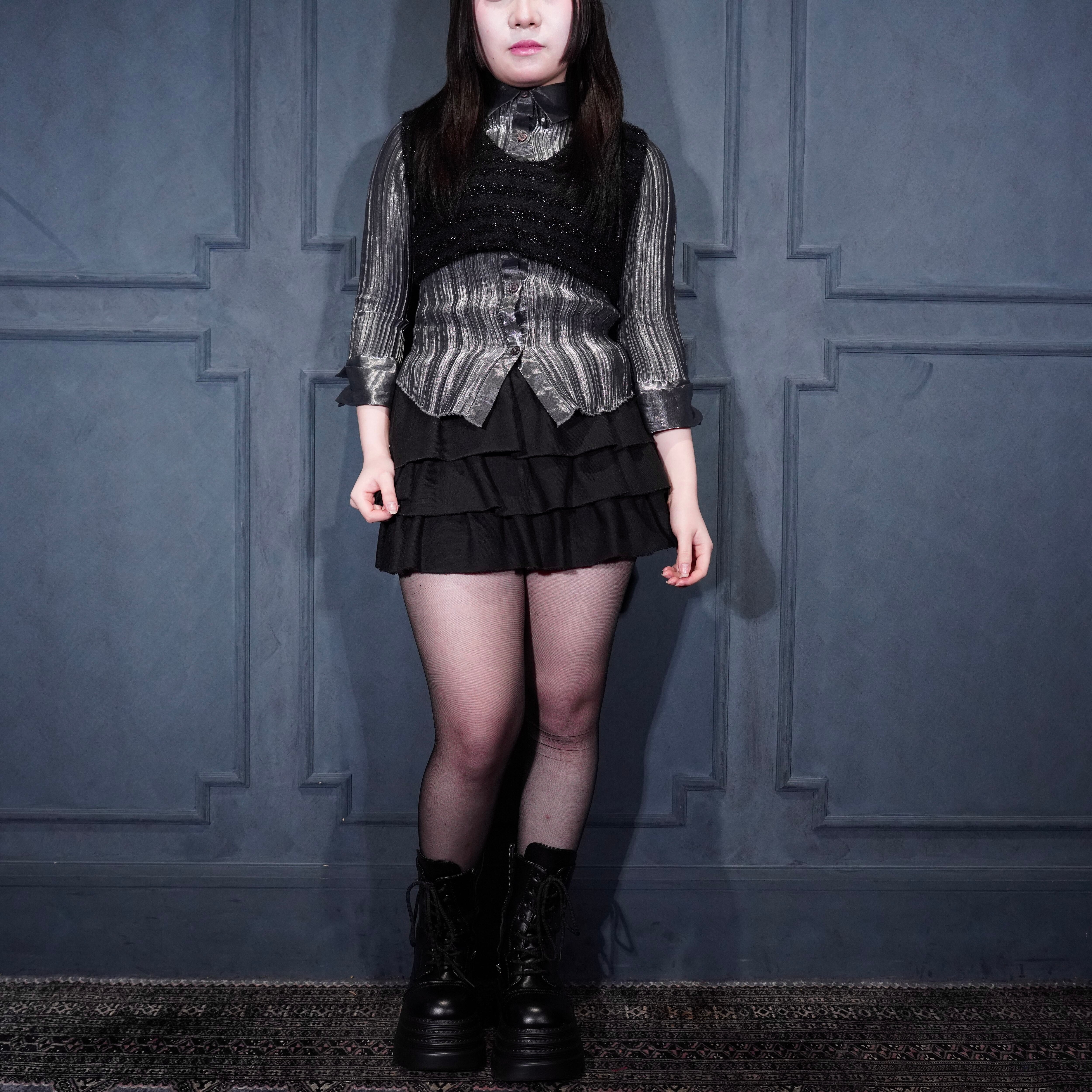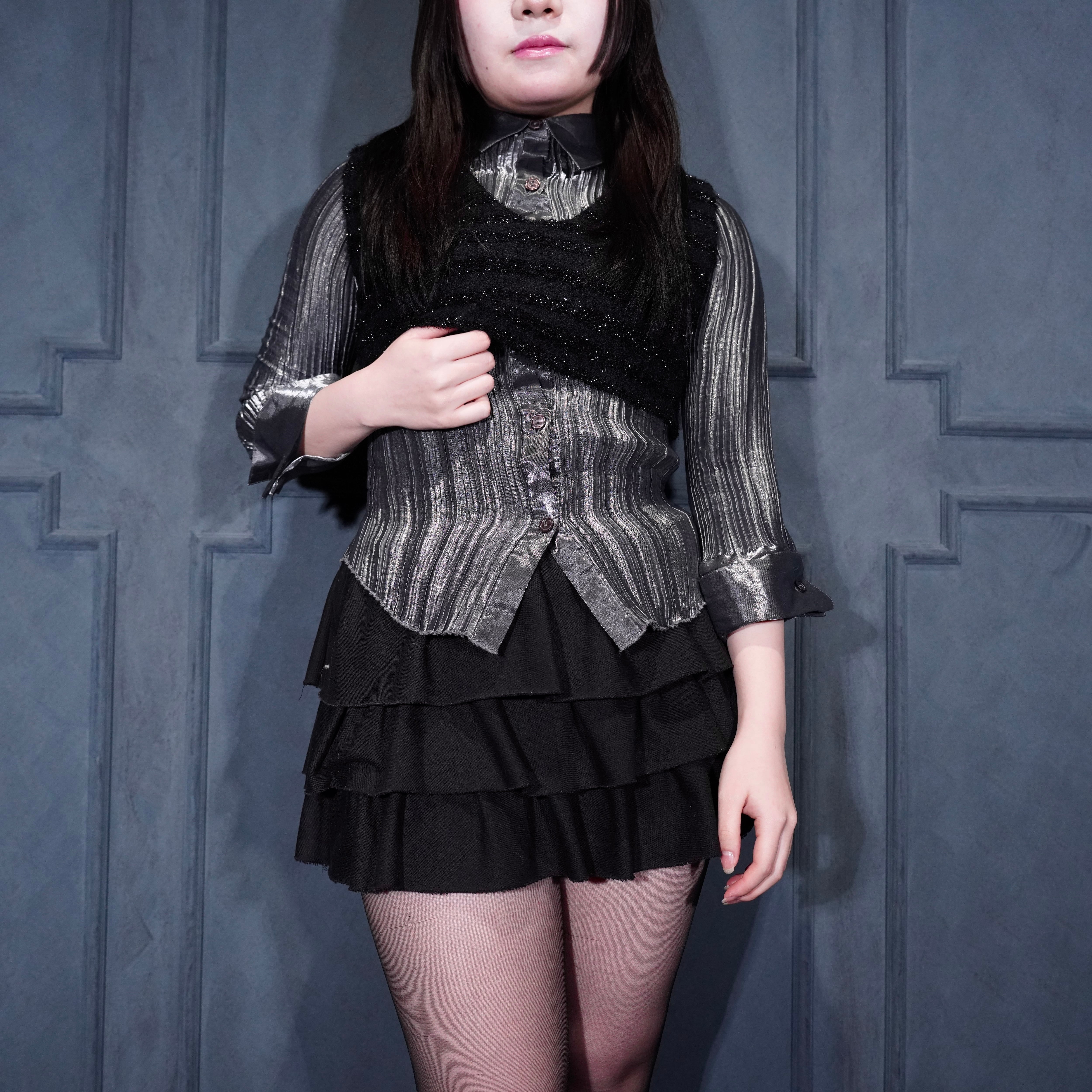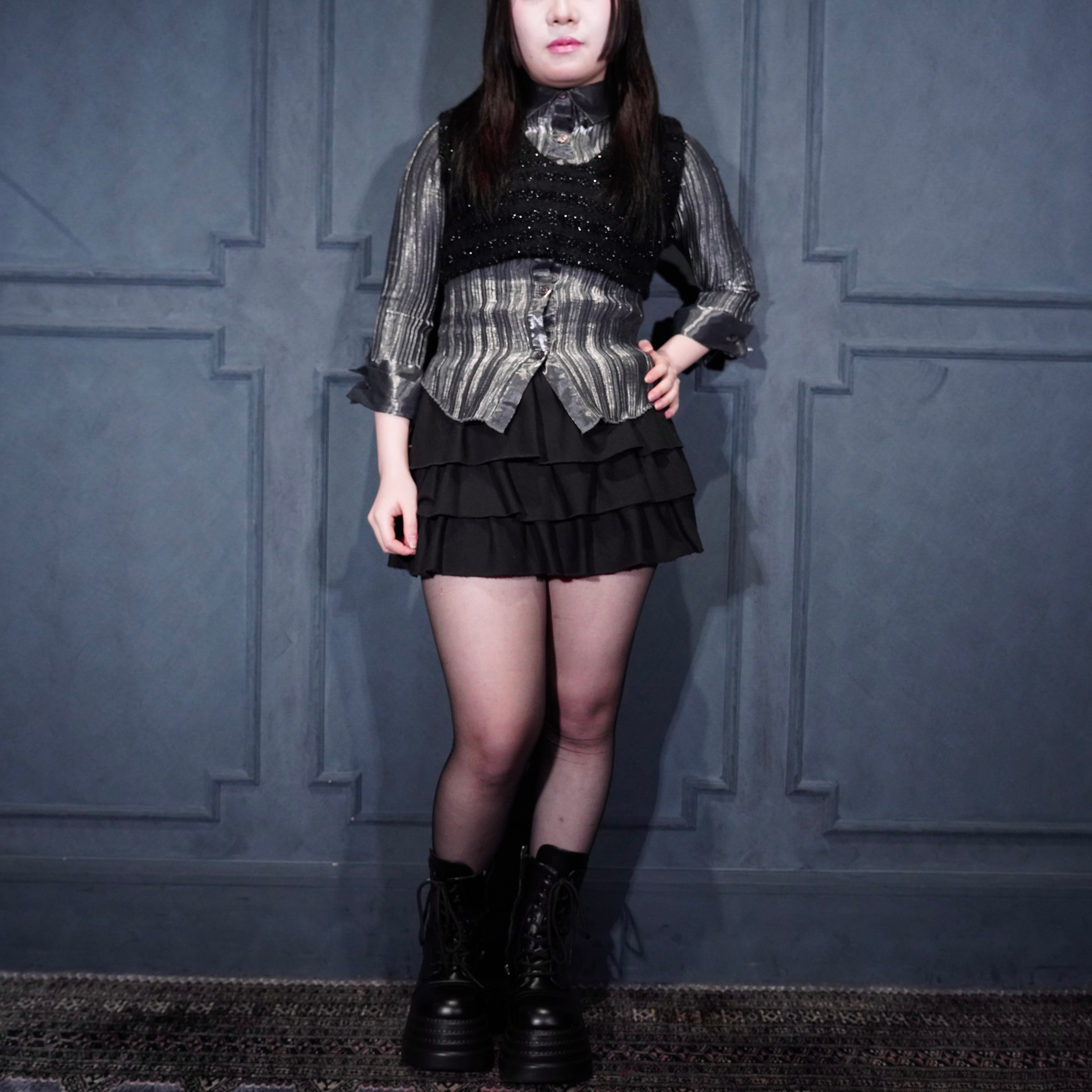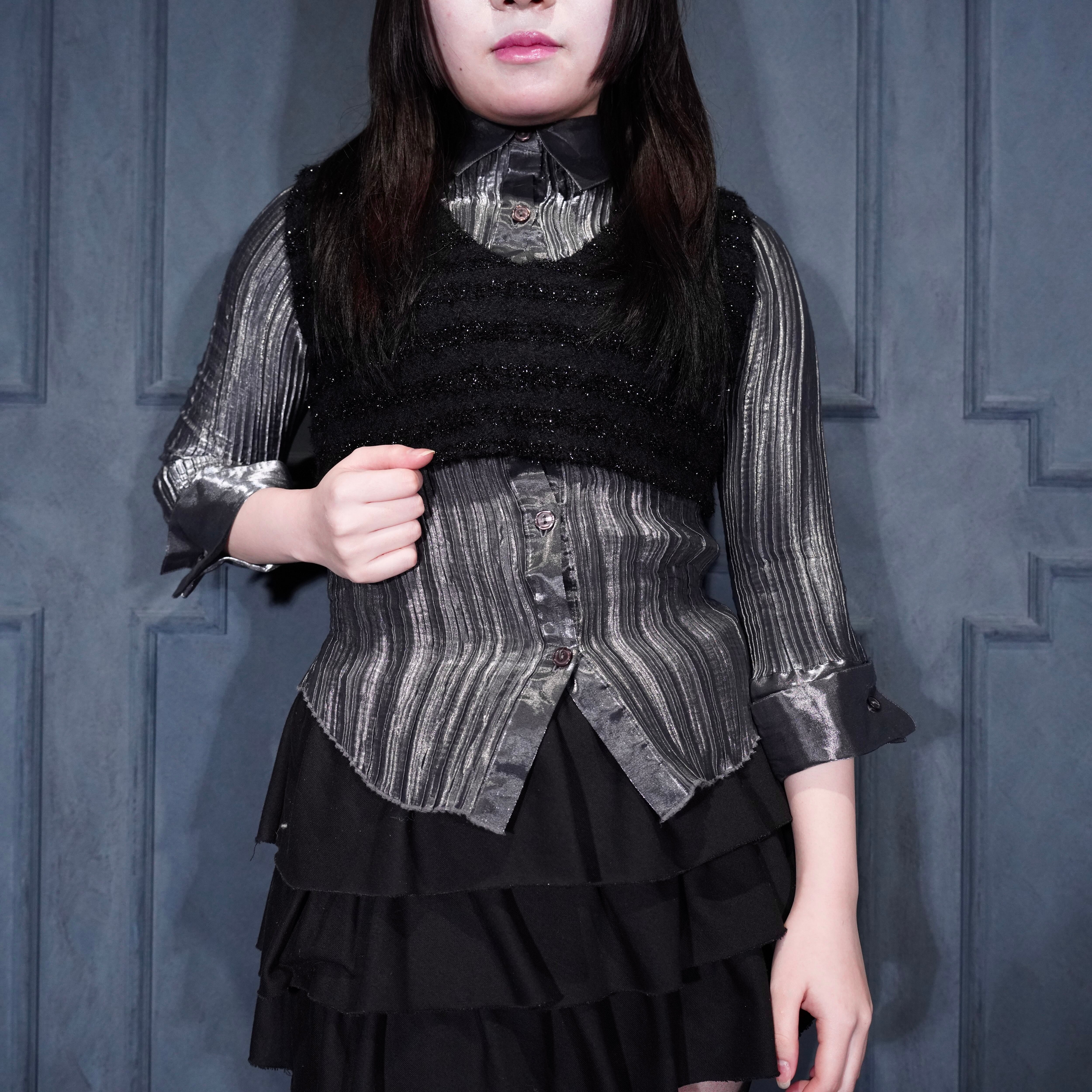 USA VINTAGE Bighet da Canel GRITTER BORDER PATTERNED DESIGN BUSTIER/アメリカ古着グリッターボーダー柄デザインビスチェ(ニットベスト)