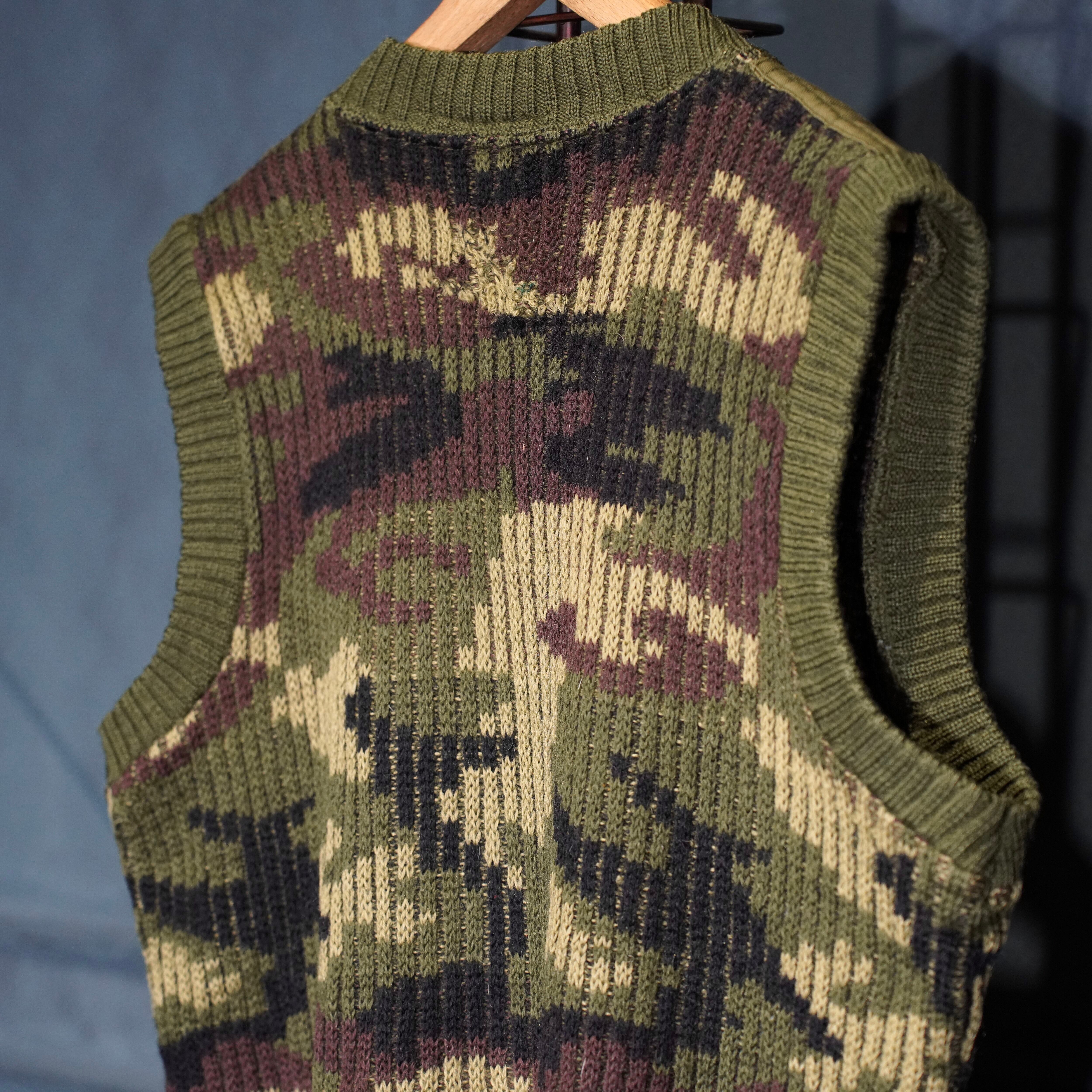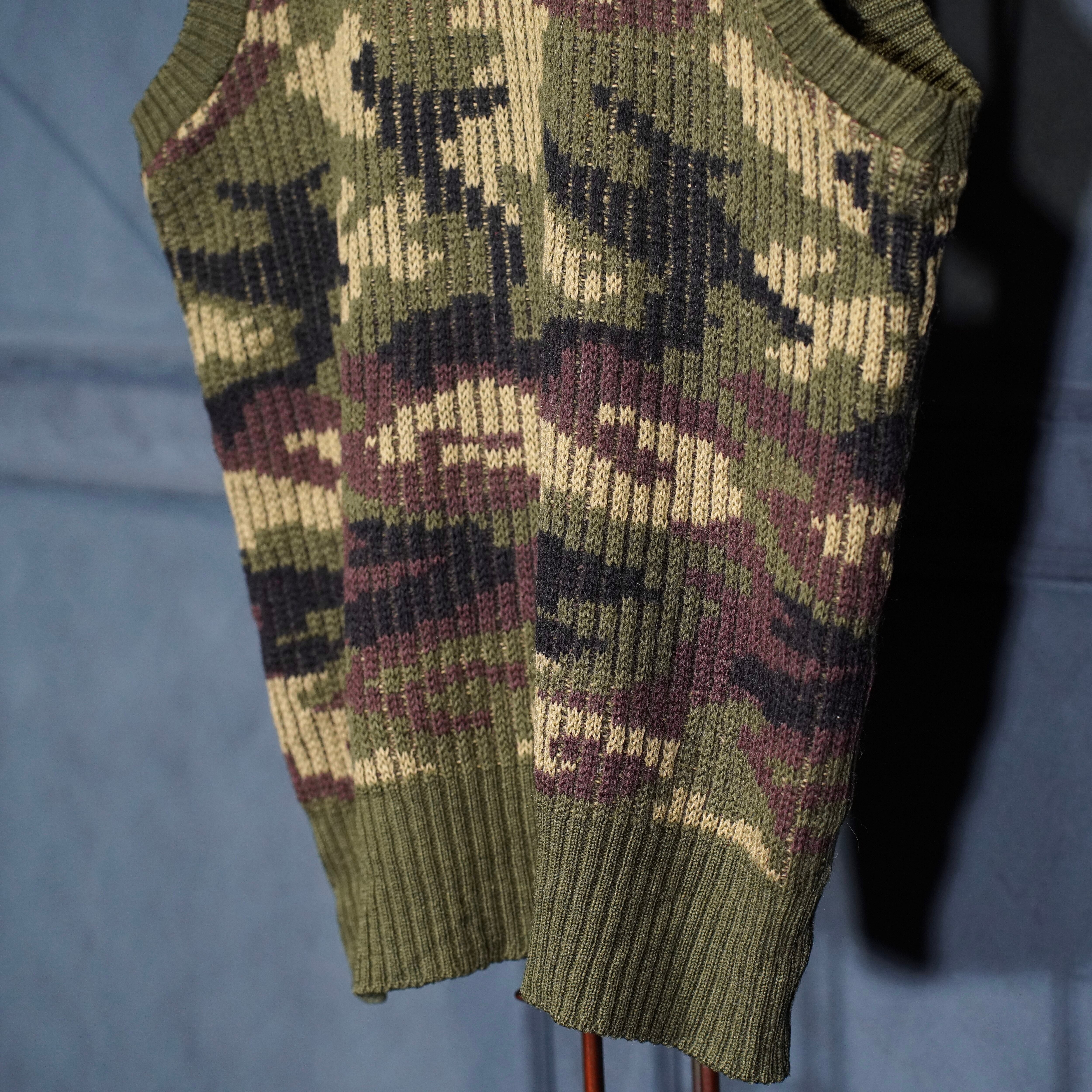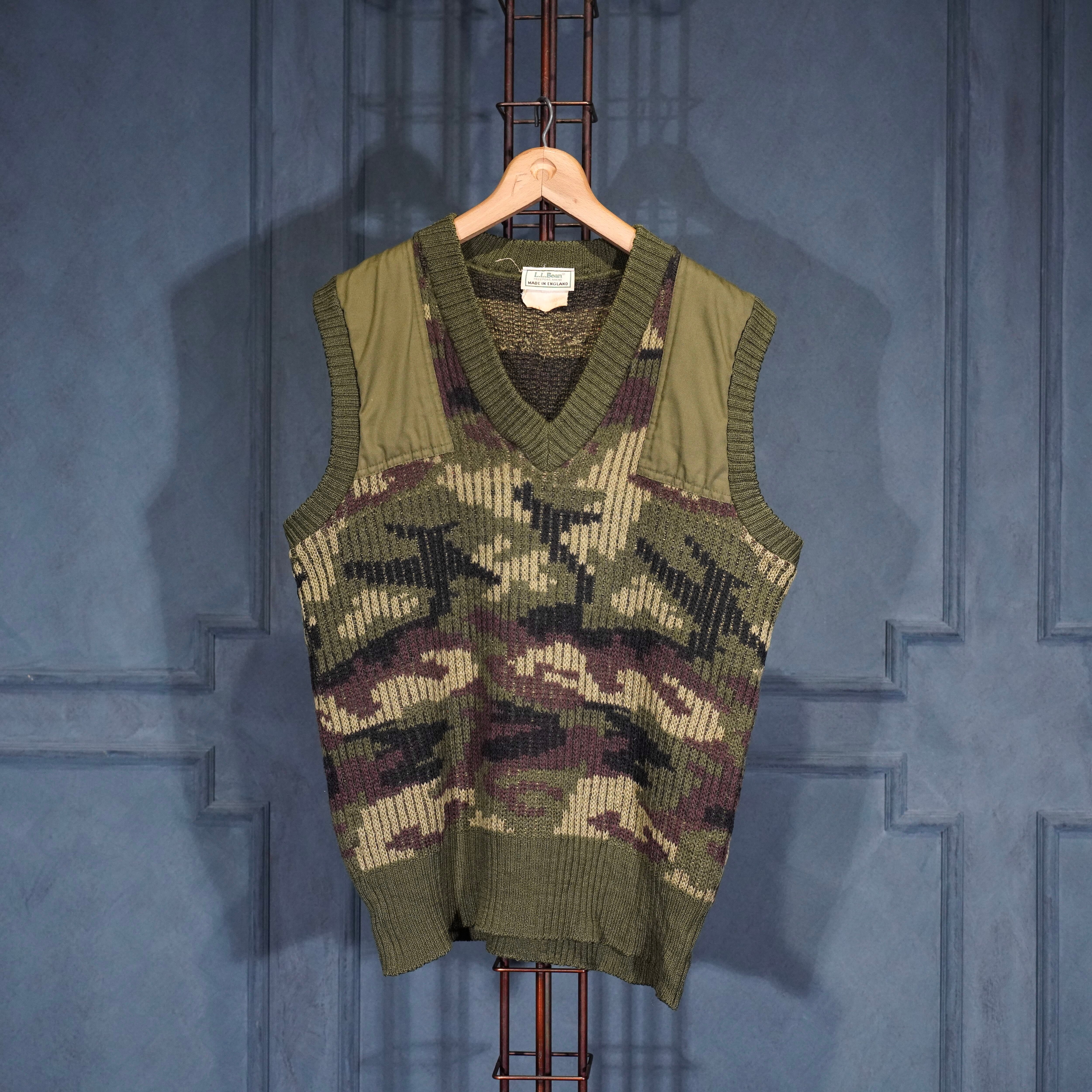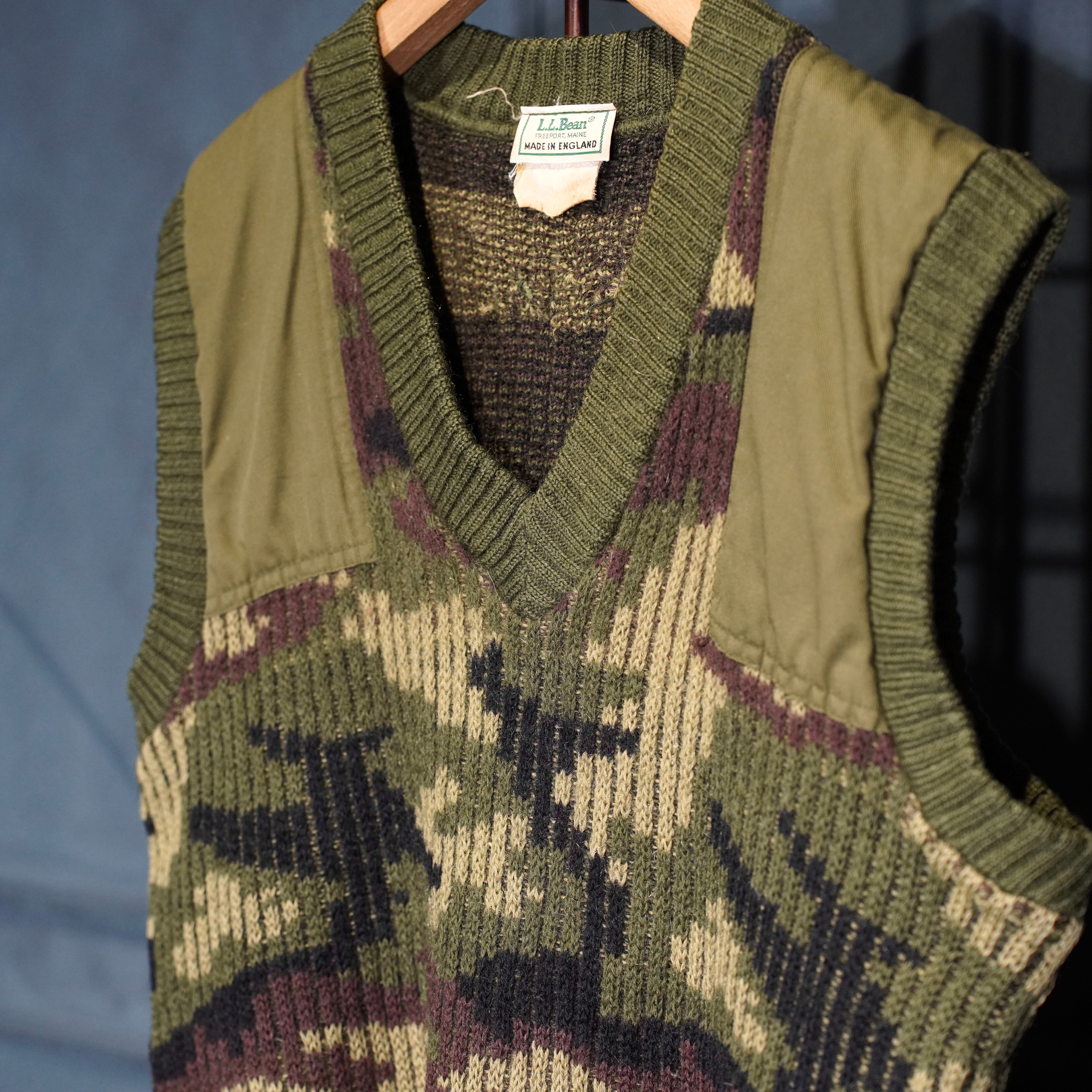 80’s USA VINTAGE LL Bean CAMOUFLAGE PATTERNED KNIT VEST MADE IN ENGLAND/80年代アメリカ古着エルエルビーンカモフラ柄ニットベスト