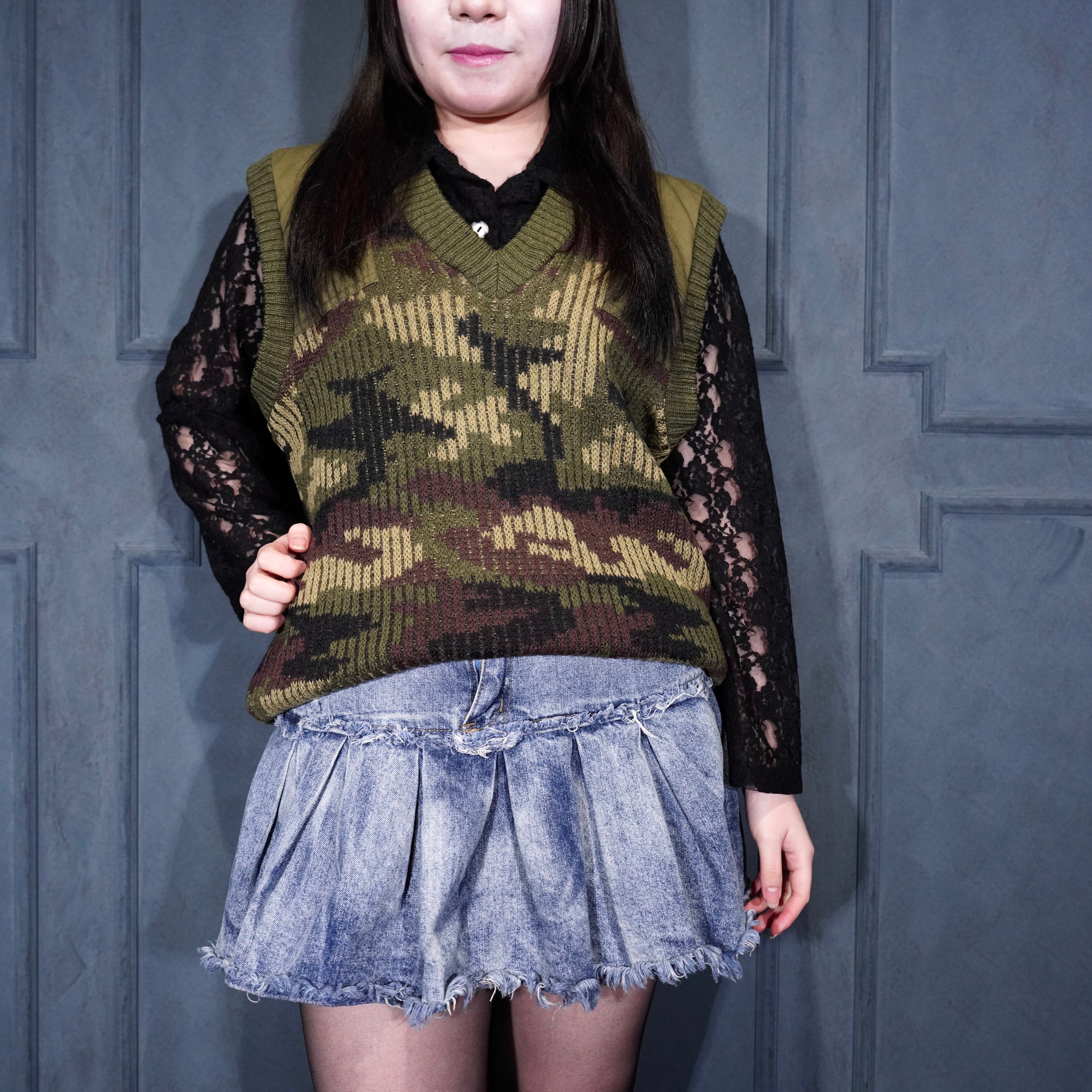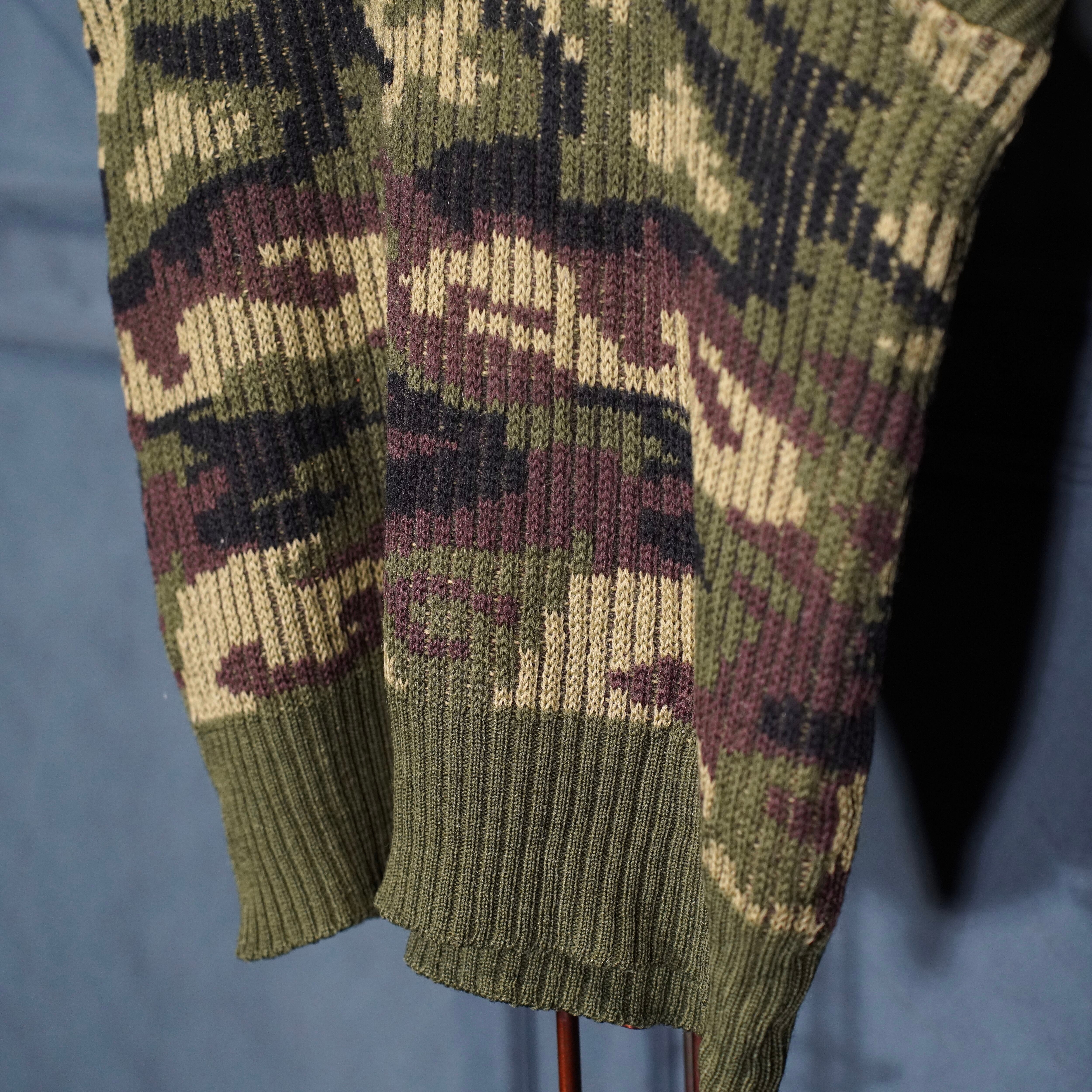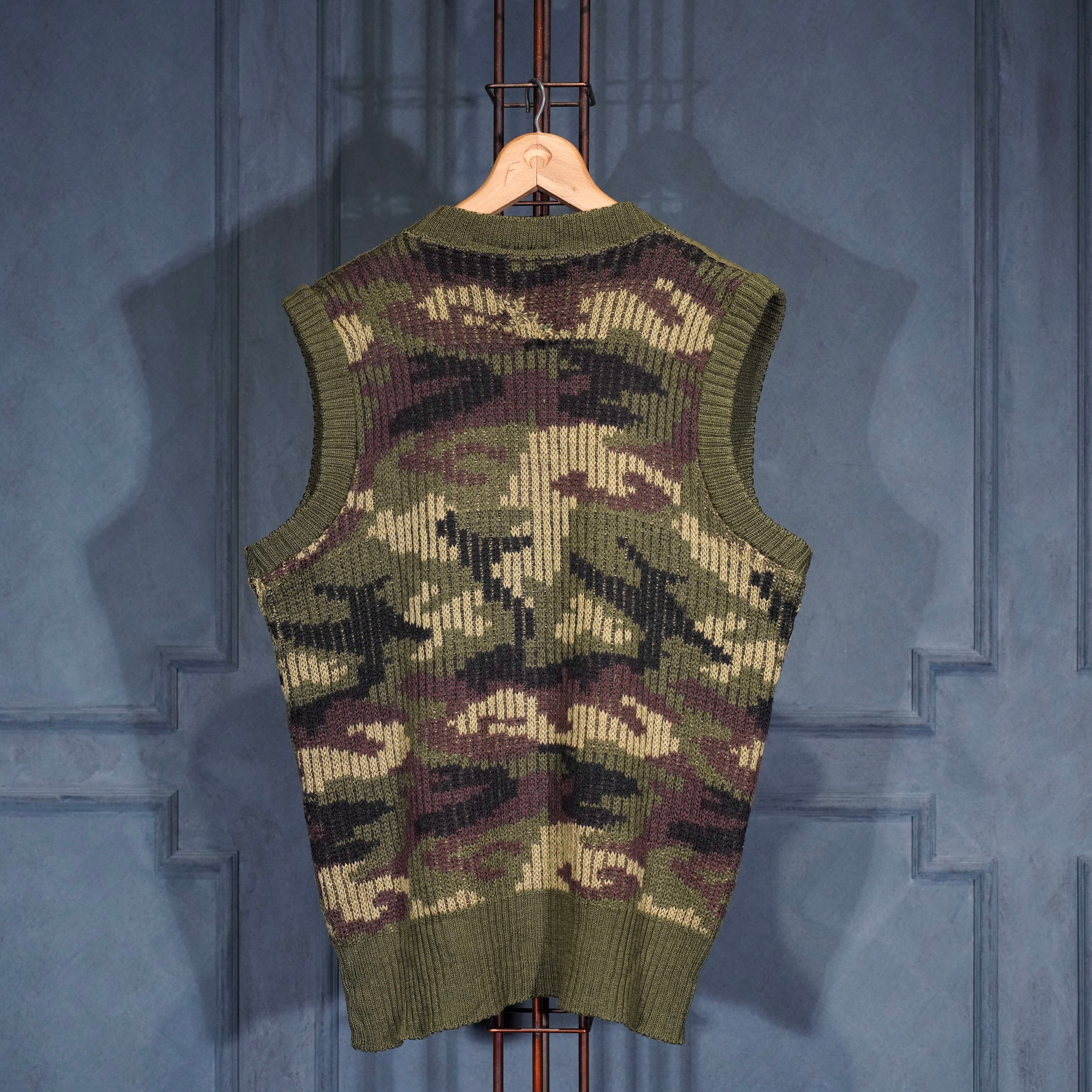 80’s USA VINTAGE LL Bean CAMOUFLAGE PATTERNED KNIT VEST MADE IN ENGLAND/80年代アメリカ古着エルエルビーンカモフラ柄ニットベスト