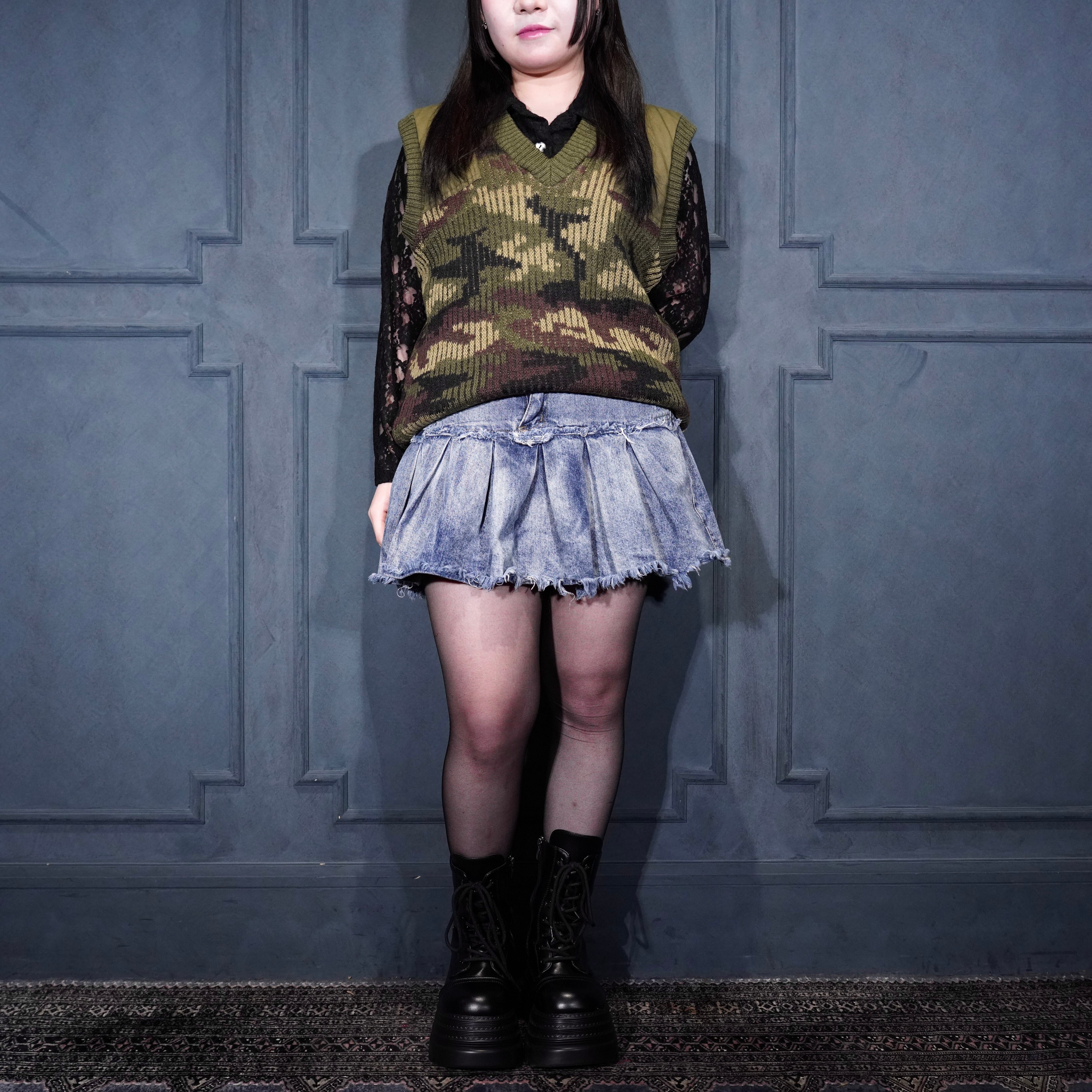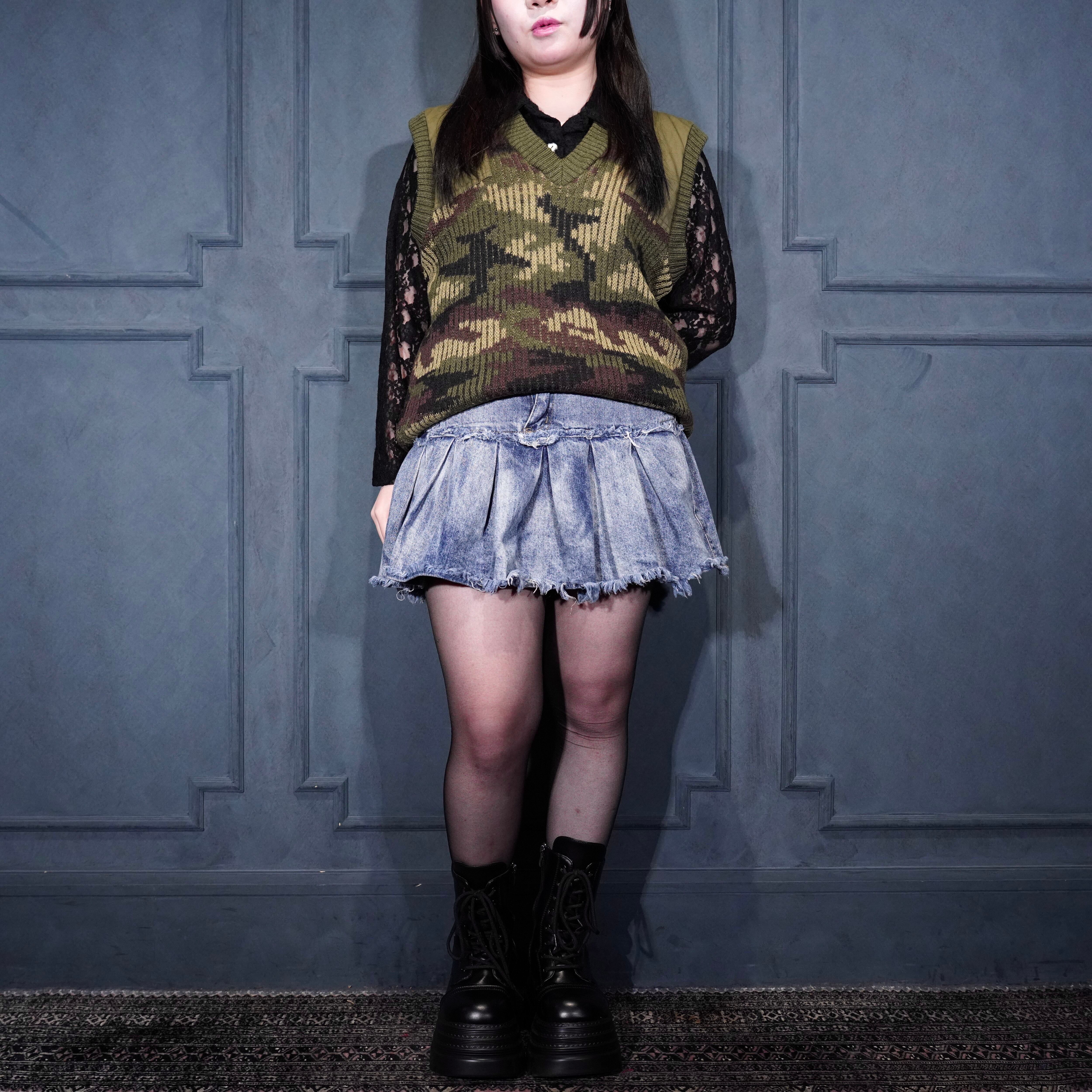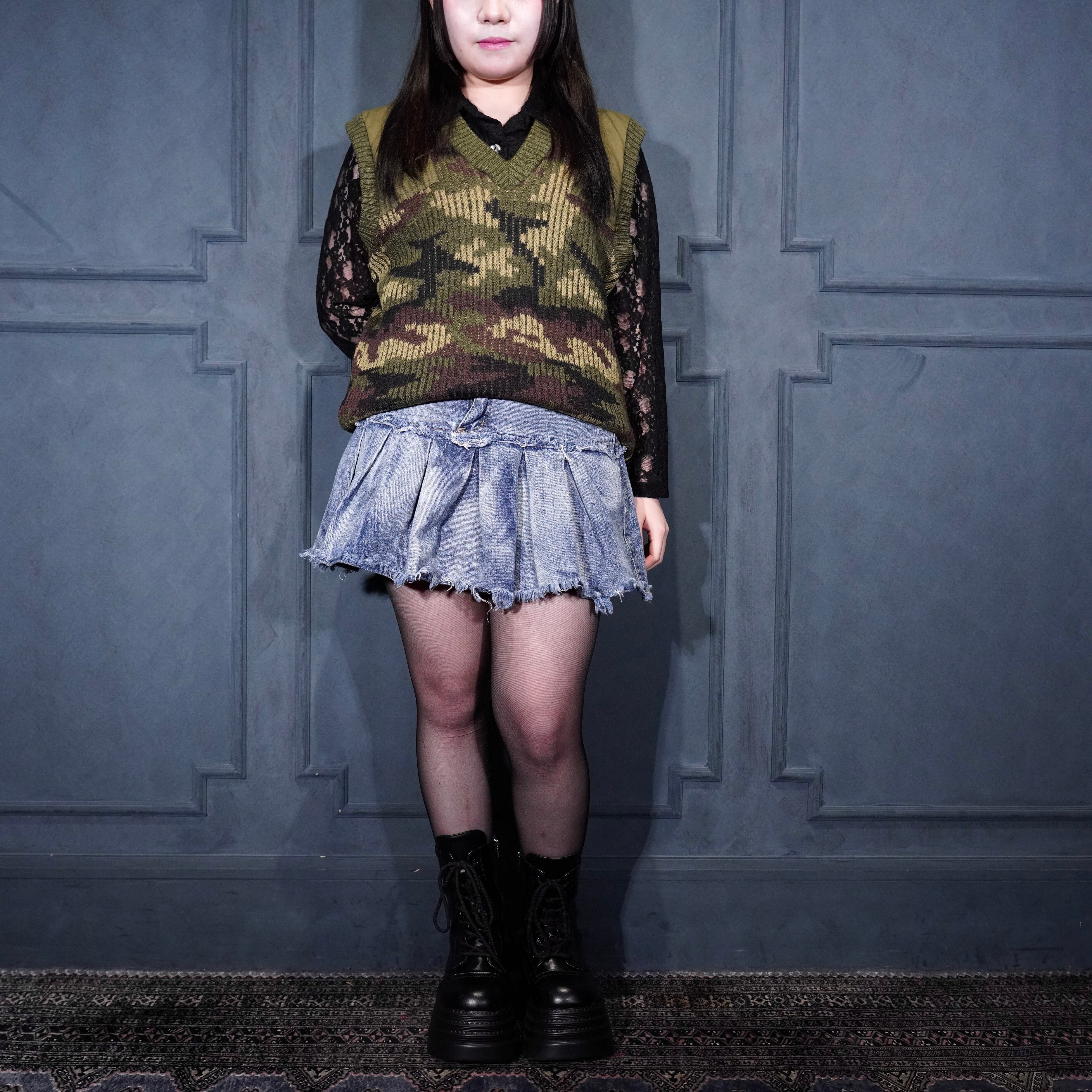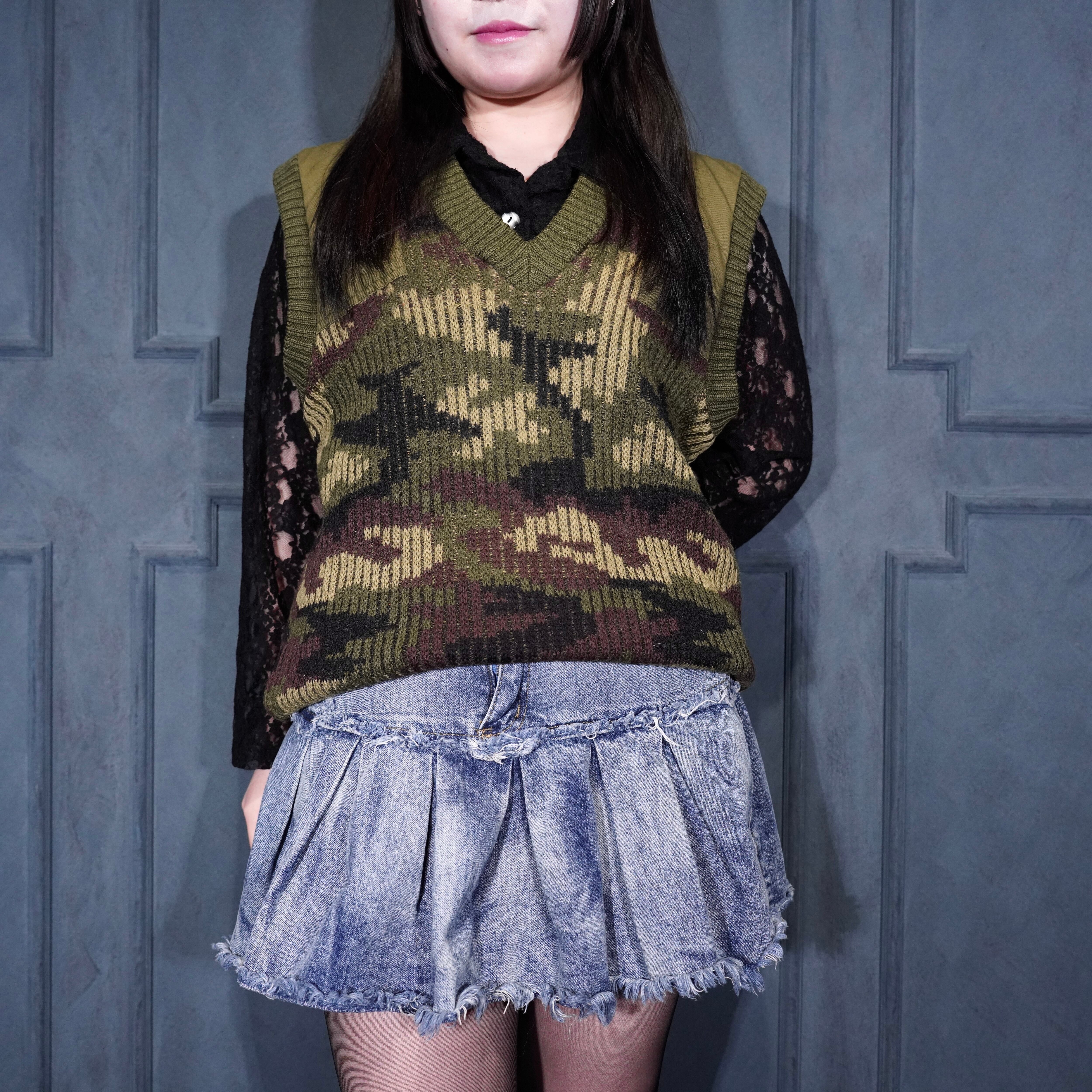 80’s USA VINTAGE LL Bean CAMOUFLAGE PATTERNED KNIT VEST MADE IN ENGLAND/80年代アメリカ古着エルエルビーンカモフラ柄ニットベスト
