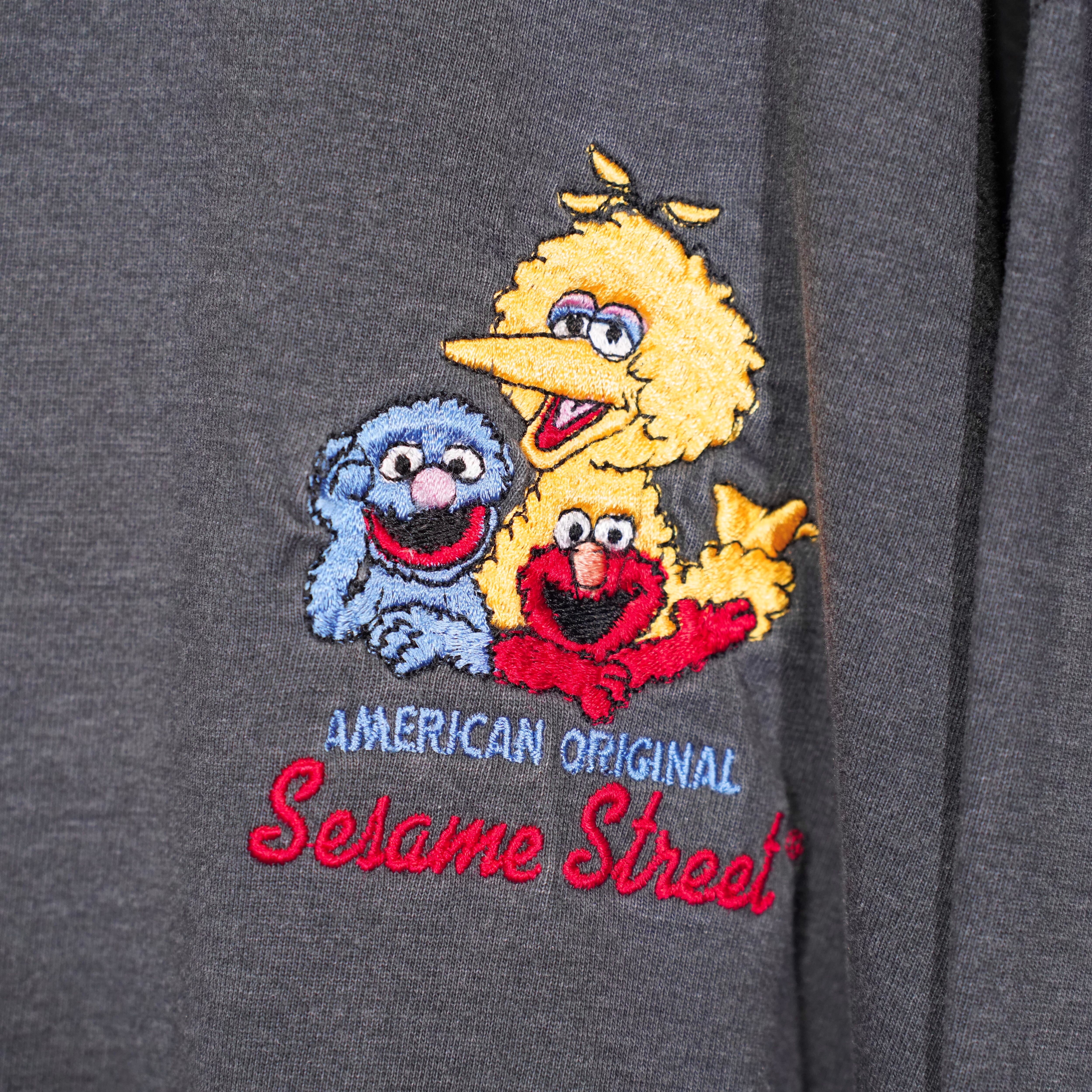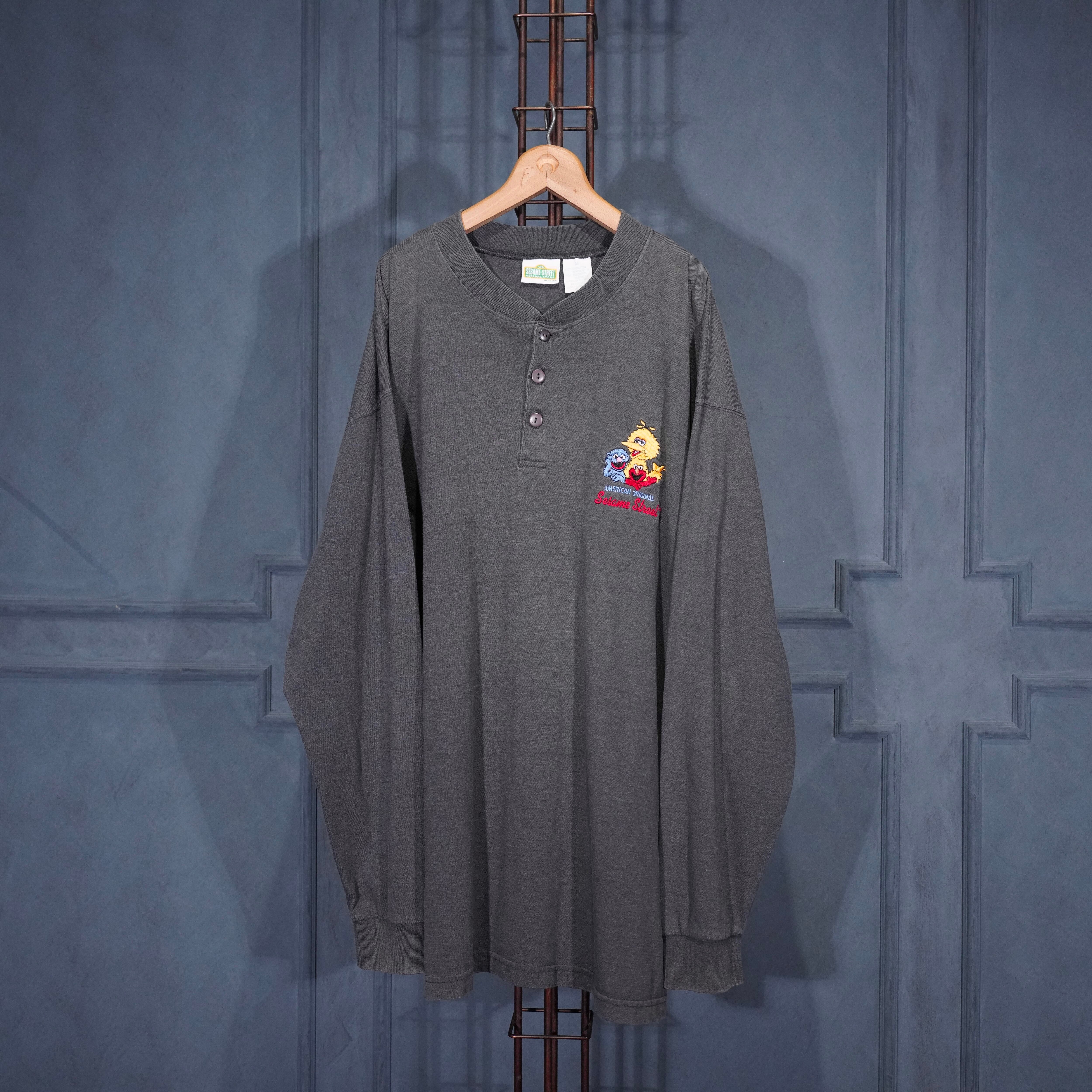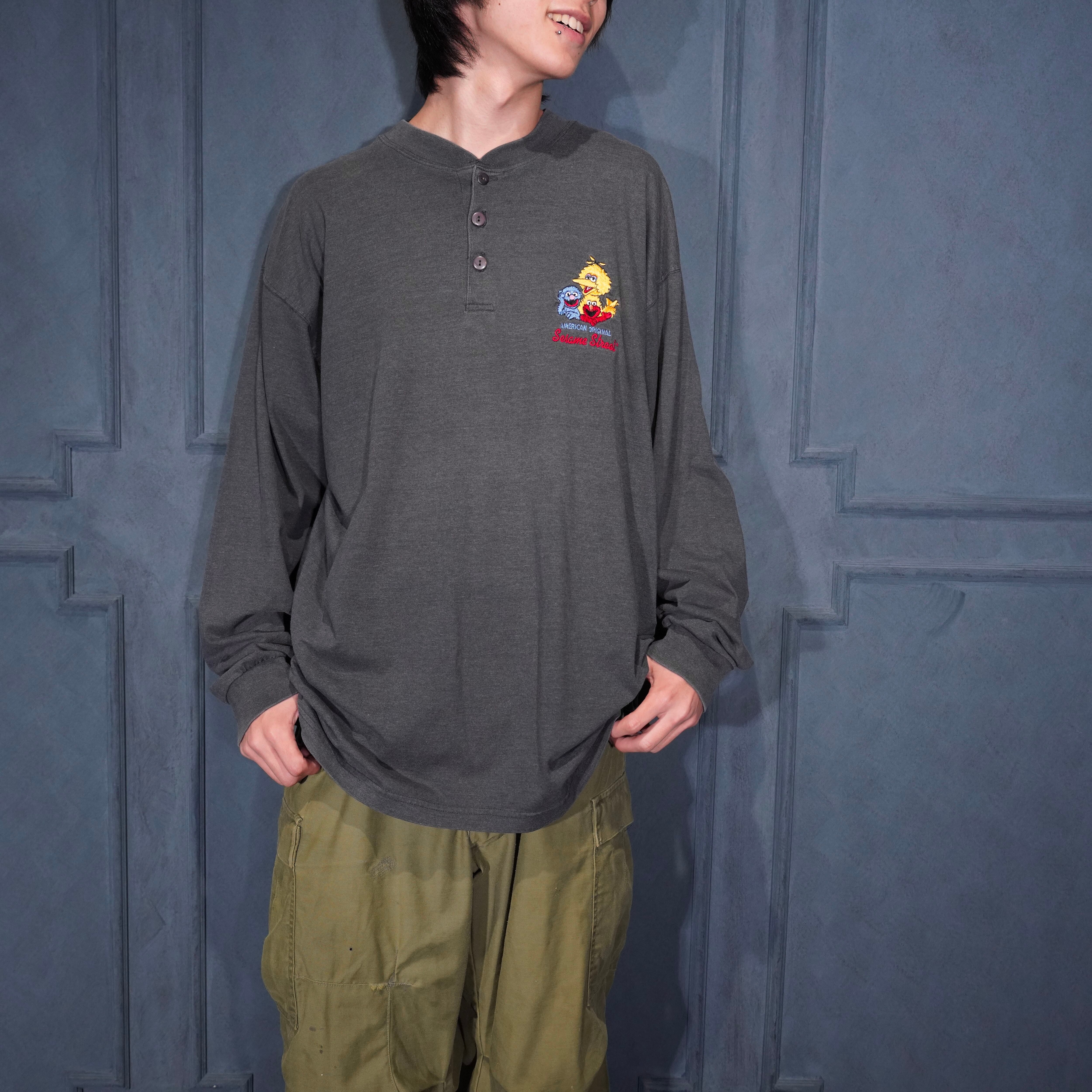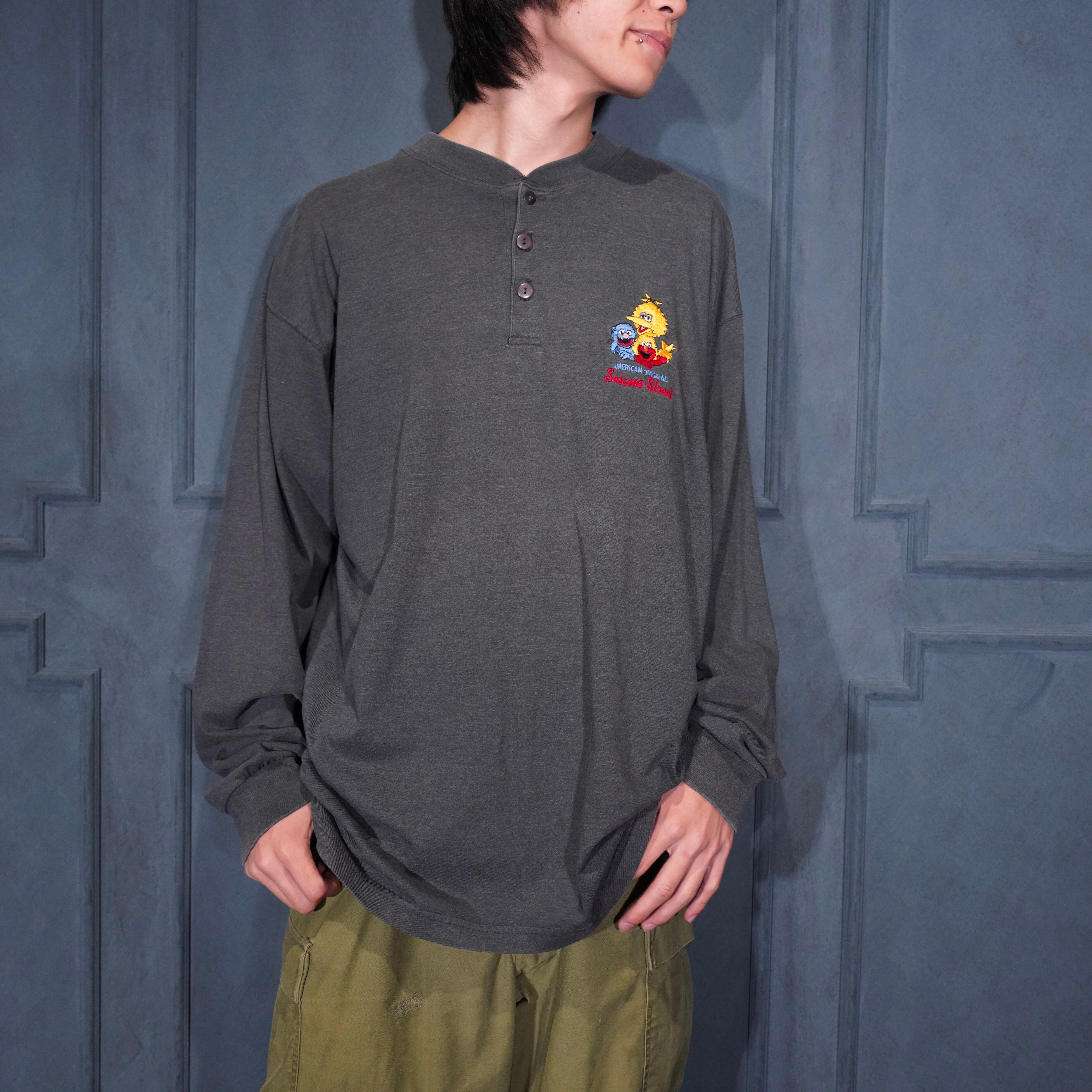 90’s USA VINTAGE SESAME STREET CHARCTER EMBROIDERY DESIGN HENRY NECK LONG SLEEVE T SHIRT/90年代アメリカ古着キャラクター刺繍デザインヘンリーネック長袖Tシャツ(カットソー)