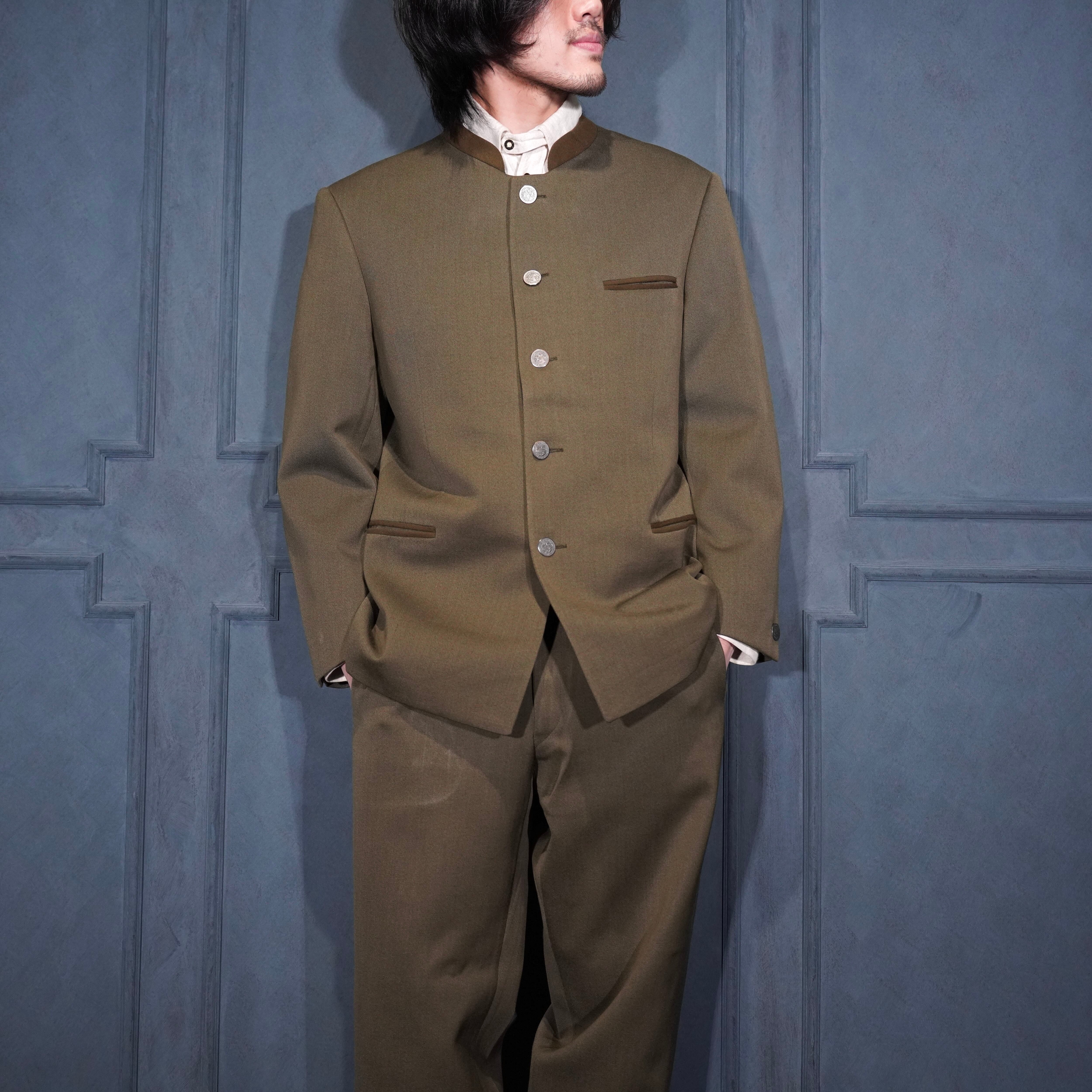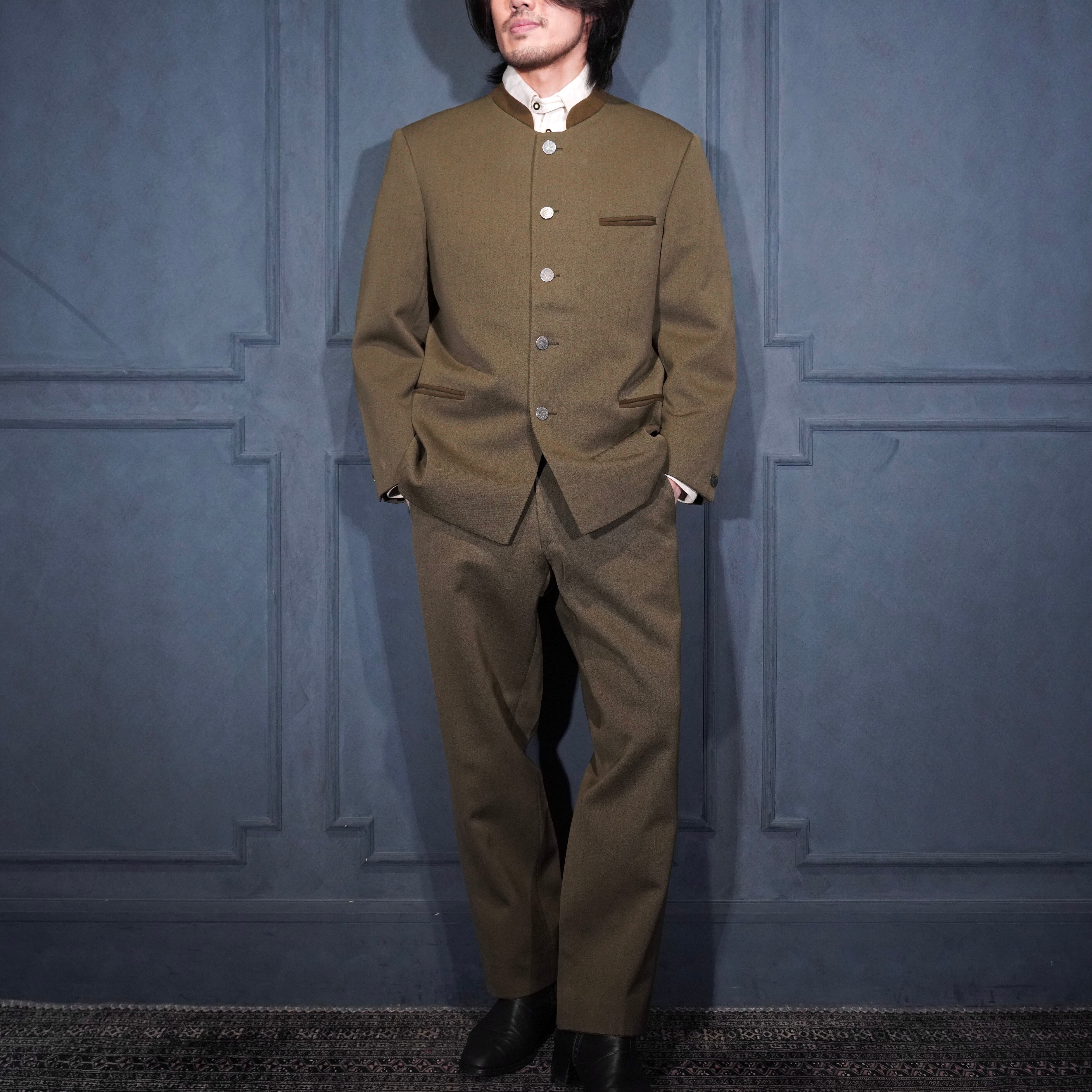 EU VINTAGE COIN BUTTON DESIGN WOOL TYROLEAN SET UP SUIT/ヨーロッパ古着コインボタンデザインウールセットアップスーツ