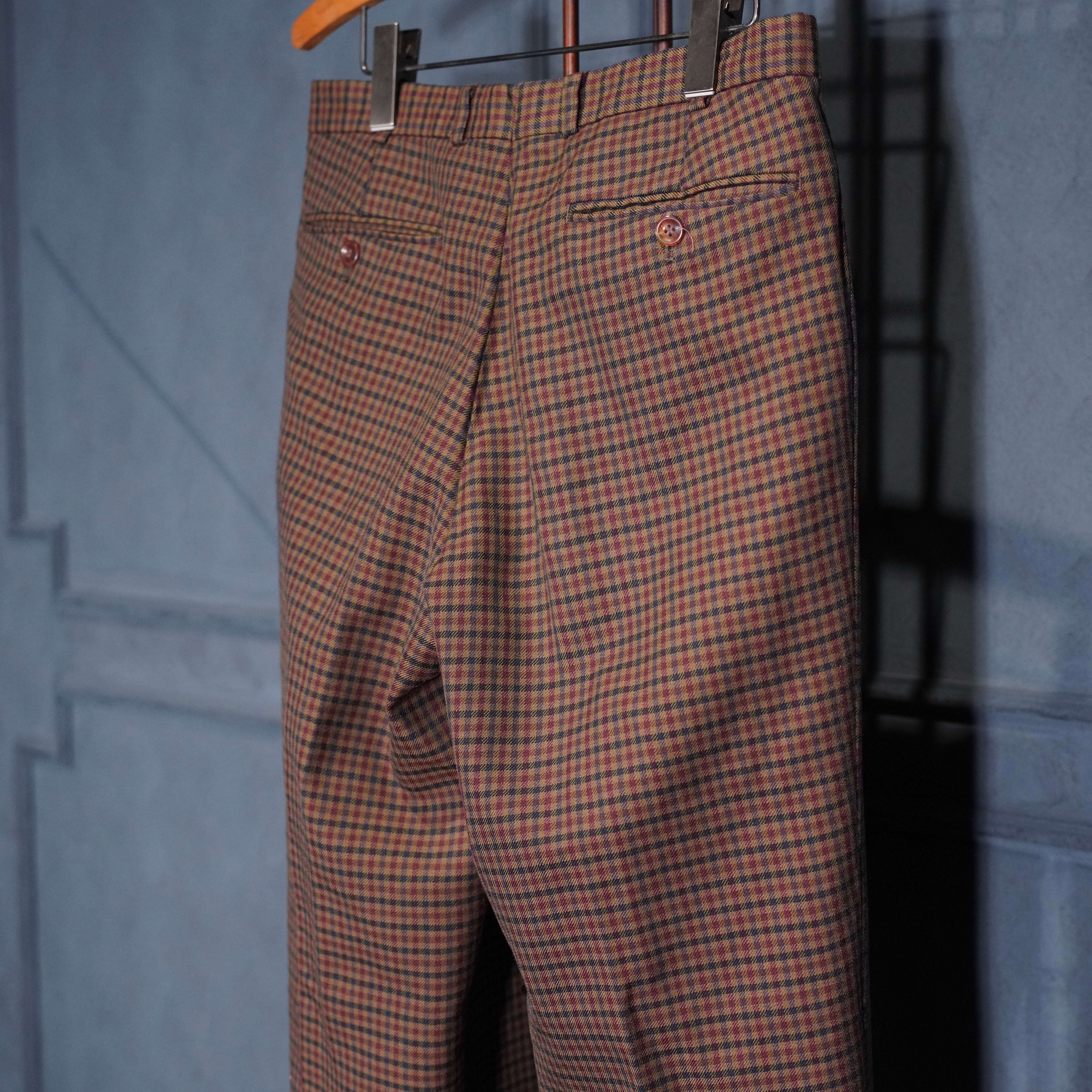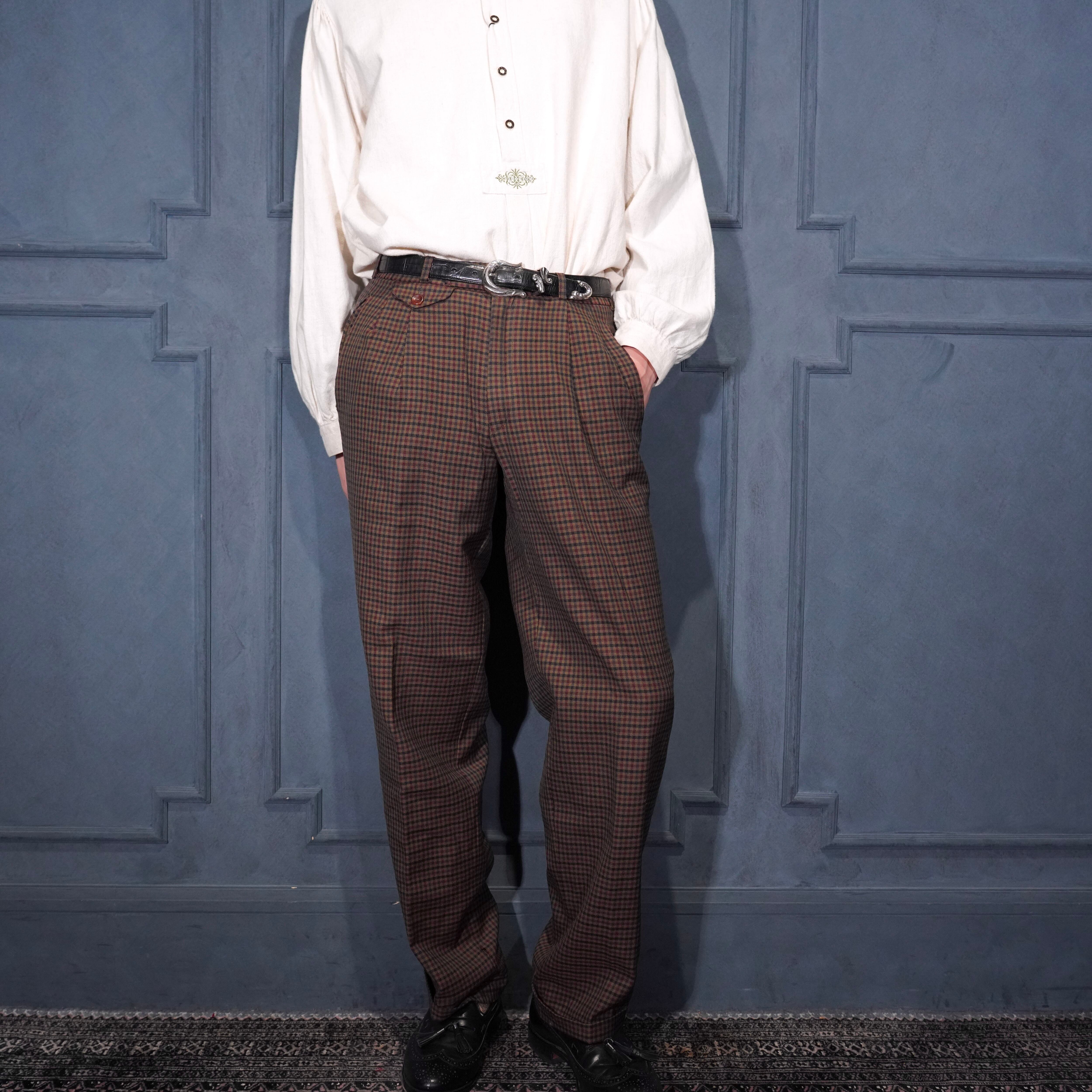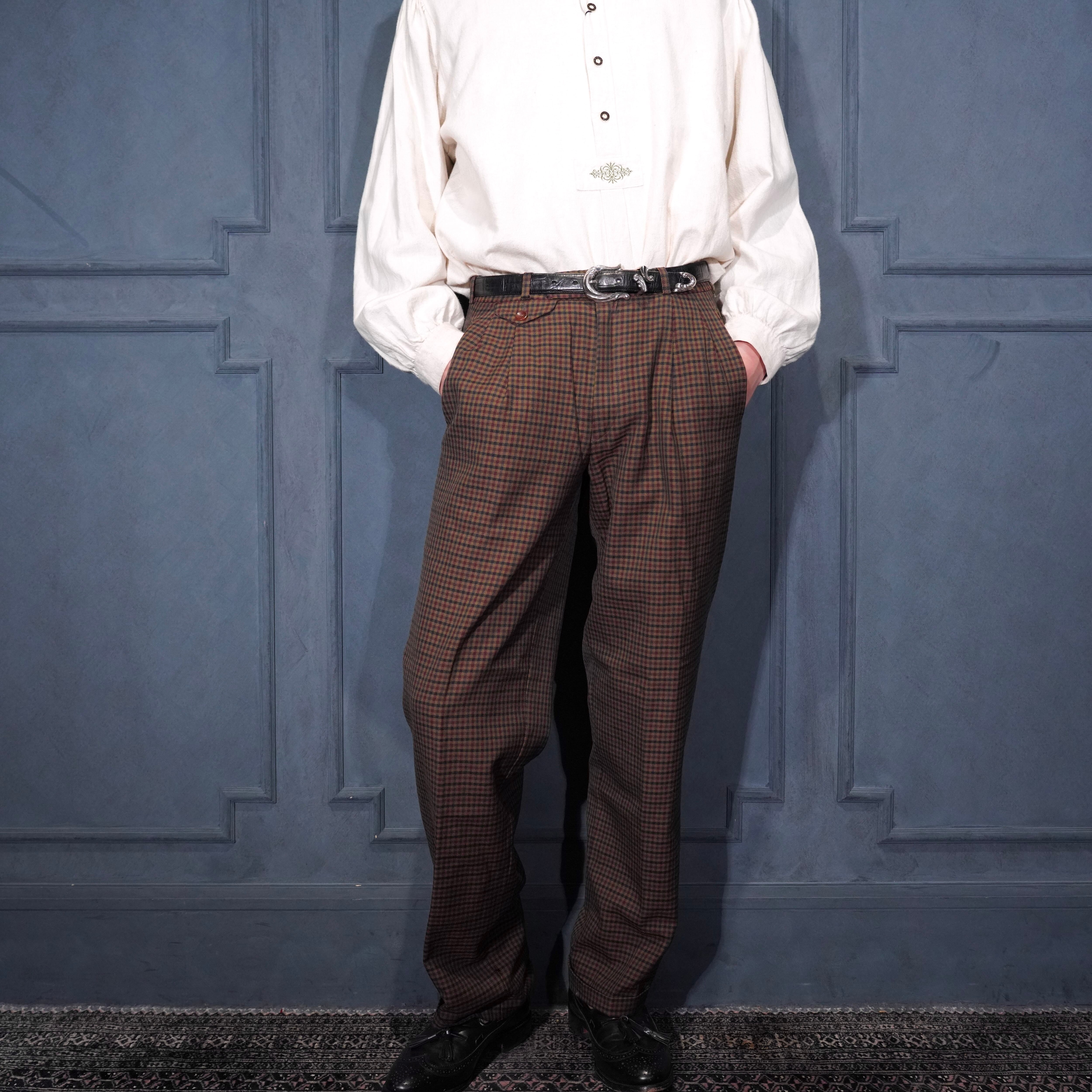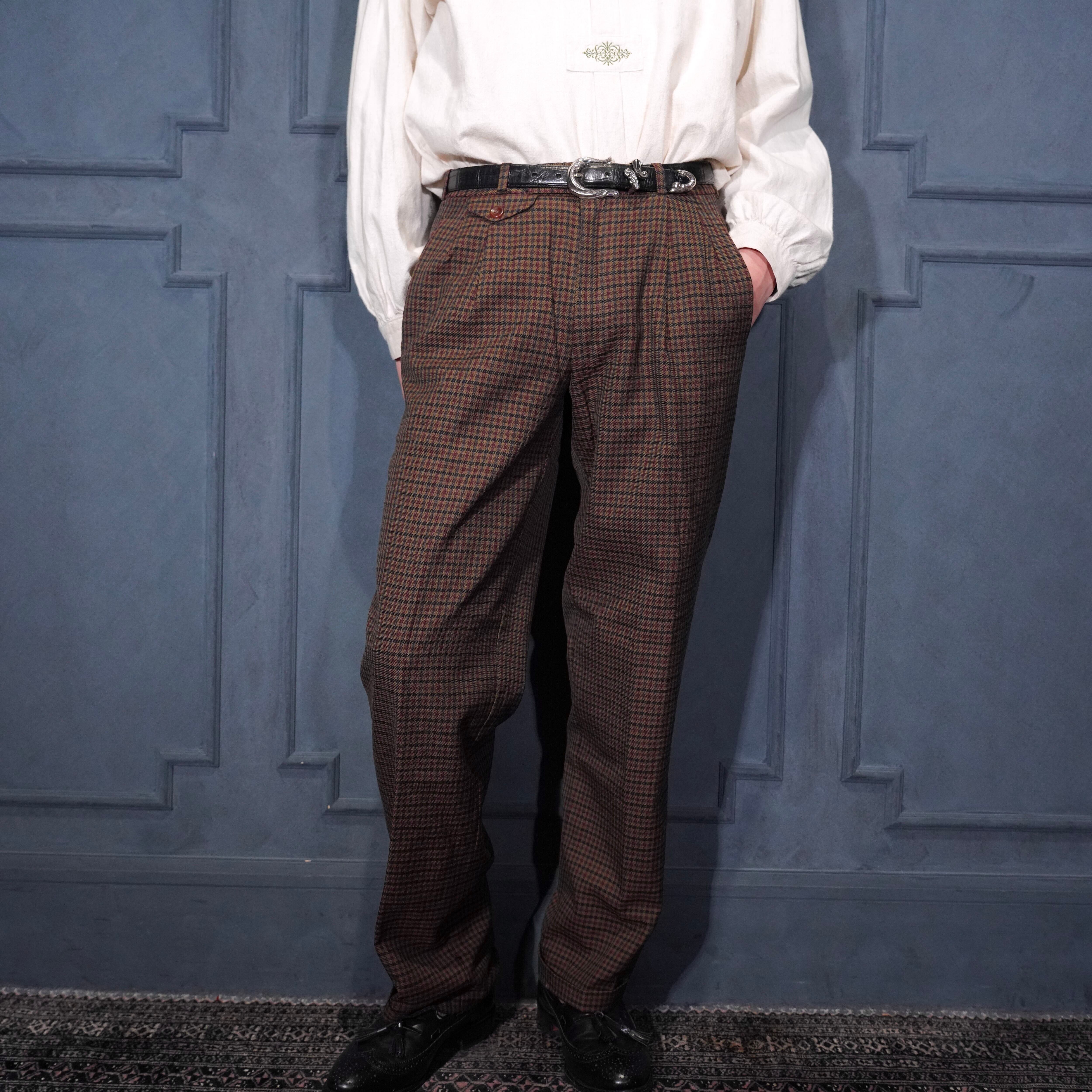 EU VINTAGE incognito BLEICHE CHECK PATTERNED TUCK DESIGN SLACKS PANTS/ヨーロッパ古着チェック柄タックデザインスラックスパンツ