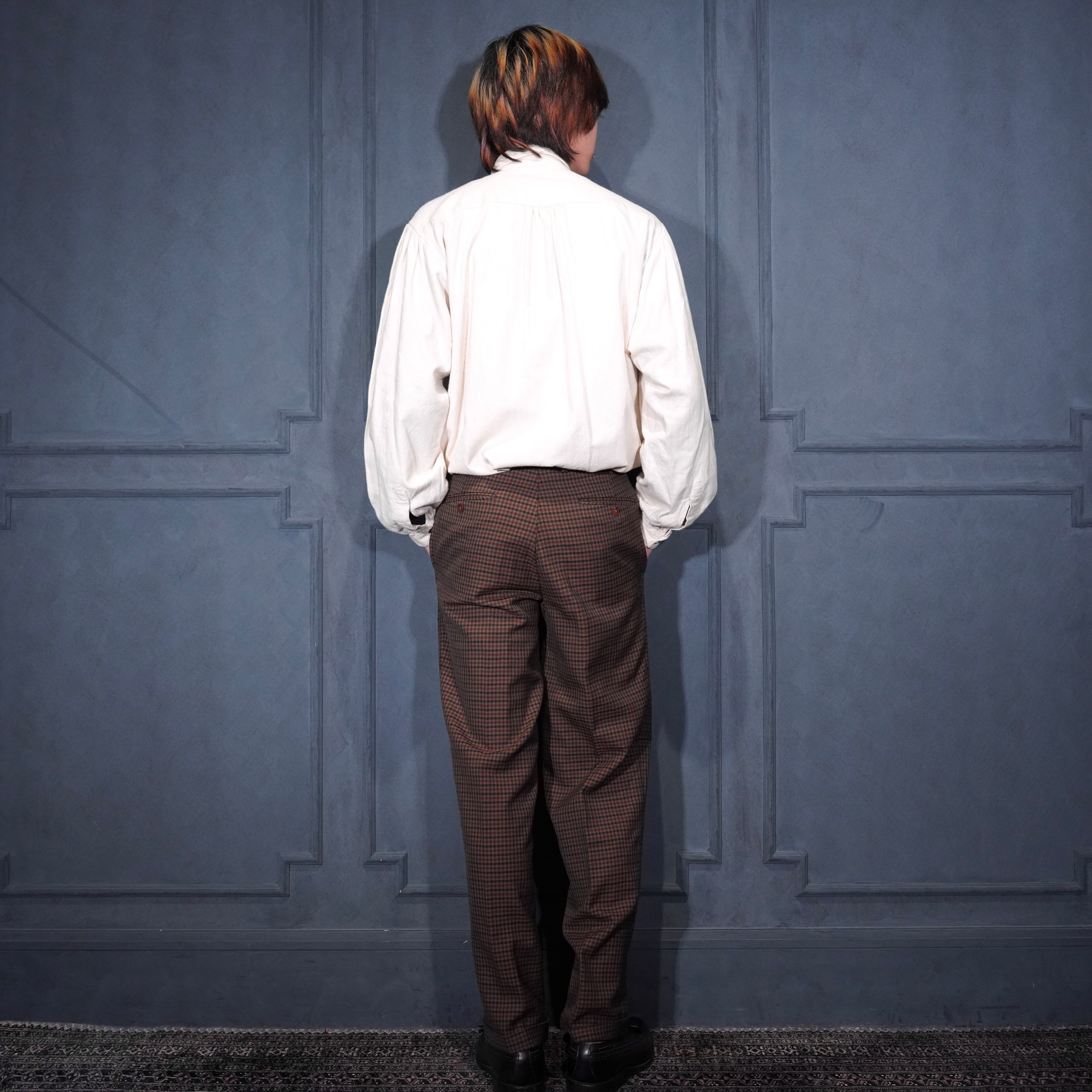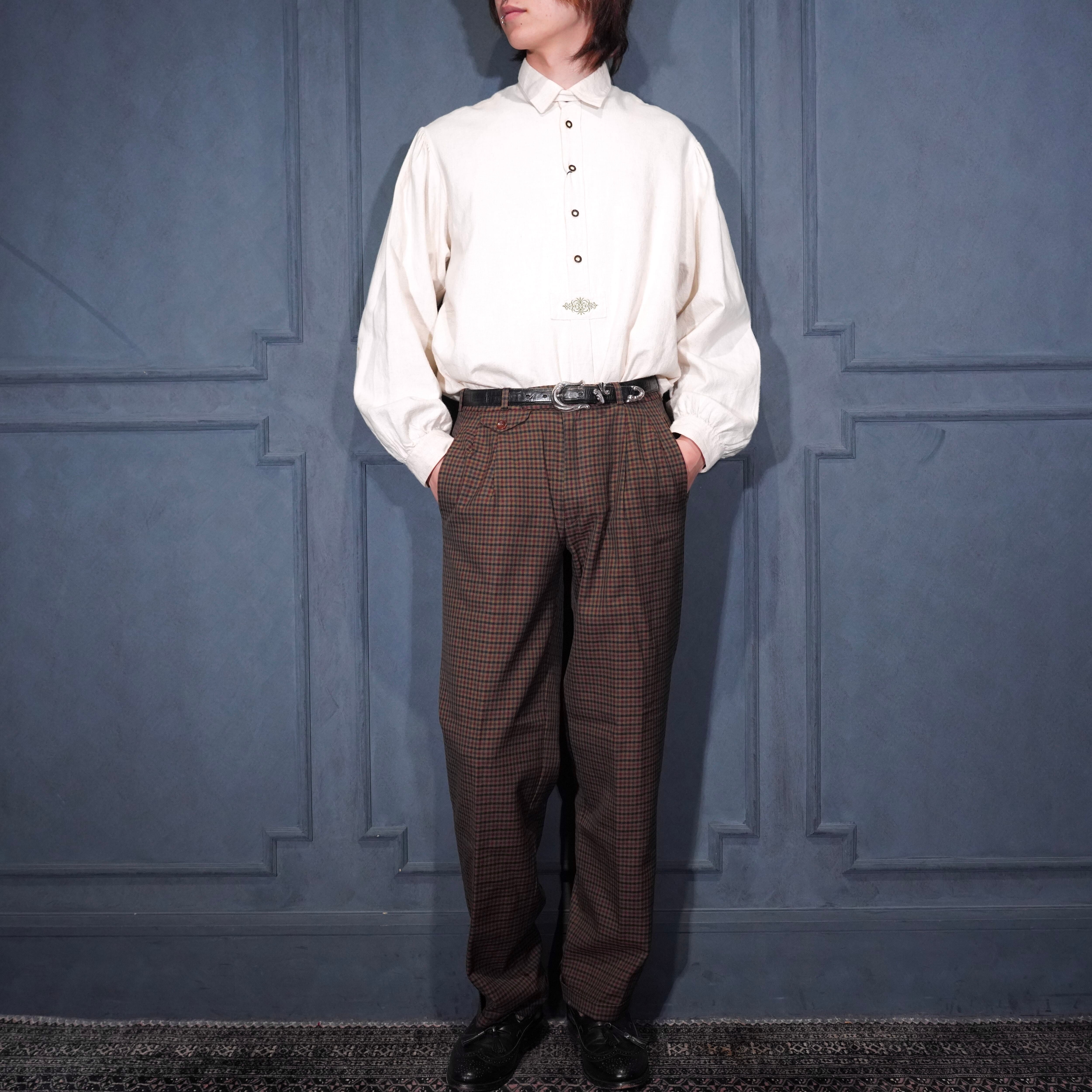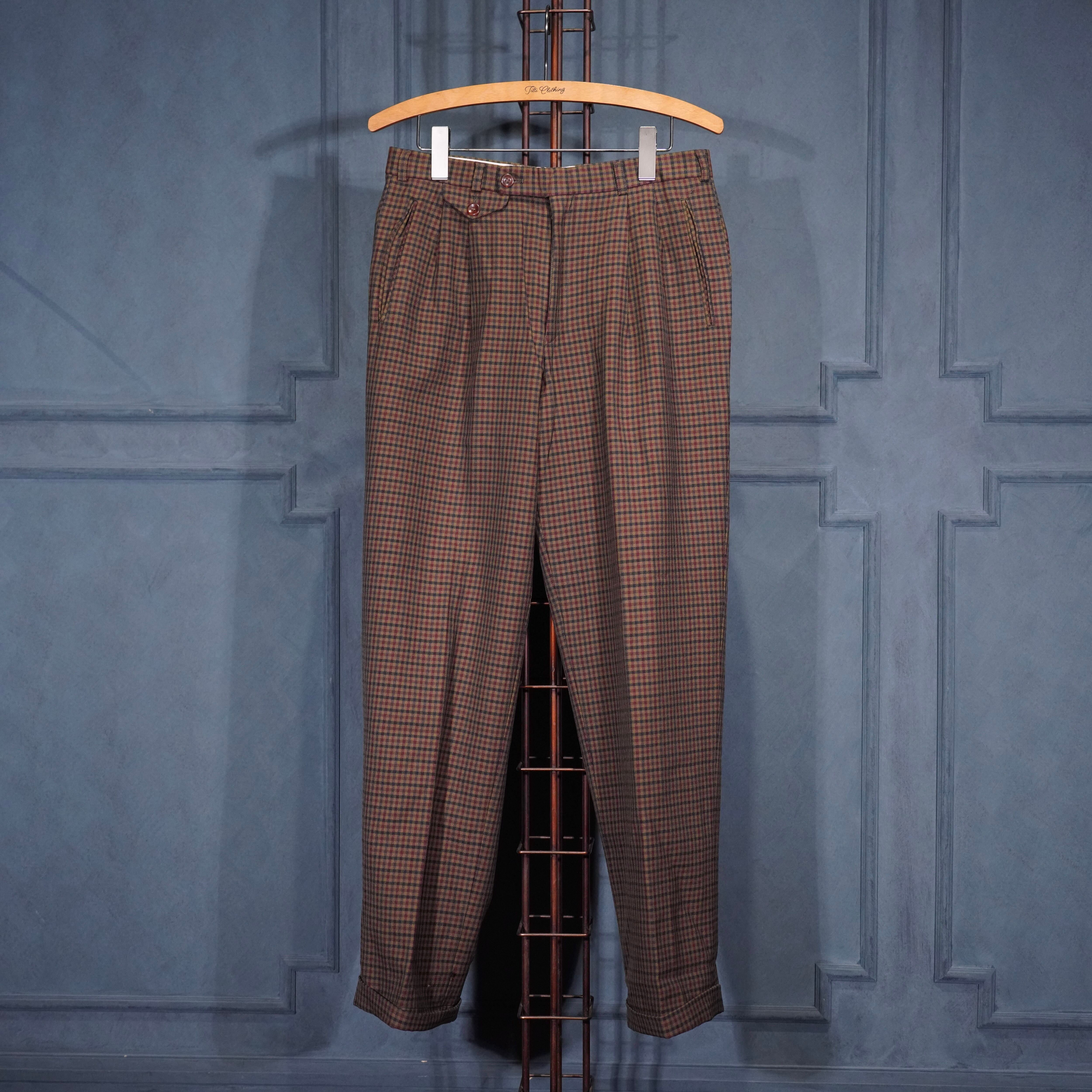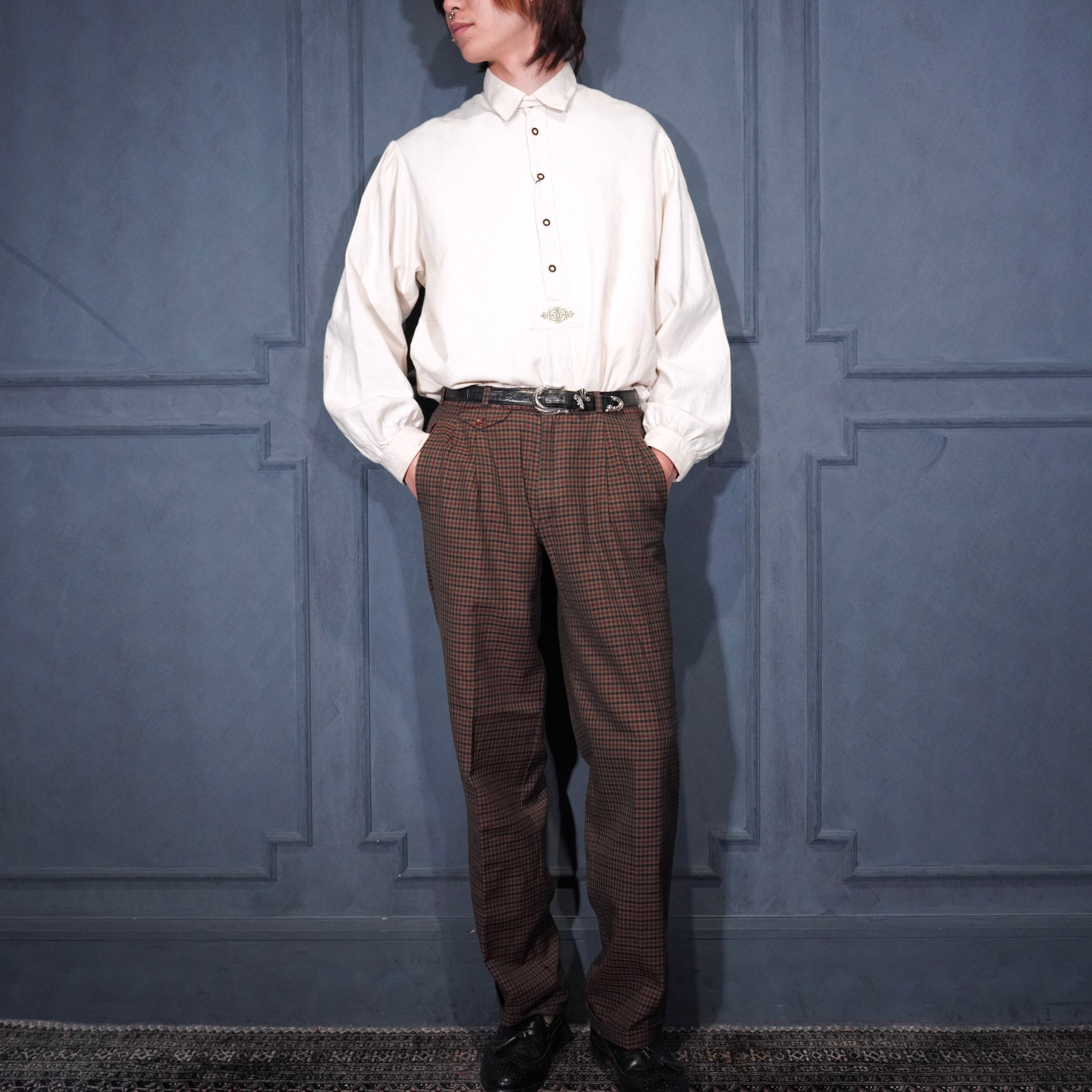 EU VINTAGE incognito BLEICHE CHECK PATTERNED TUCK DESIGN SLACKS PANTS/ヨーロッパ古着チェック柄タックデザインスラックスパンツ