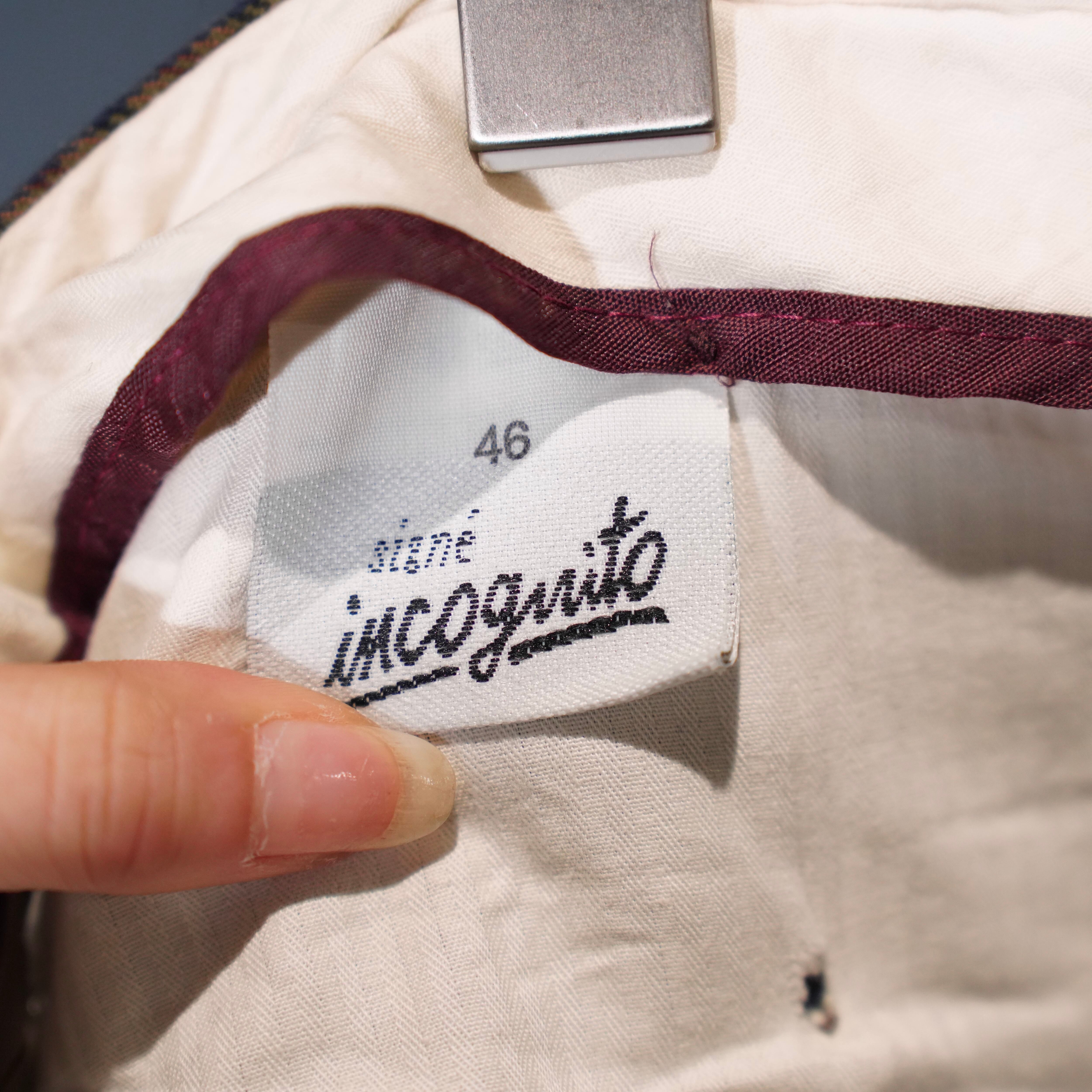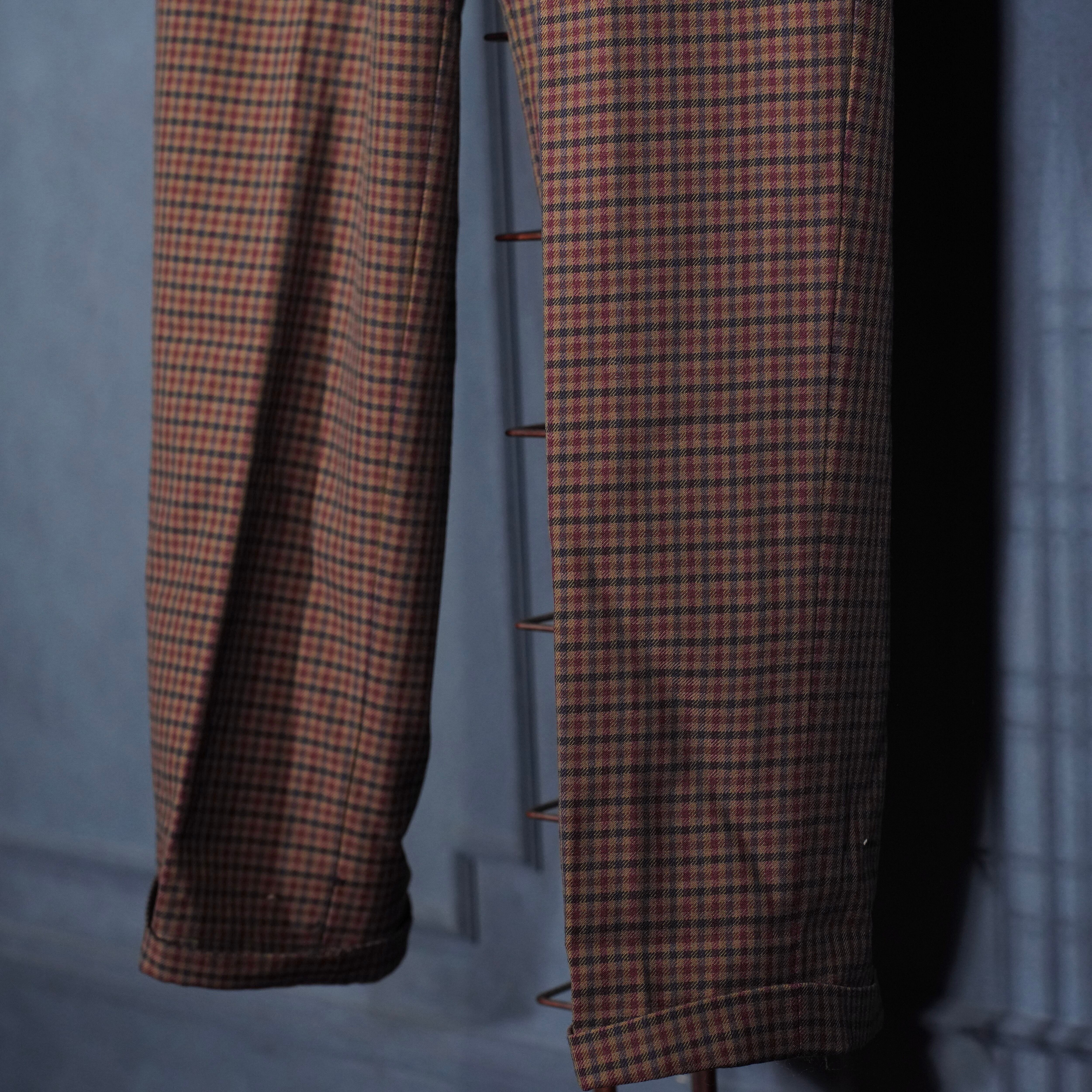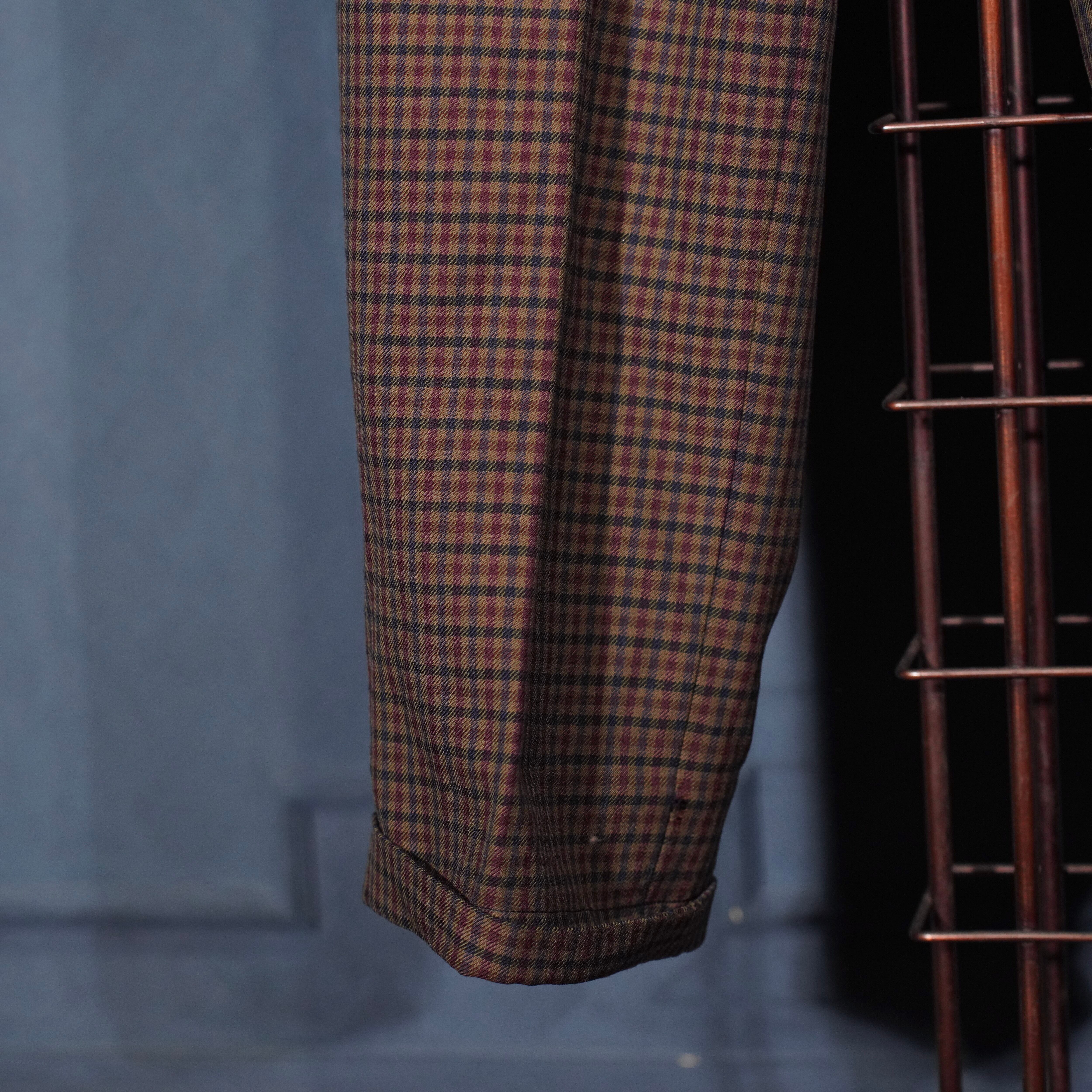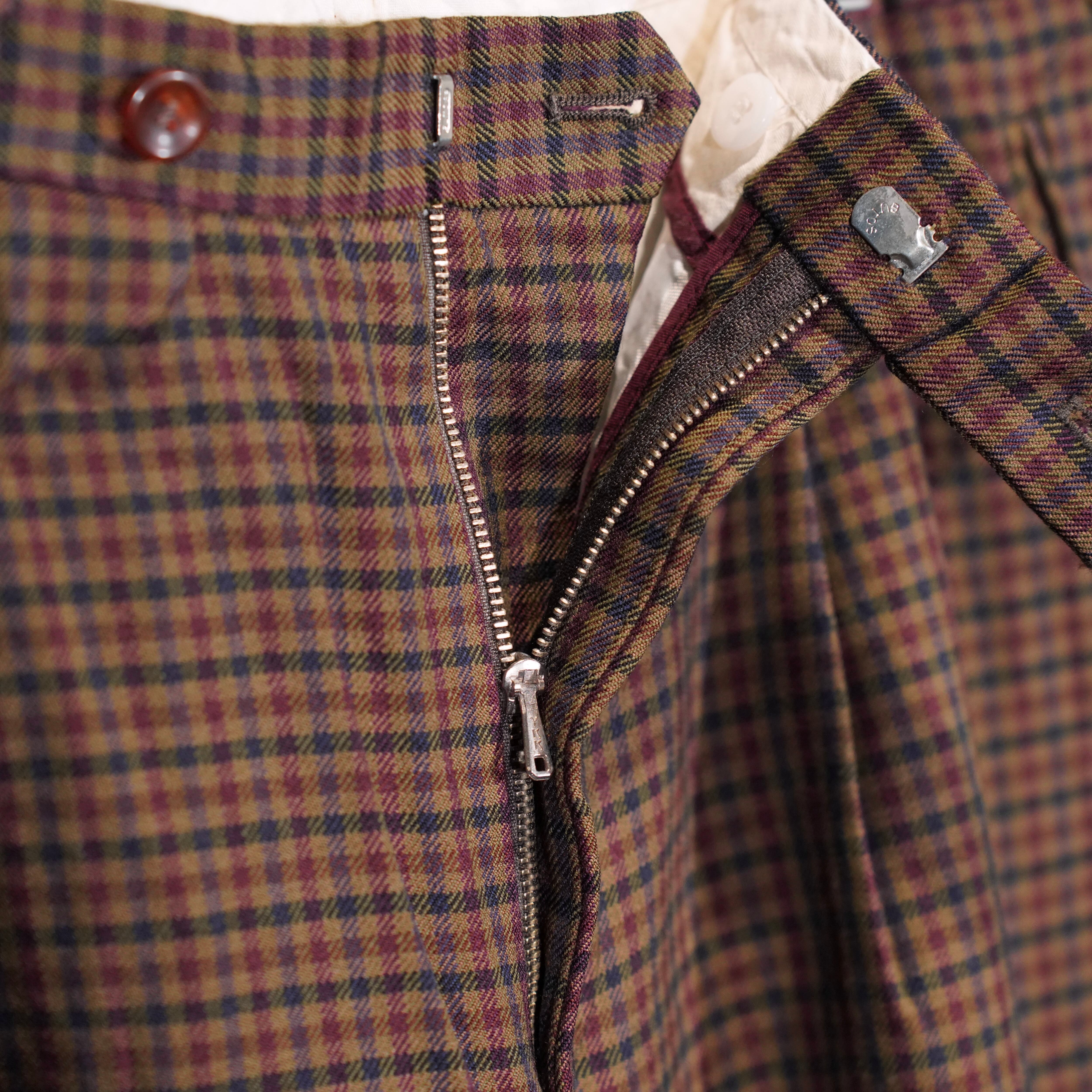 EU VINTAGE incognito BLEICHE CHECK PATTERNED TUCK DESIGN SLACKS PANTS/ヨーロッパ古着チェック柄タックデザインスラックスパンツ