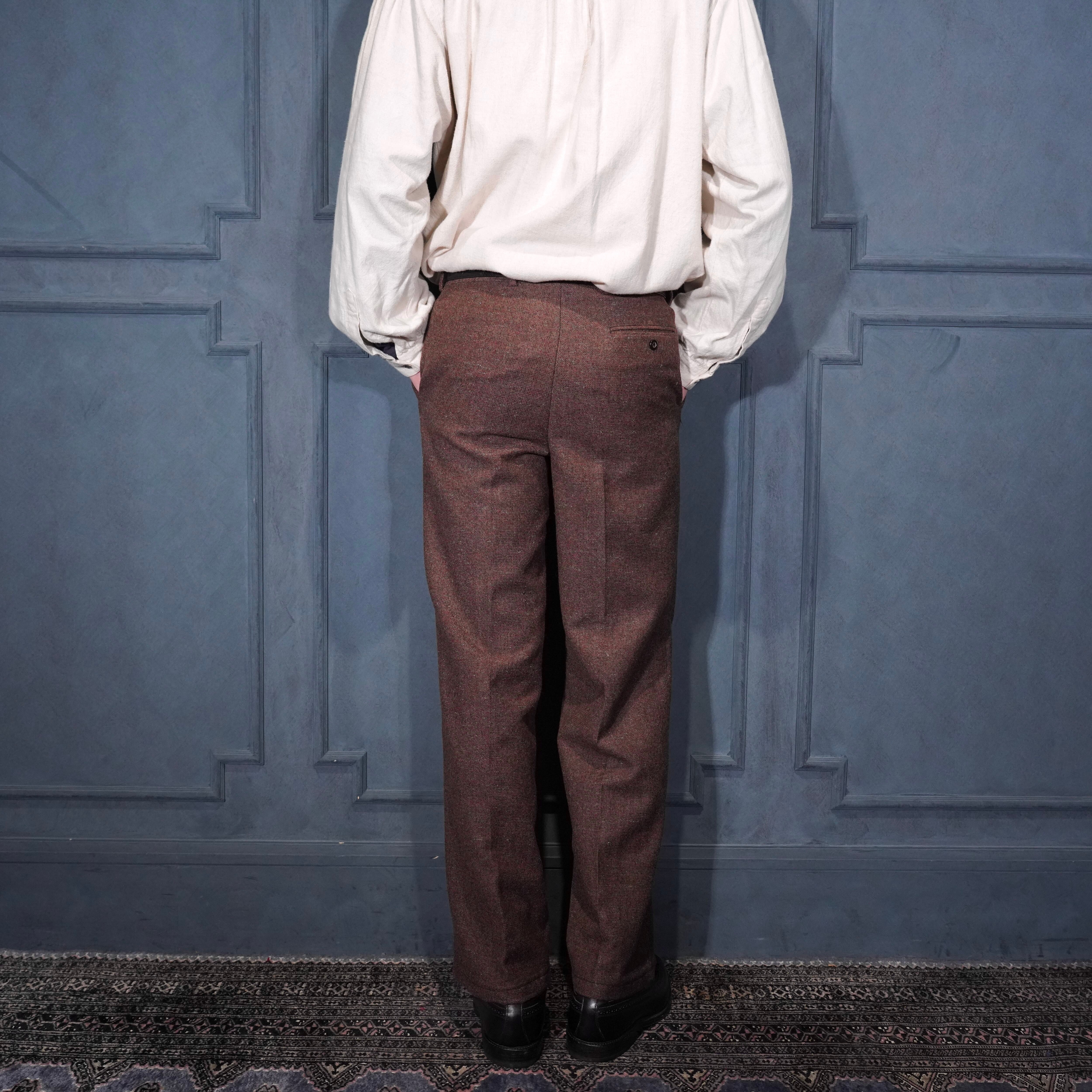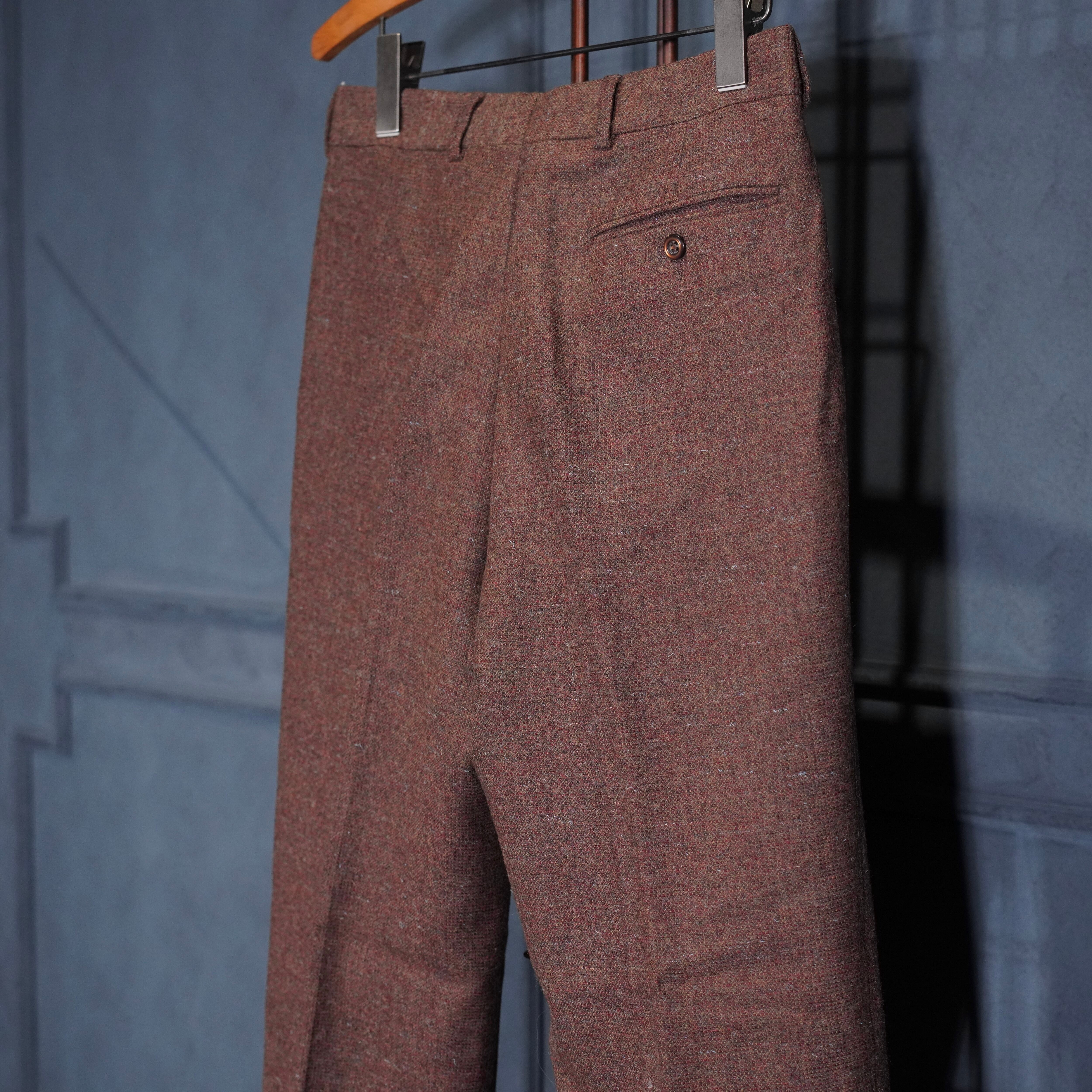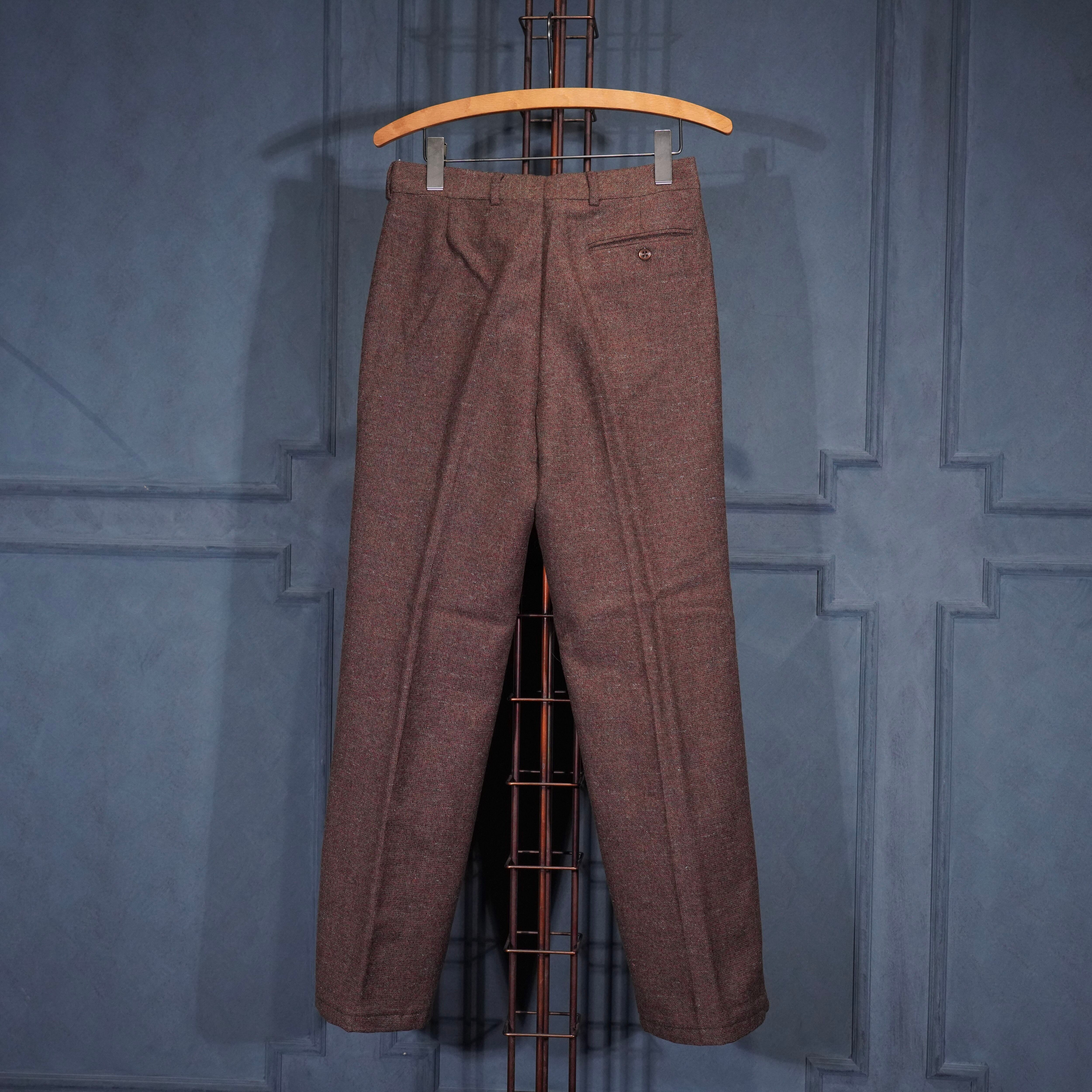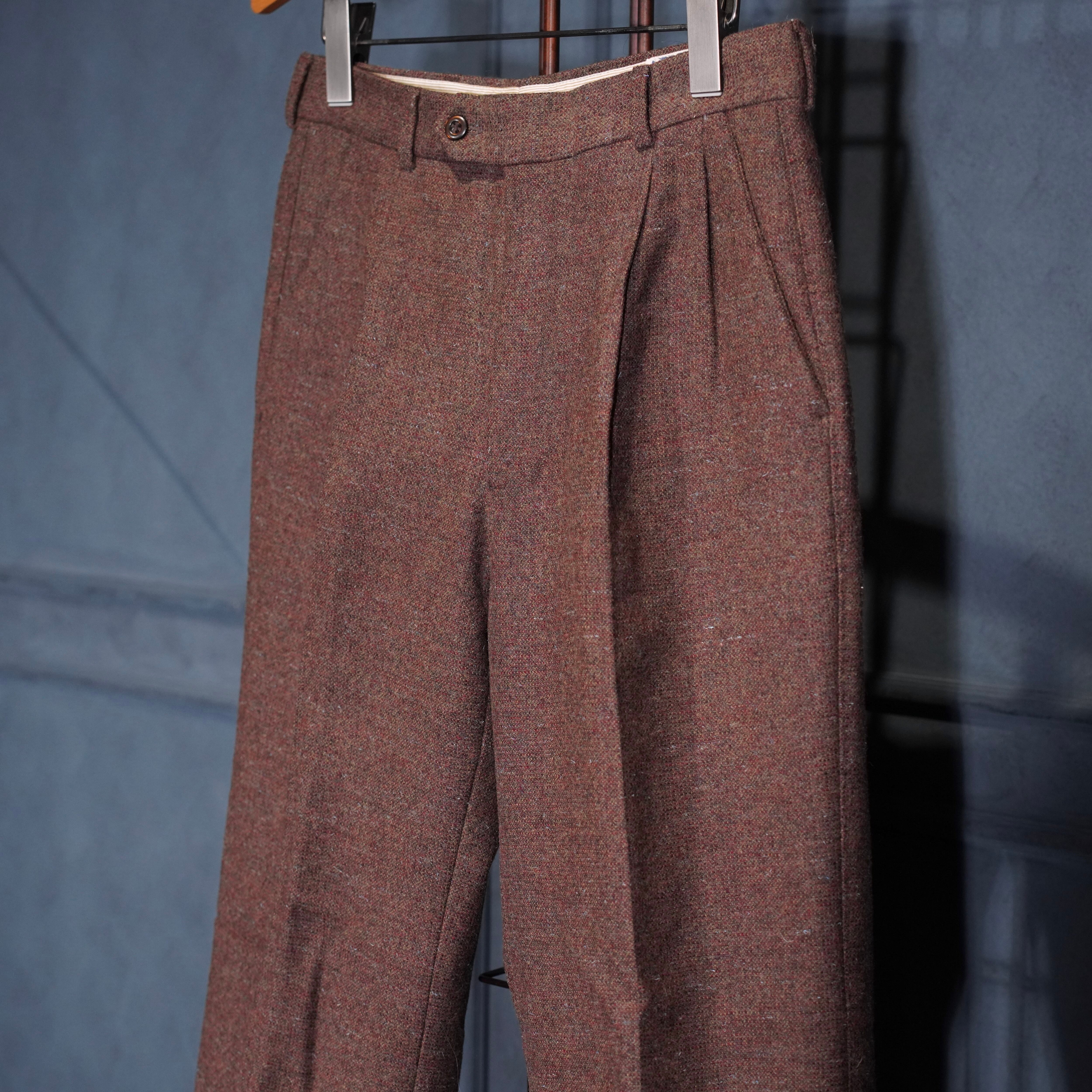 60's~70's EU VINTAGE Anthony Best tessilmaglia monza TUCK DESIGN TWEED SLACKS PANTS/60年代~70年代ヨーロッパ古着タックデザインツイードスラックスパンツ