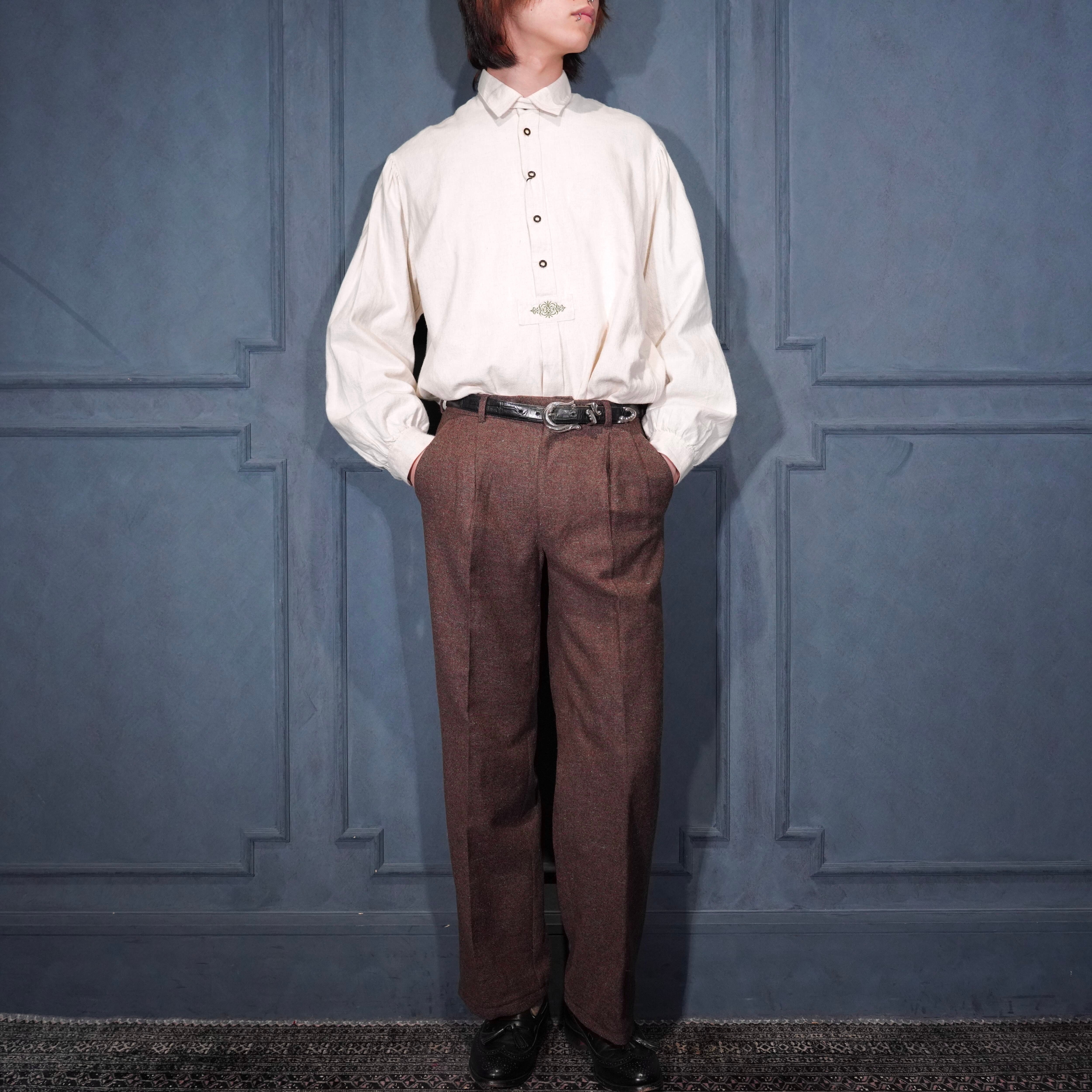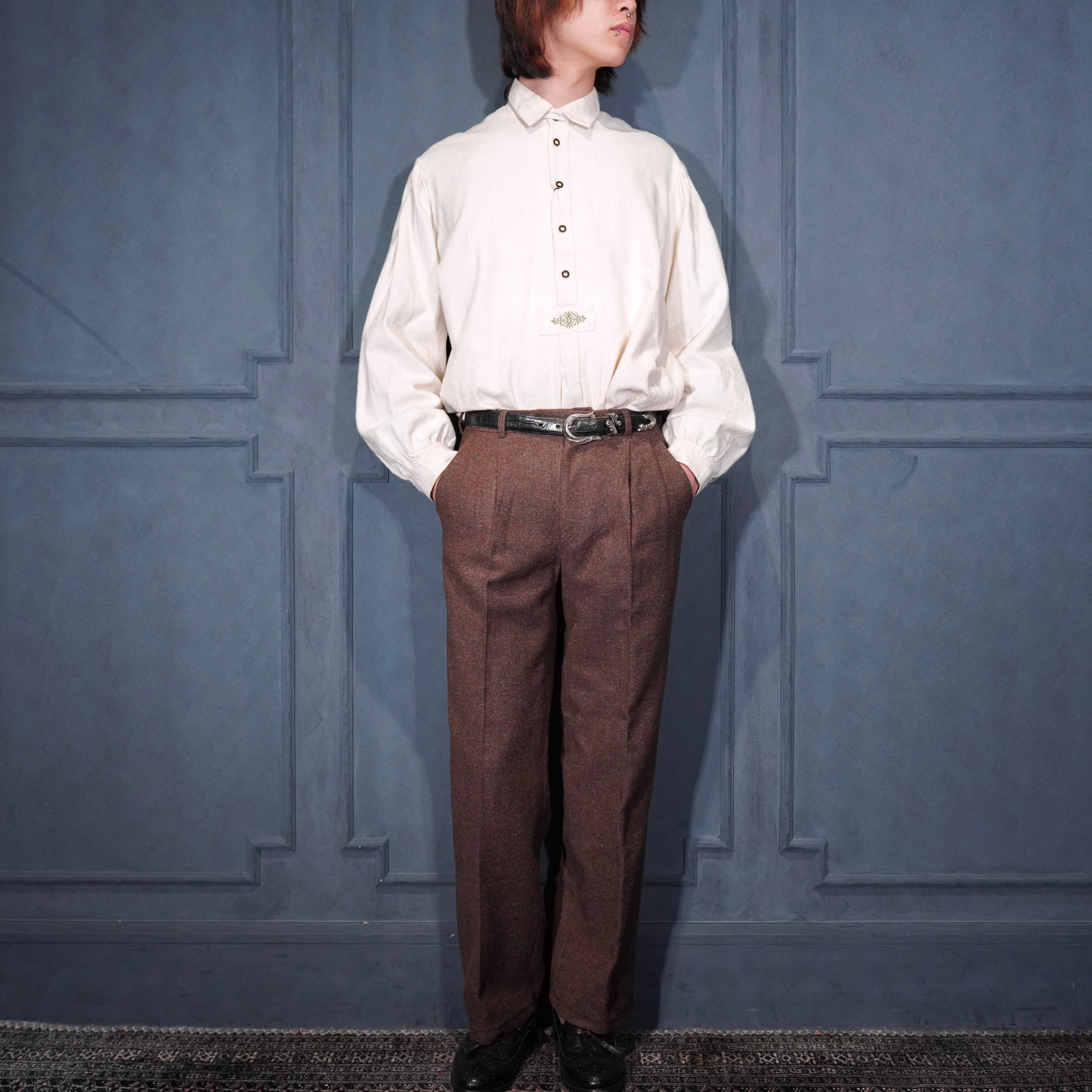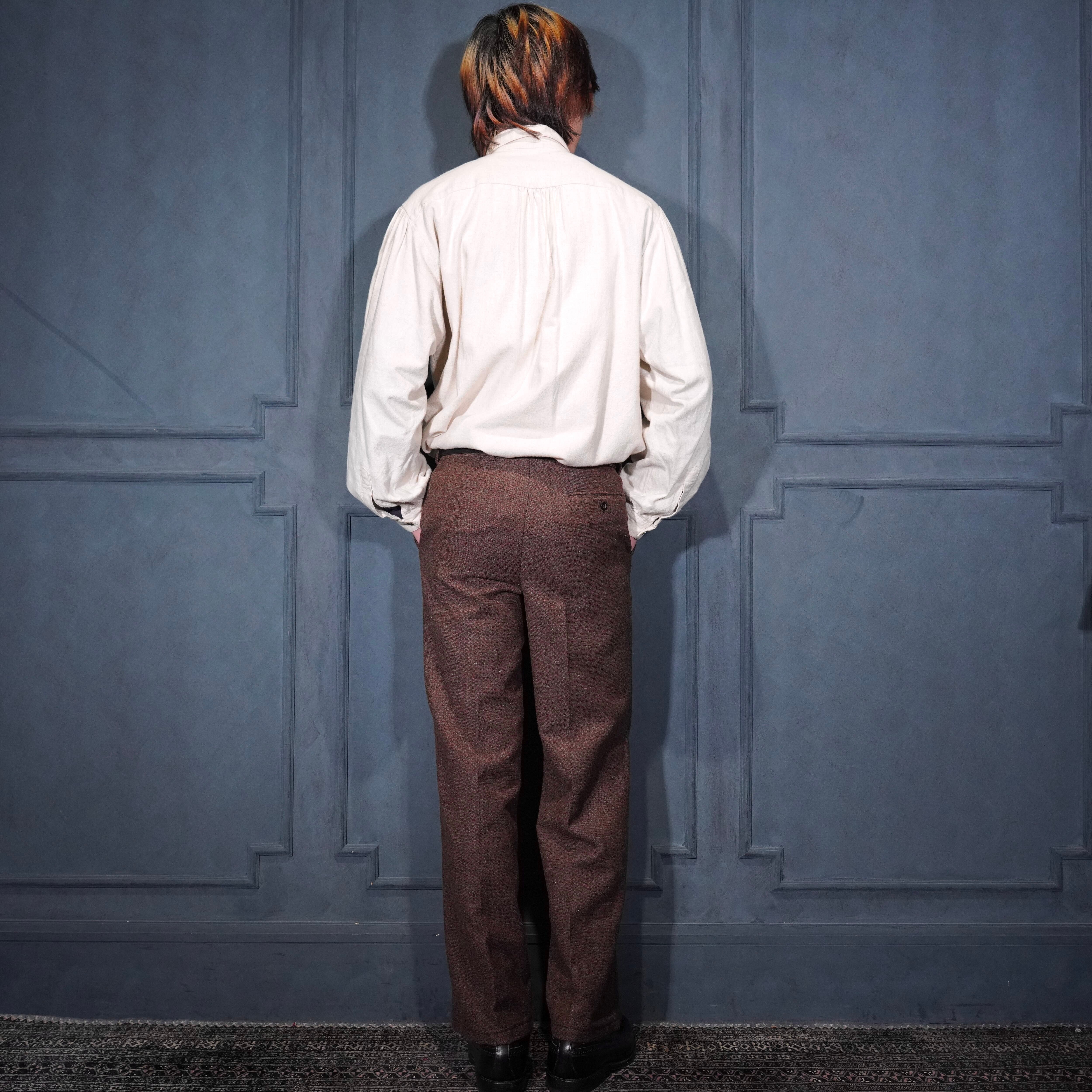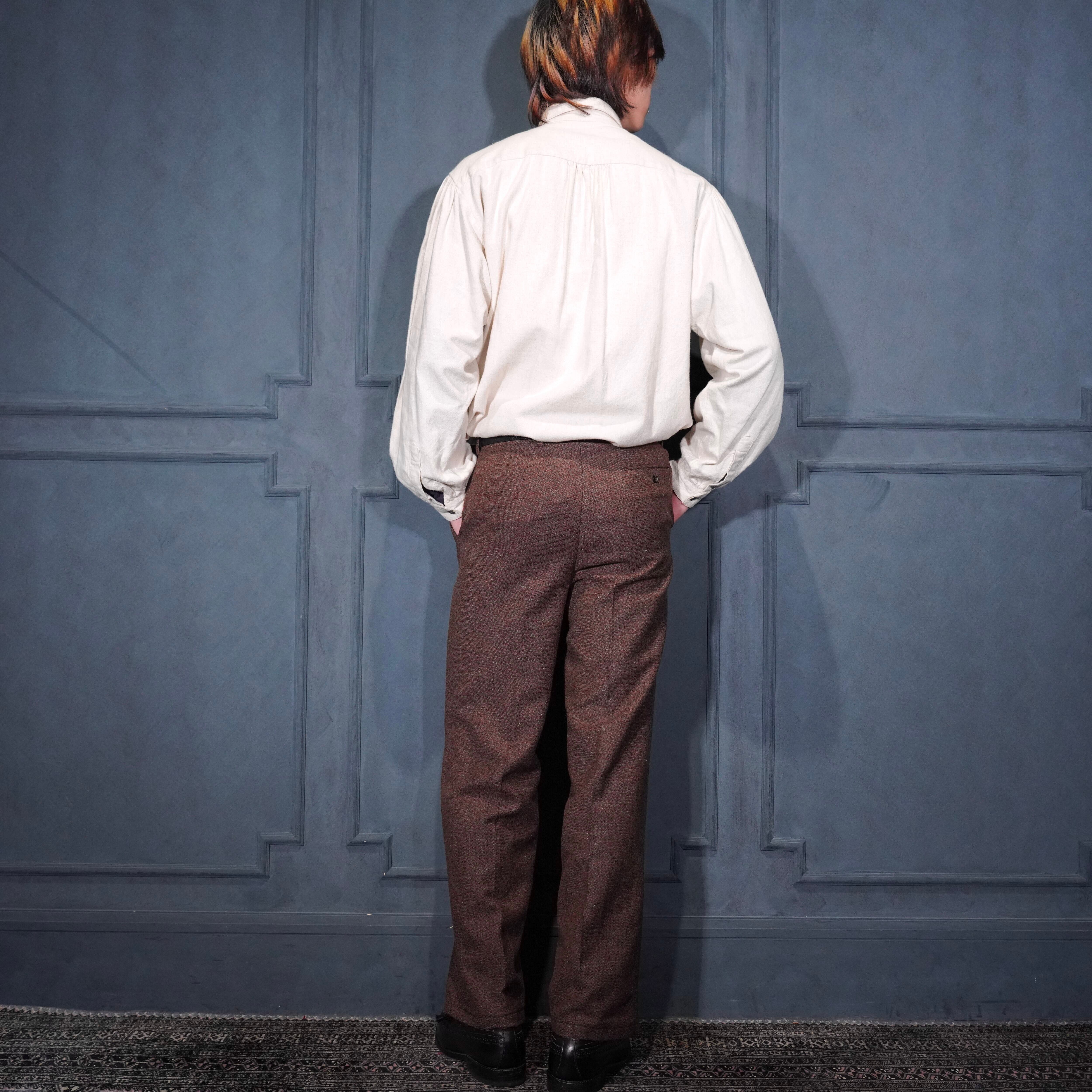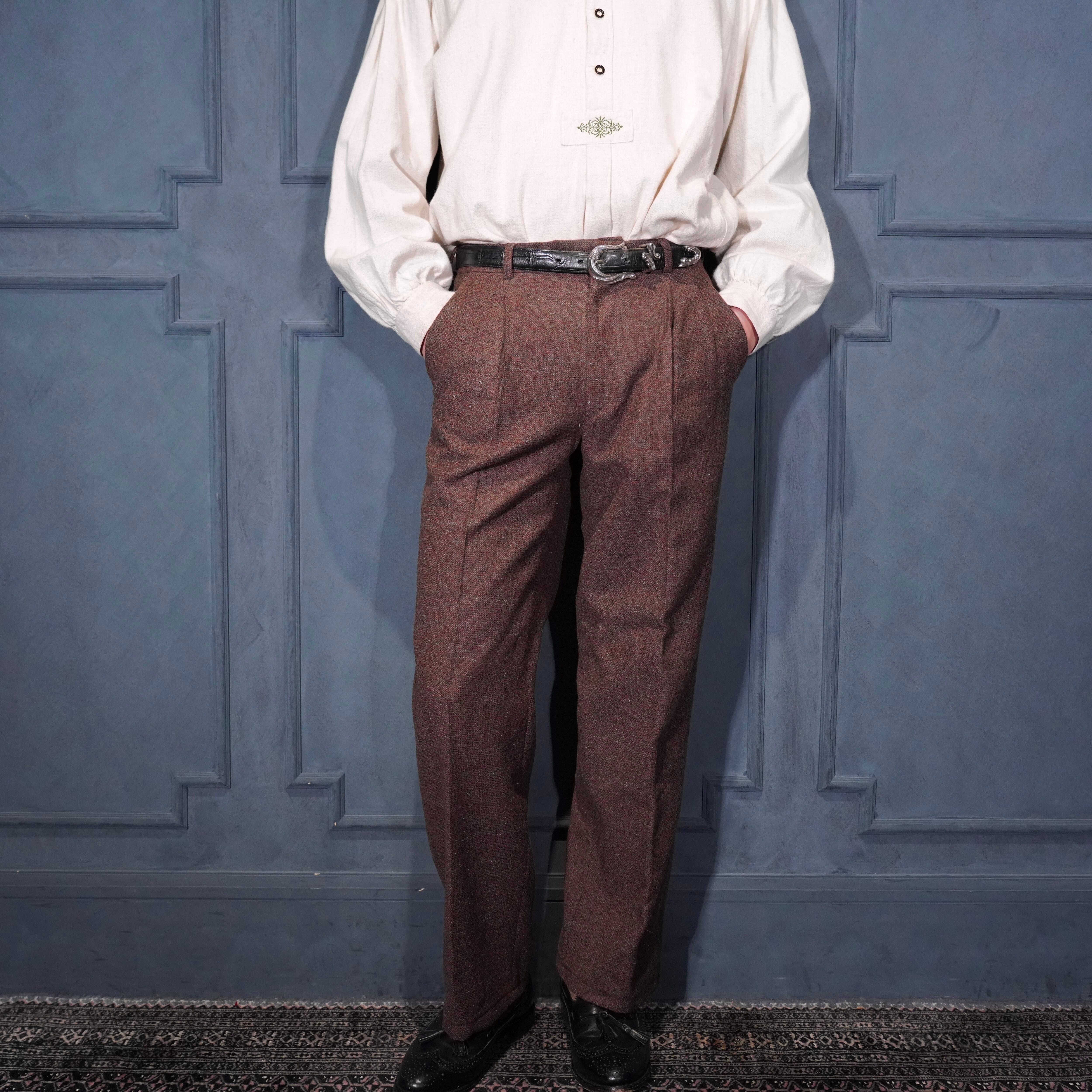 60's~70's EU VINTAGE Anthony Best tessilmaglia monza TUCK DESIGN TWEED SLACKS PANTS/60年代~70年代ヨーロッパ古着タックデザインツイードスラックスパンツ