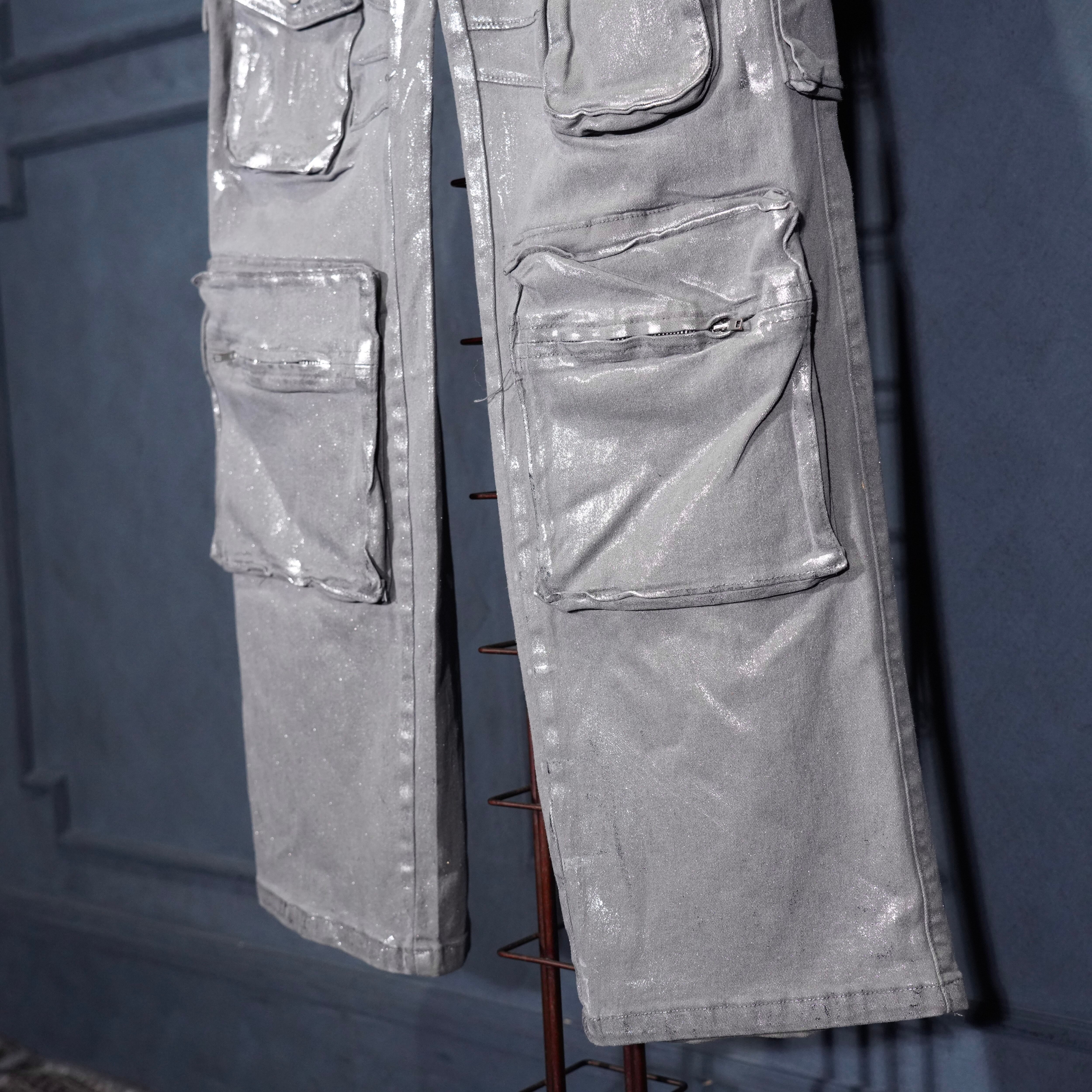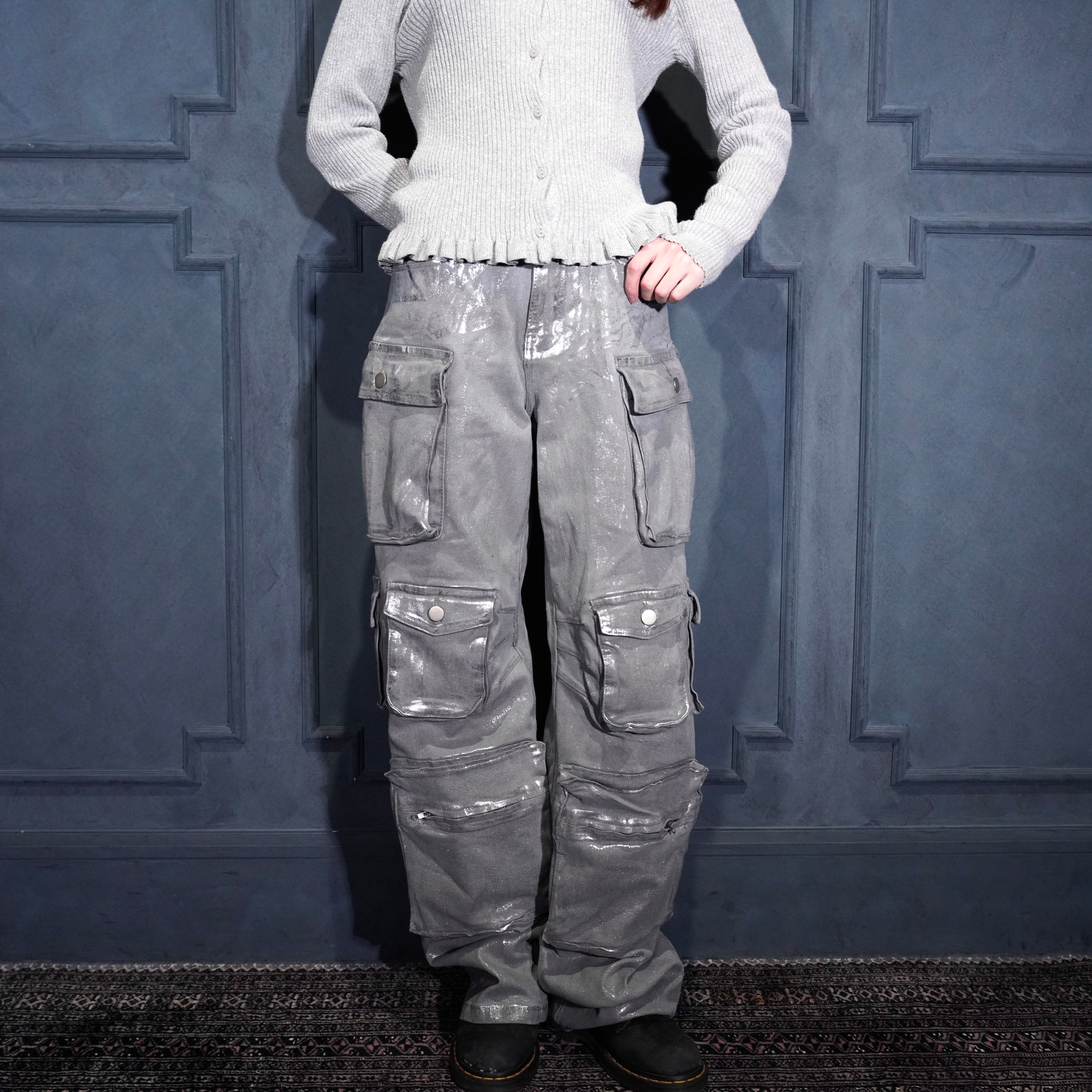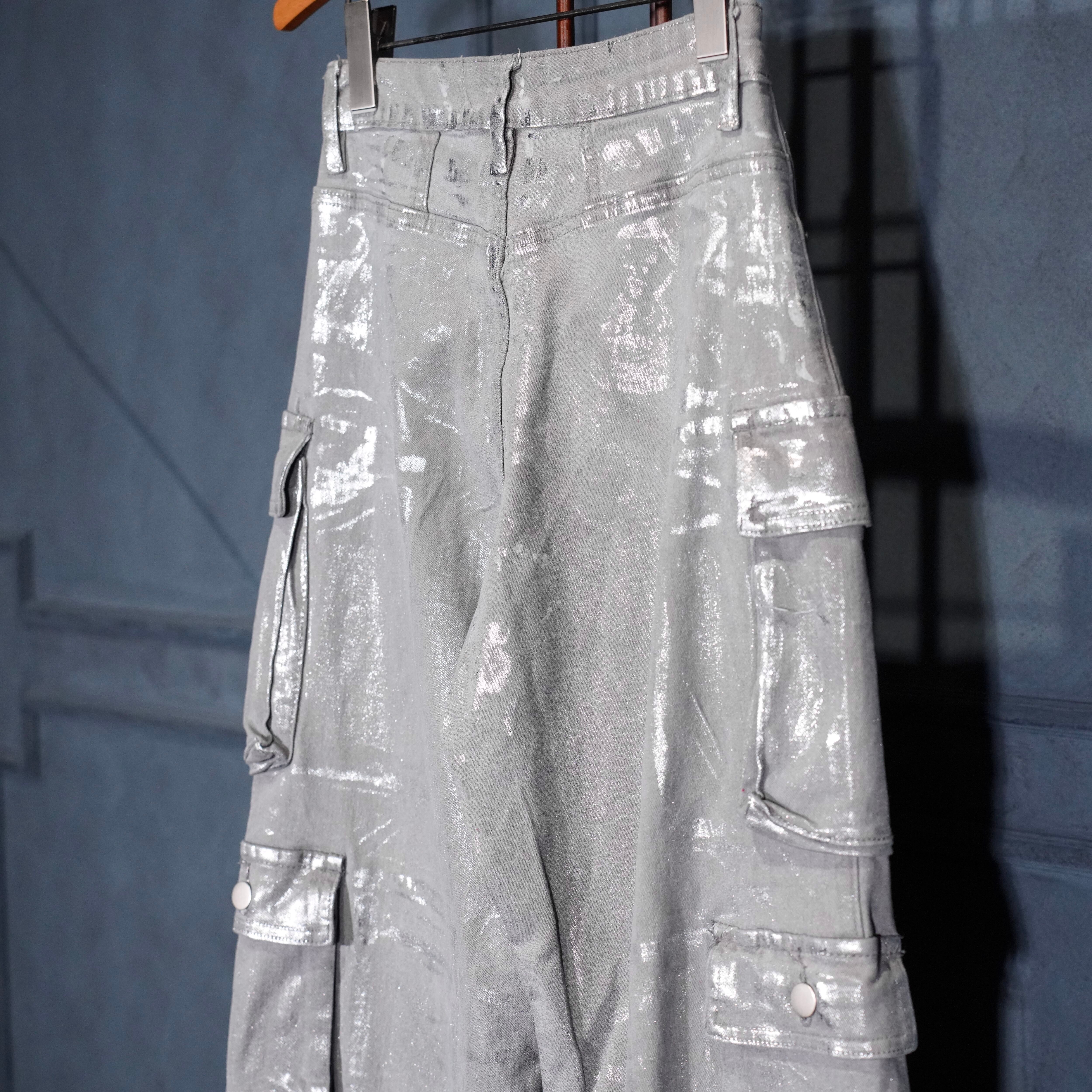 USA VINTAGE FASHION NOVA GRITTER PAINTED CARGO DENIM PANTS/アメリカ古着グリッターペイントデザインデニムカーゴパンツ