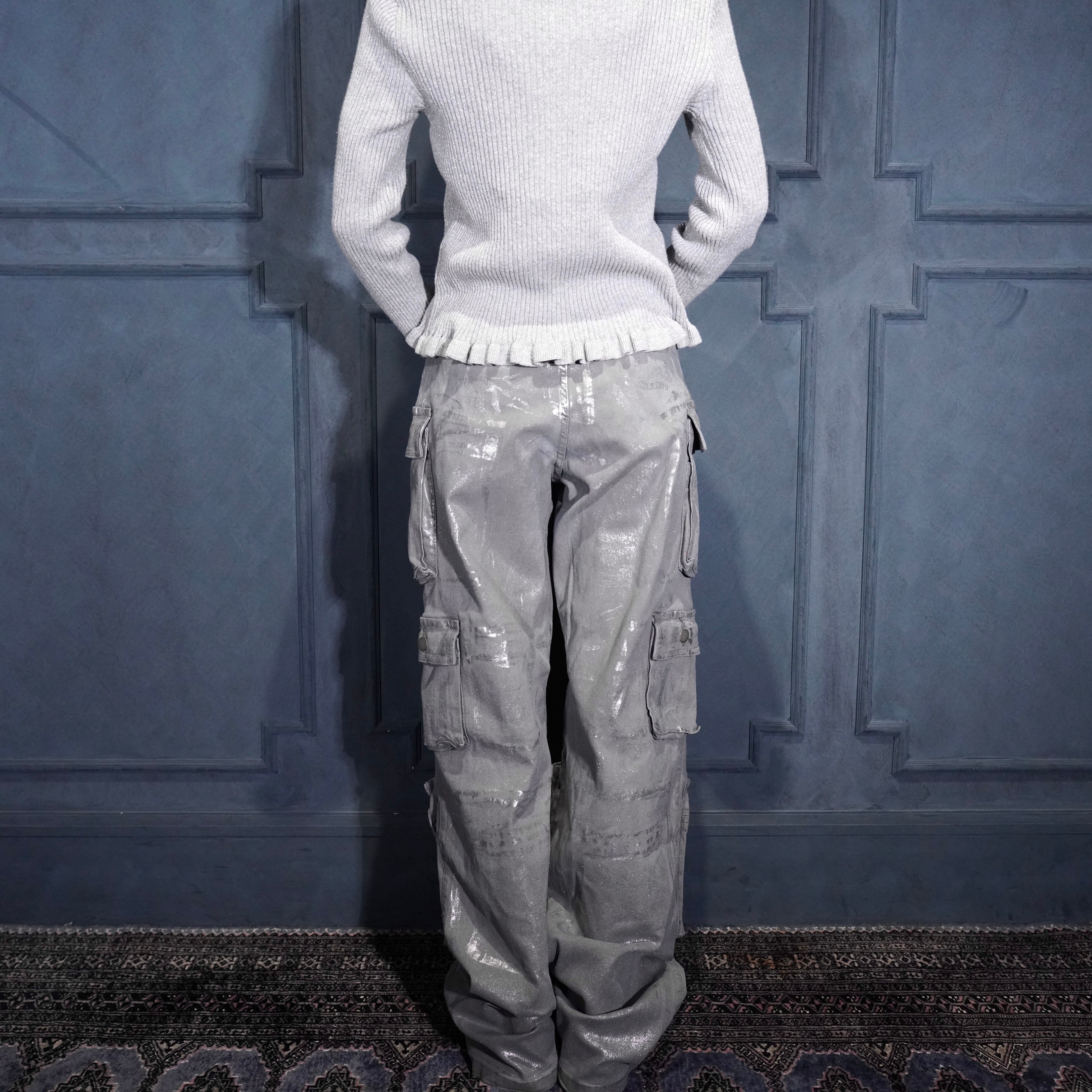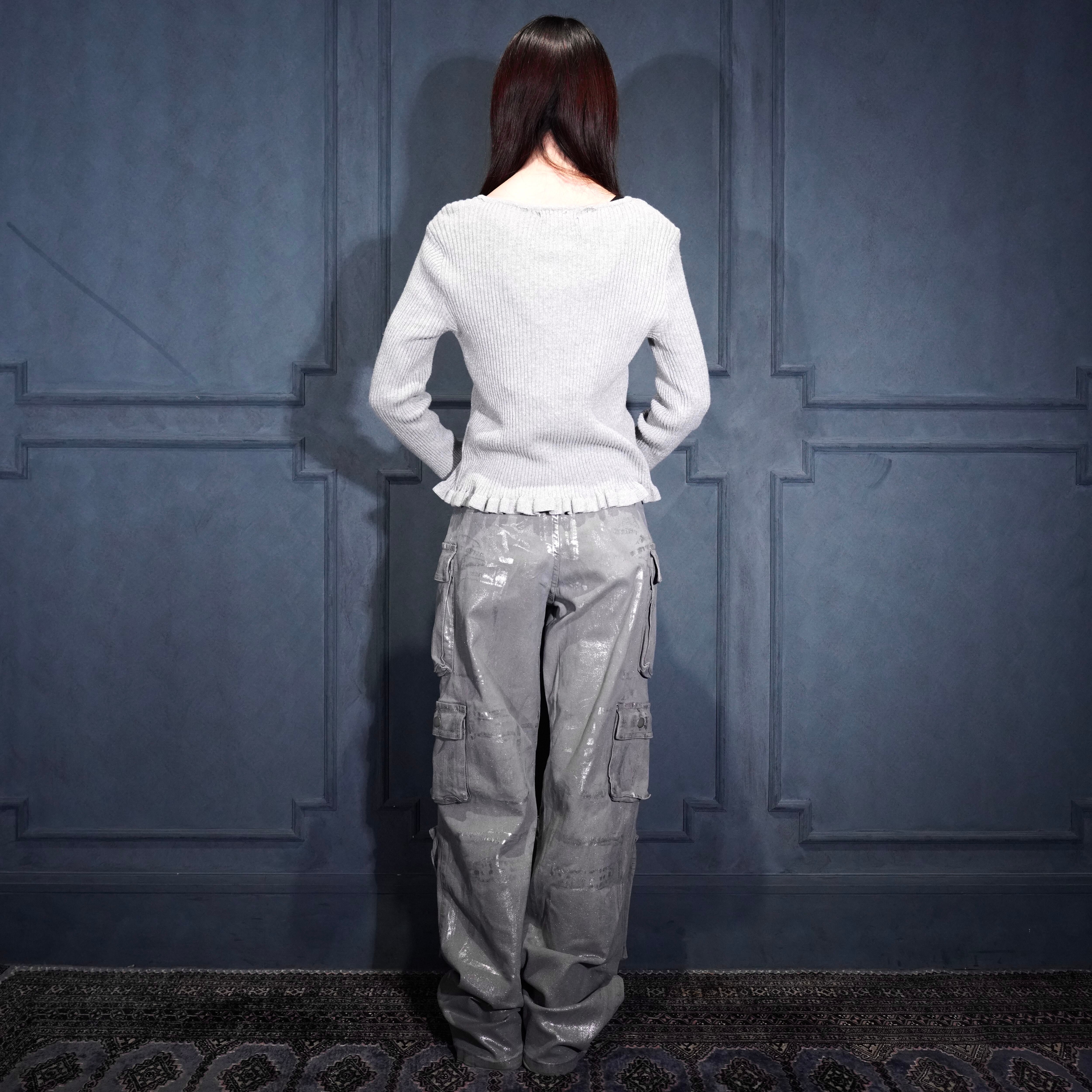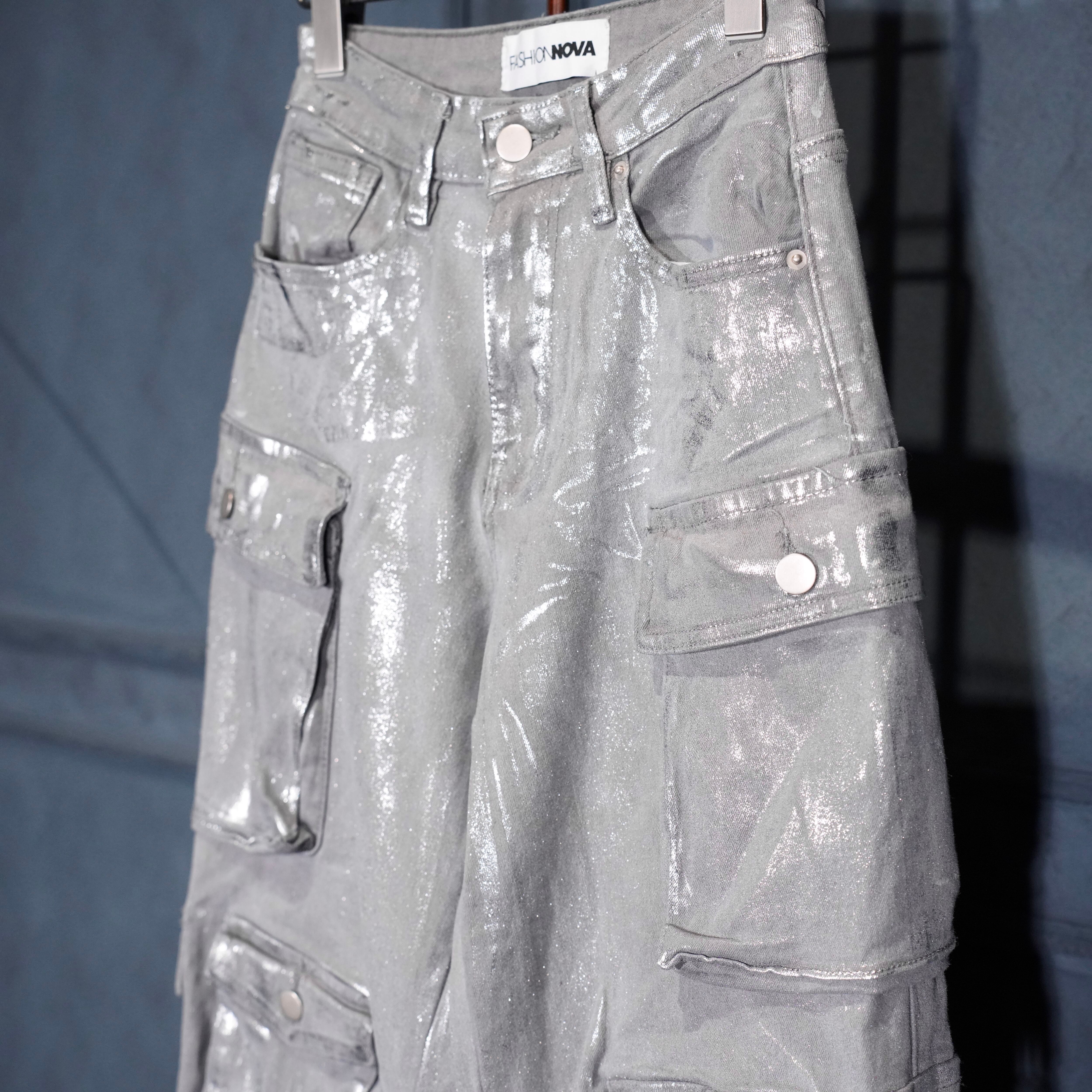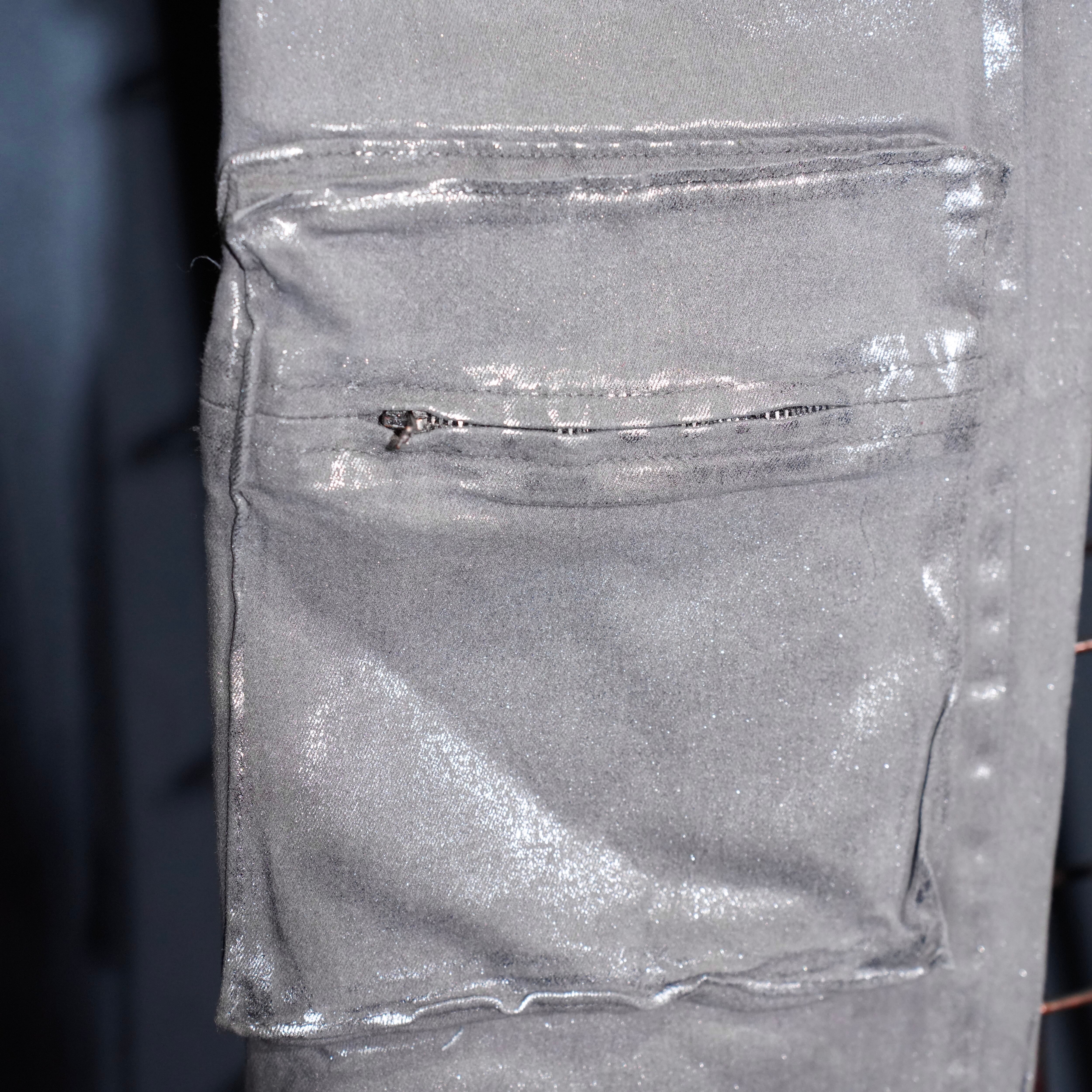 USA VINTAGE FASHION NOVA GRITTER PAINTED CARGO DENIM PANTS/アメリカ古着グリッターペイントデザインデニムカーゴパンツ