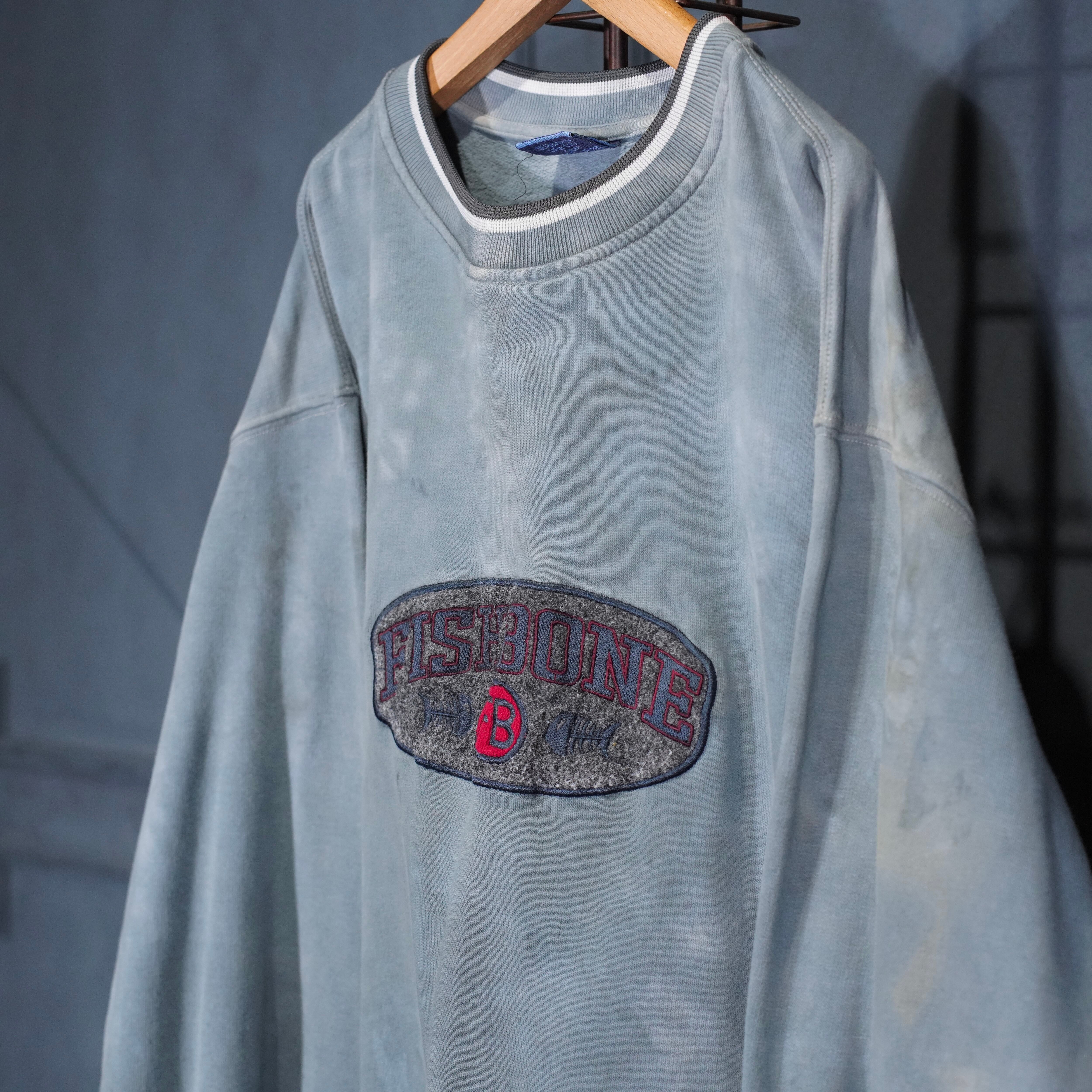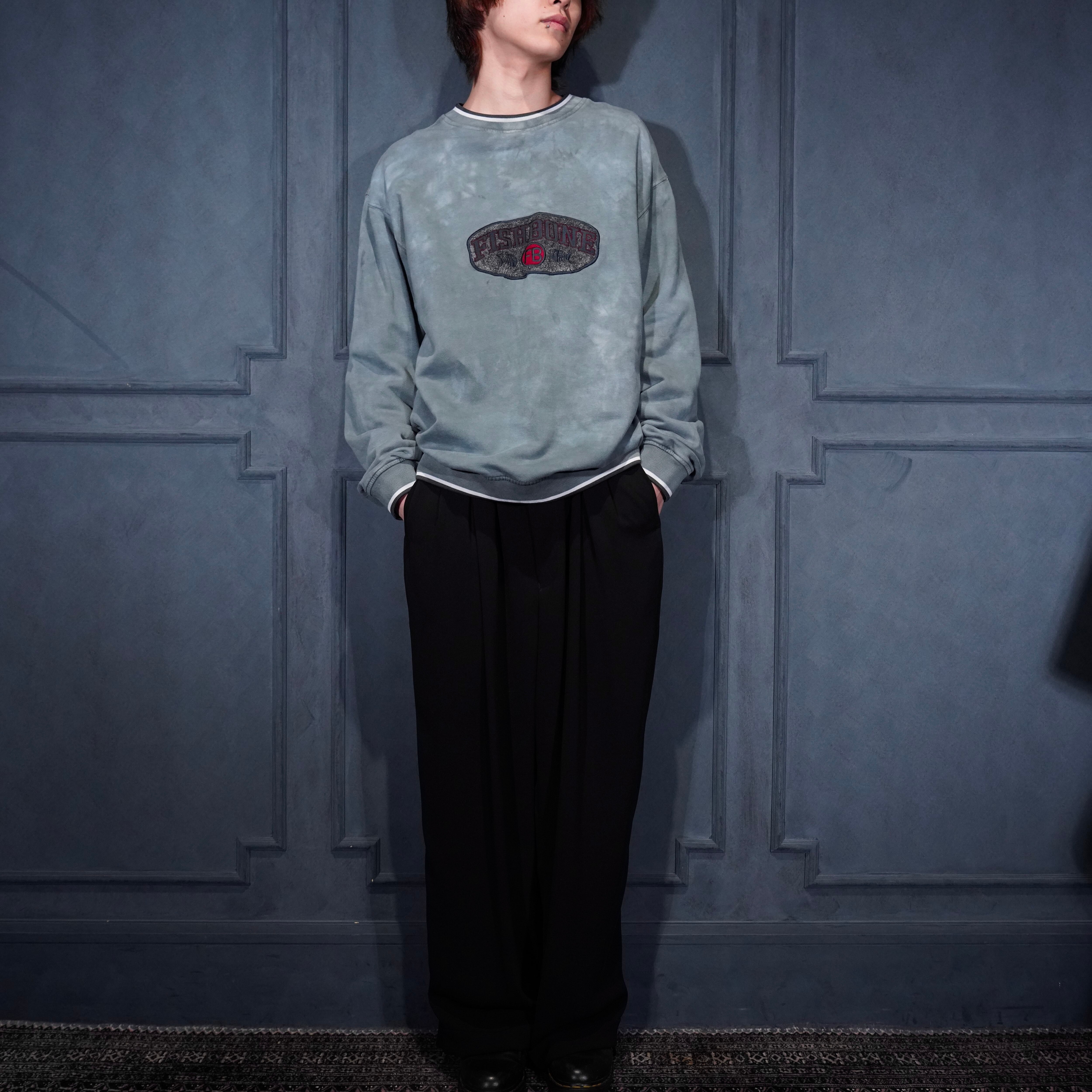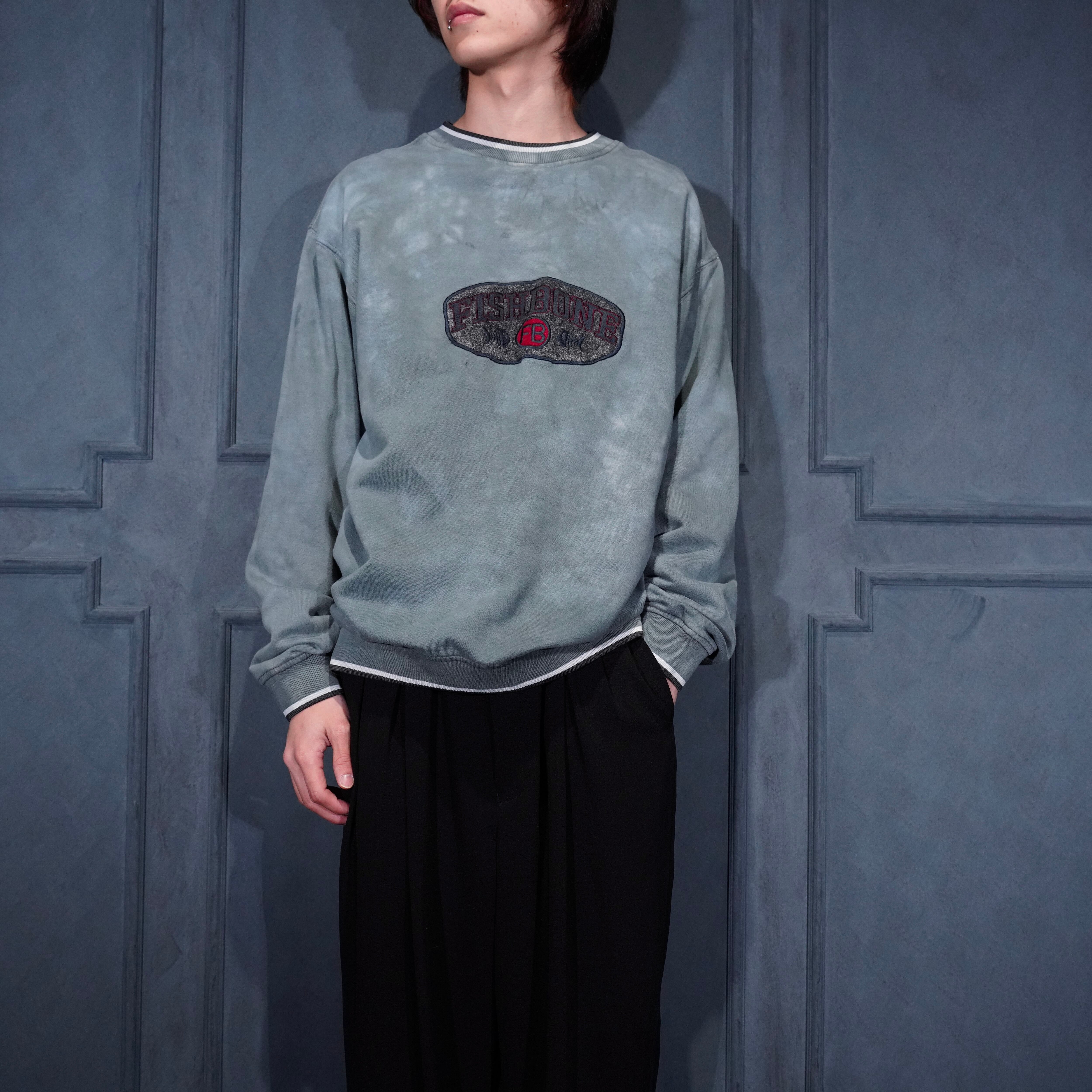 USA VINTAGE fishbone OVER DYE EMBROIDERY DESIGN SWEAT SHIRT/アメリカ古着後染めロゴ刺繍デザインスウェット