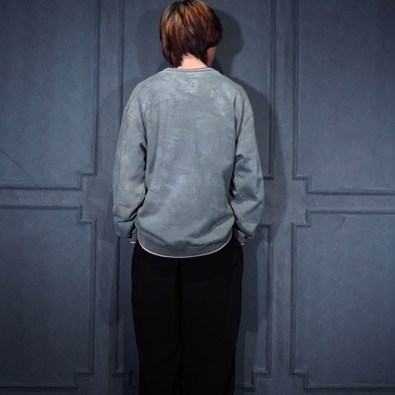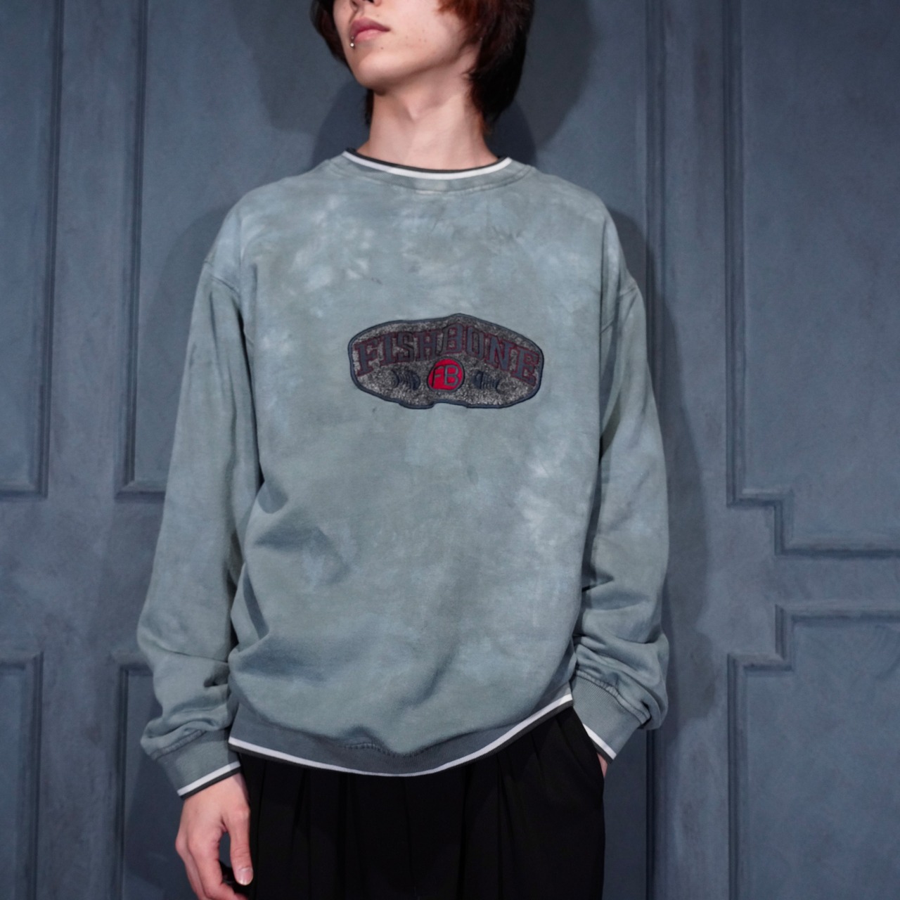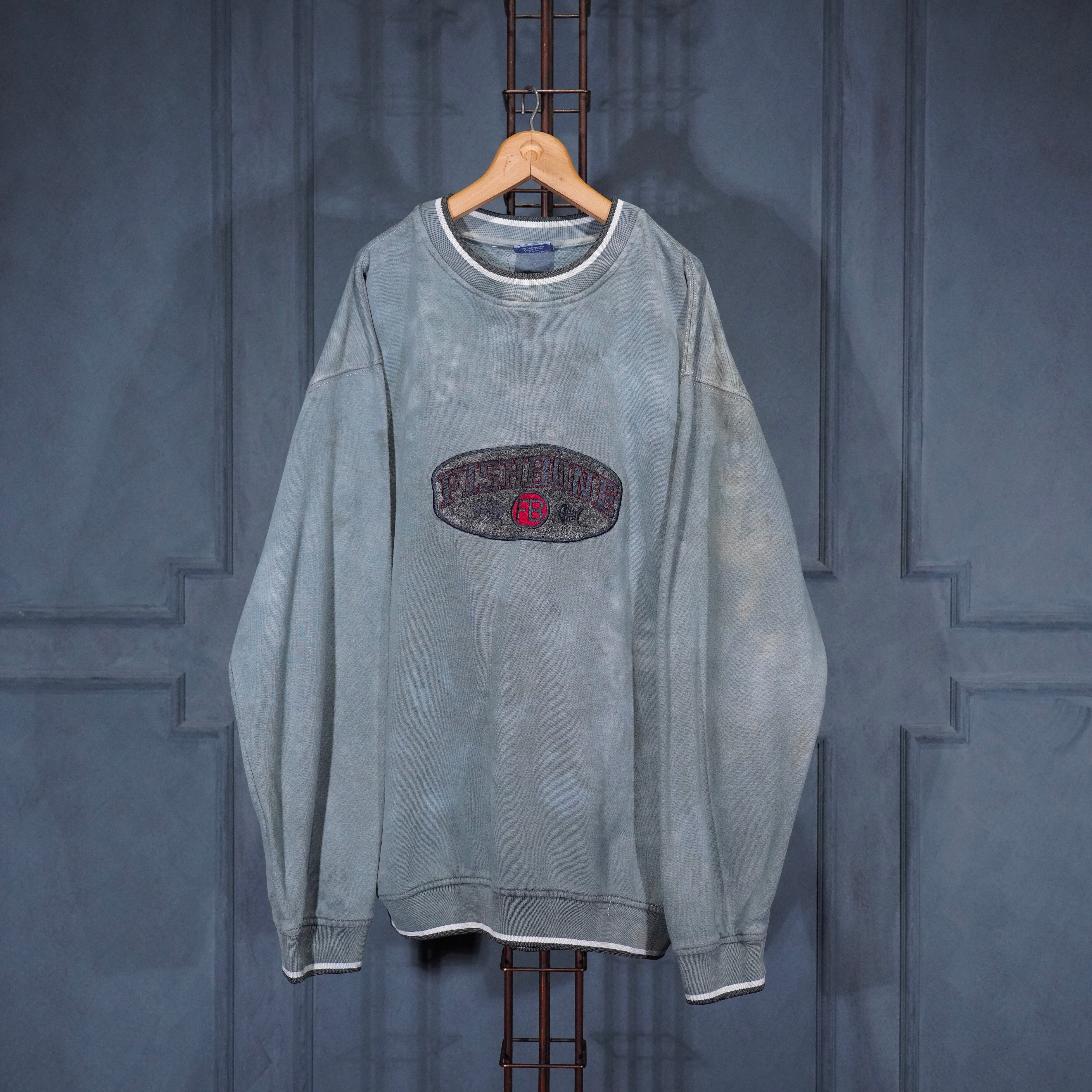 USA VINTAGE fishbone OVER DYE EMBROIDERY DESIGN SWEAT SHIRT/アメリカ古着後染めロゴ刺繍デザインスウェット