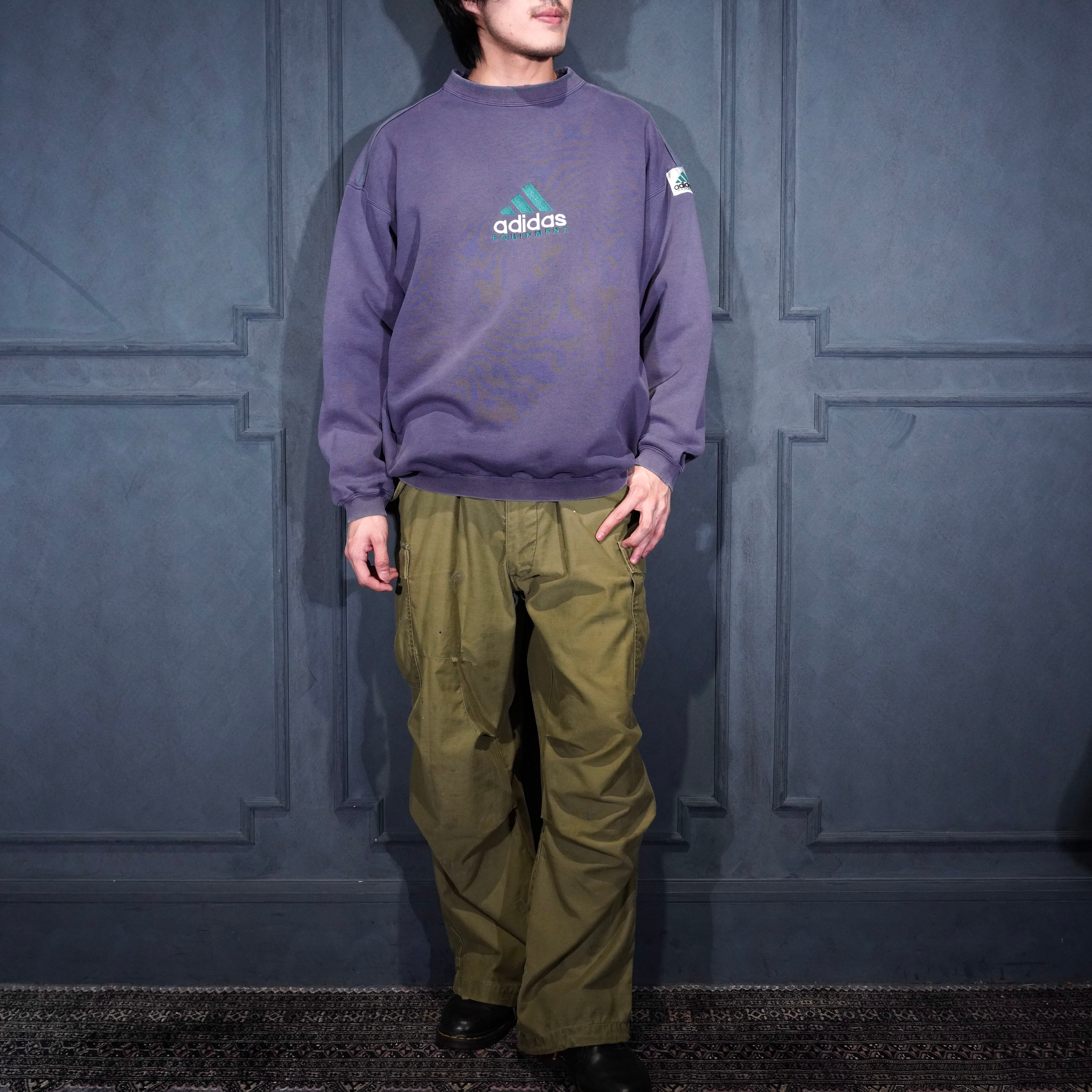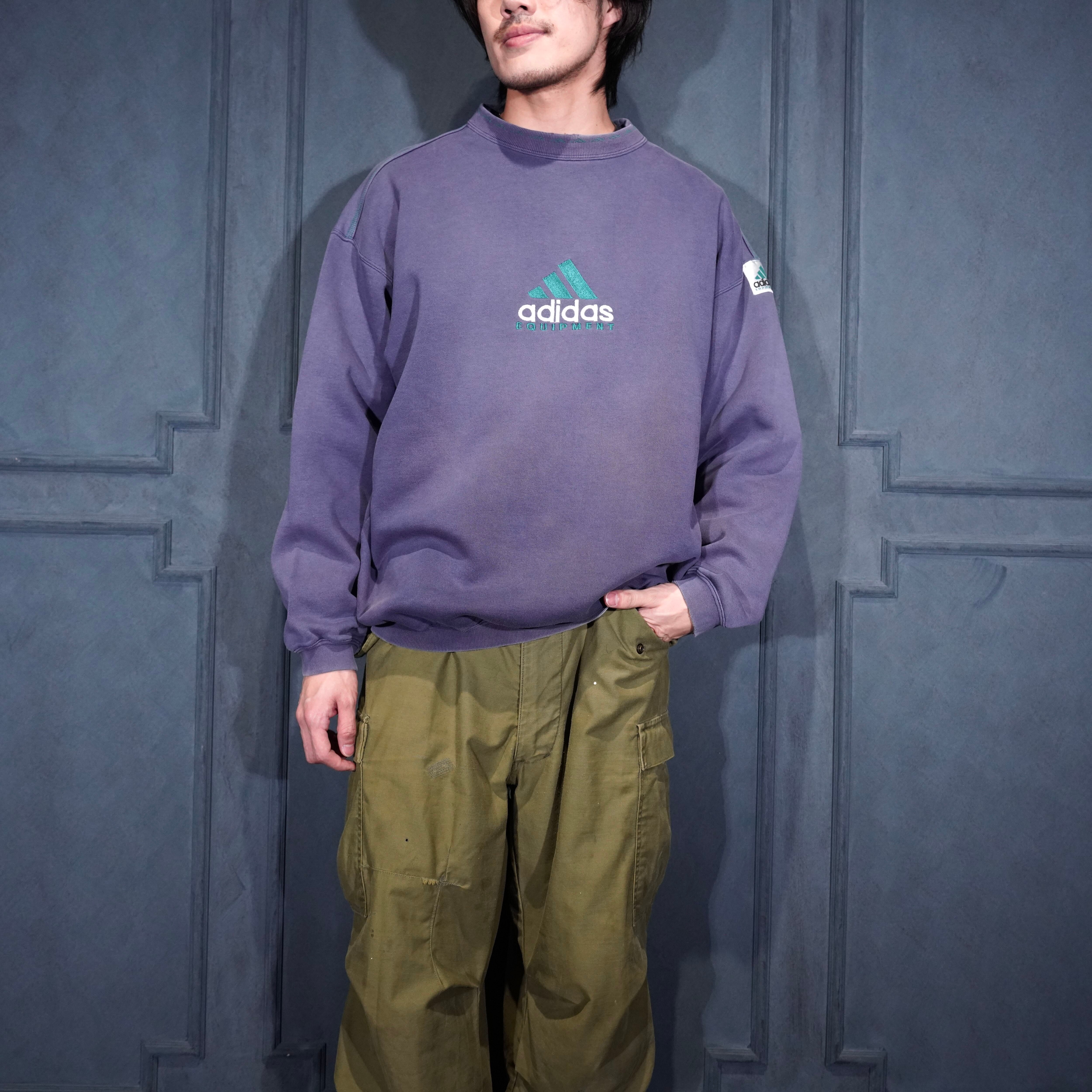 90’s USA VINTAGE adidas LOGO EMBROIDERY FADED DESIGN SWEAT SHIRT/90年代アメリカ古着アディダスロゴ刺繍フェードデザインスウェット