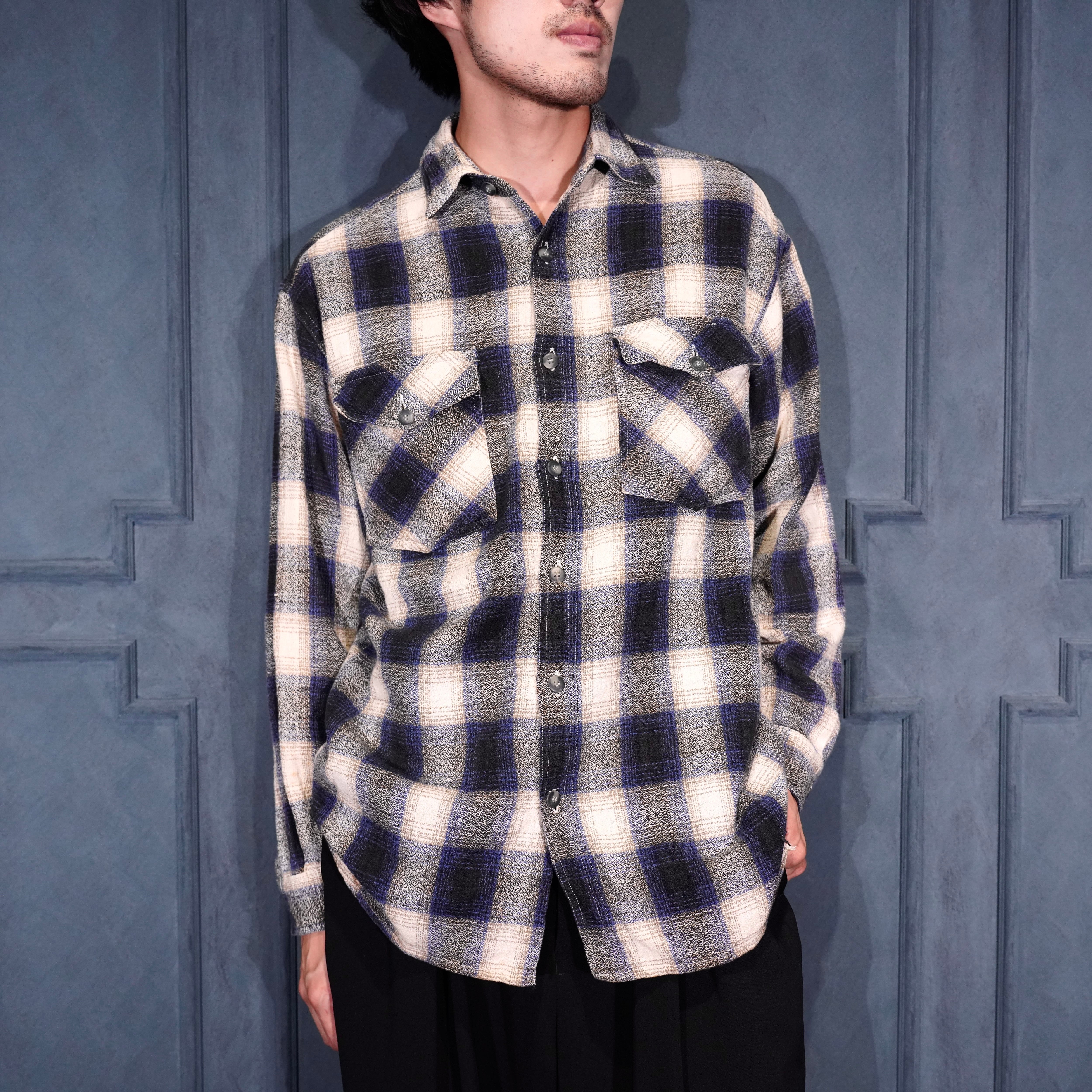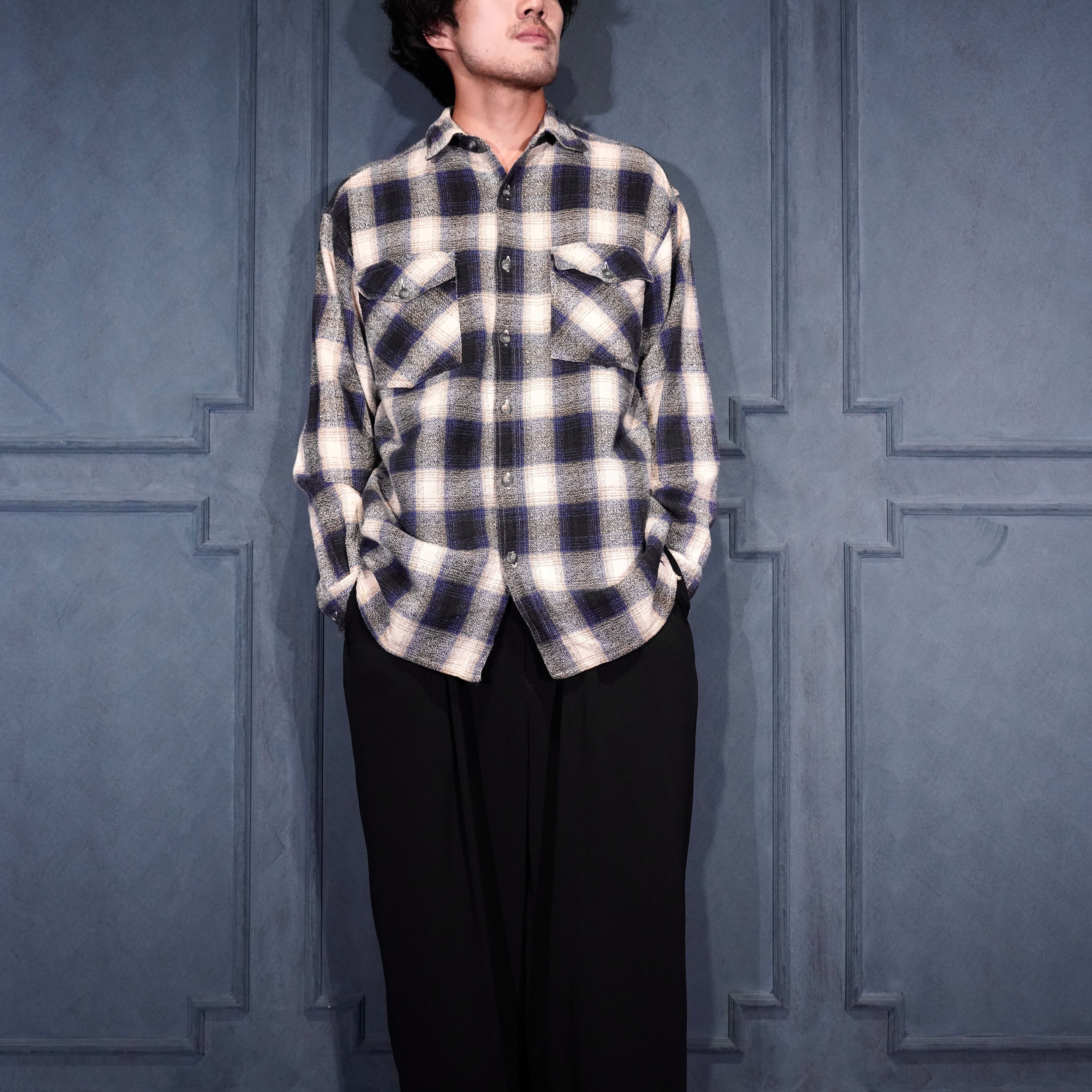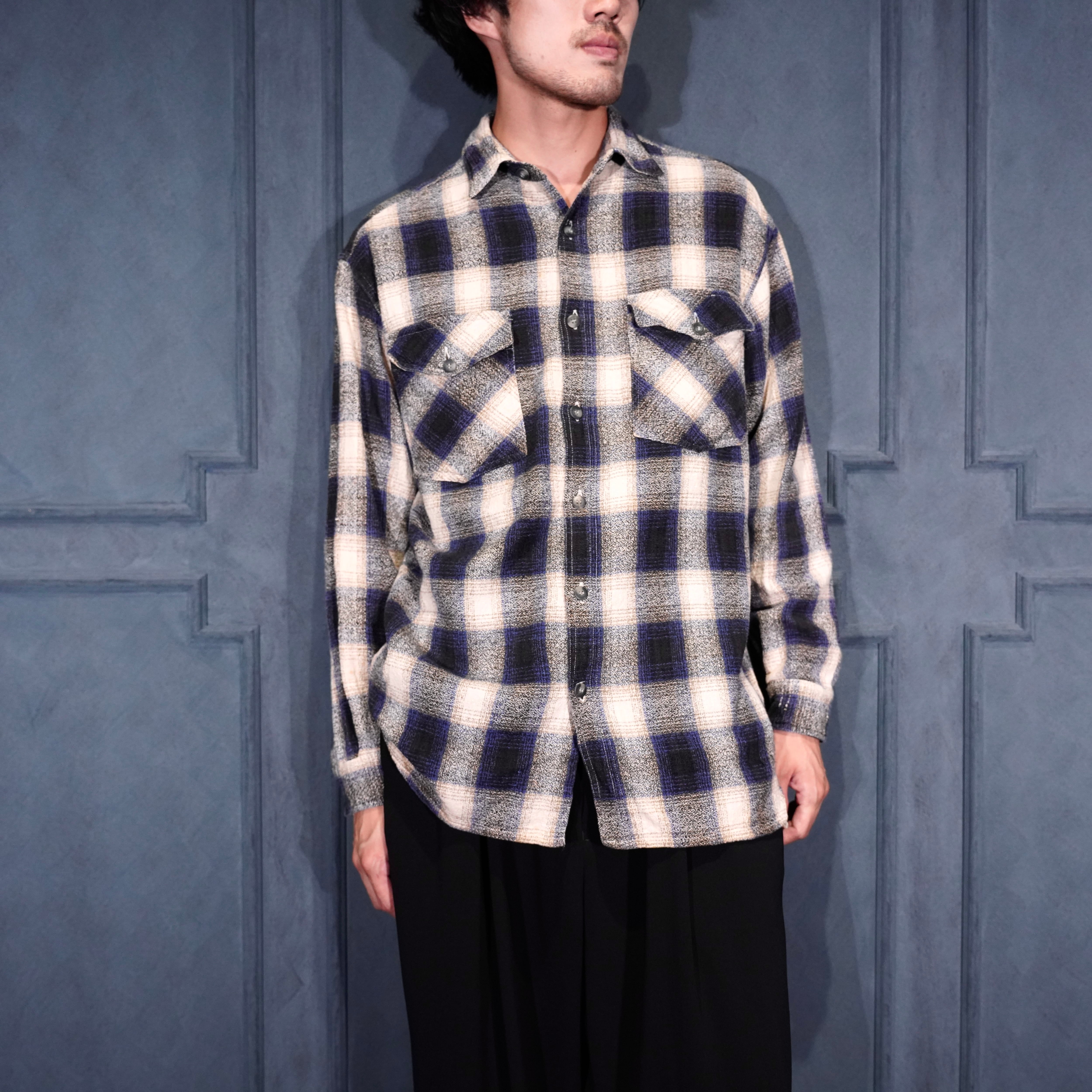 USA VINTAGE FIBRES OMBRE CHECK WOVEN DESIGN FLANNEL SHIRT/アメリカ古着オンブレチェック織デザインフランネルシャツ
