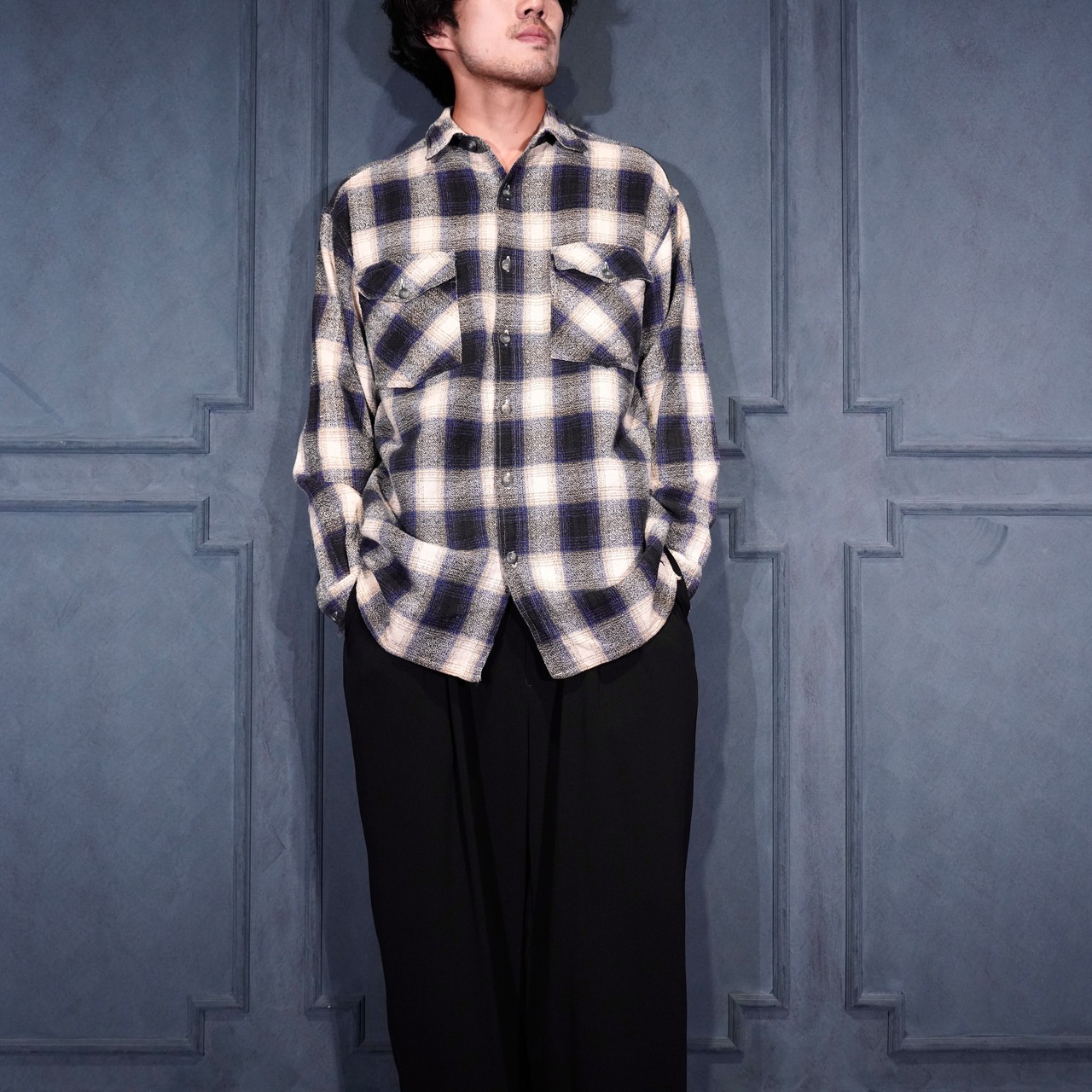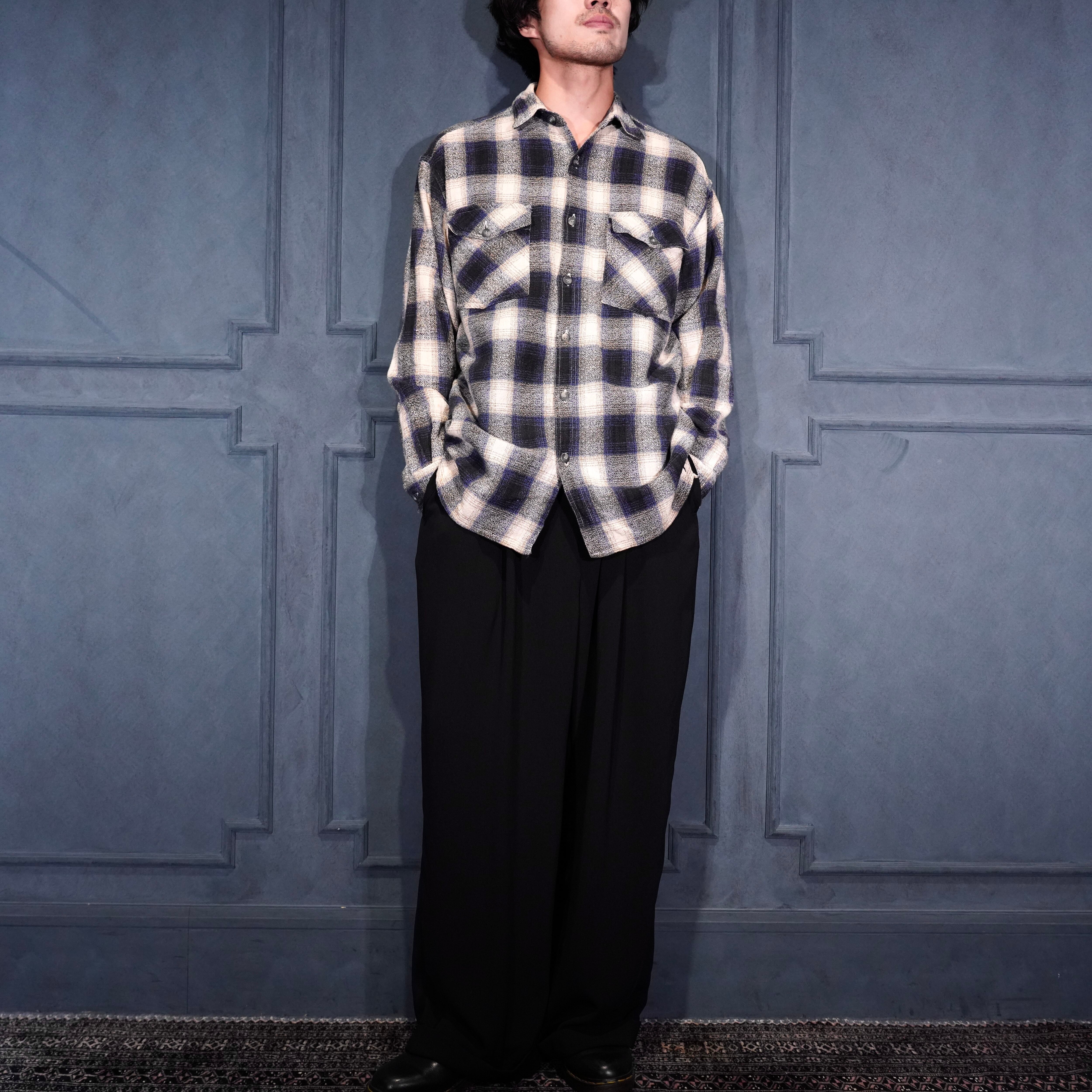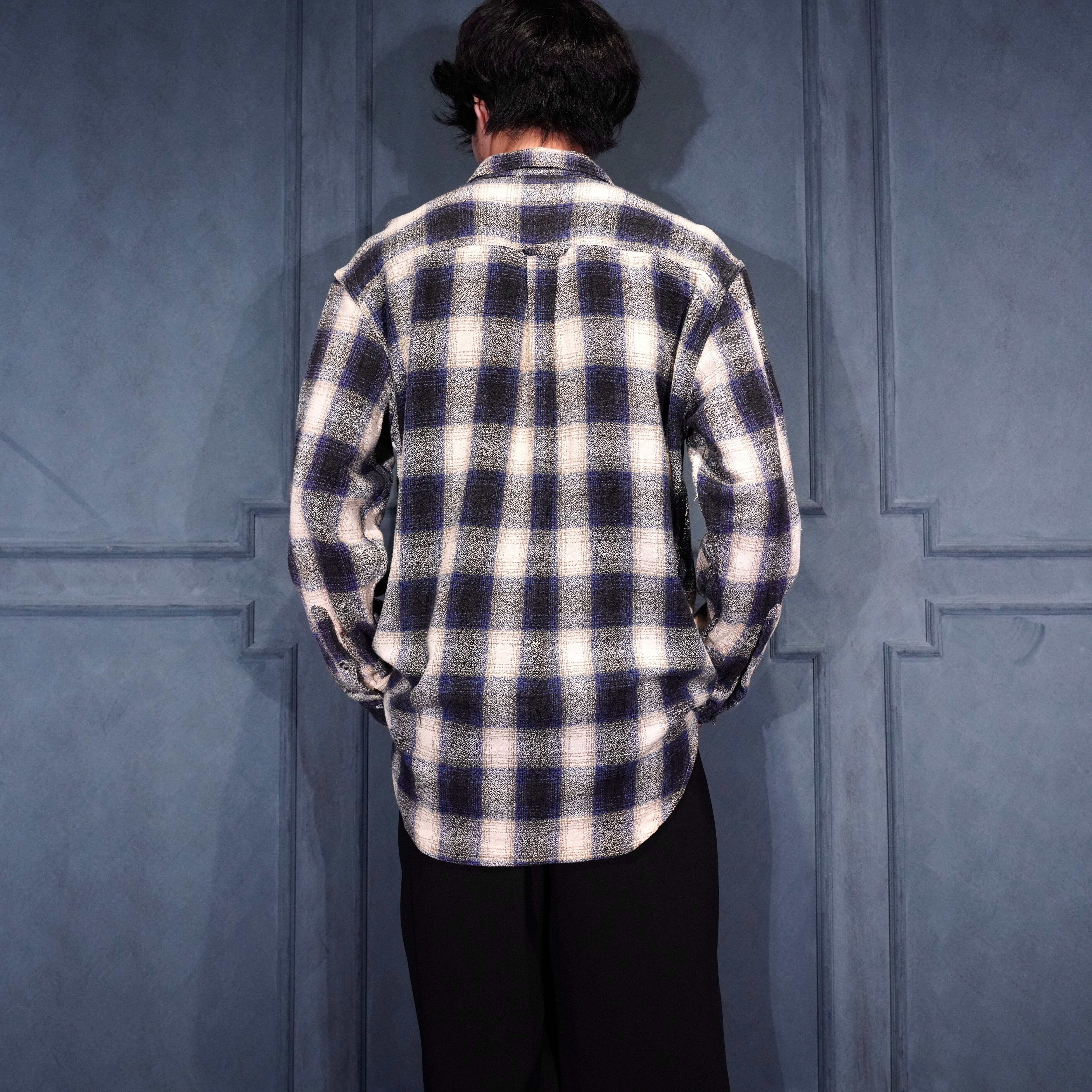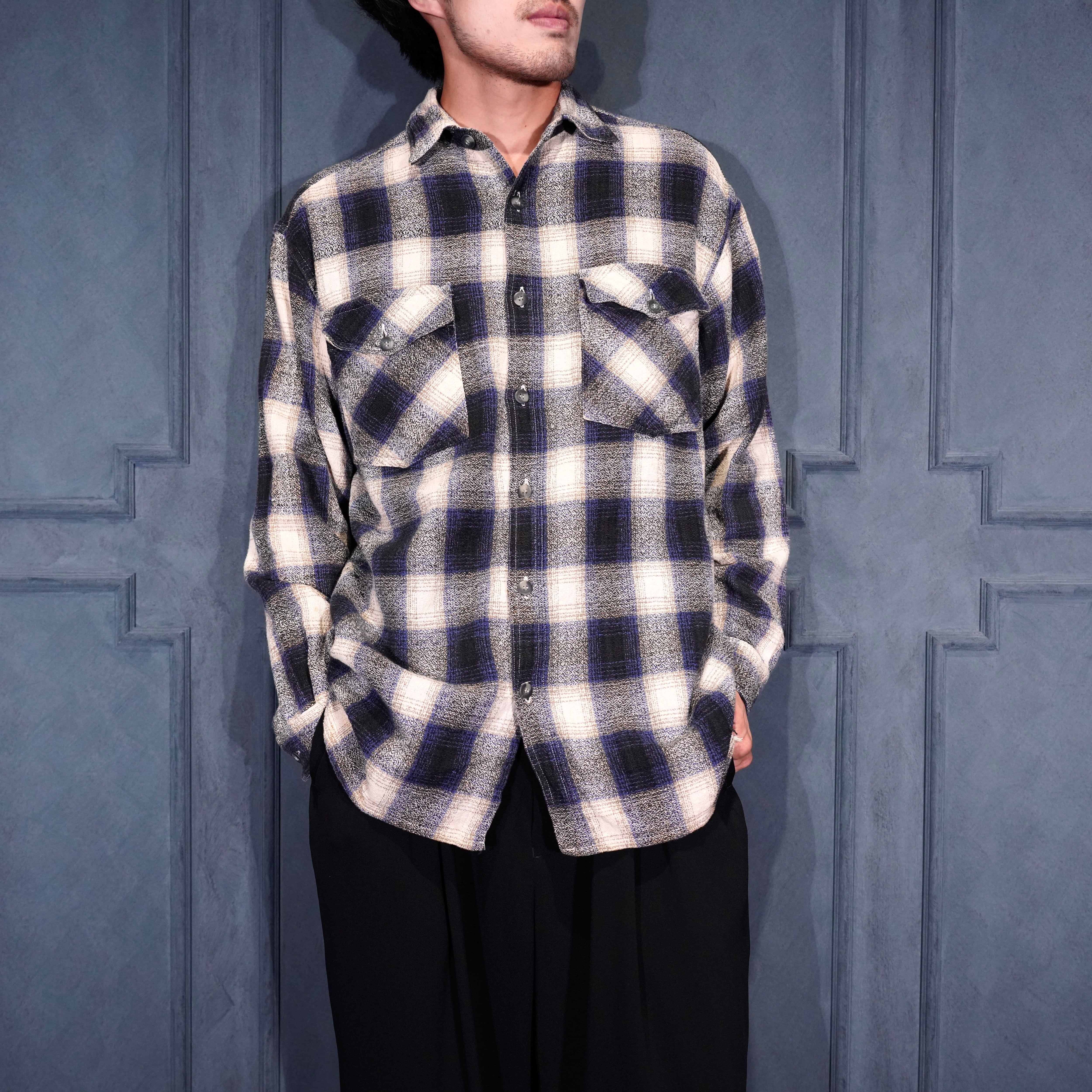 USA VINTAGE FIBRES OMBRE CHECK WOVEN DESIGN FLANNEL SHIRT/アメリカ古着オンブレチェック織デザインフランネルシャツ