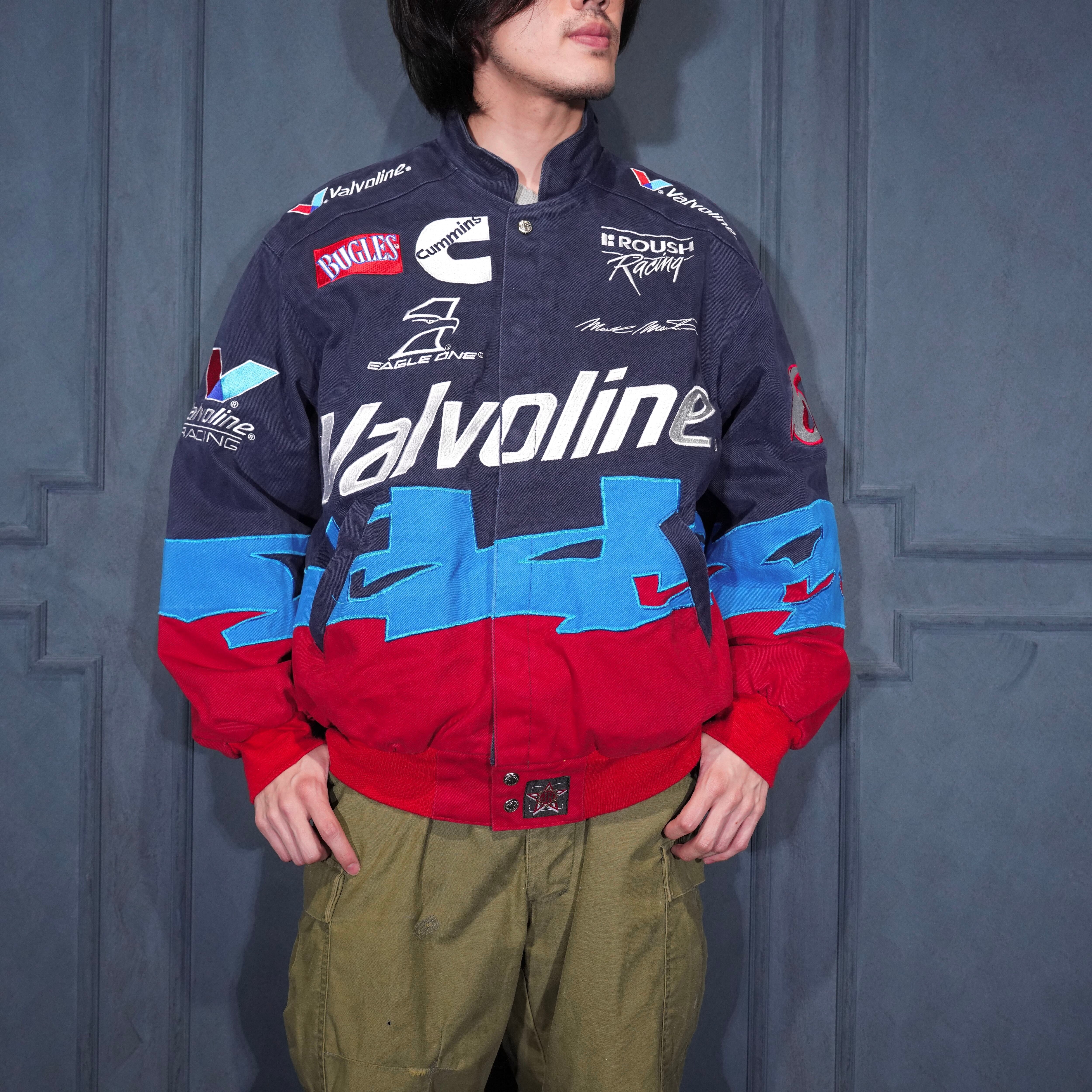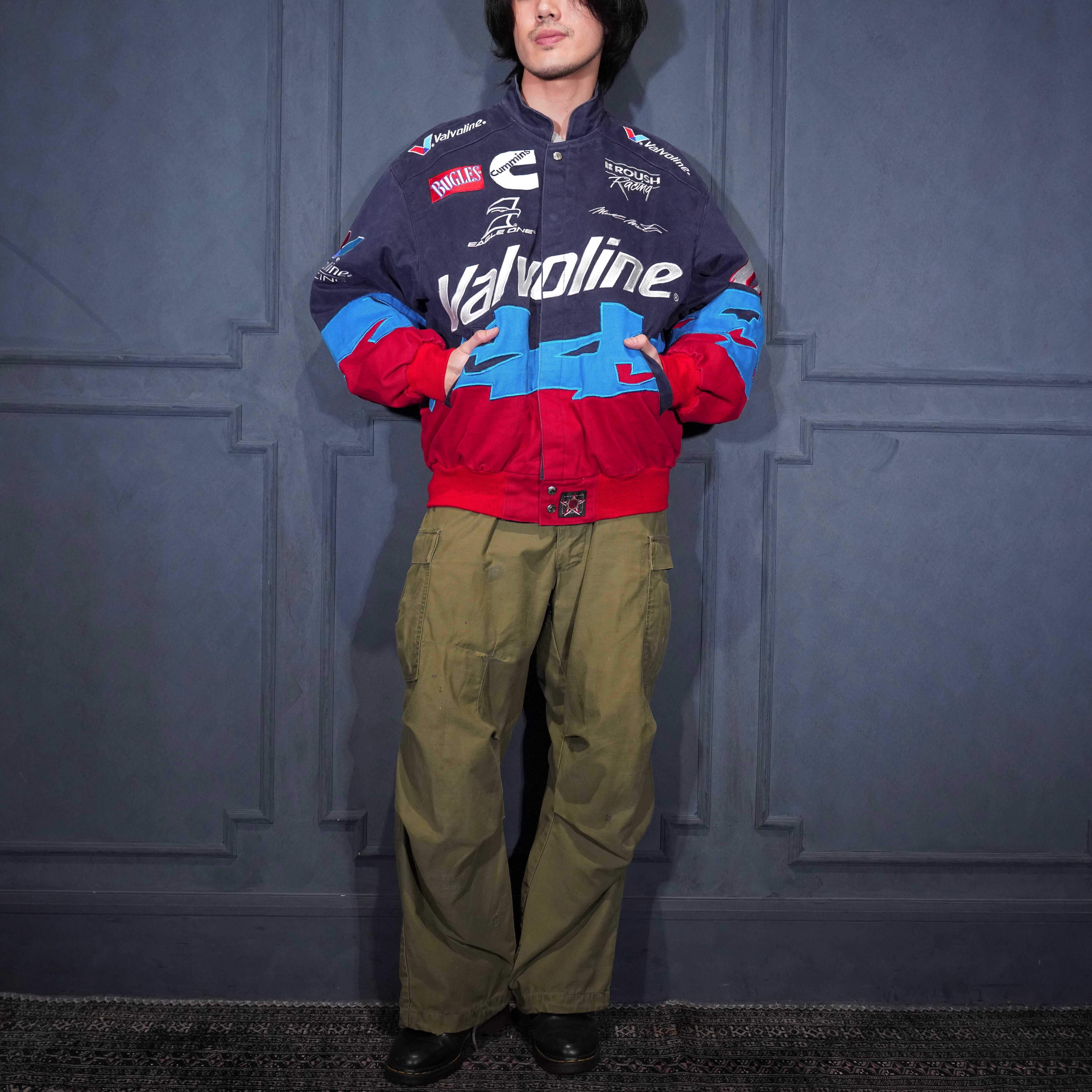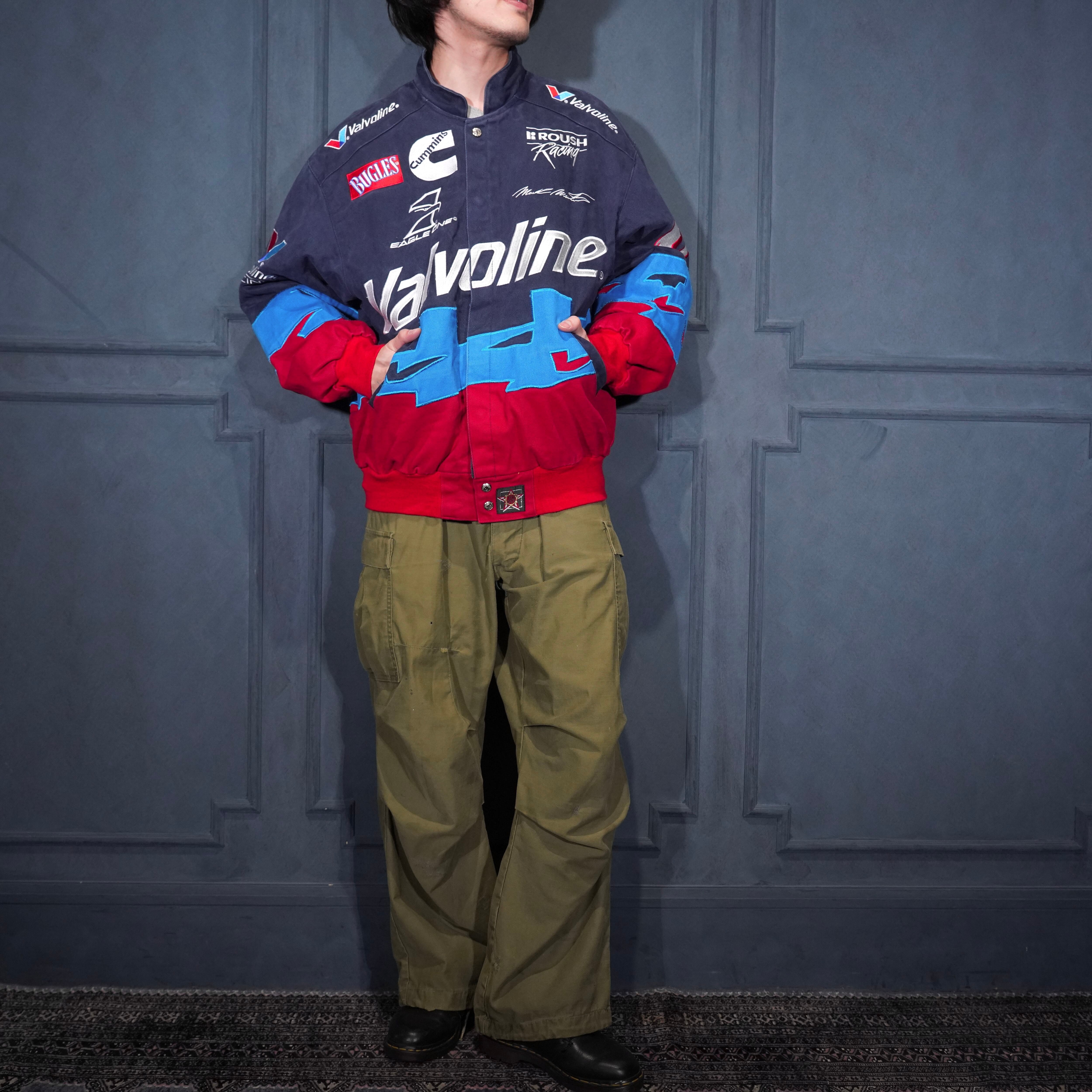USA VINATGE JH DESIGN JEFF HAMILTON EMBROIDERY DESIGN COTTON RACING JACKET/アメリカ古着ジェフハミルトン刺繍デザインコットンレーシングジャケット