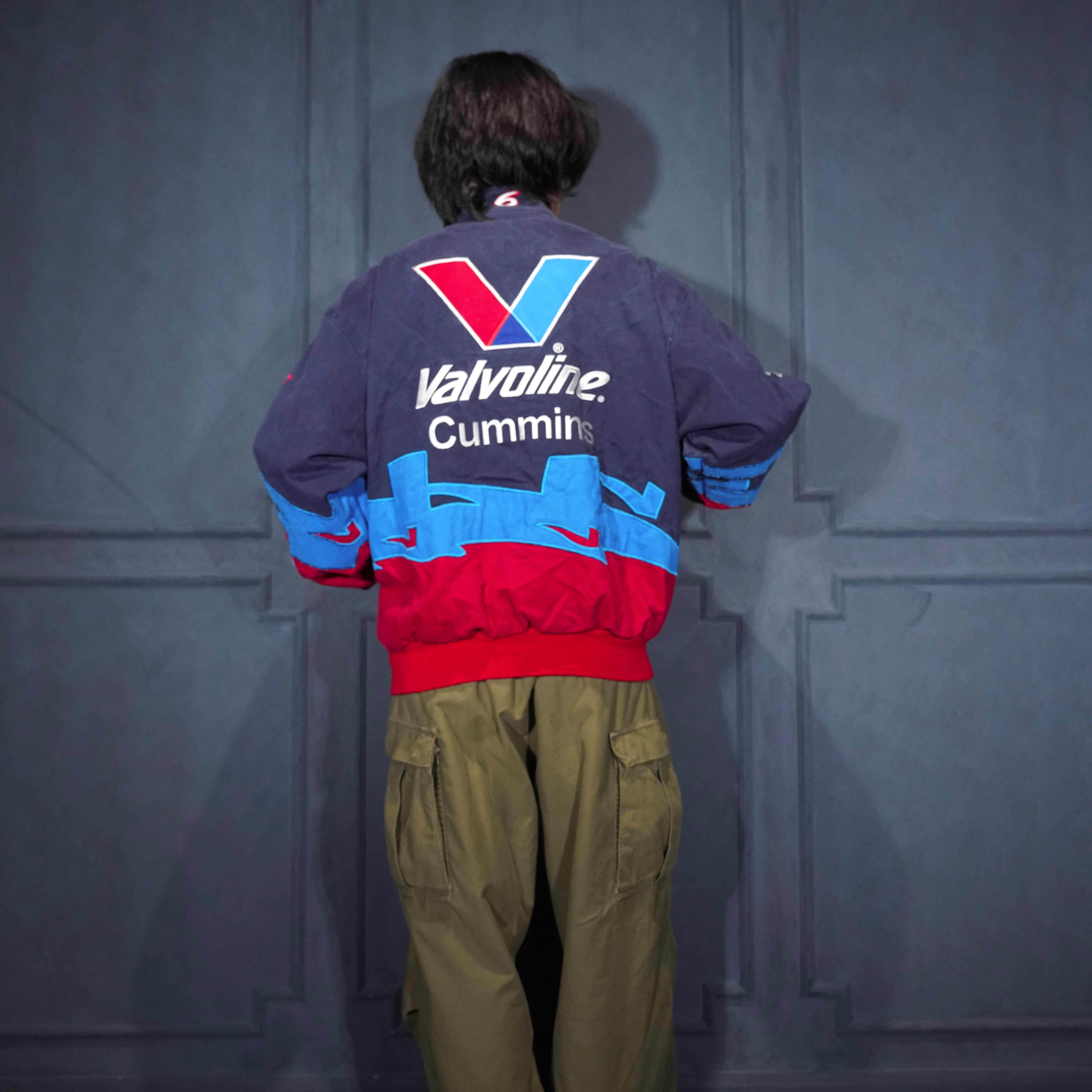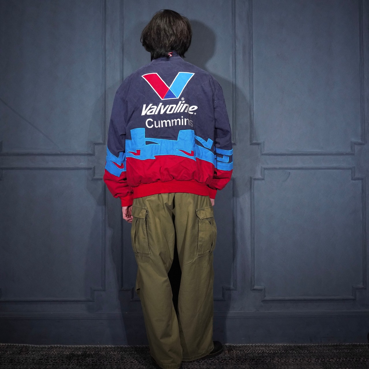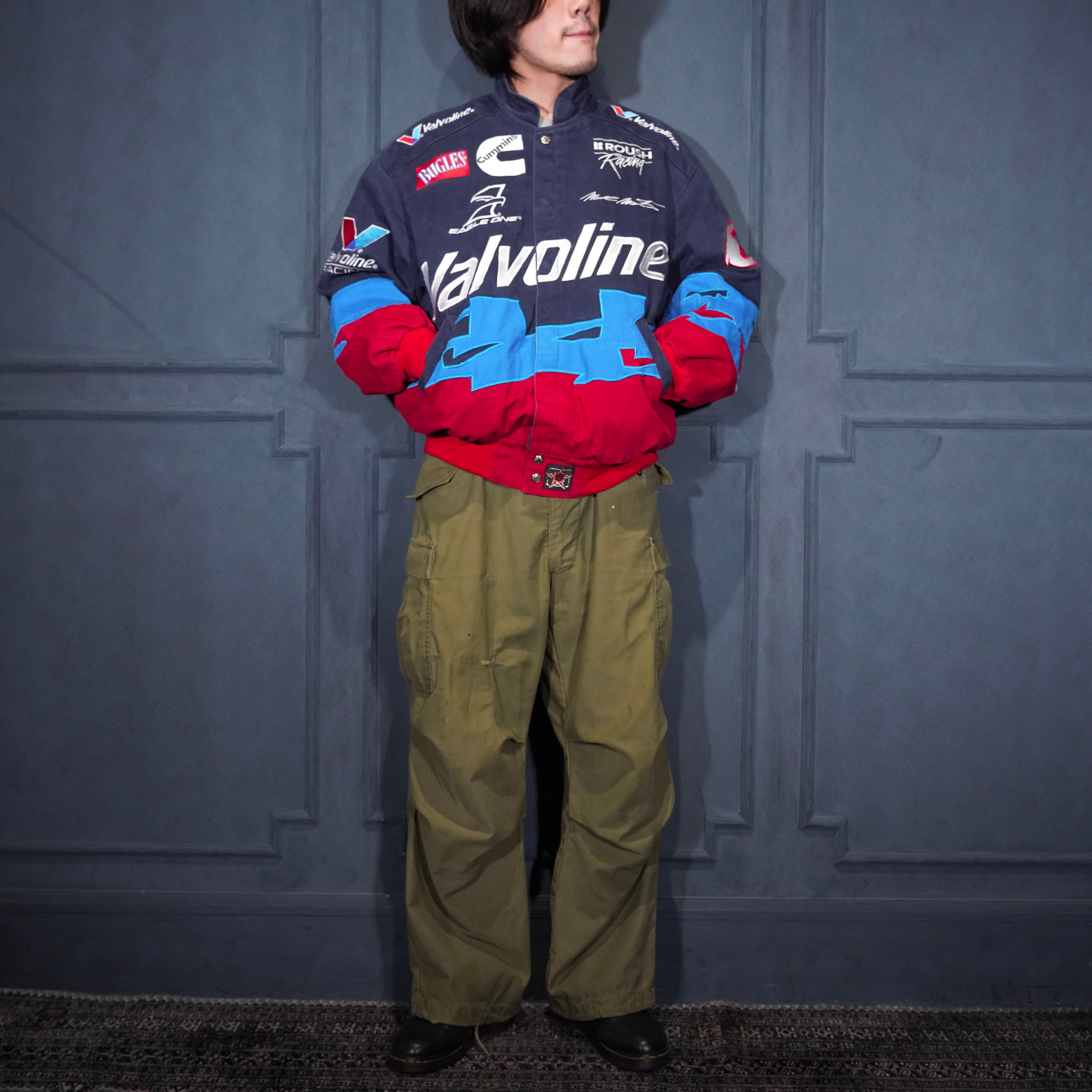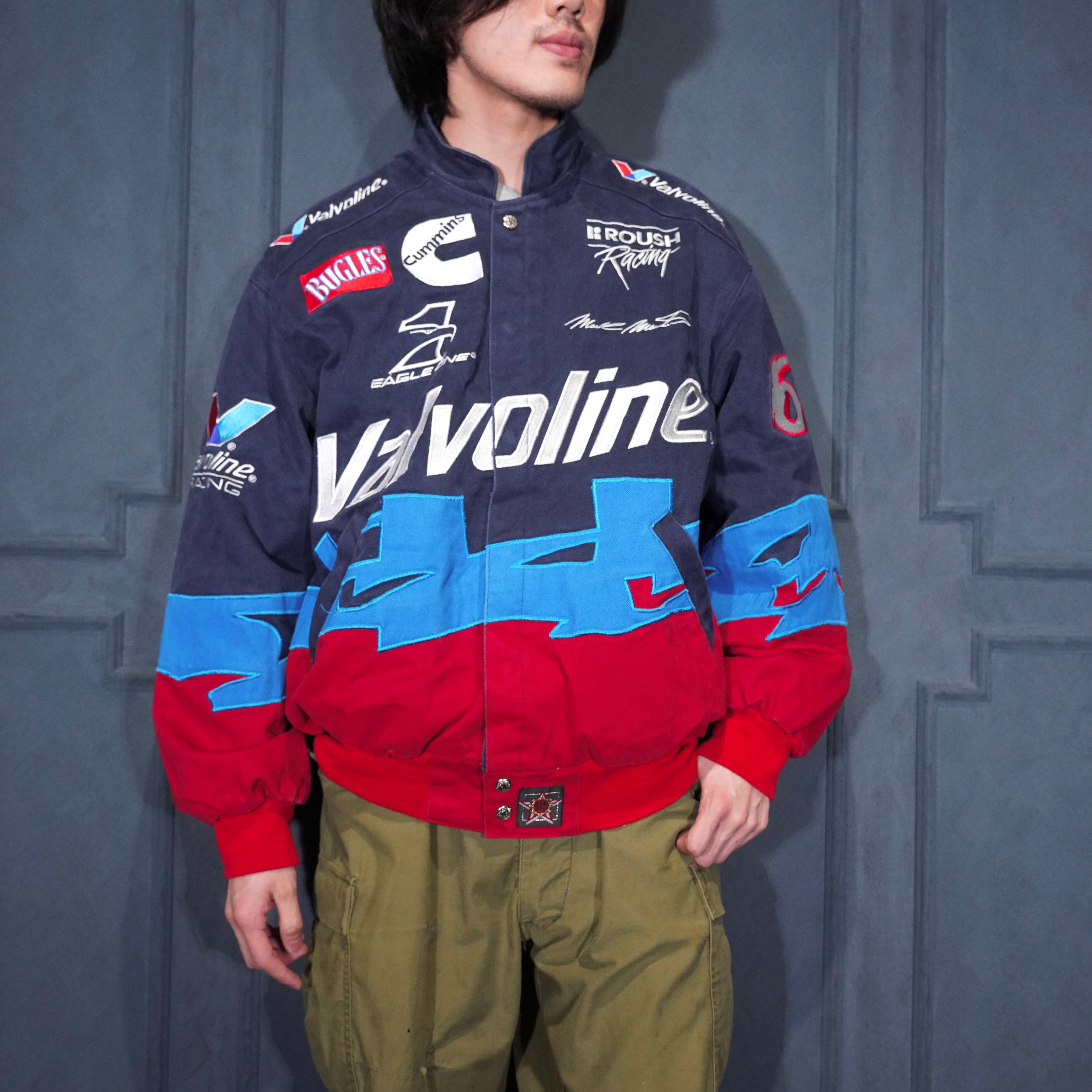 USA VINATGE JH DESIGN JEFF HAMILTON EMBROIDERY DESIGN COTTON RACING JACKET/アメリカ古着ジェフハミルトン刺繍デザインコットンレーシングジャケット