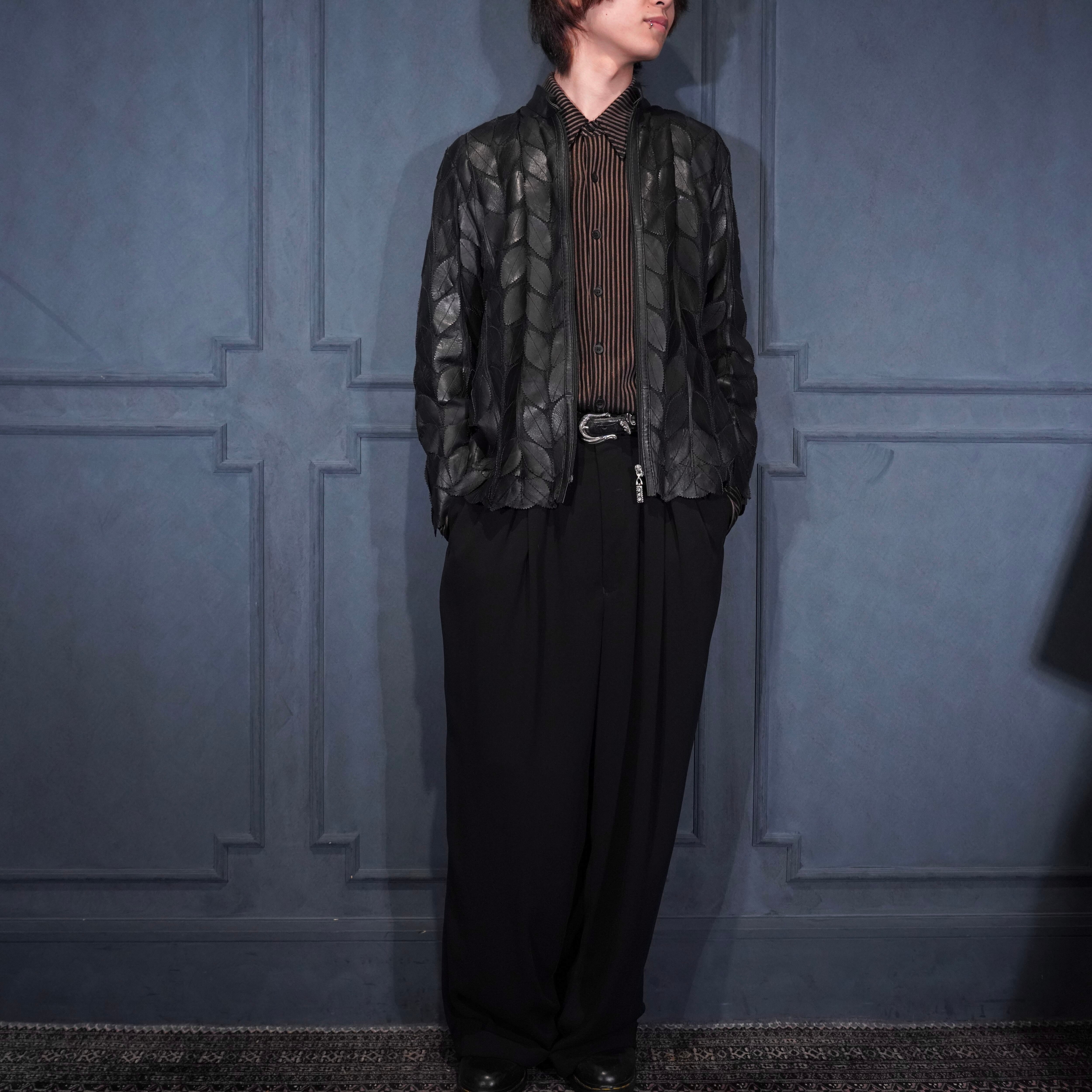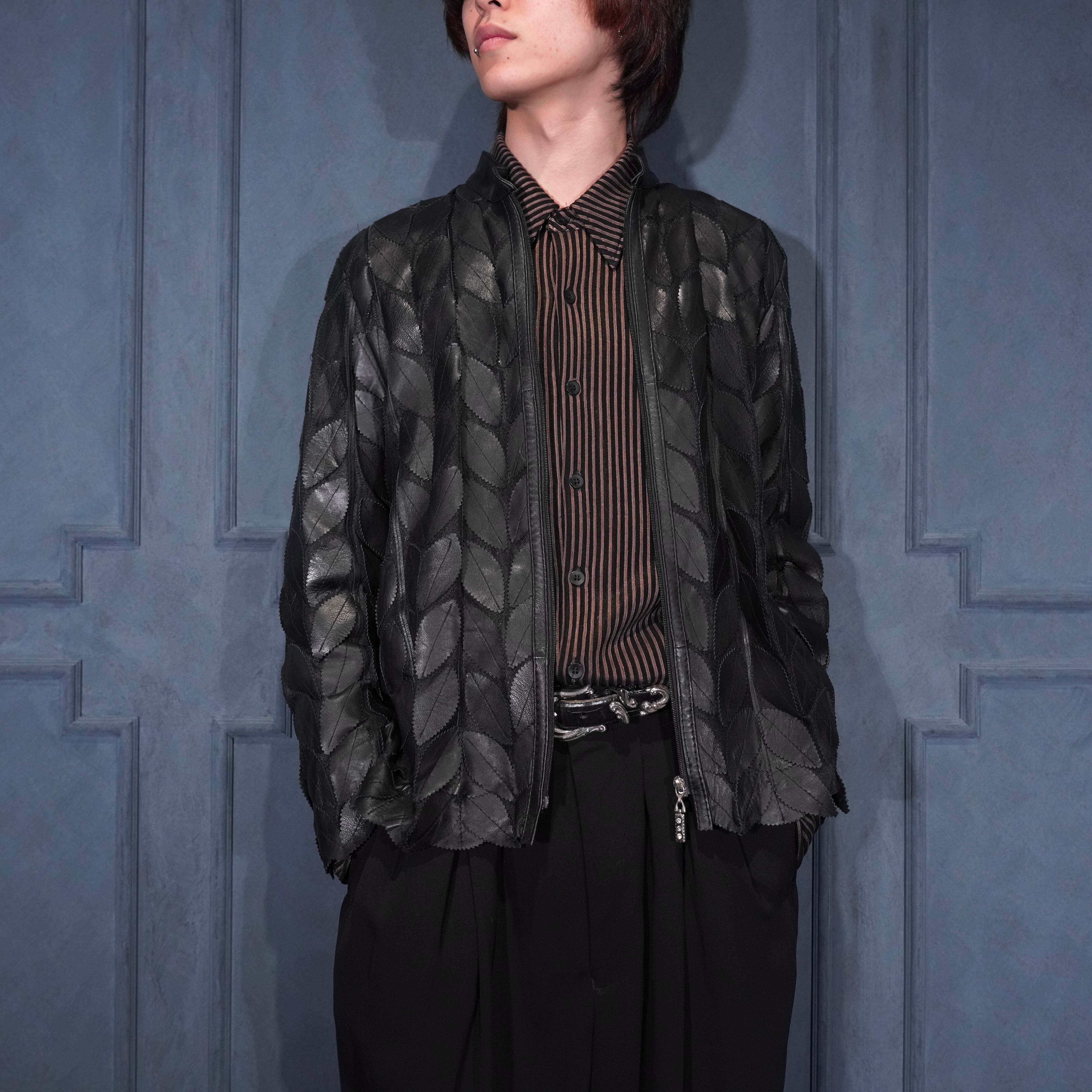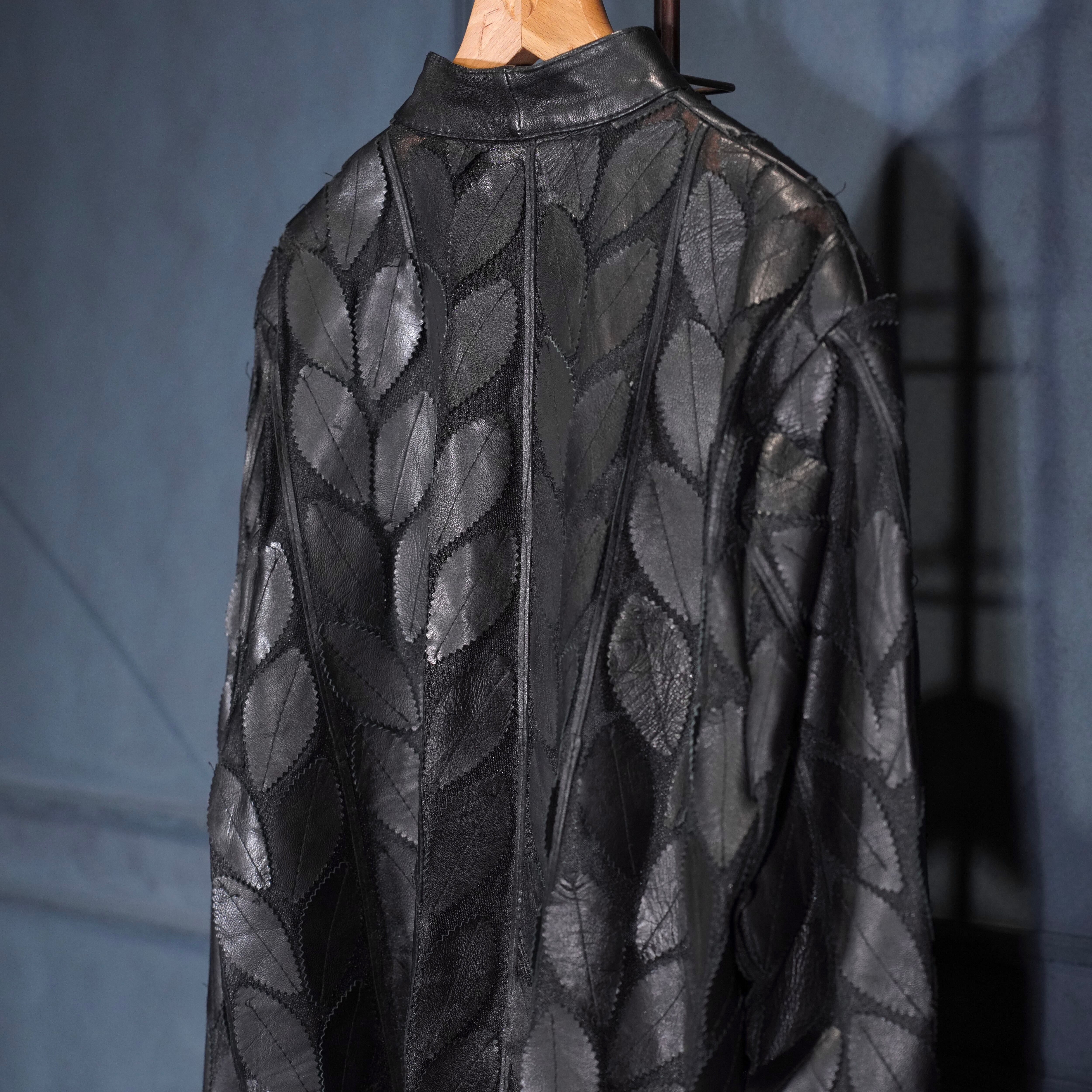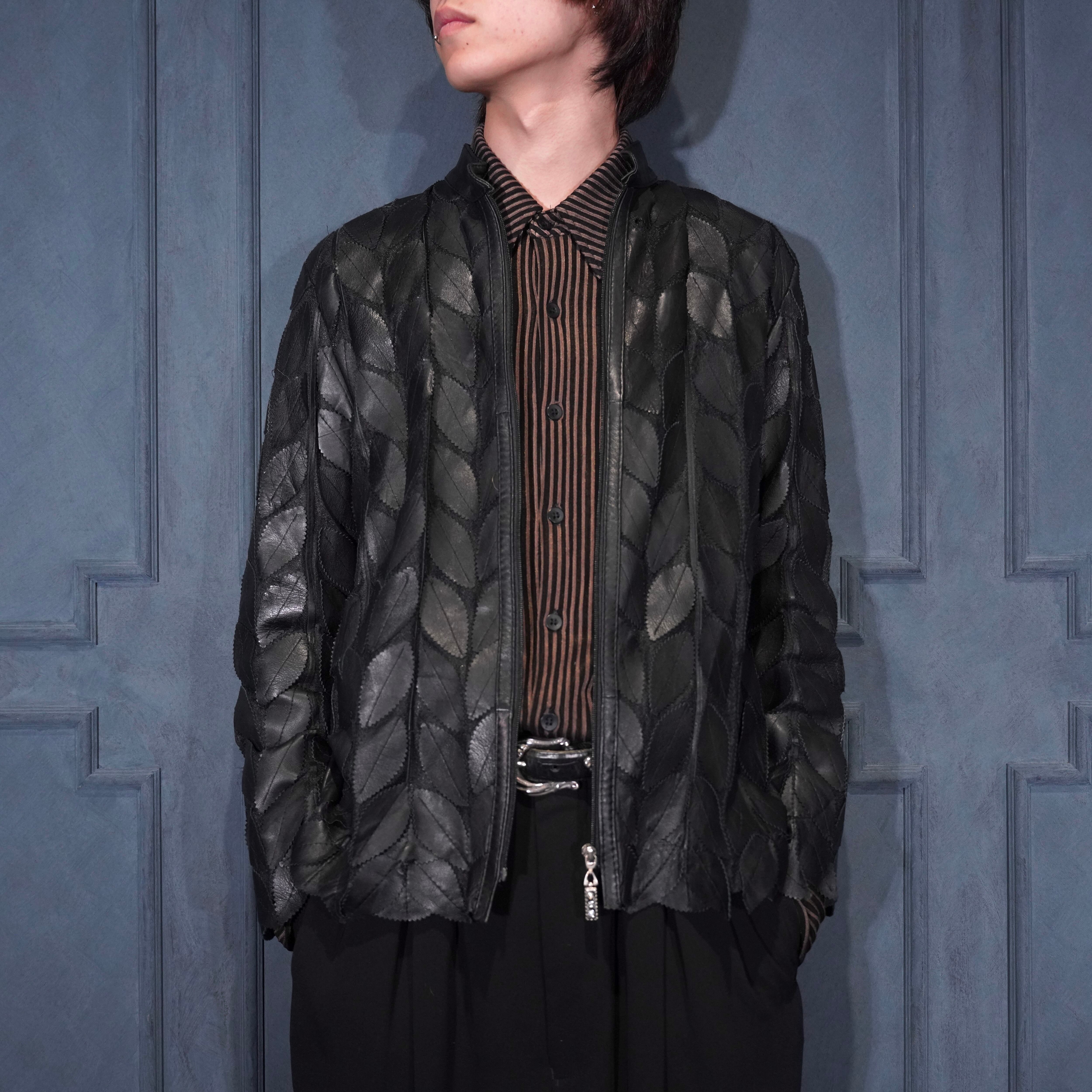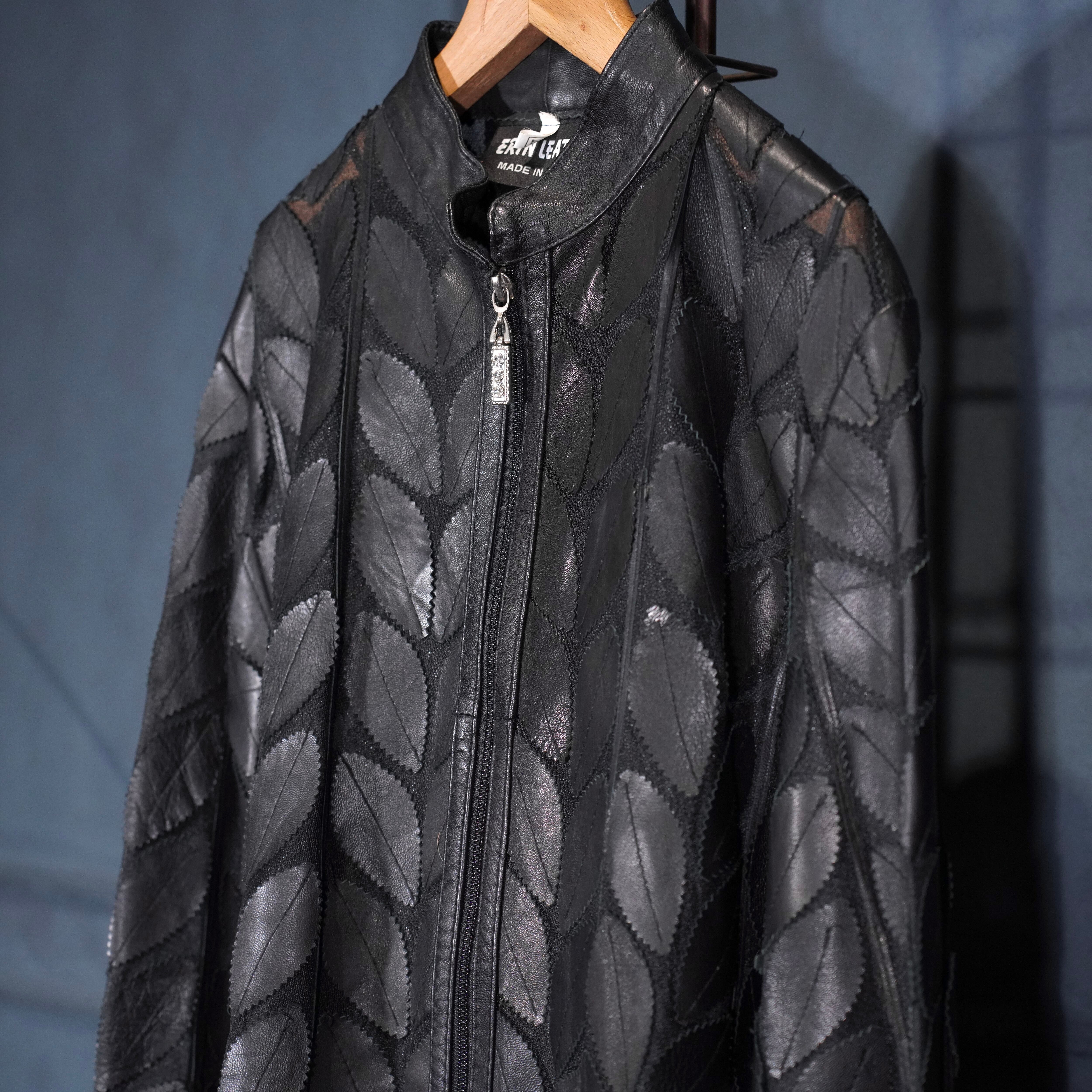 EU VINTAGE ERIN LEATHER LEAF DESIGN ZIP UP LEATHER BLOUSON MADE IN TURLEYヨーロッパ古着葉っぱデザインジップアップレザーブルゾン