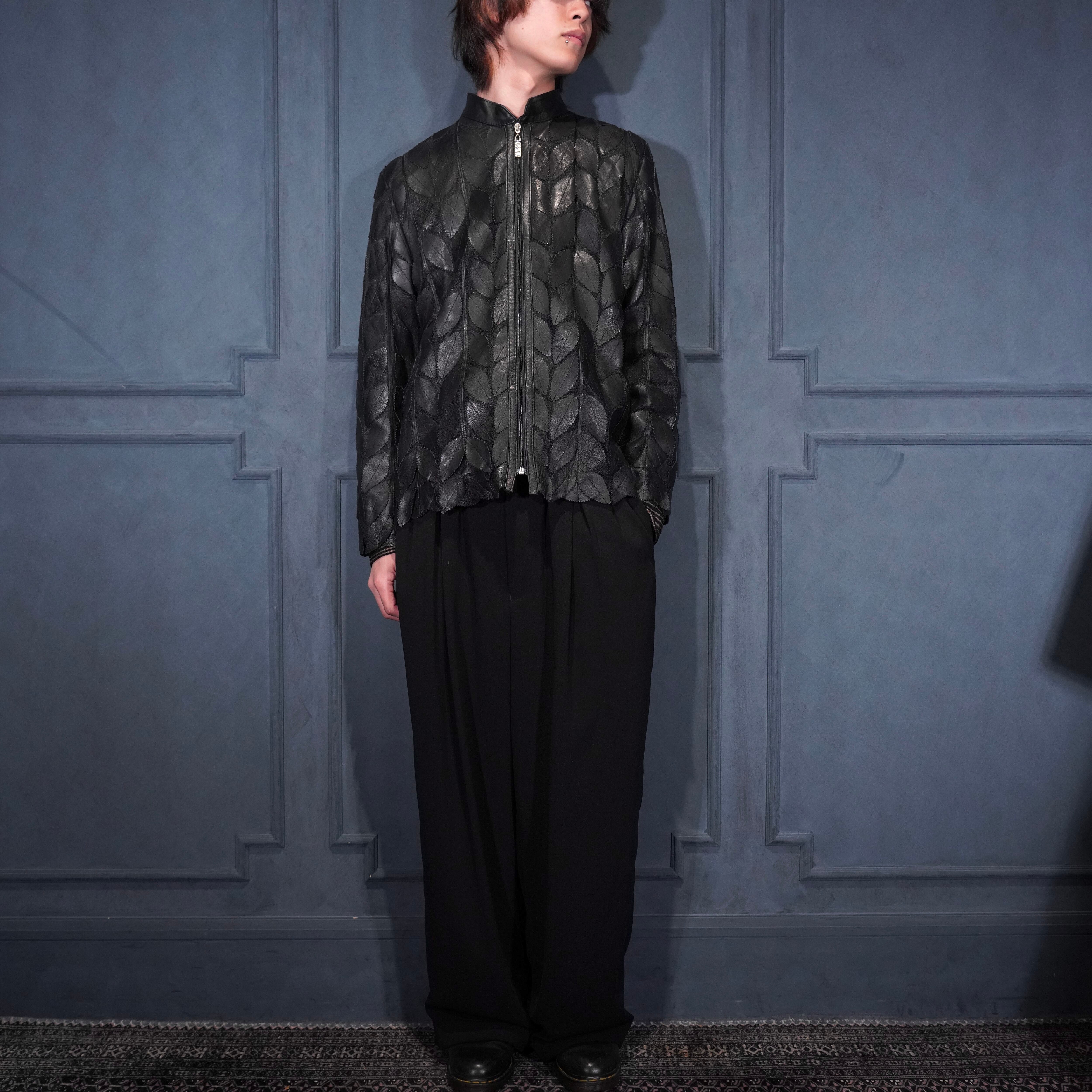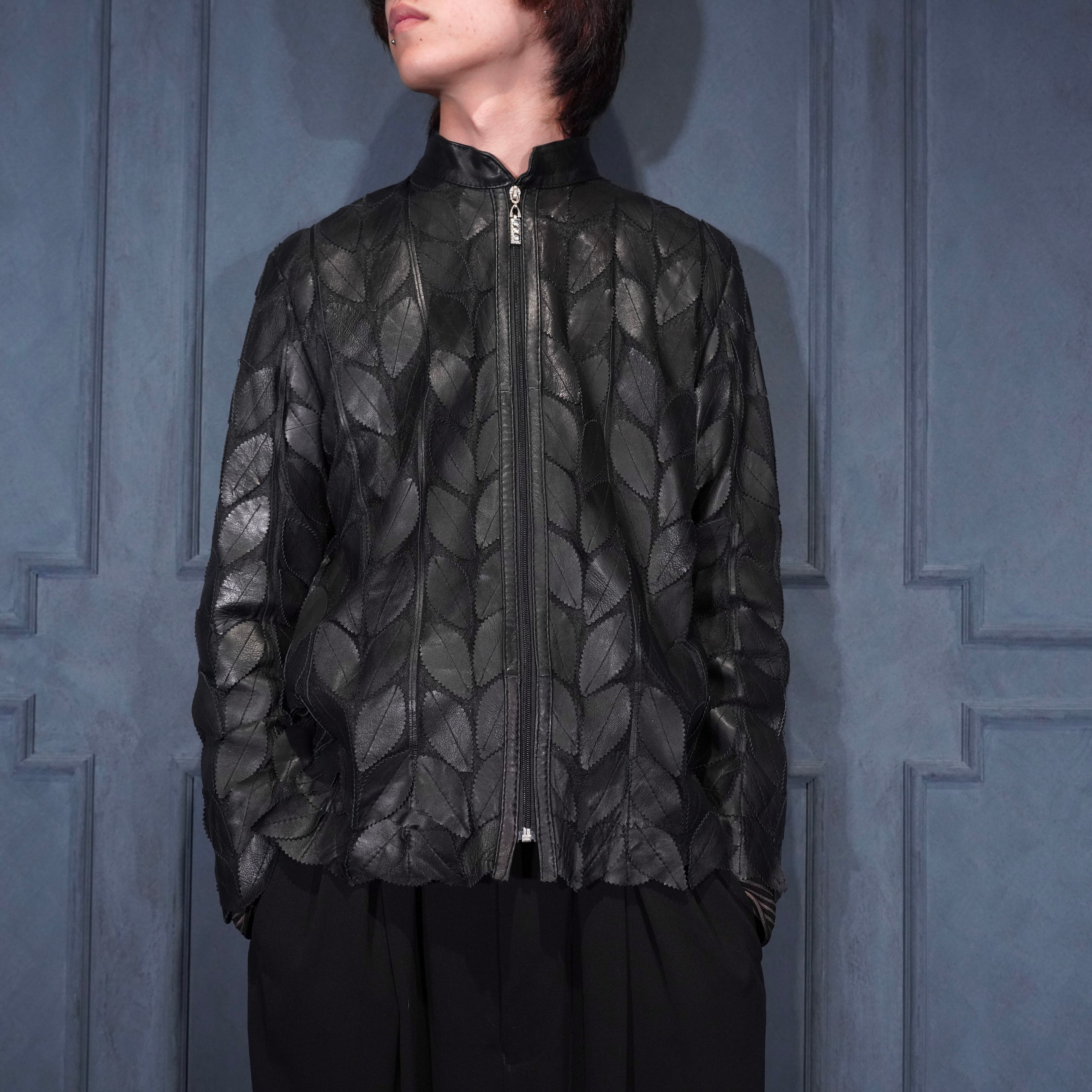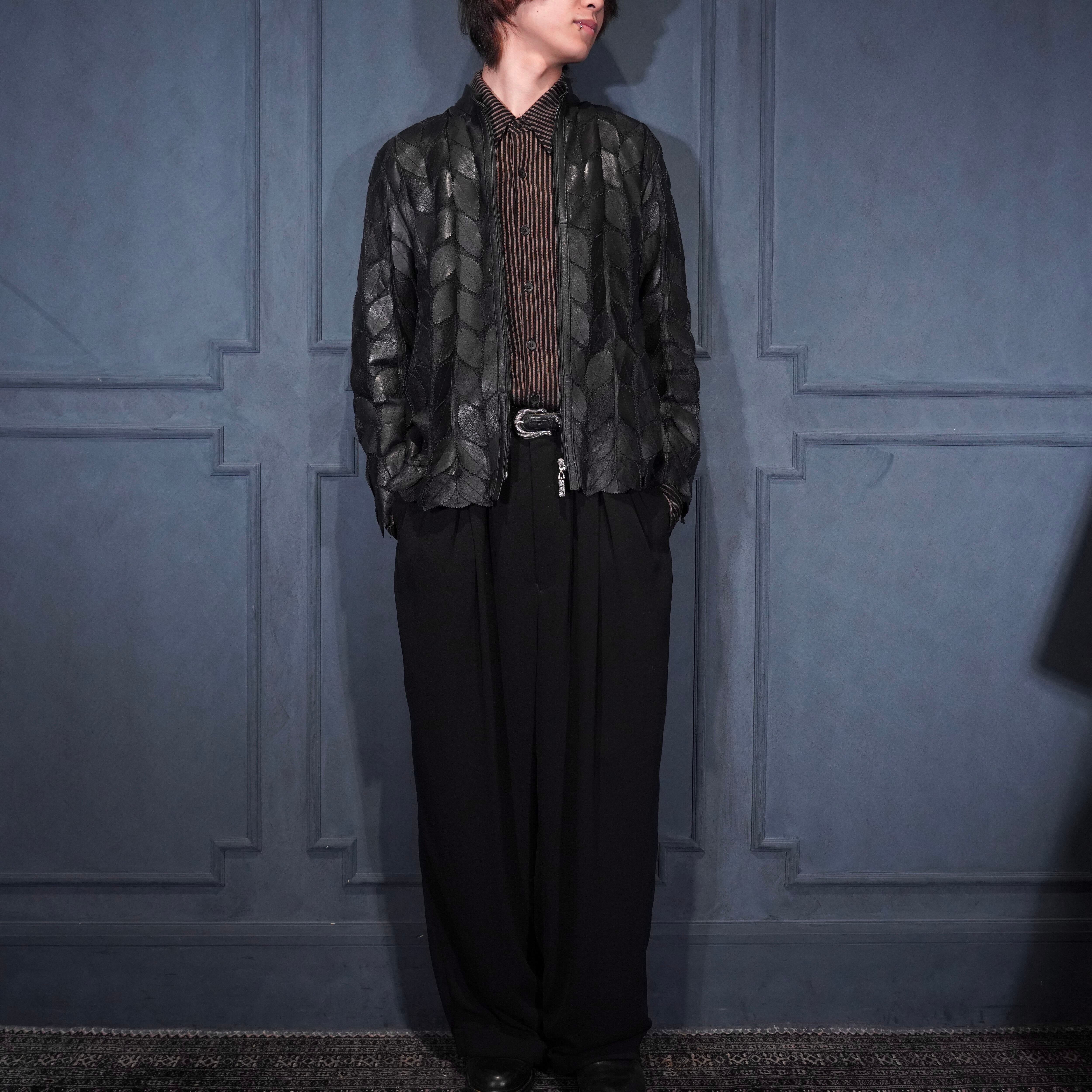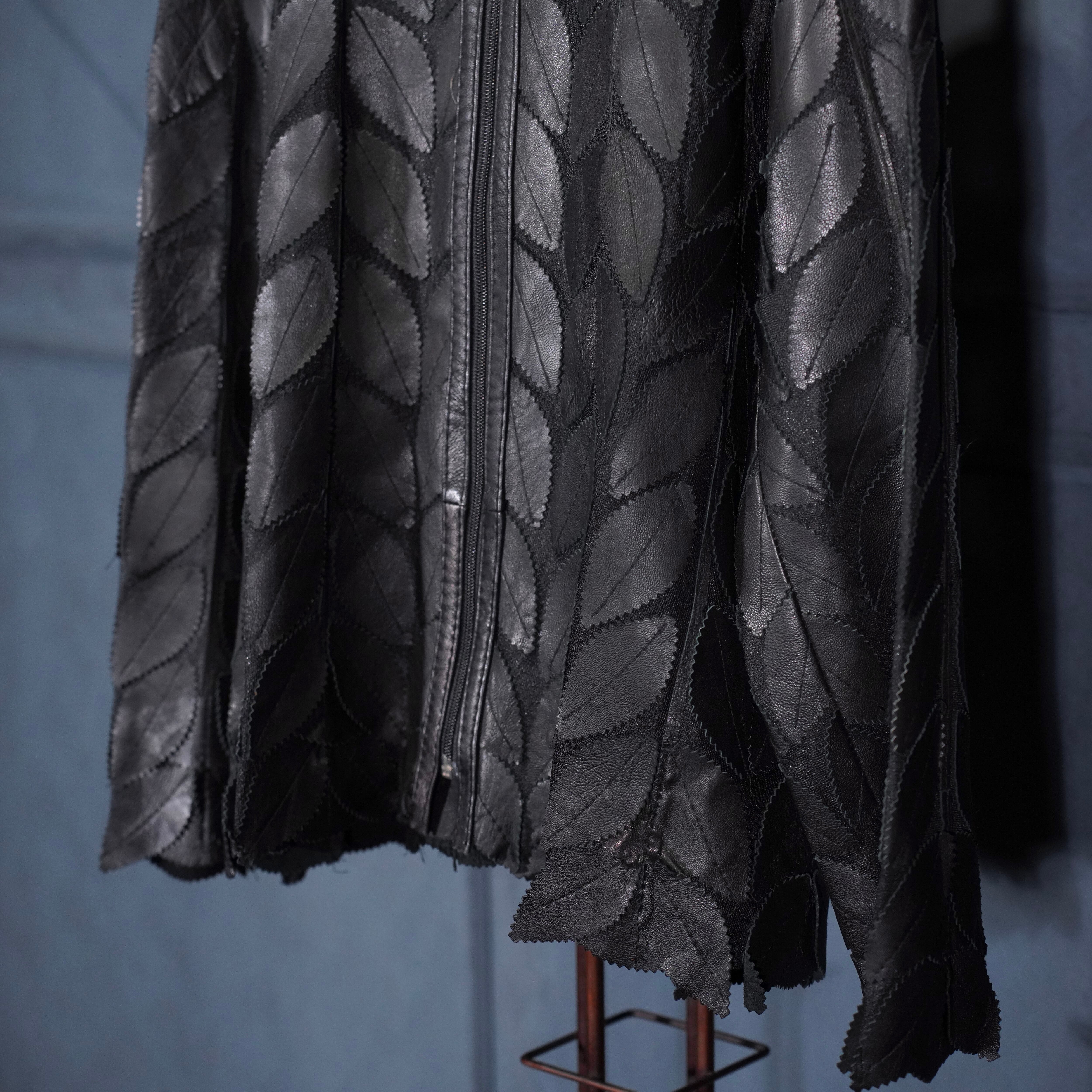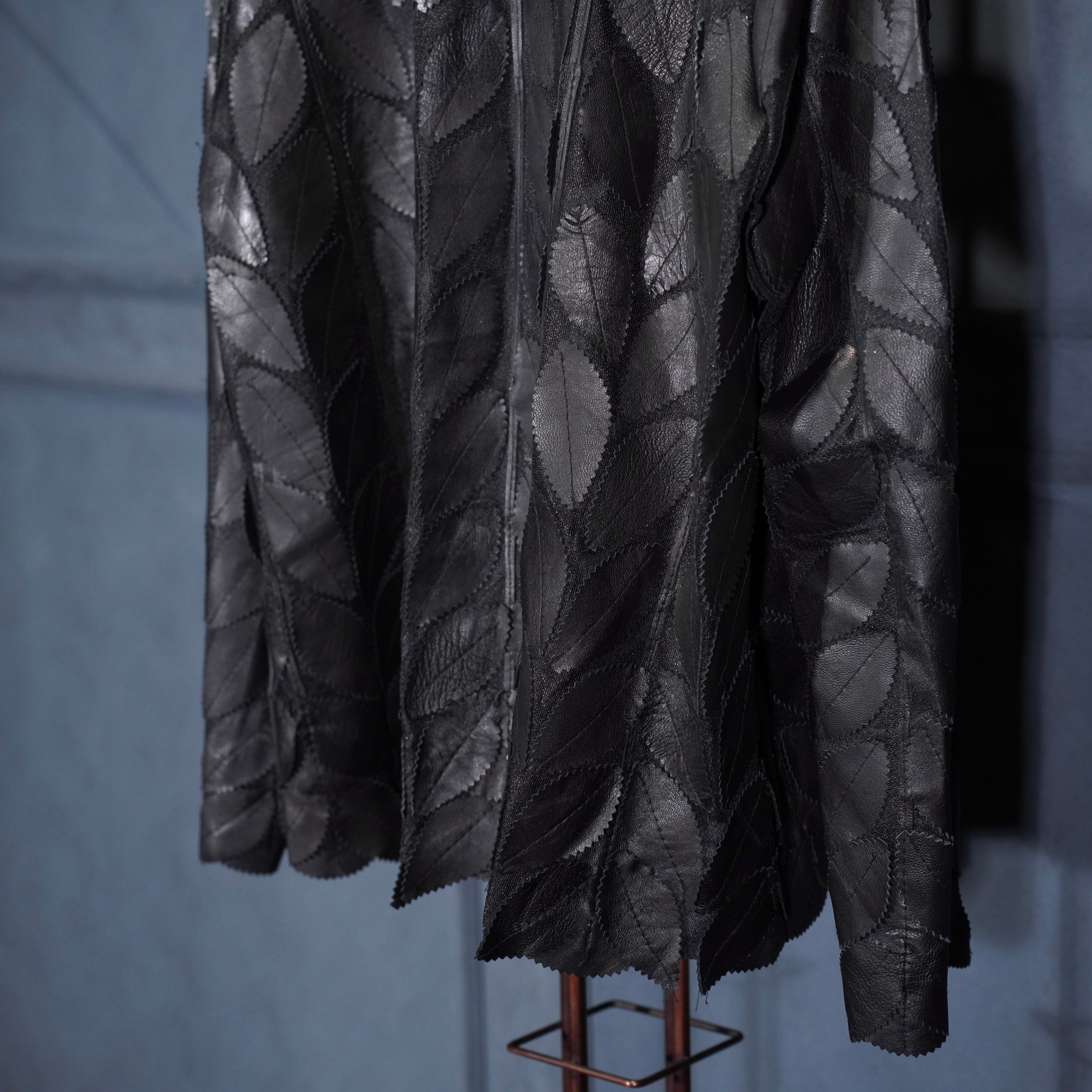 EU VINTAGE ERIN LEATHER LEAF DESIGN ZIP UP LEATHER BLOUSON MADE IN TURLEYヨーロッパ古着葉っぱデザインジップアップレザーブルゾン