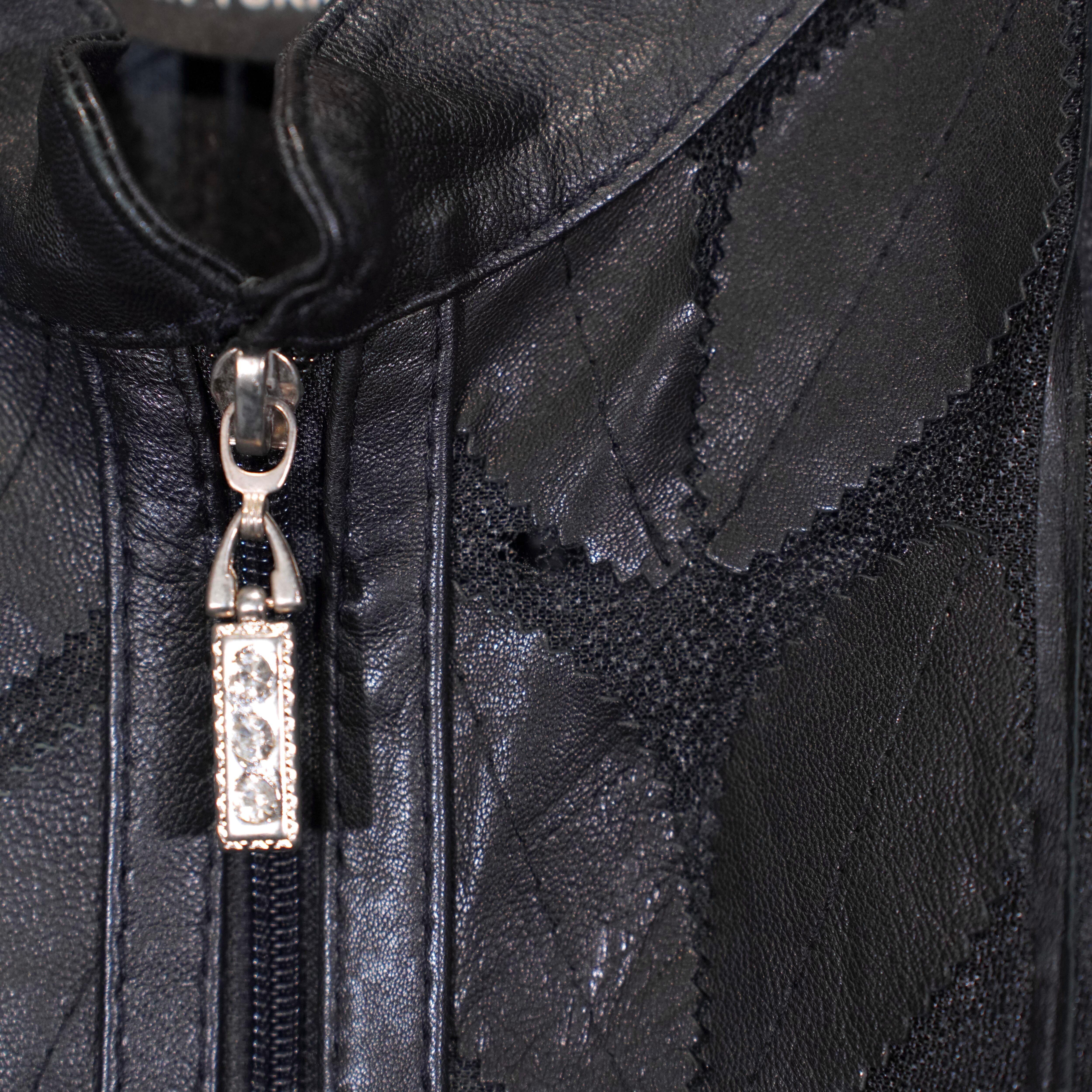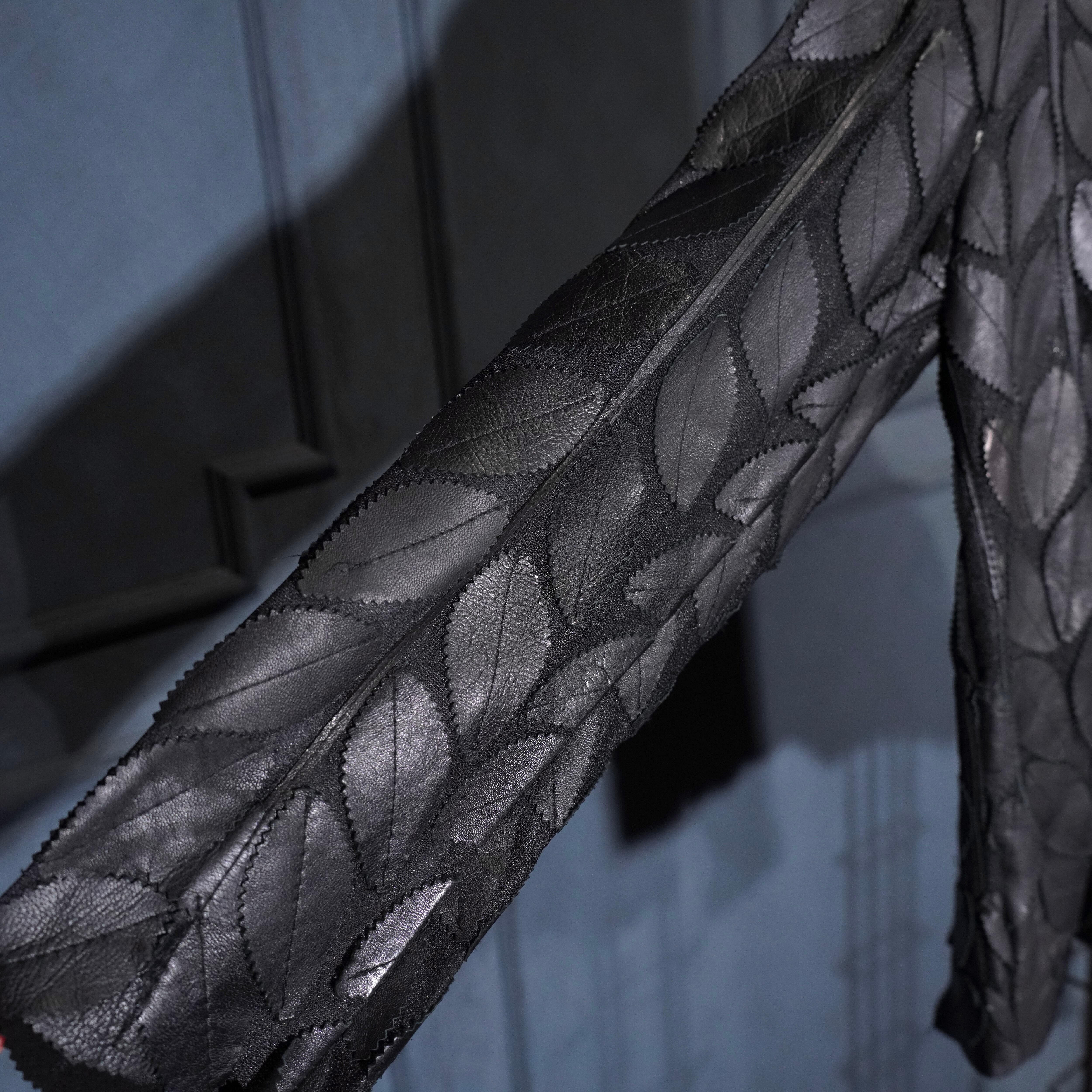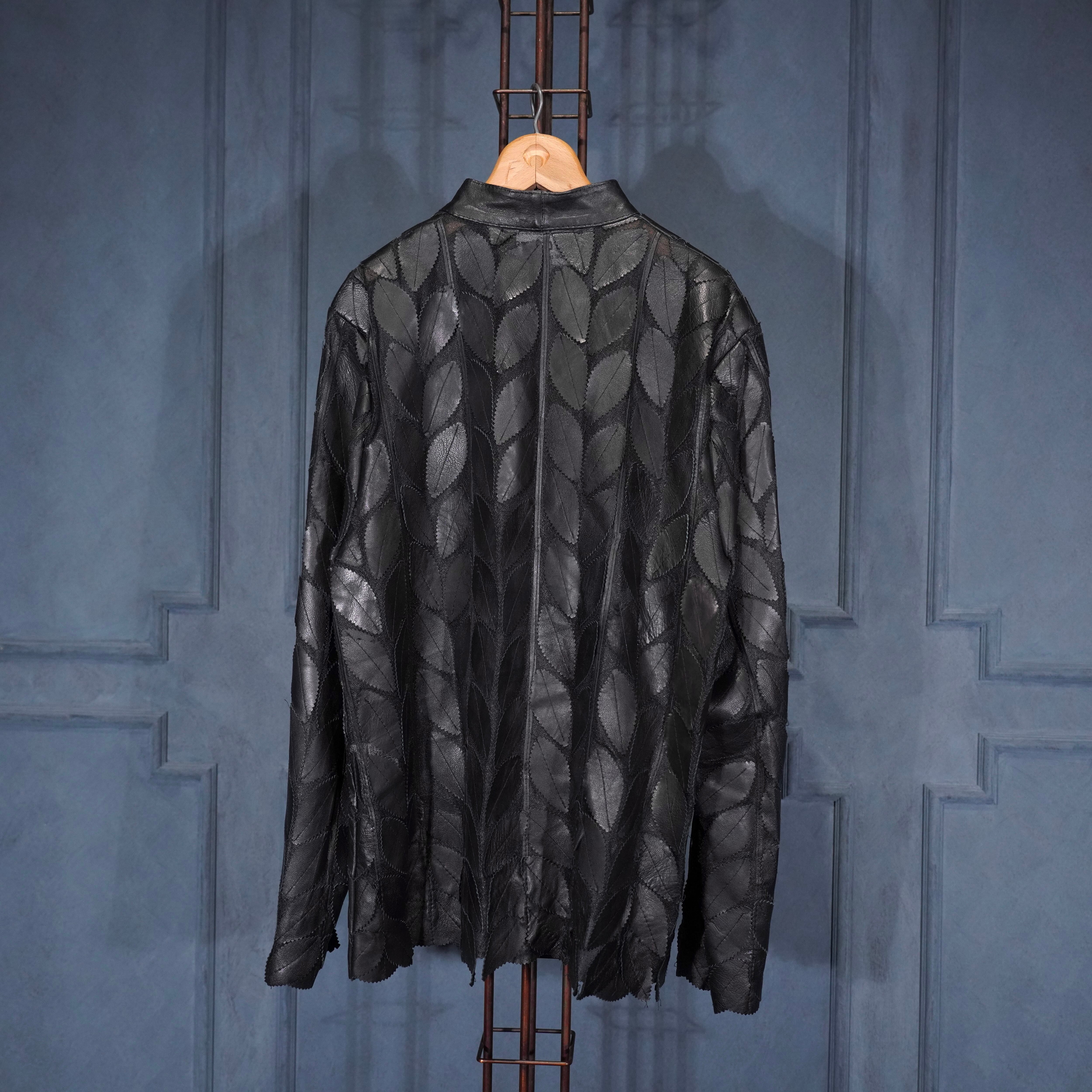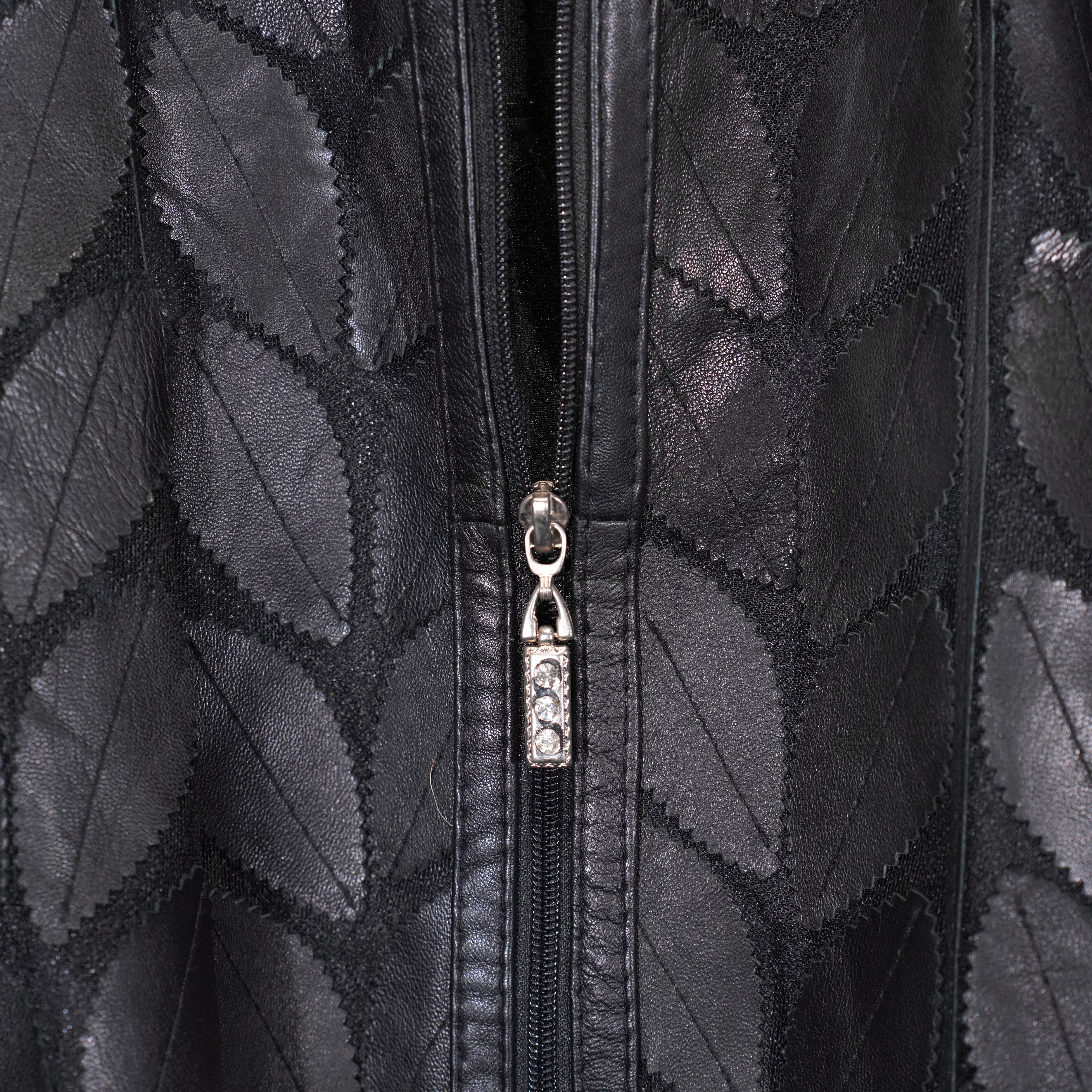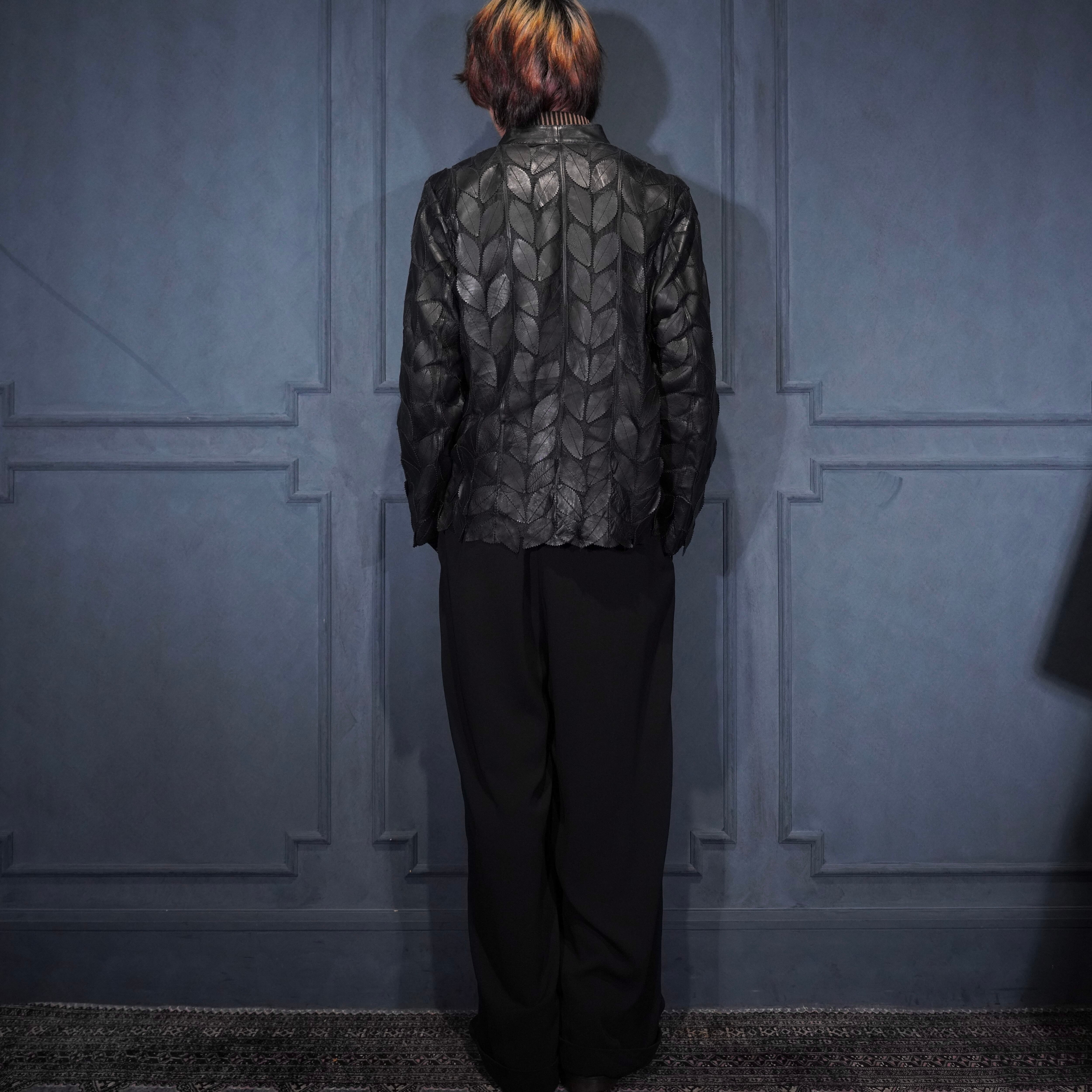 EU VINTAGE ERIN LEATHER LEAF DESIGN ZIP UP LEATHER BLOUSON MADE IN TURLEYヨーロッパ古着葉っぱデザインジップアップレザーブルゾン