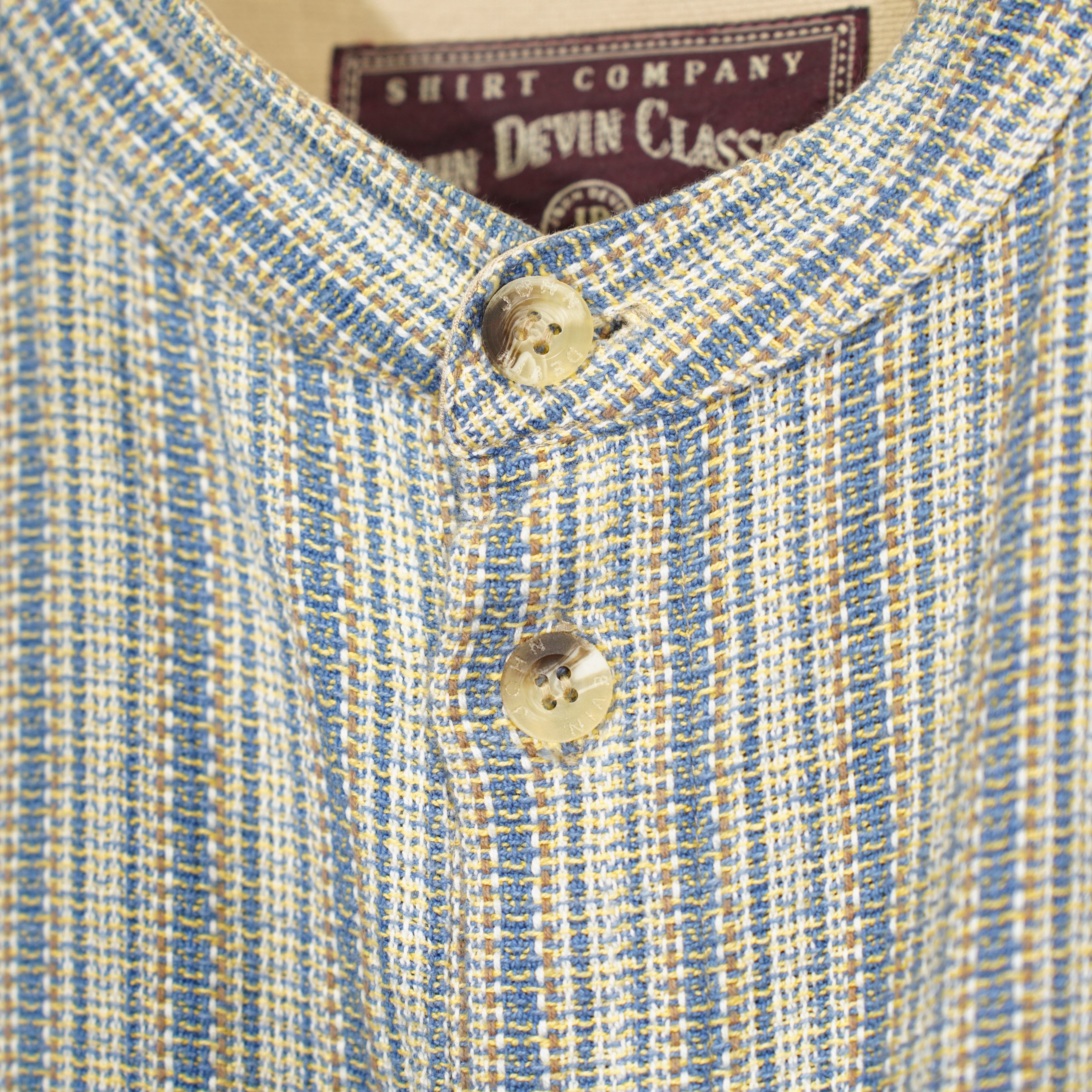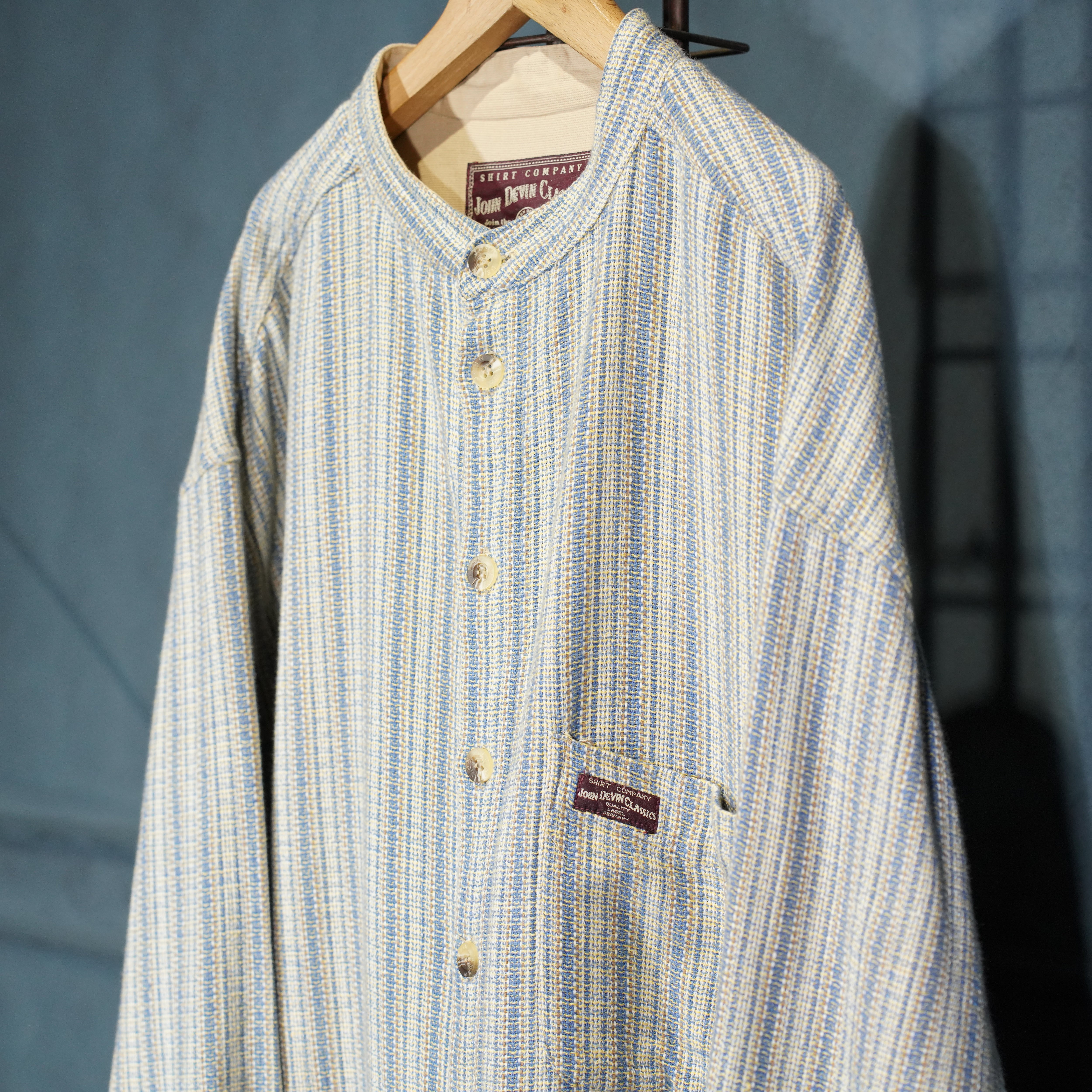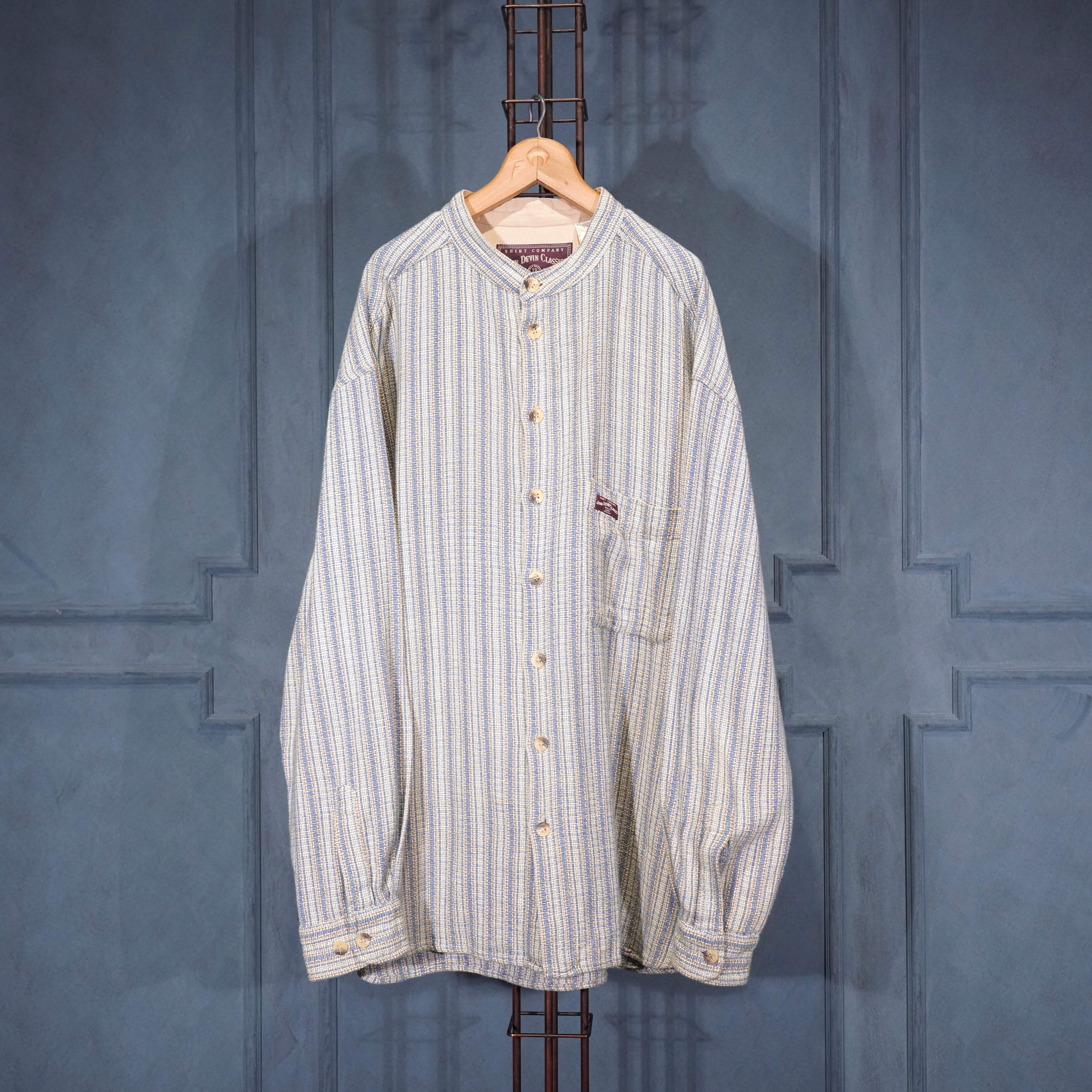EU VINTAGE JOHN DEVIN CLASSICS WOVEN DESIGN BAND COLLAR DESIGN SHIRT/ヨーロッパ織デザインバンドカラーデザインシャツ