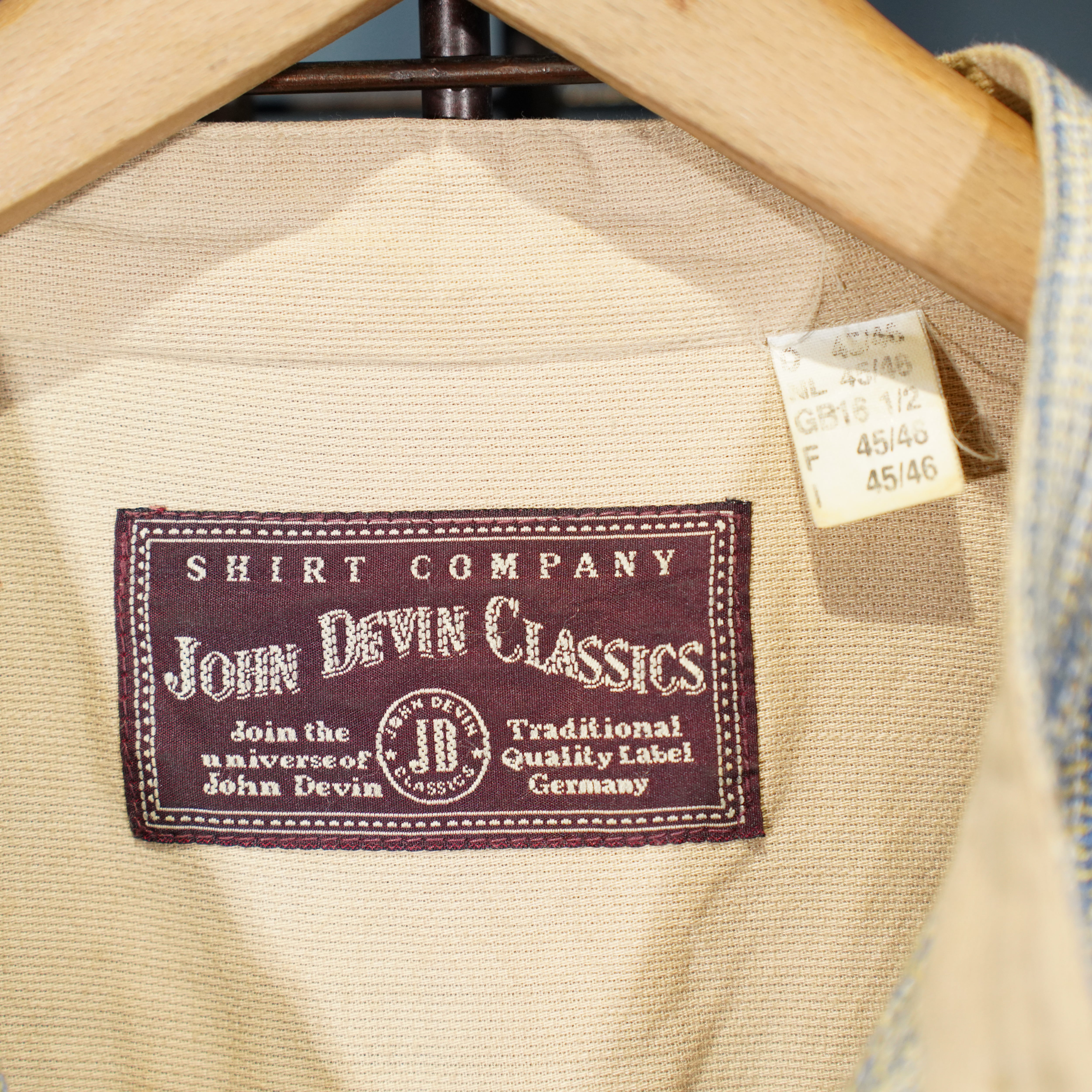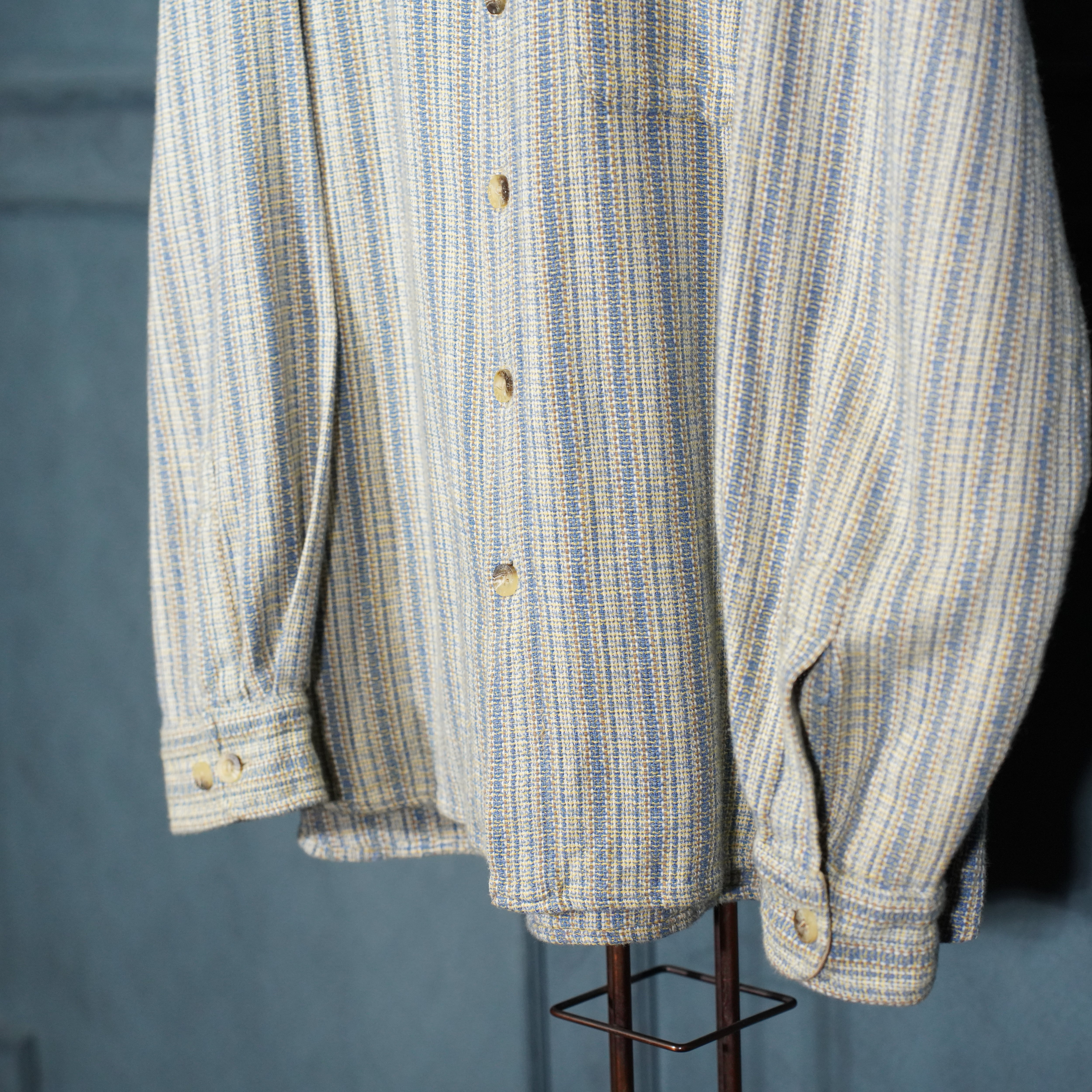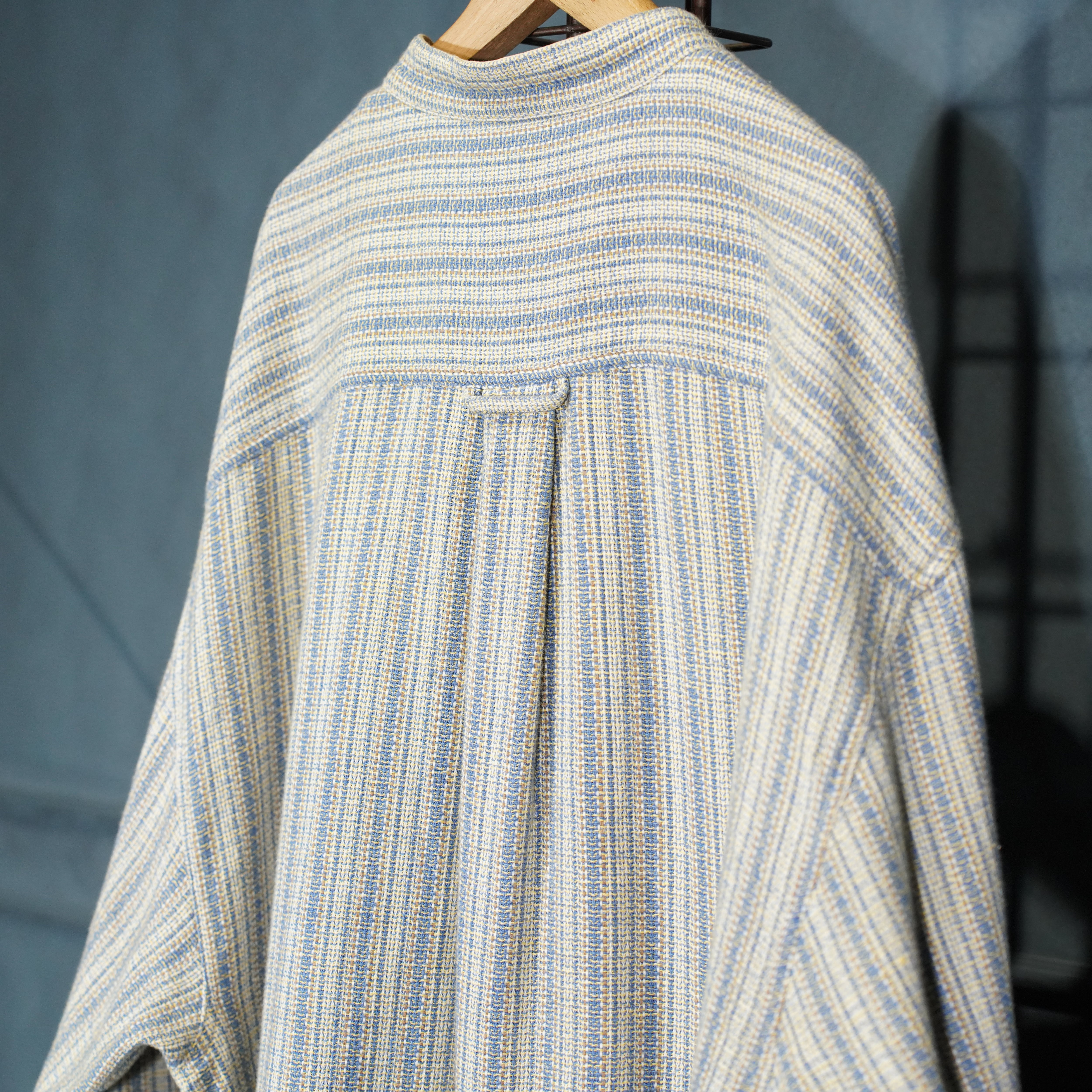 EU VINTAGE JOHN DEVIN CLASSICS WOVEN DESIGN BAND COLLAR DESIGN SHIRT/ヨーロッパ織デザインバンドカラーデザインシャツ